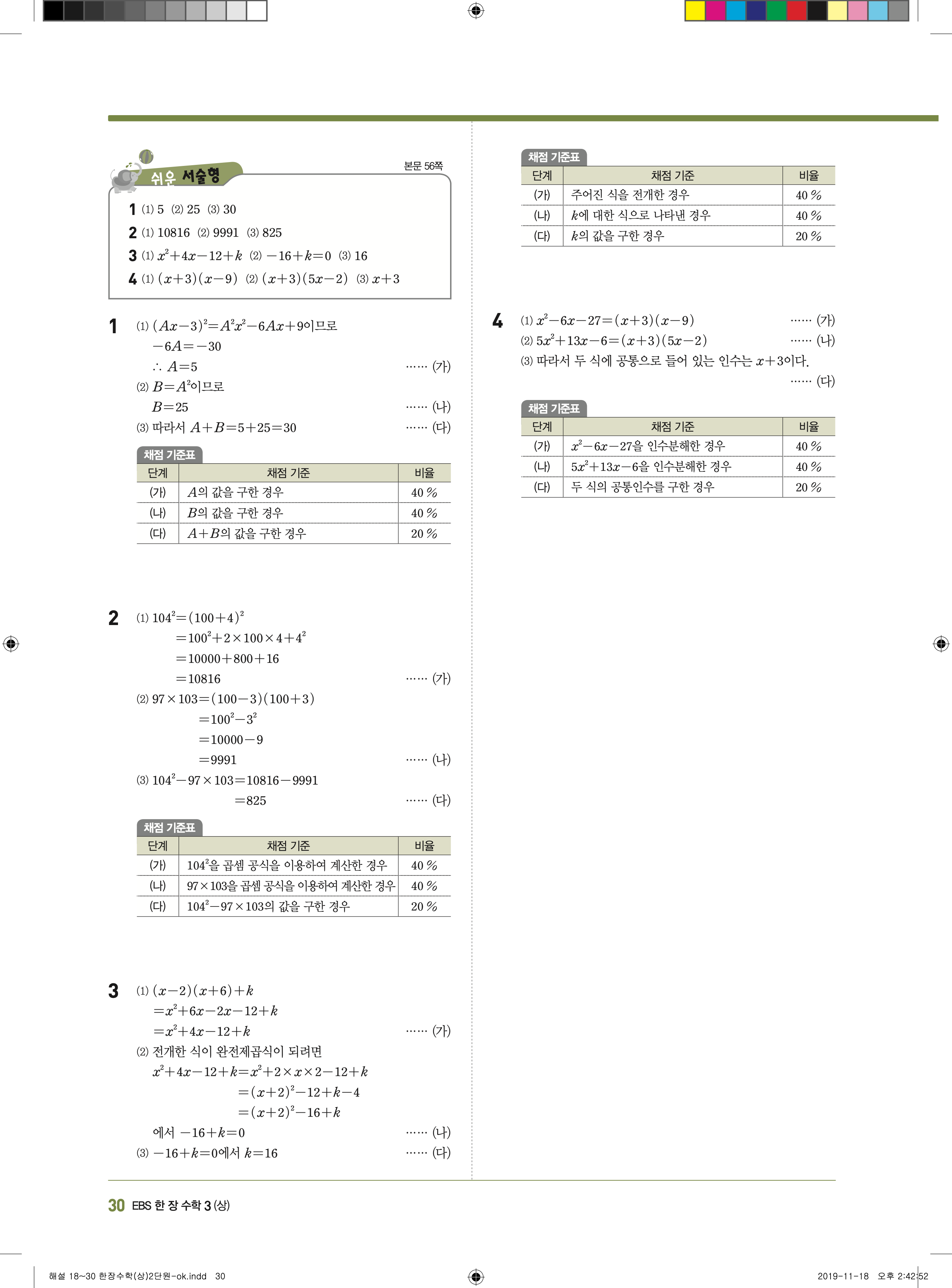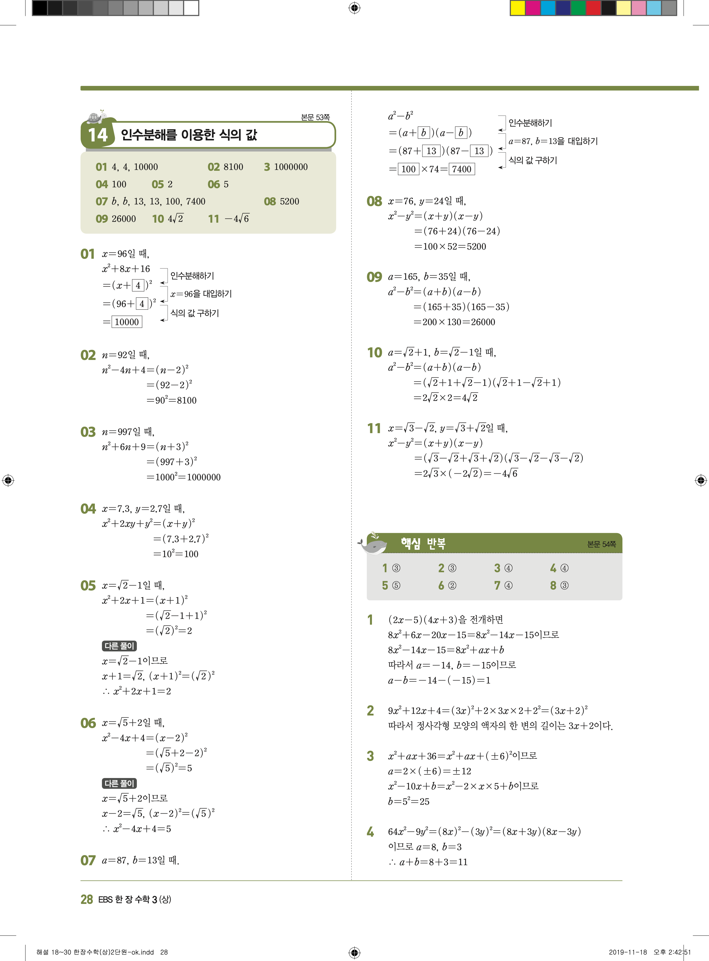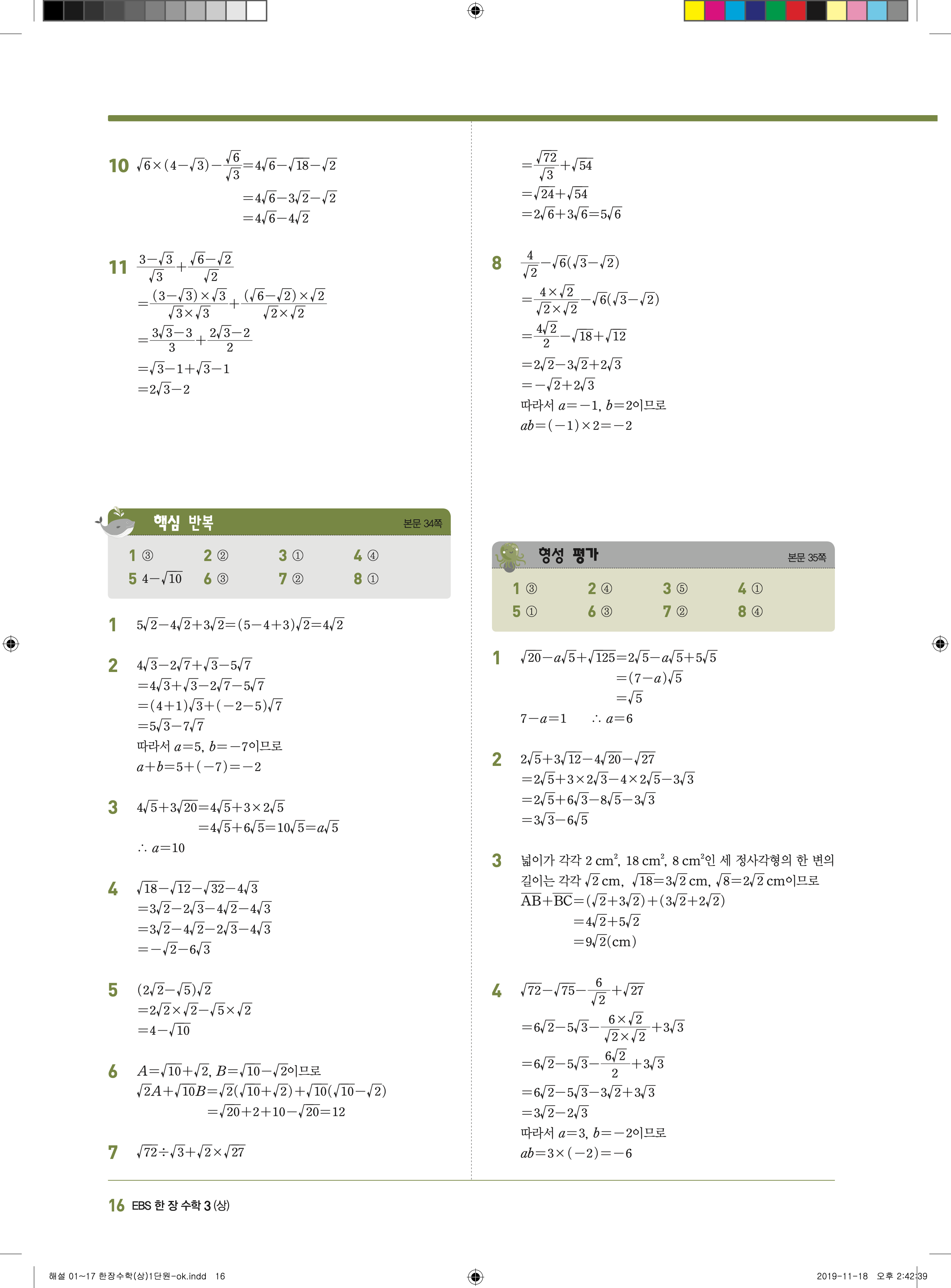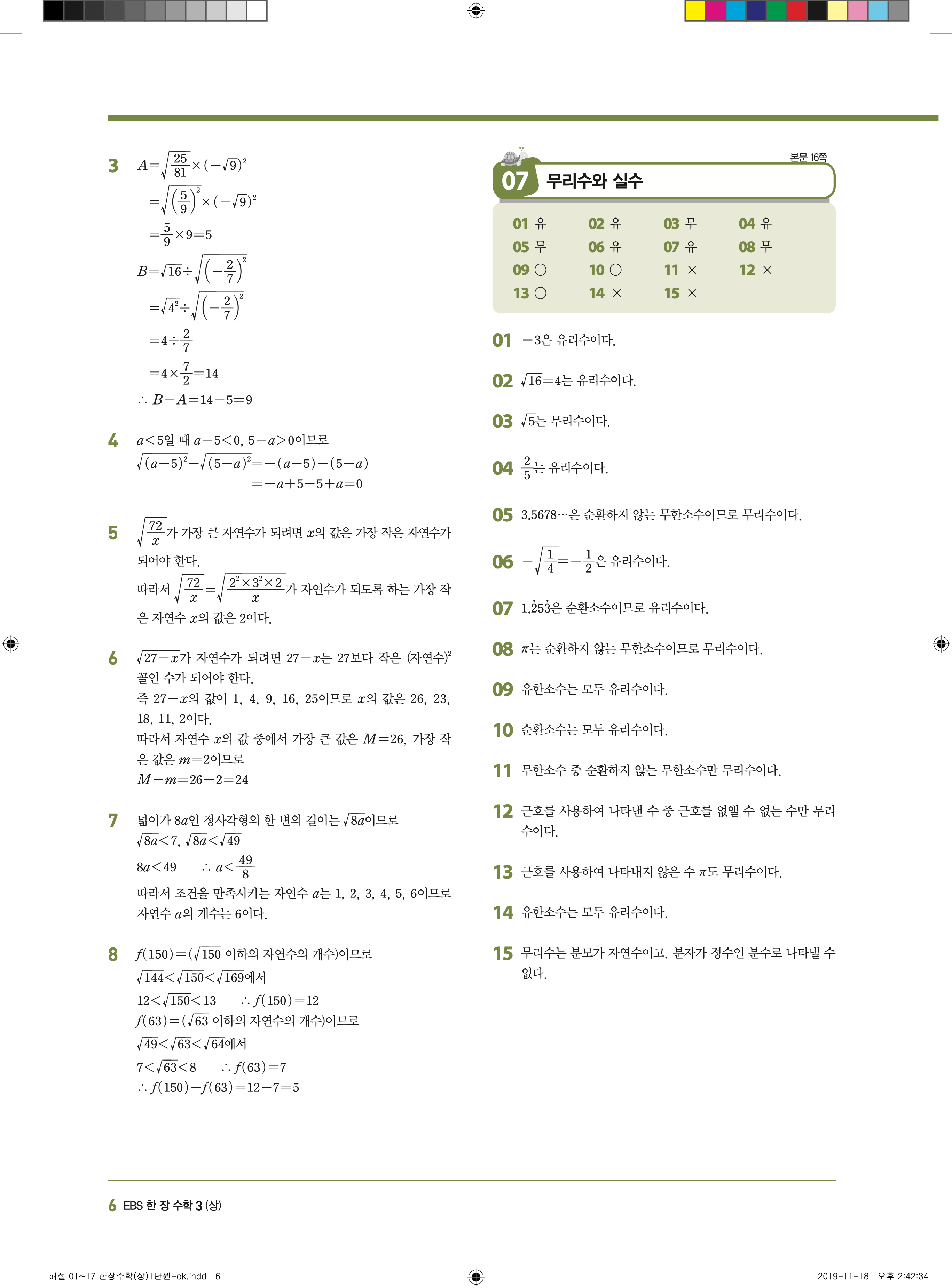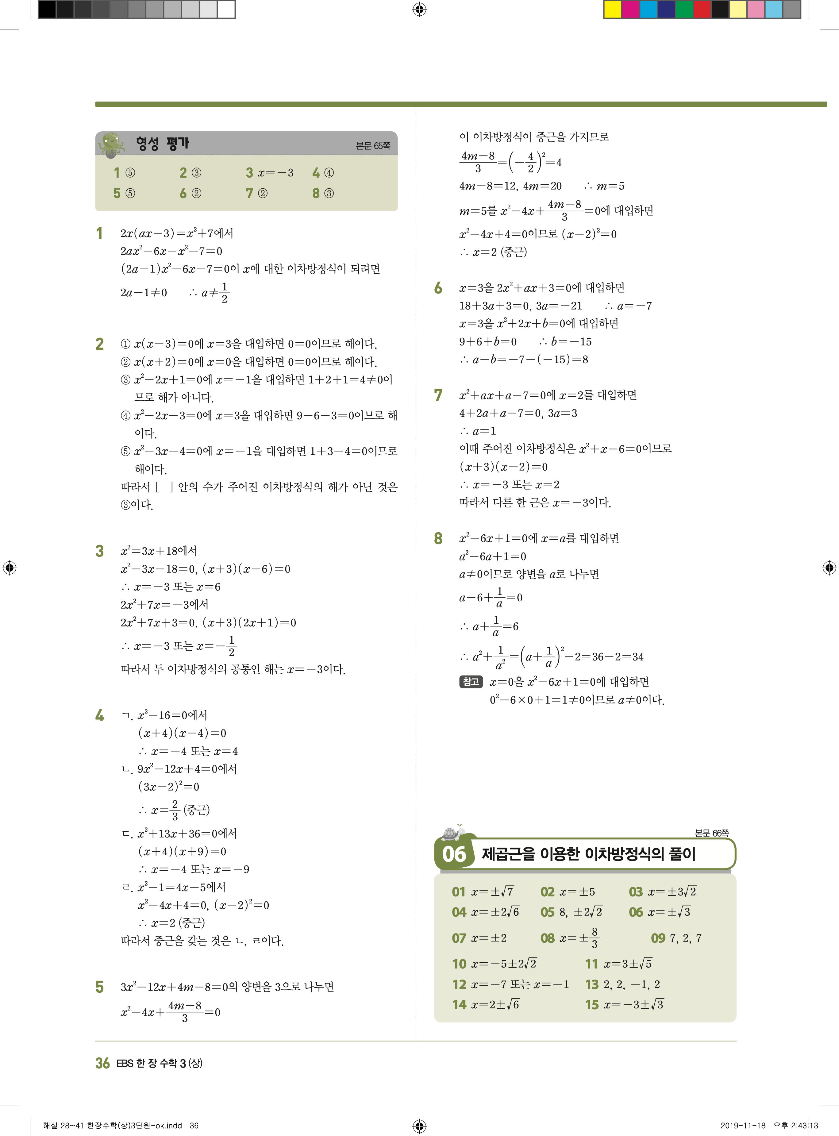 EBS 한장수학 중3상 3-1 답지 해설 바로보는 사진답지 빠른답지 모바일최적화