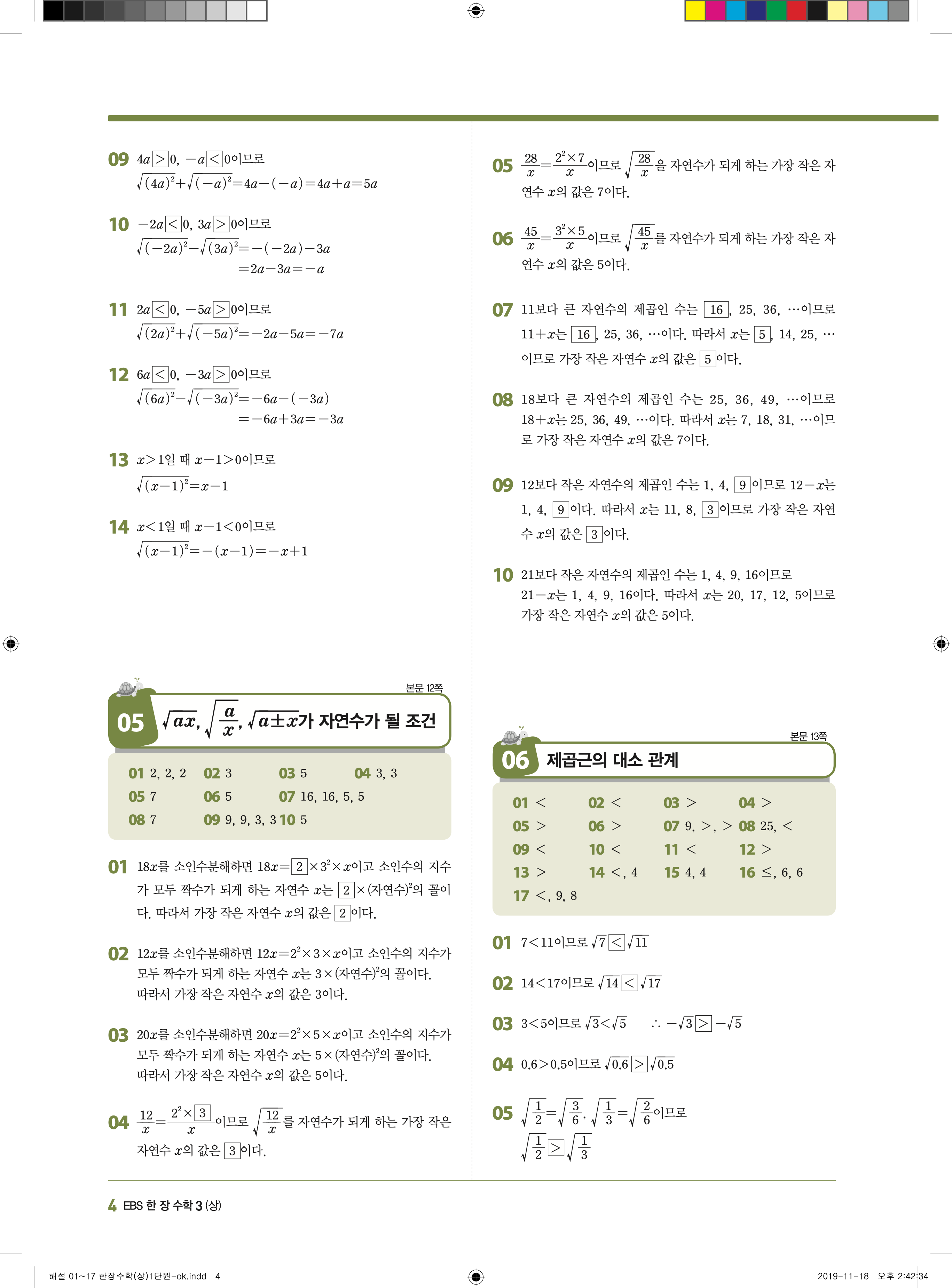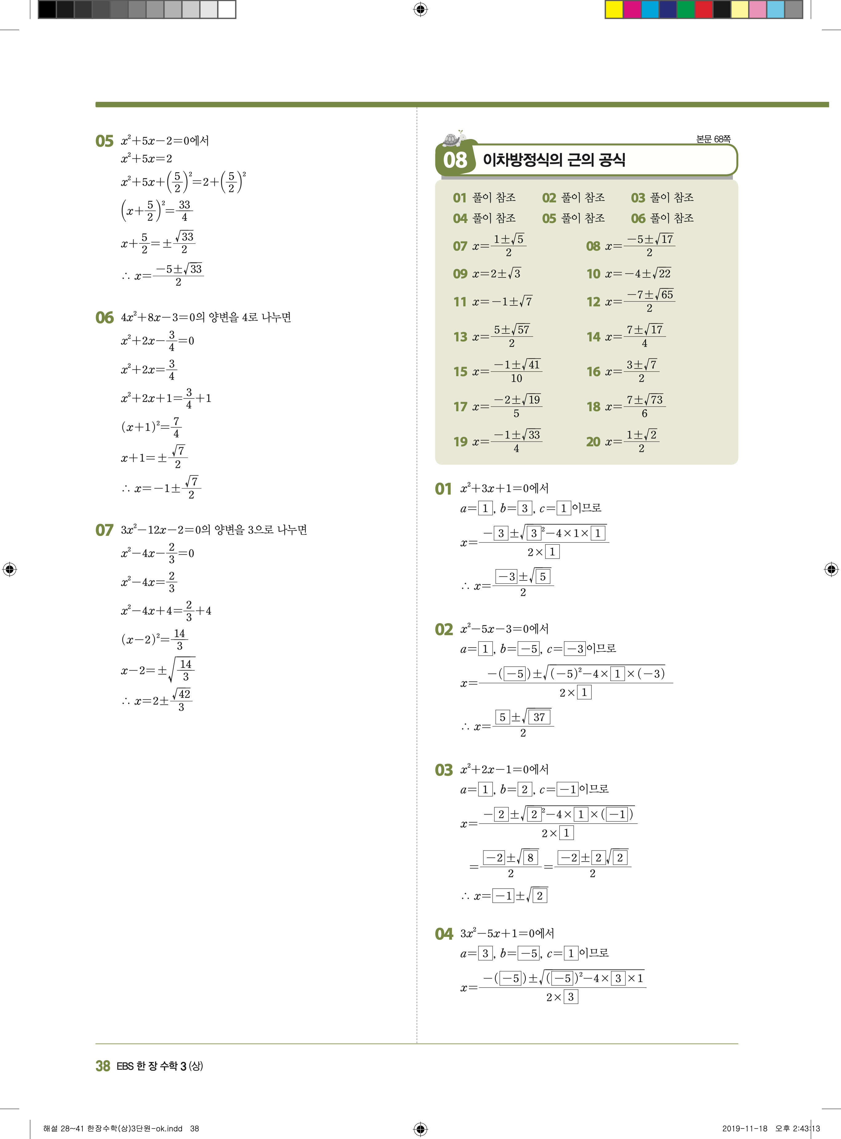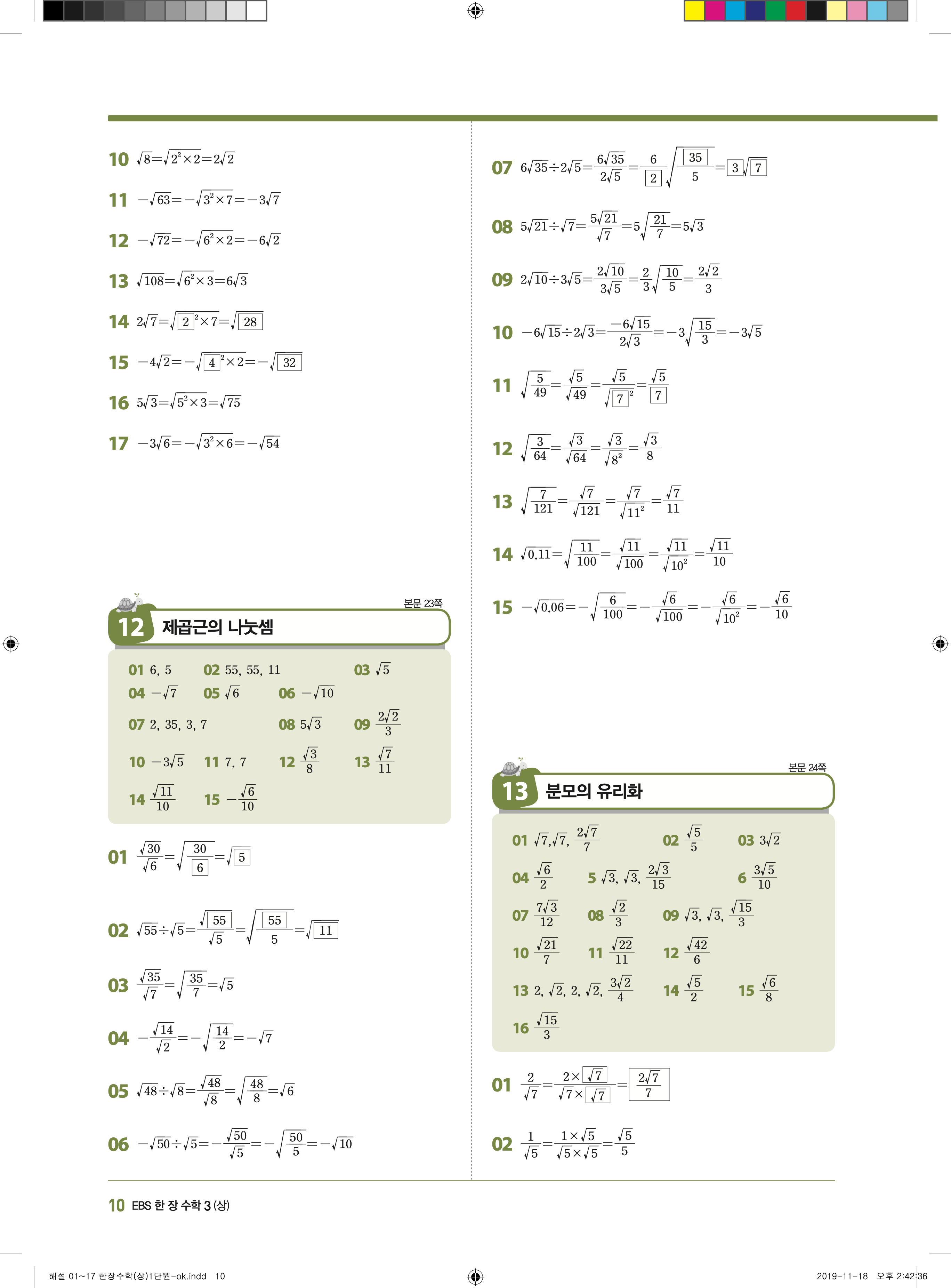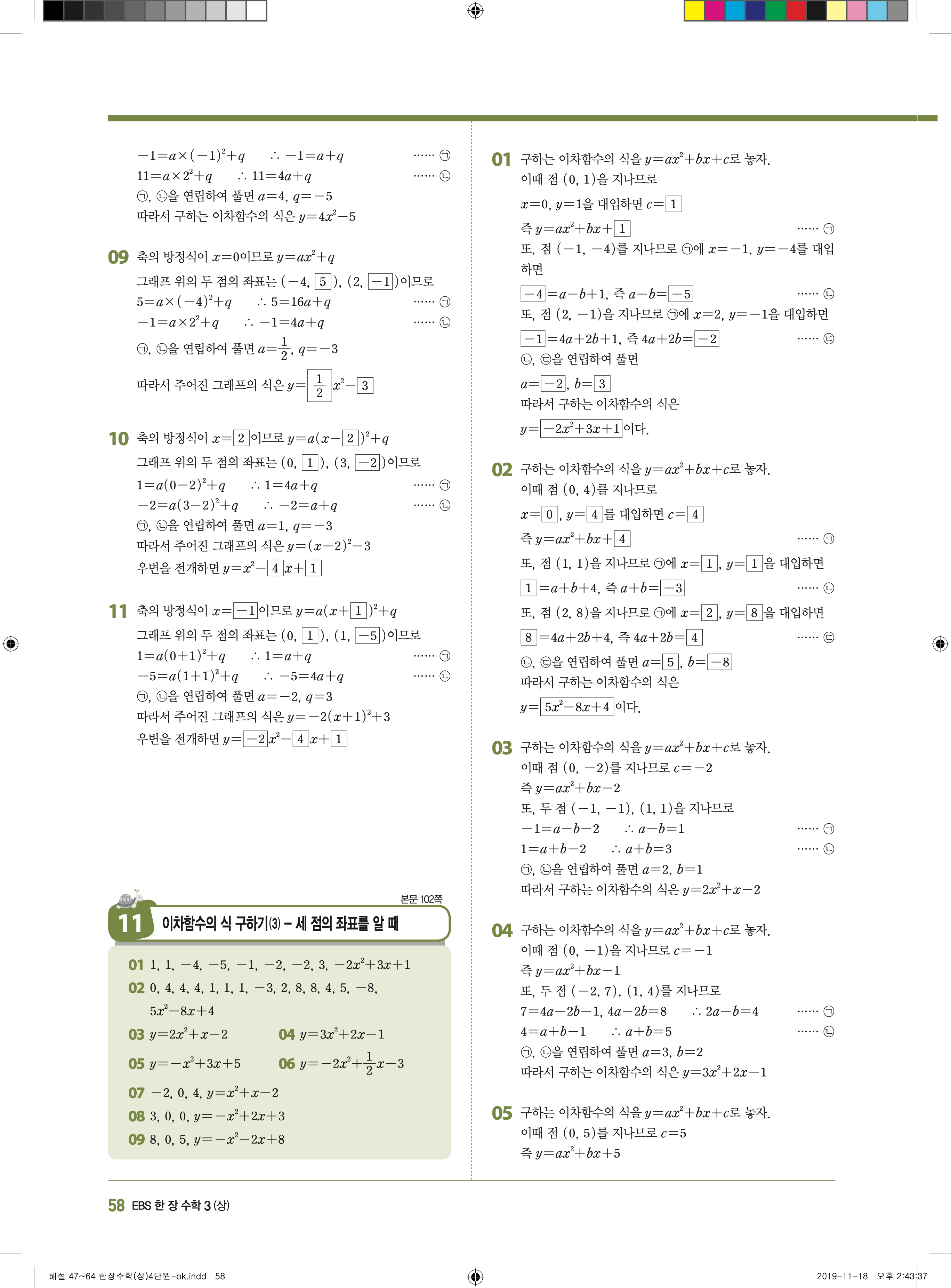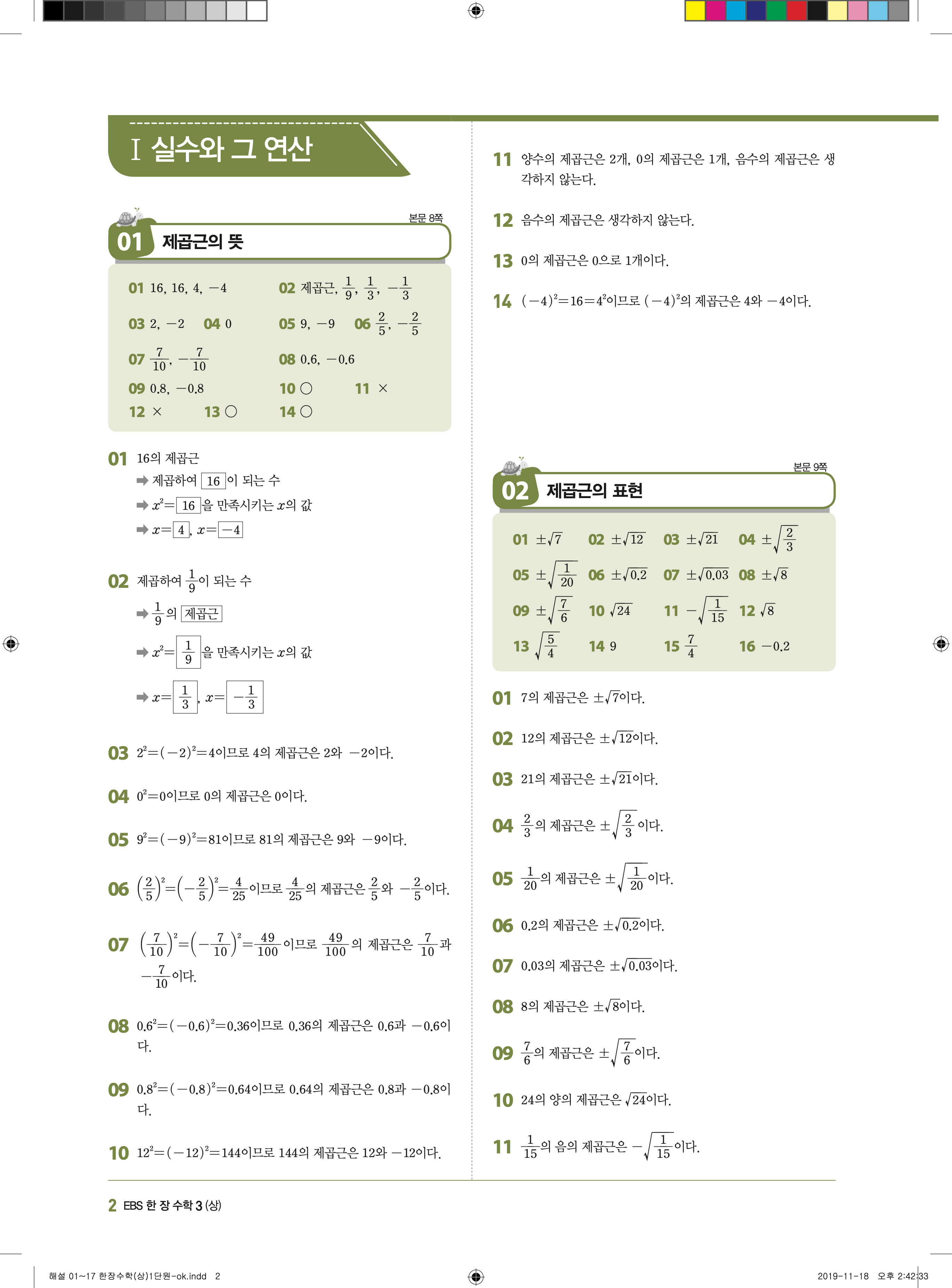 EBS 한장수학 중3상 3-1 답지 해설 바로보는 사진답지 빠른답지 모바일최적화