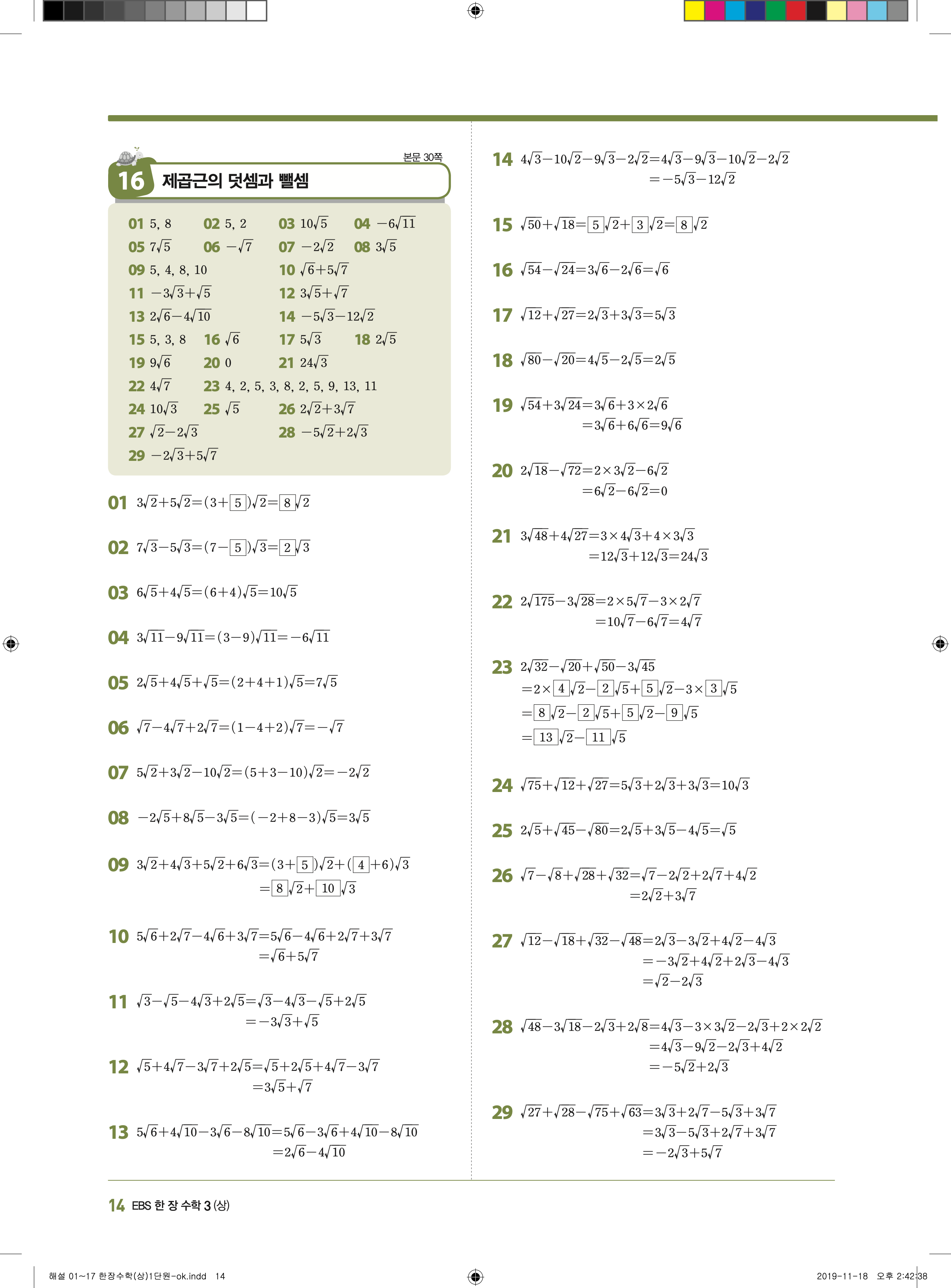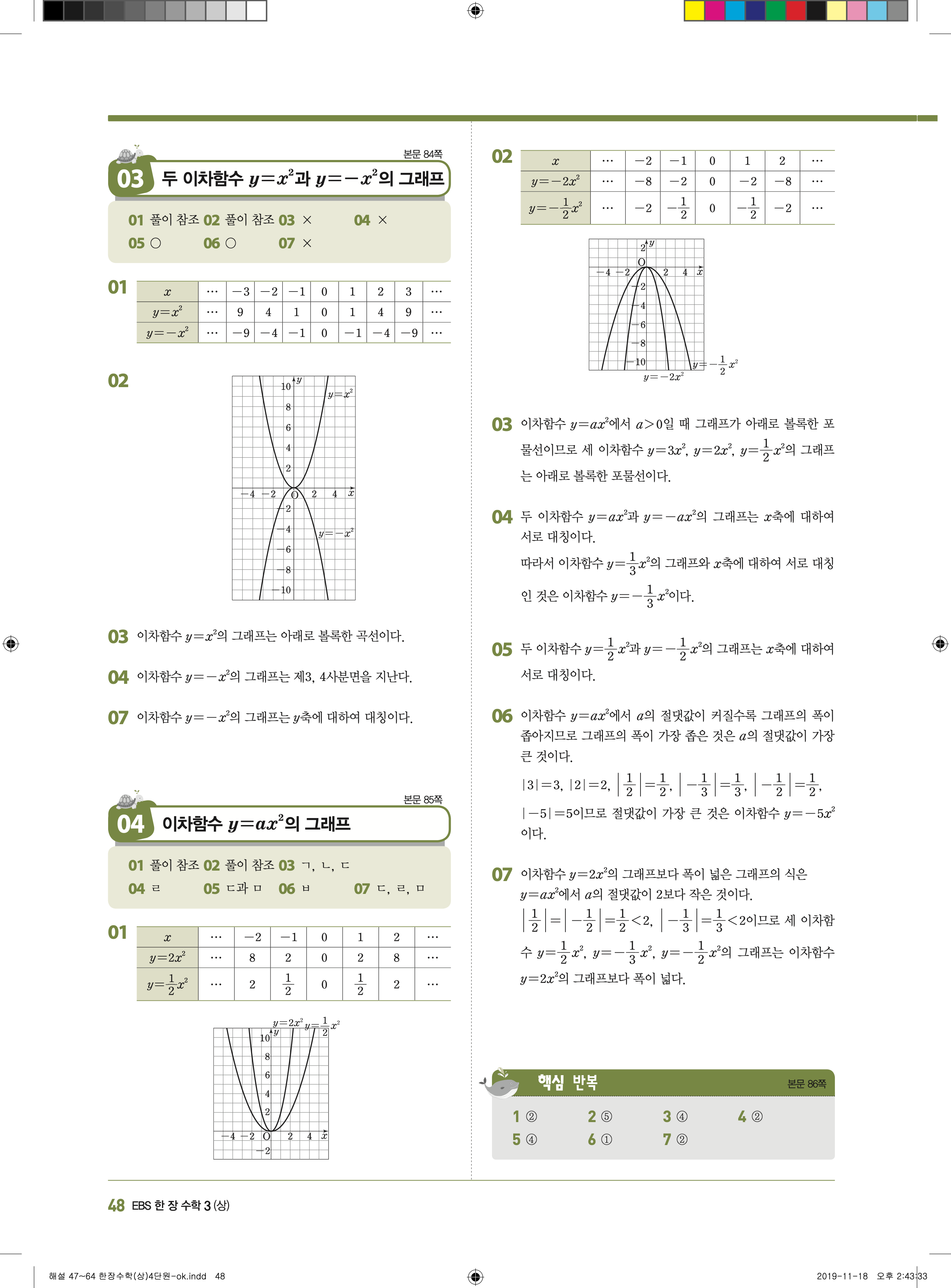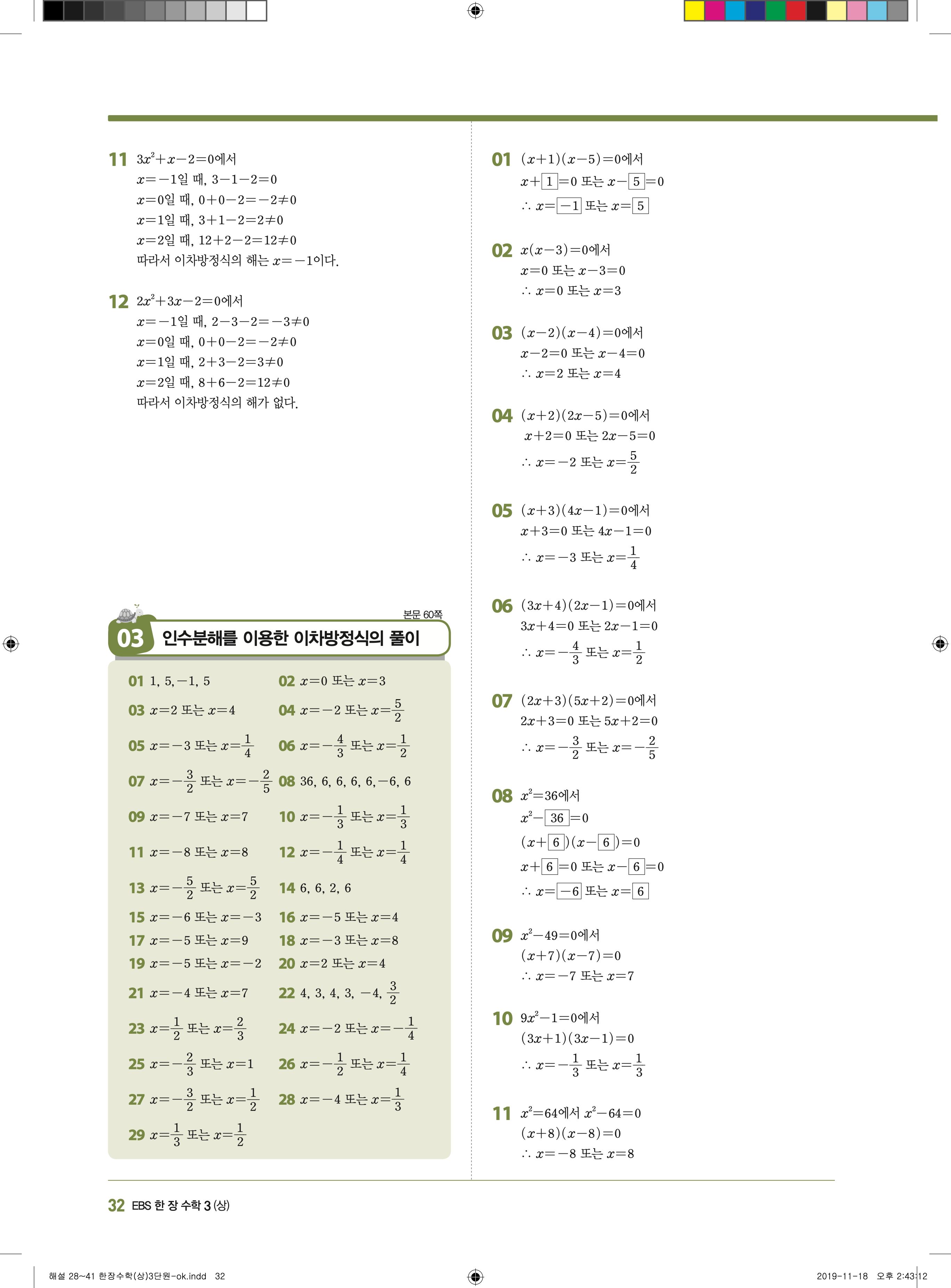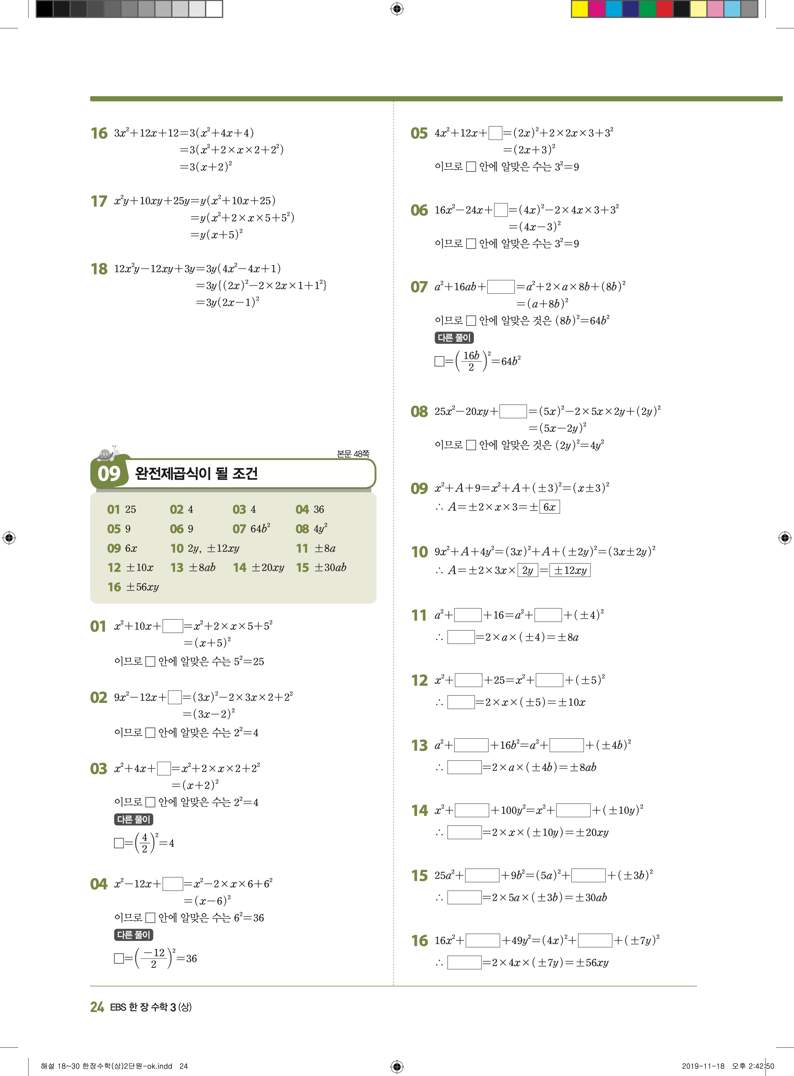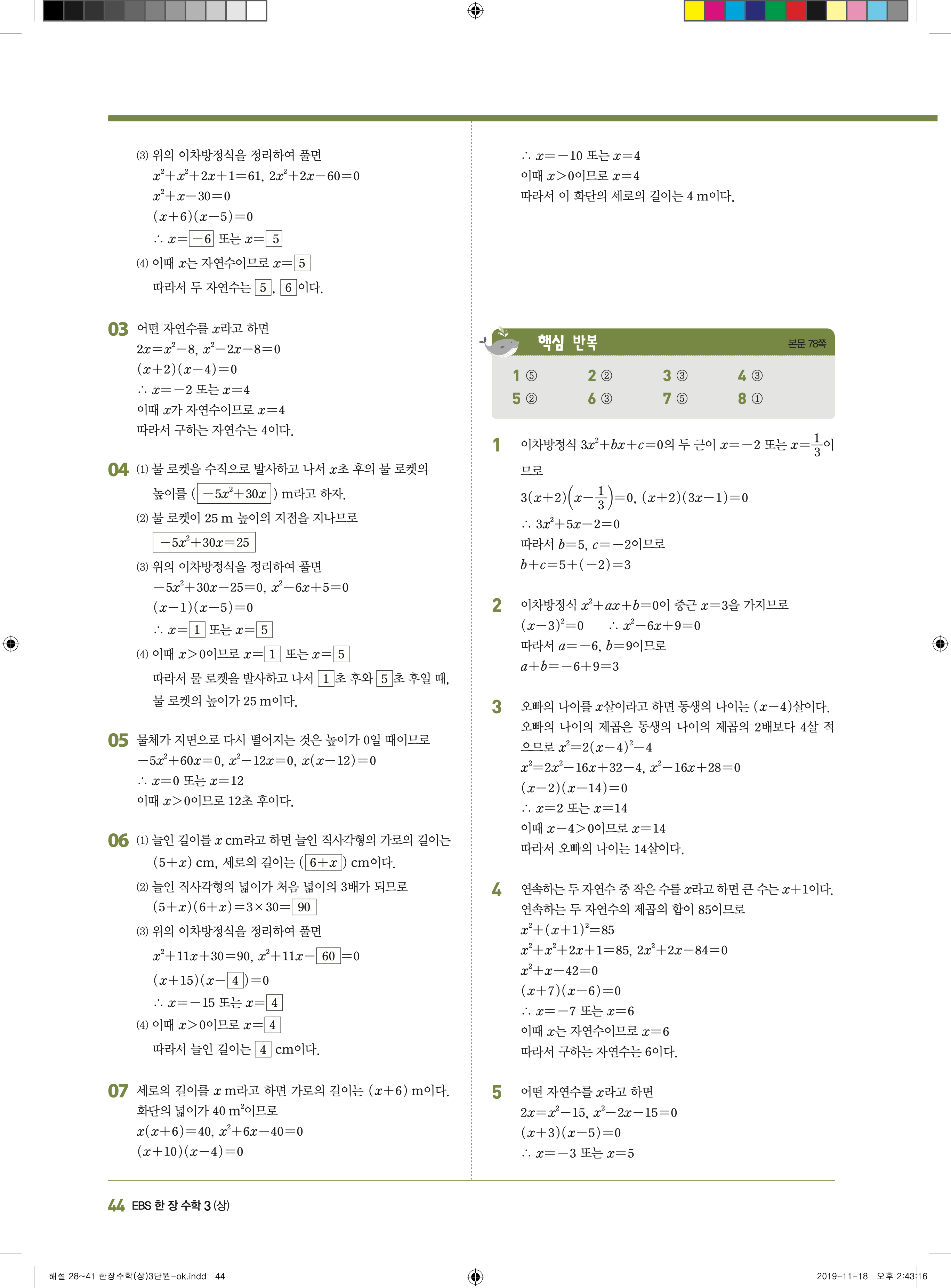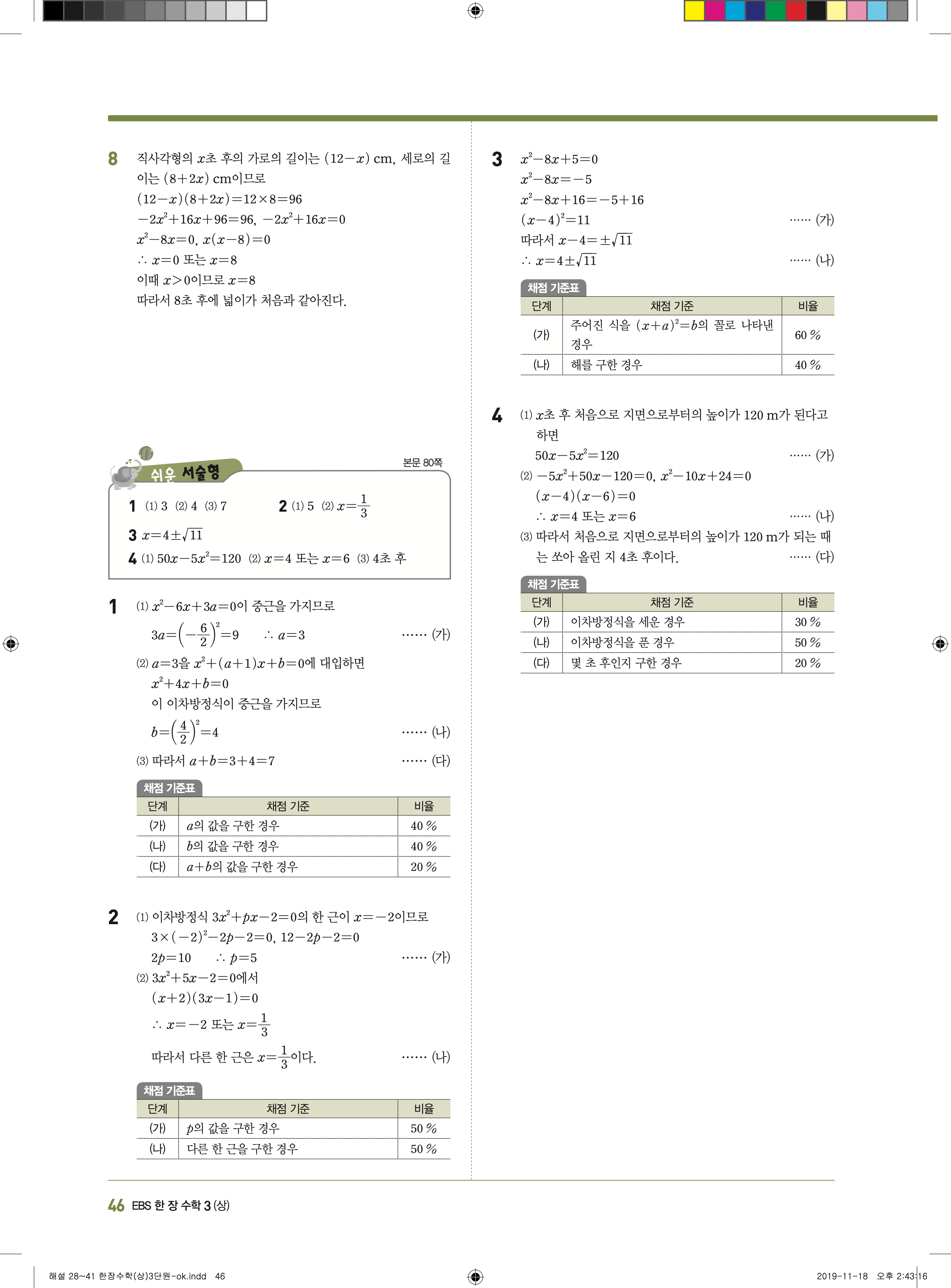 EBS 한장수학 중3상 3-1 답지 해설 바로보는 사진답지 빠른답지 모바일최적화