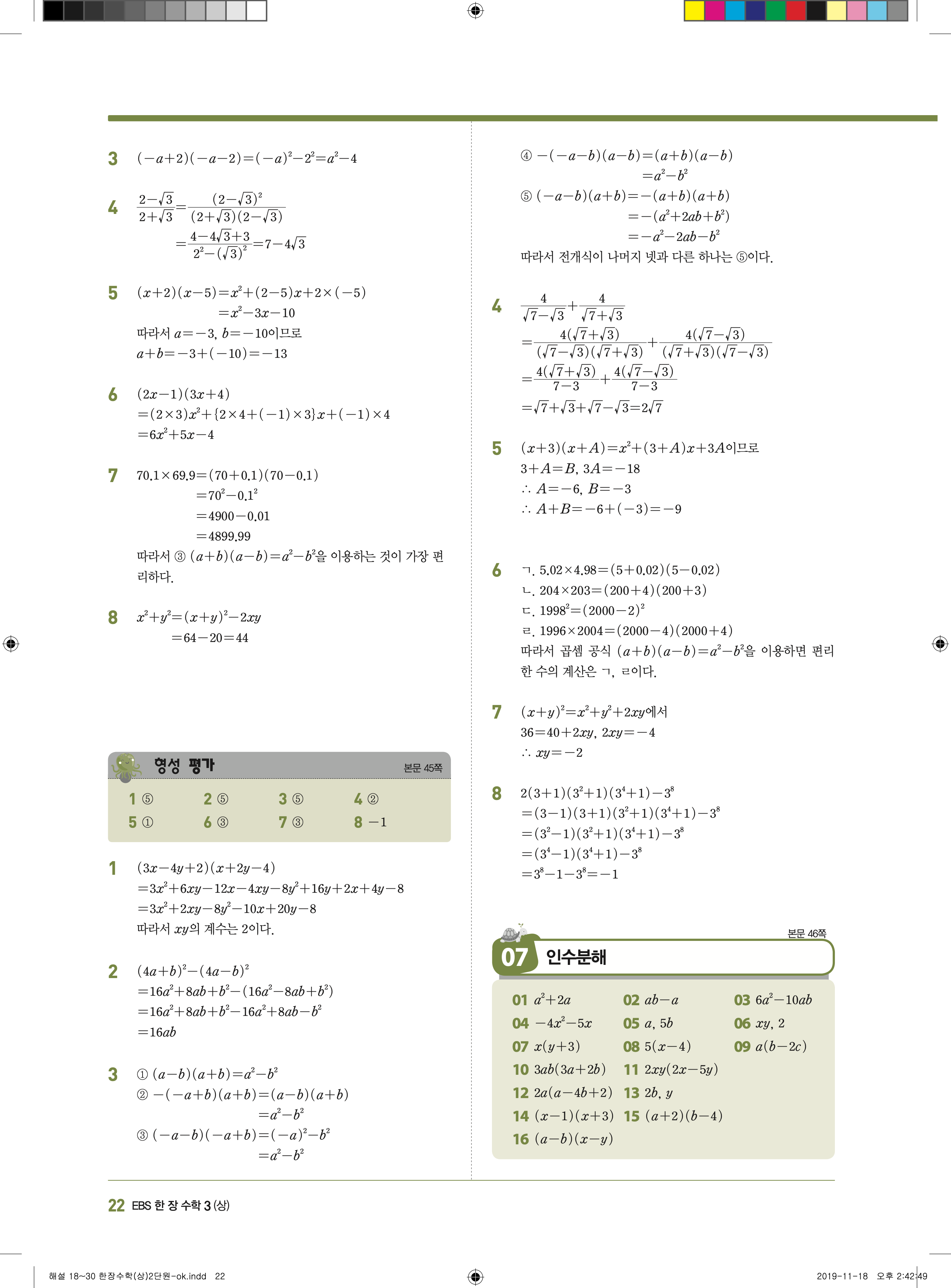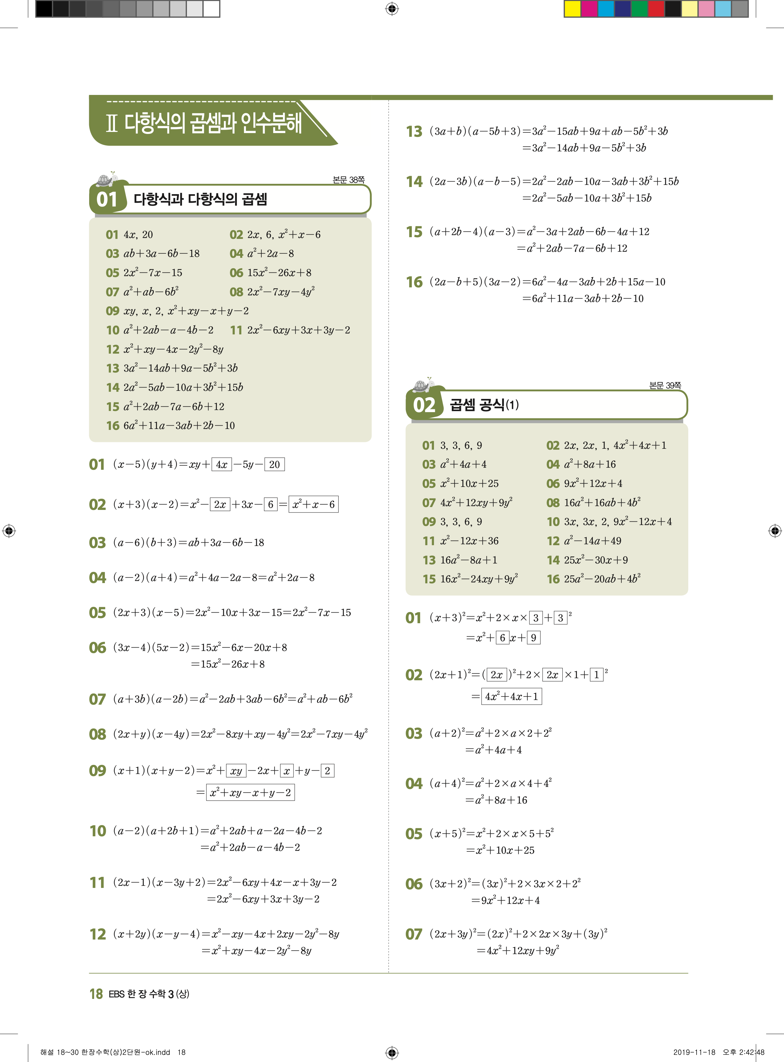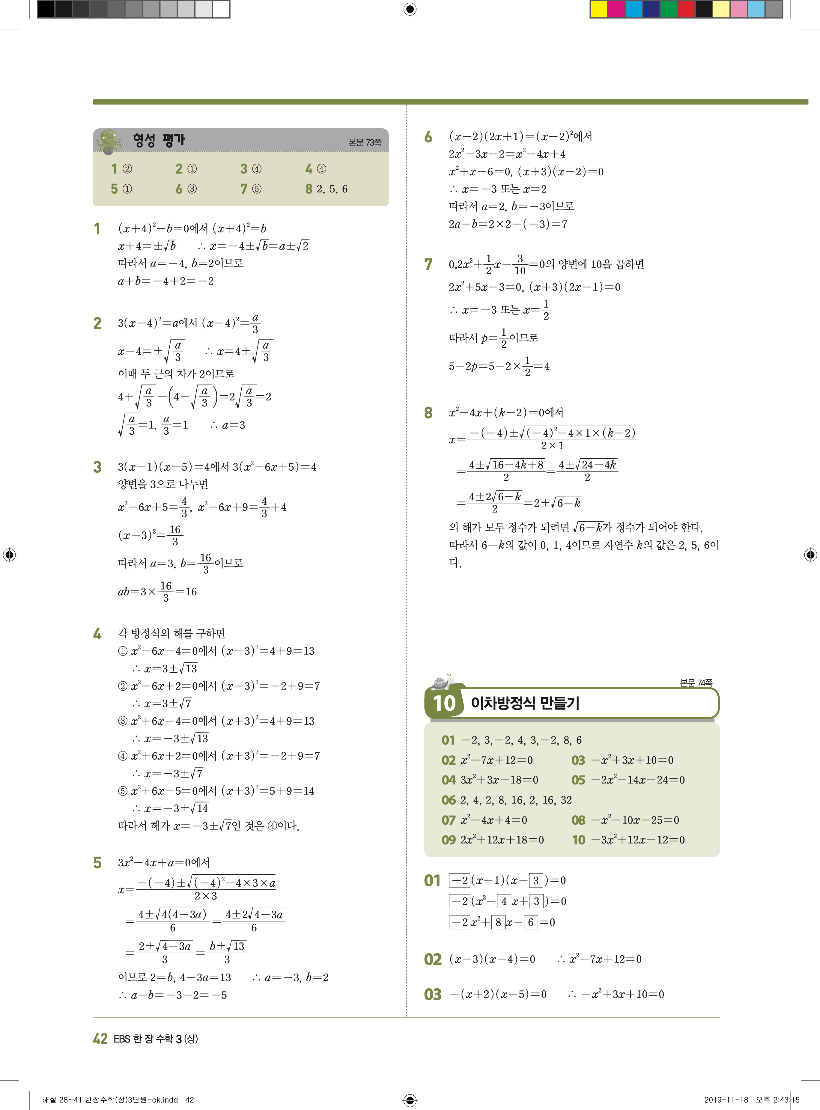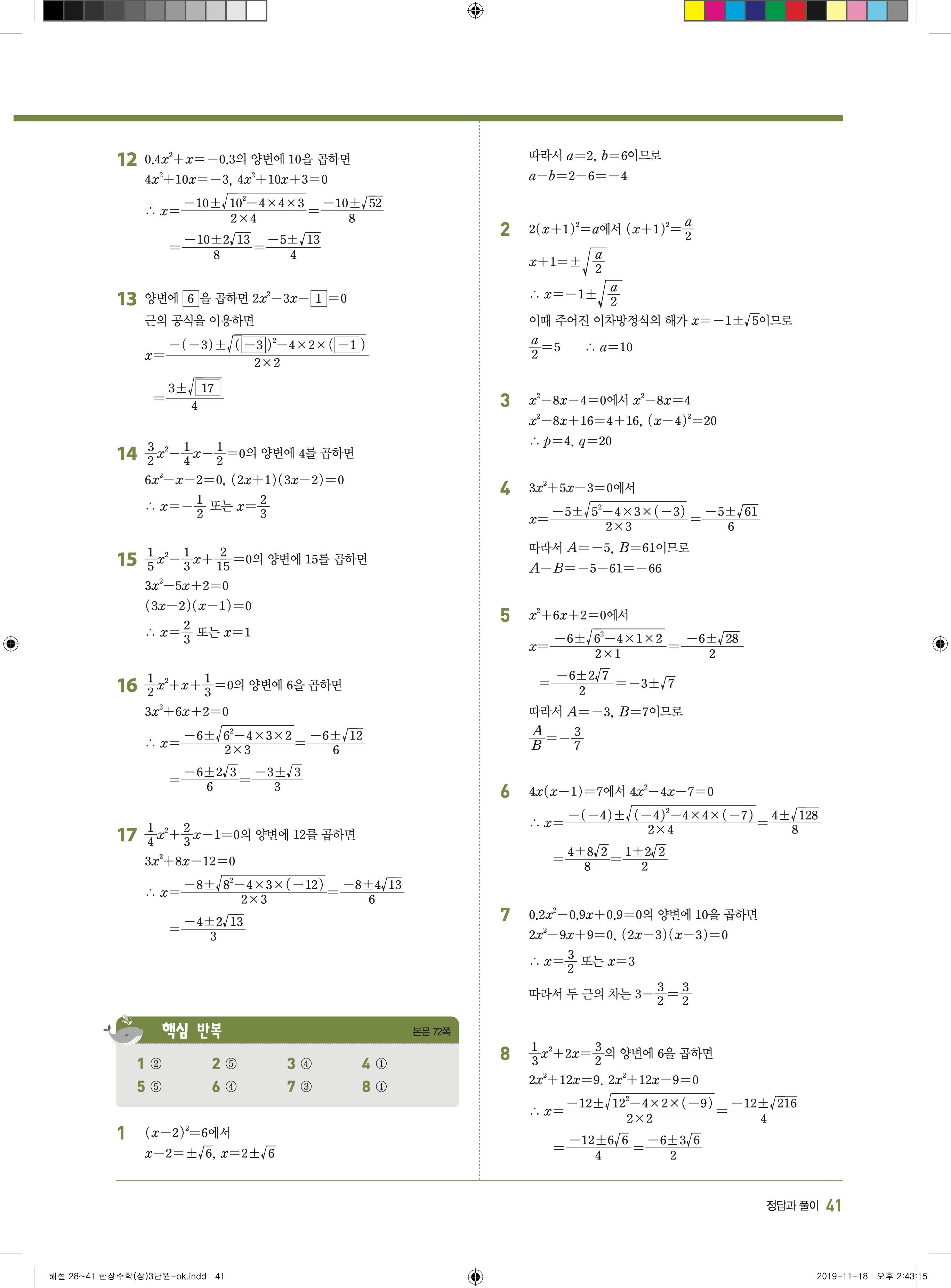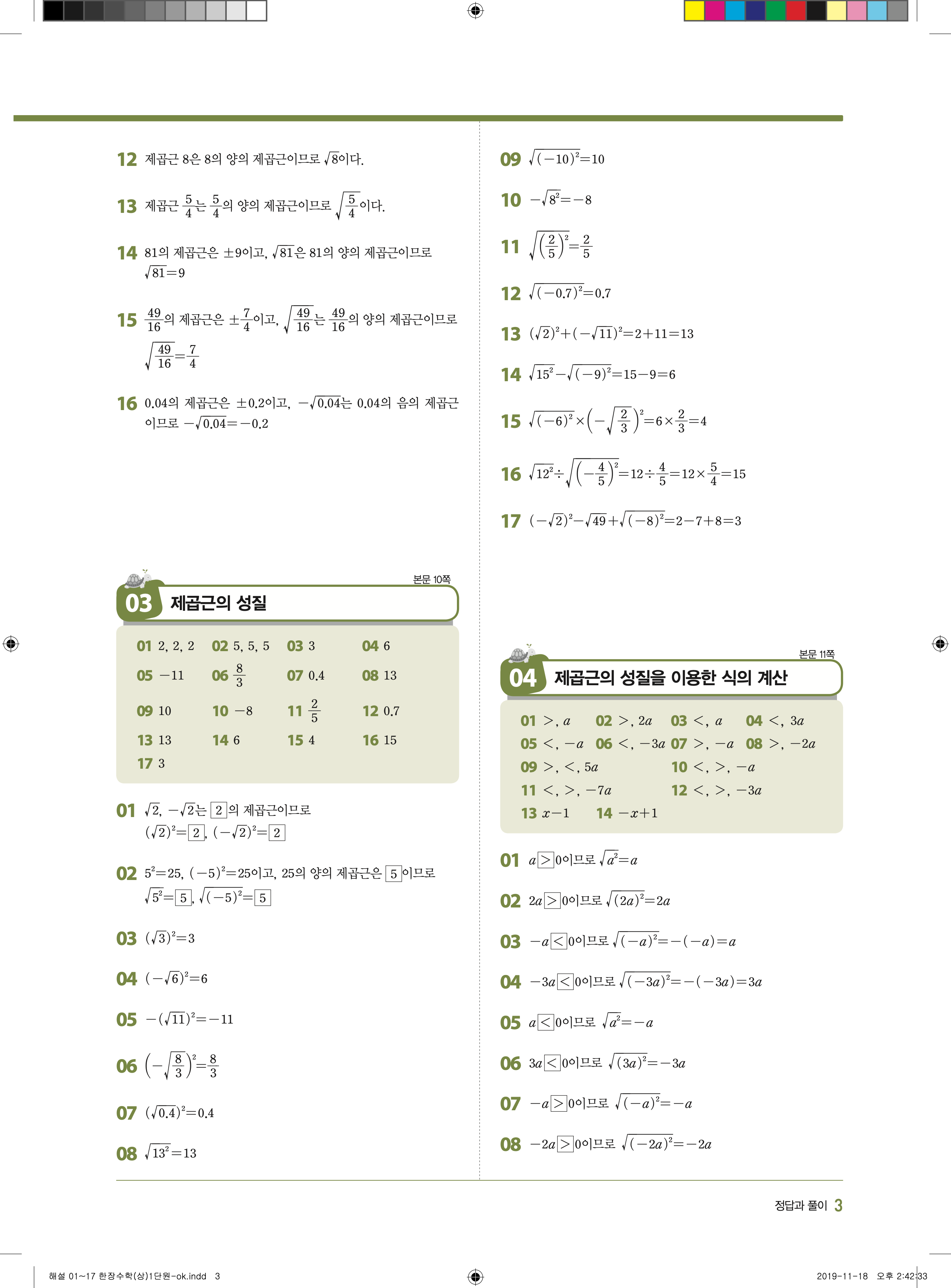 EBS 한장수학 중3상 3-1 답지 해설 바로보는 사진답지 빠른답지 모바일최적화