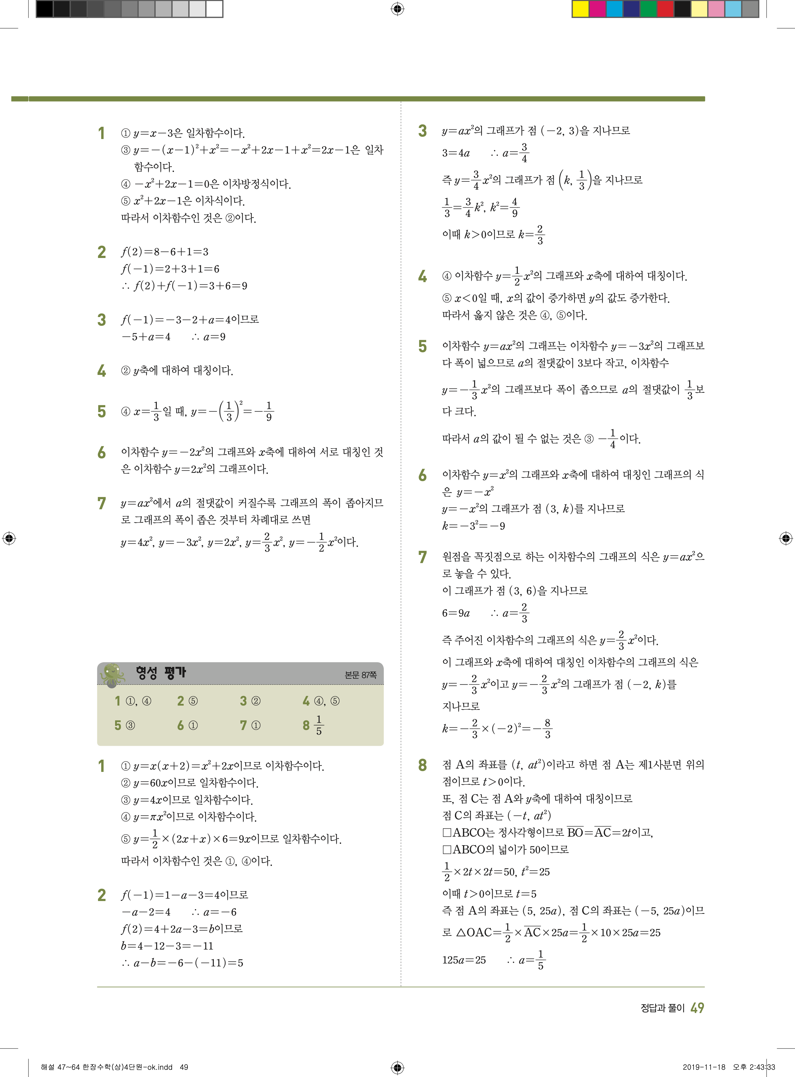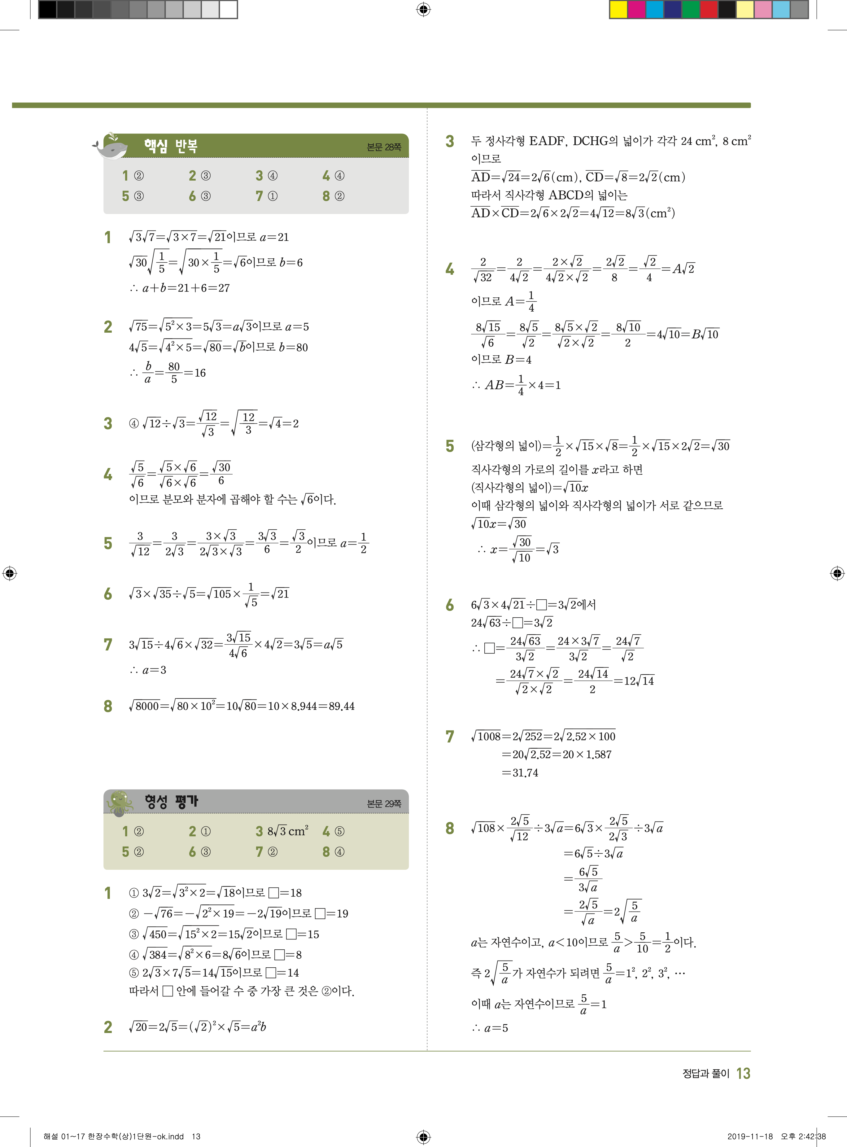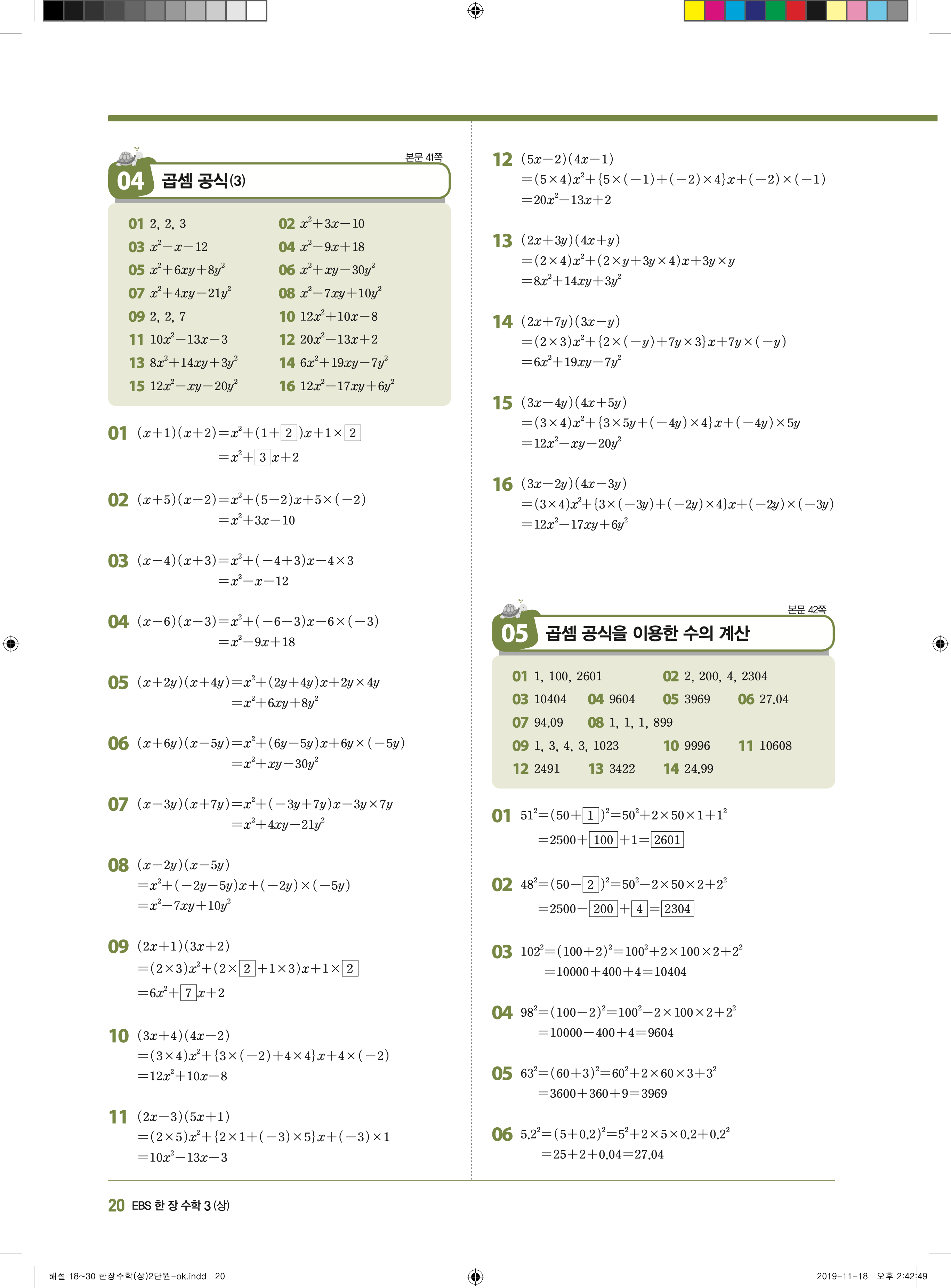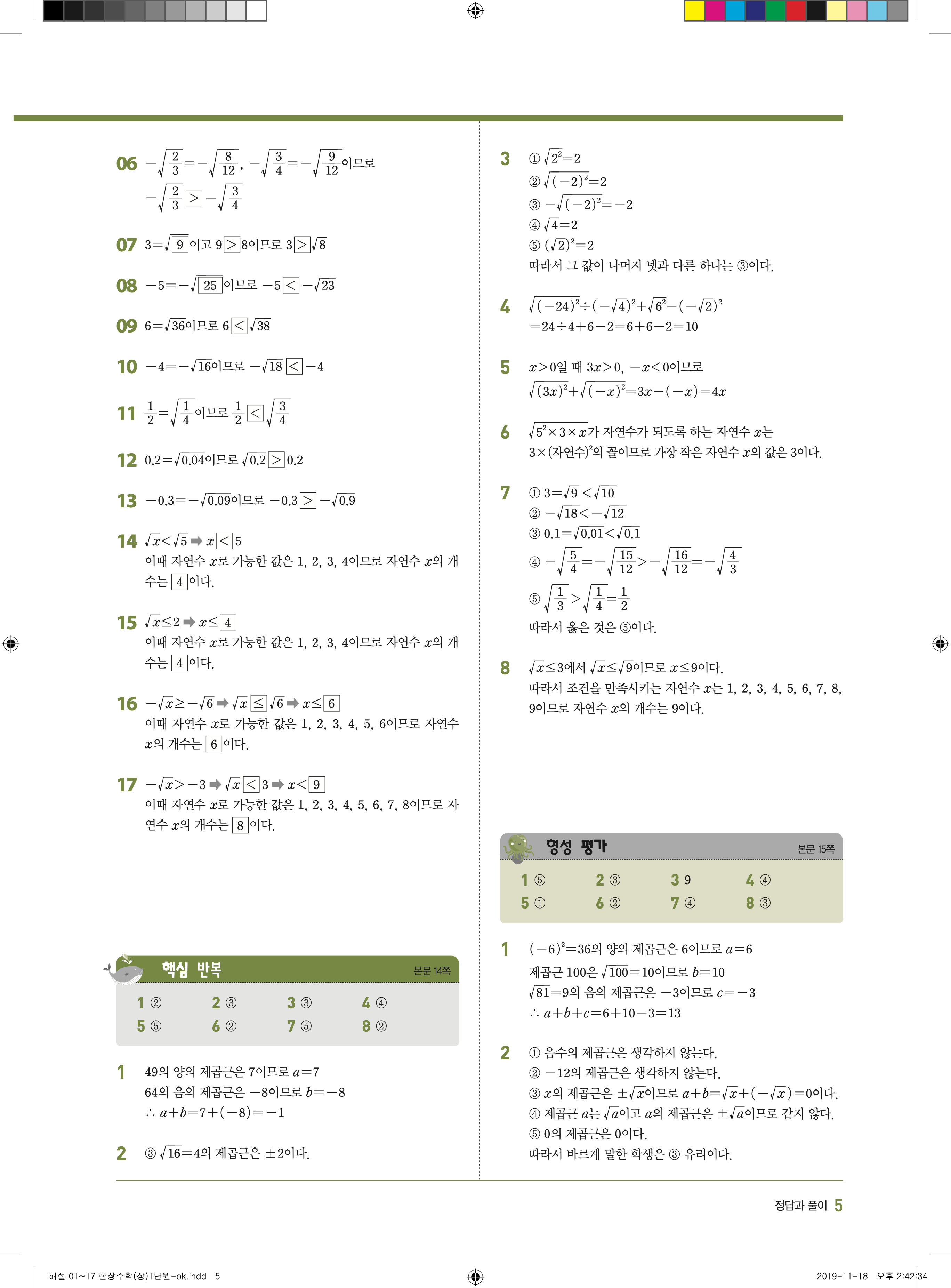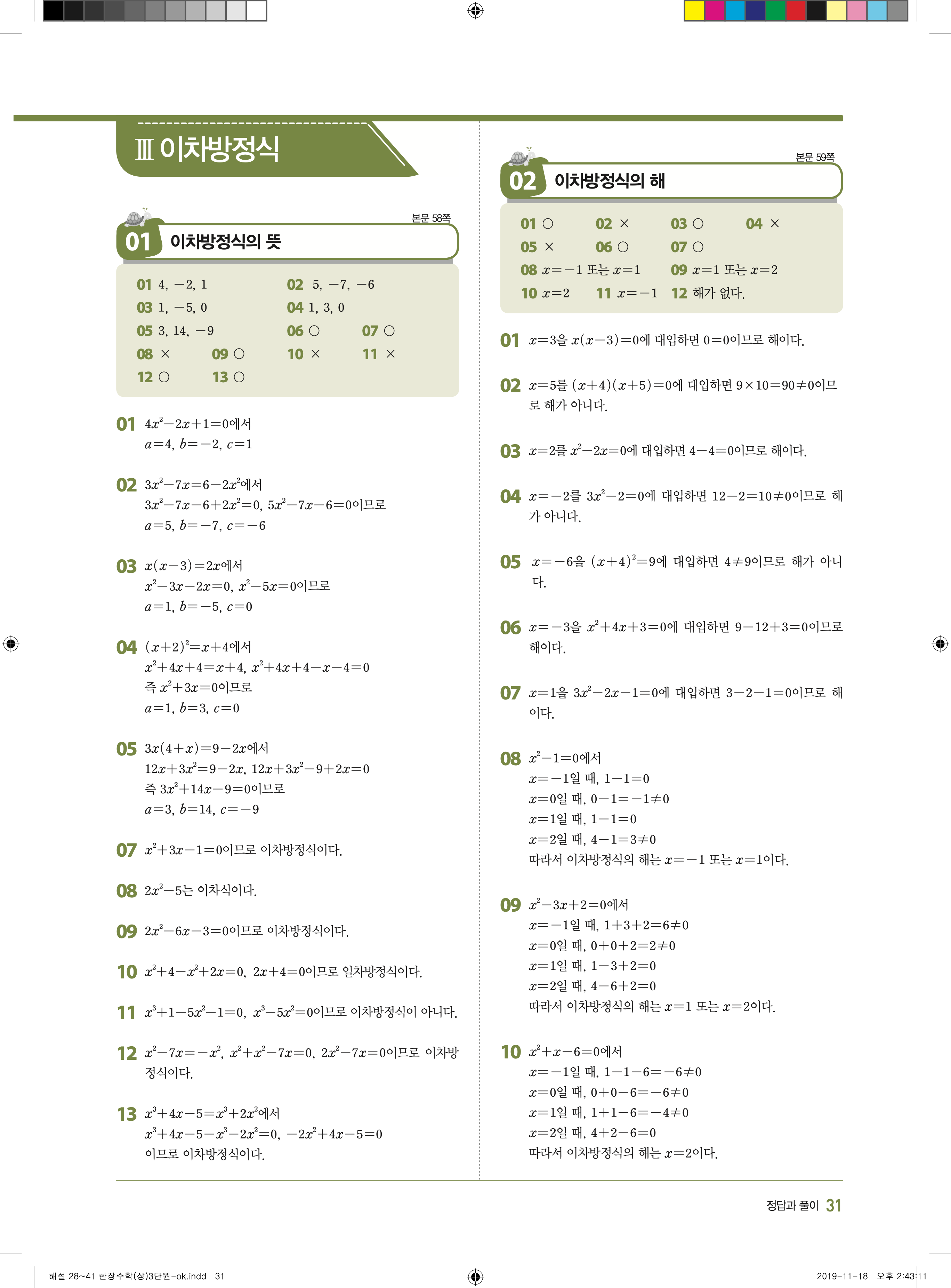 EBS 한장수학 중3상 3-1 답지 해설 바로보는 사진답지 빠른답지 모바일최적화