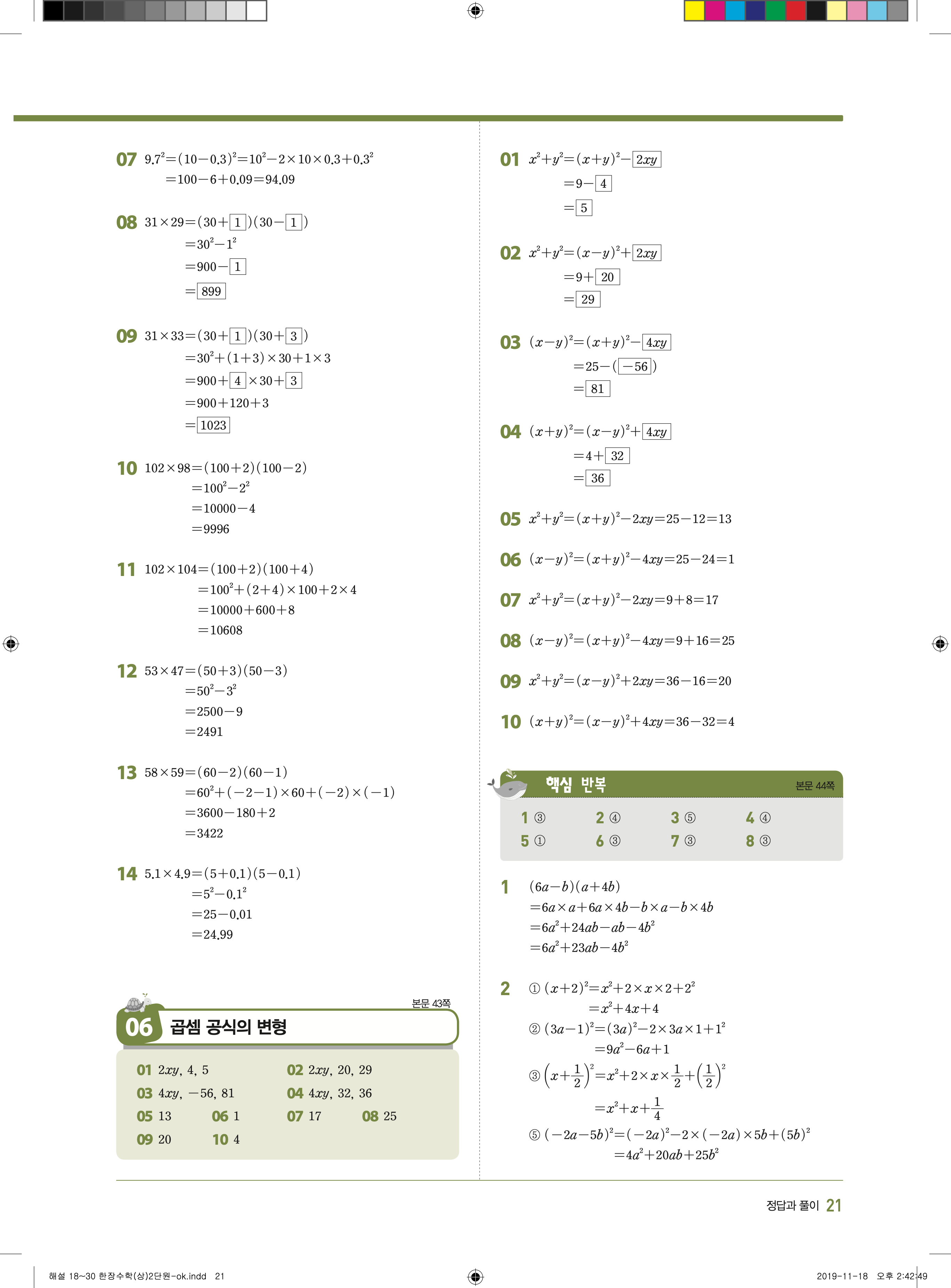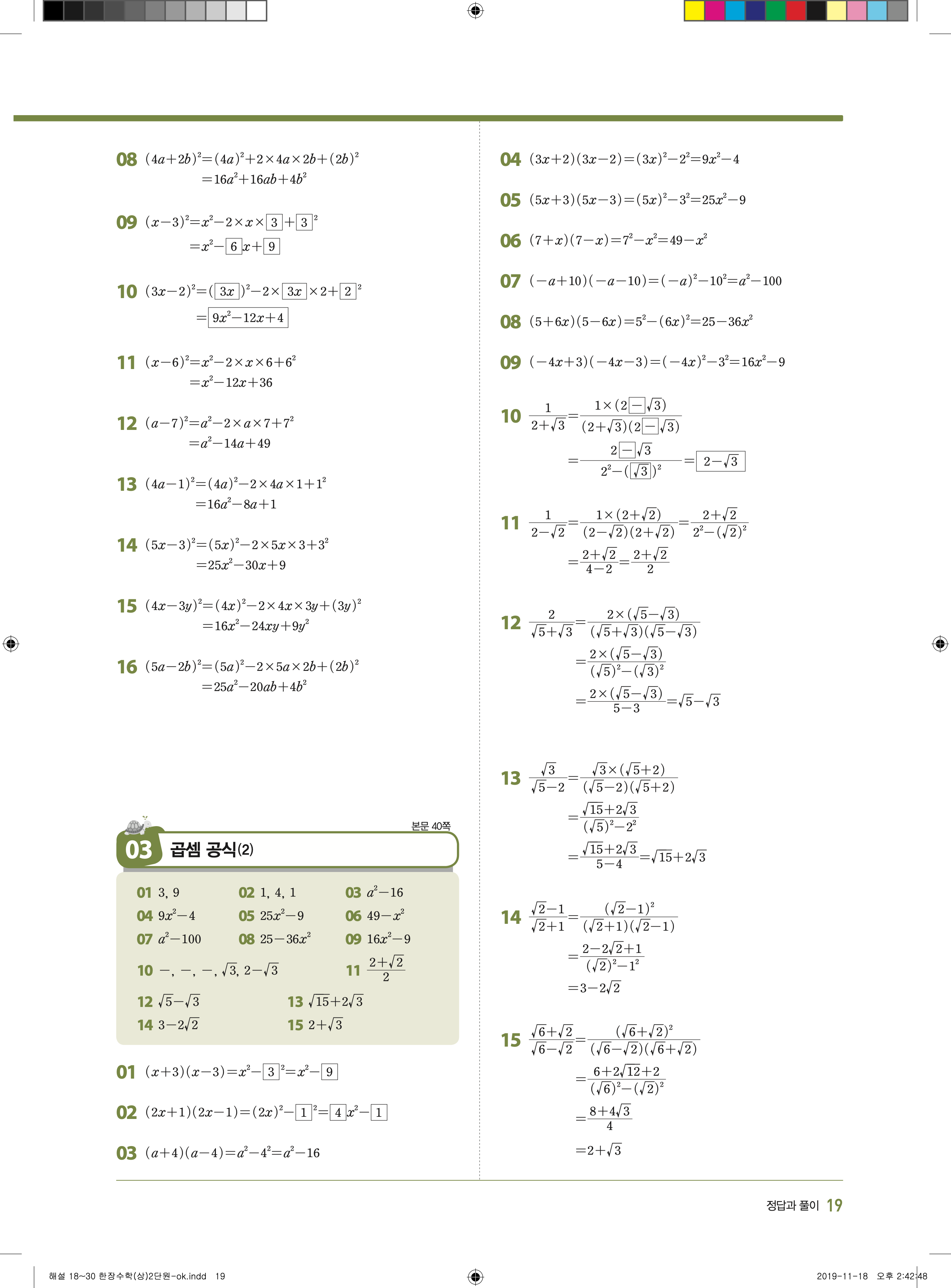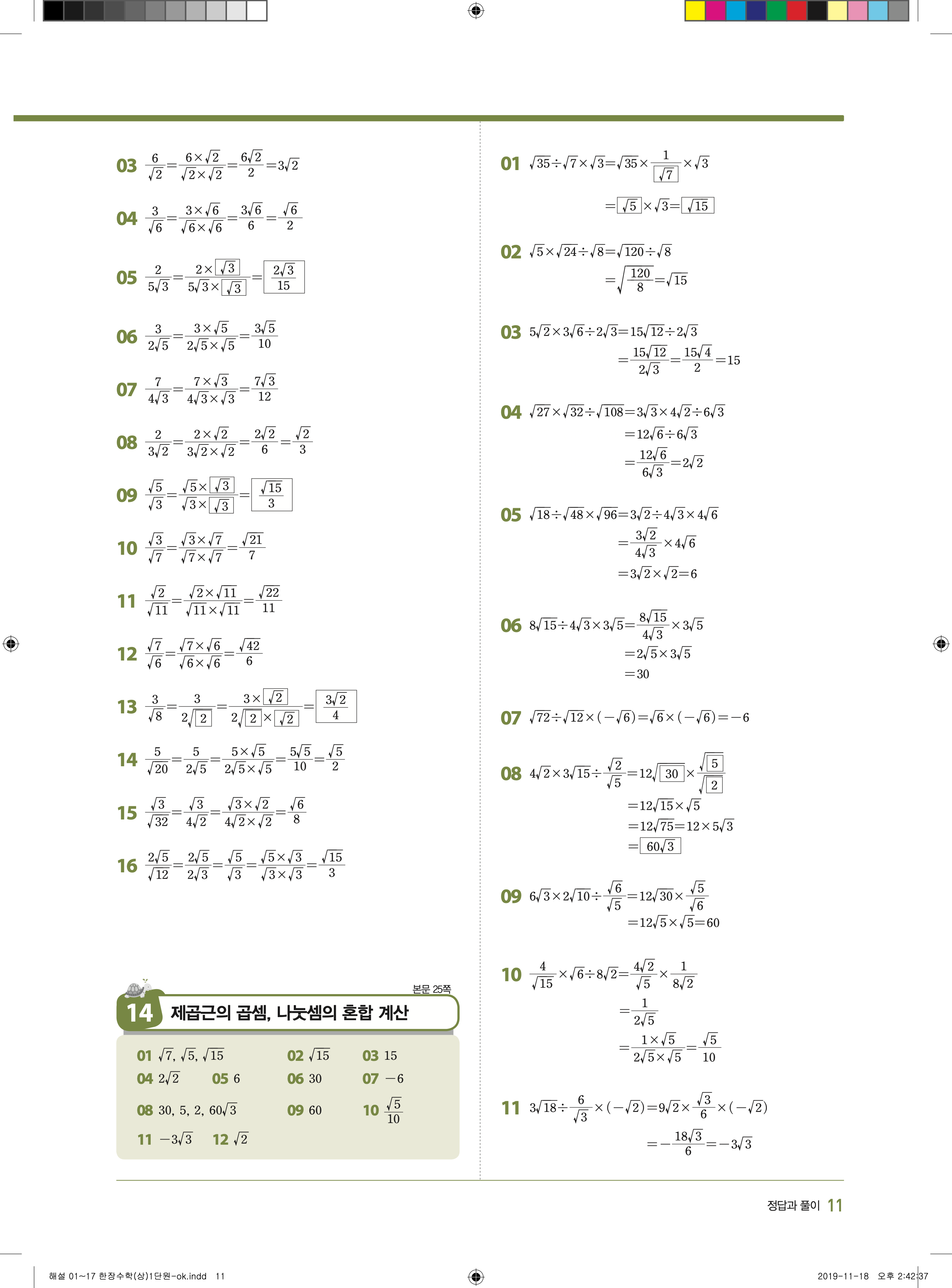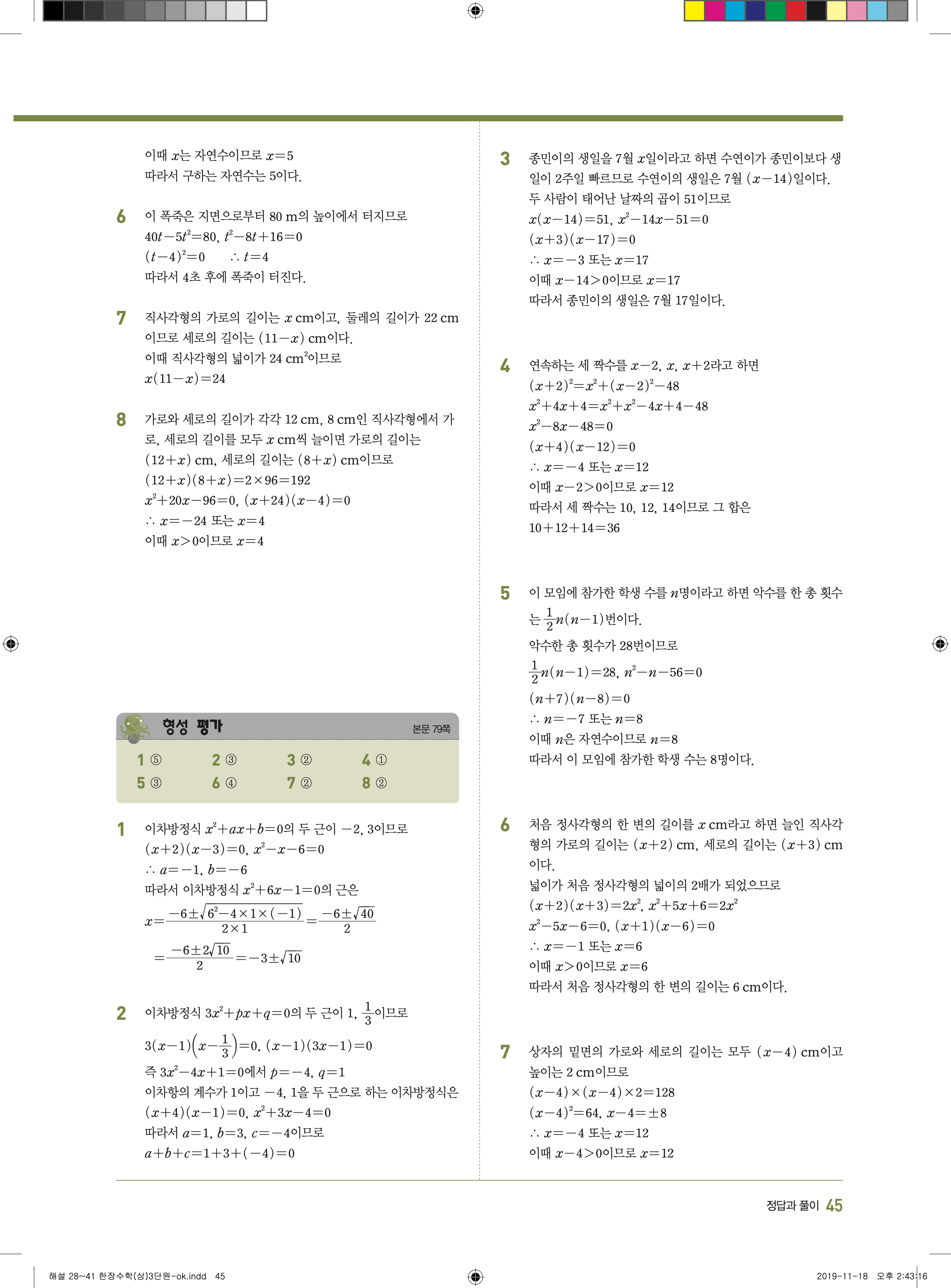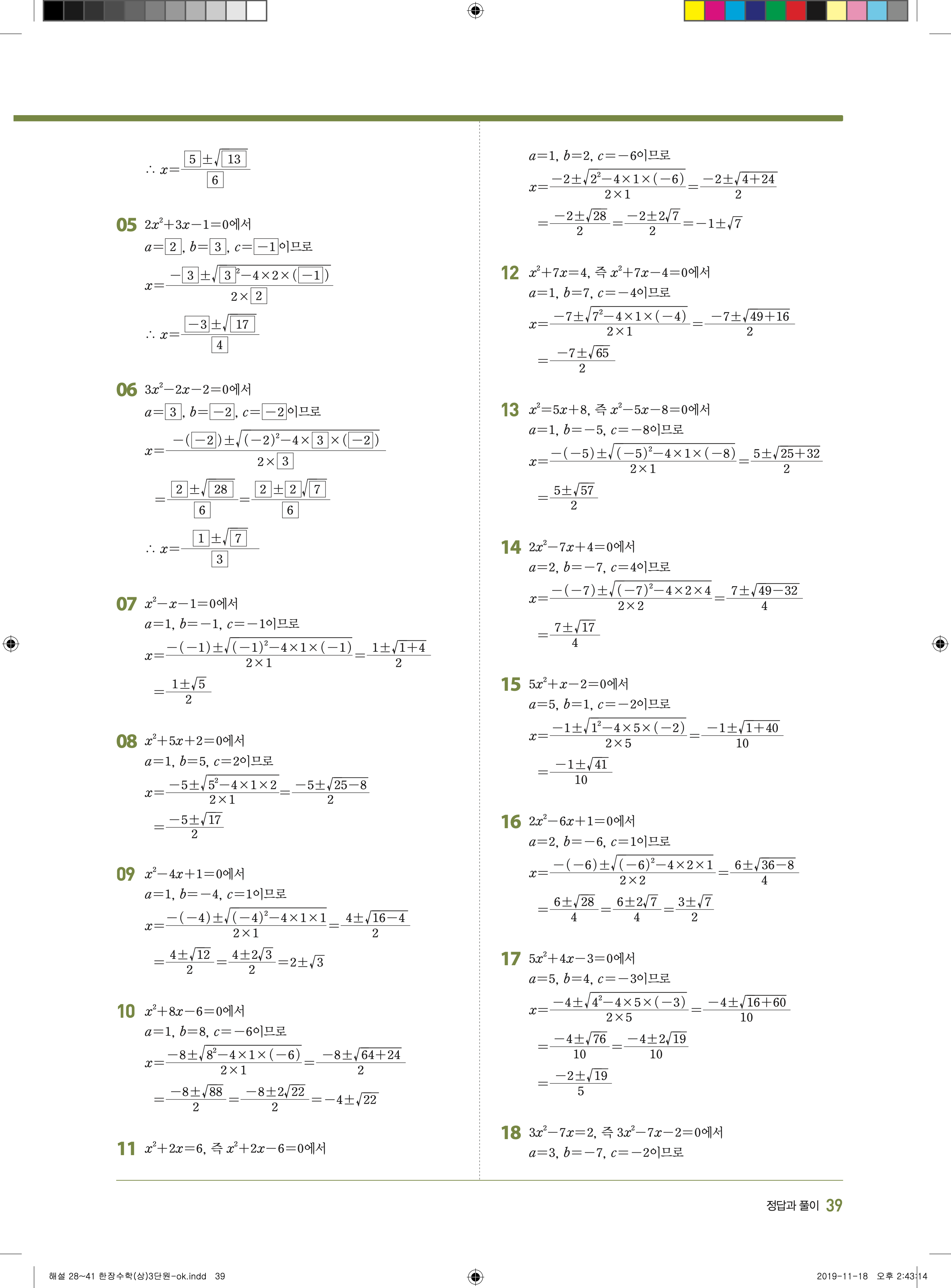 EBS 한장수학 중3상 3-1 답지 해설 바로보는 사진답지 빠른답지 모바일최적화