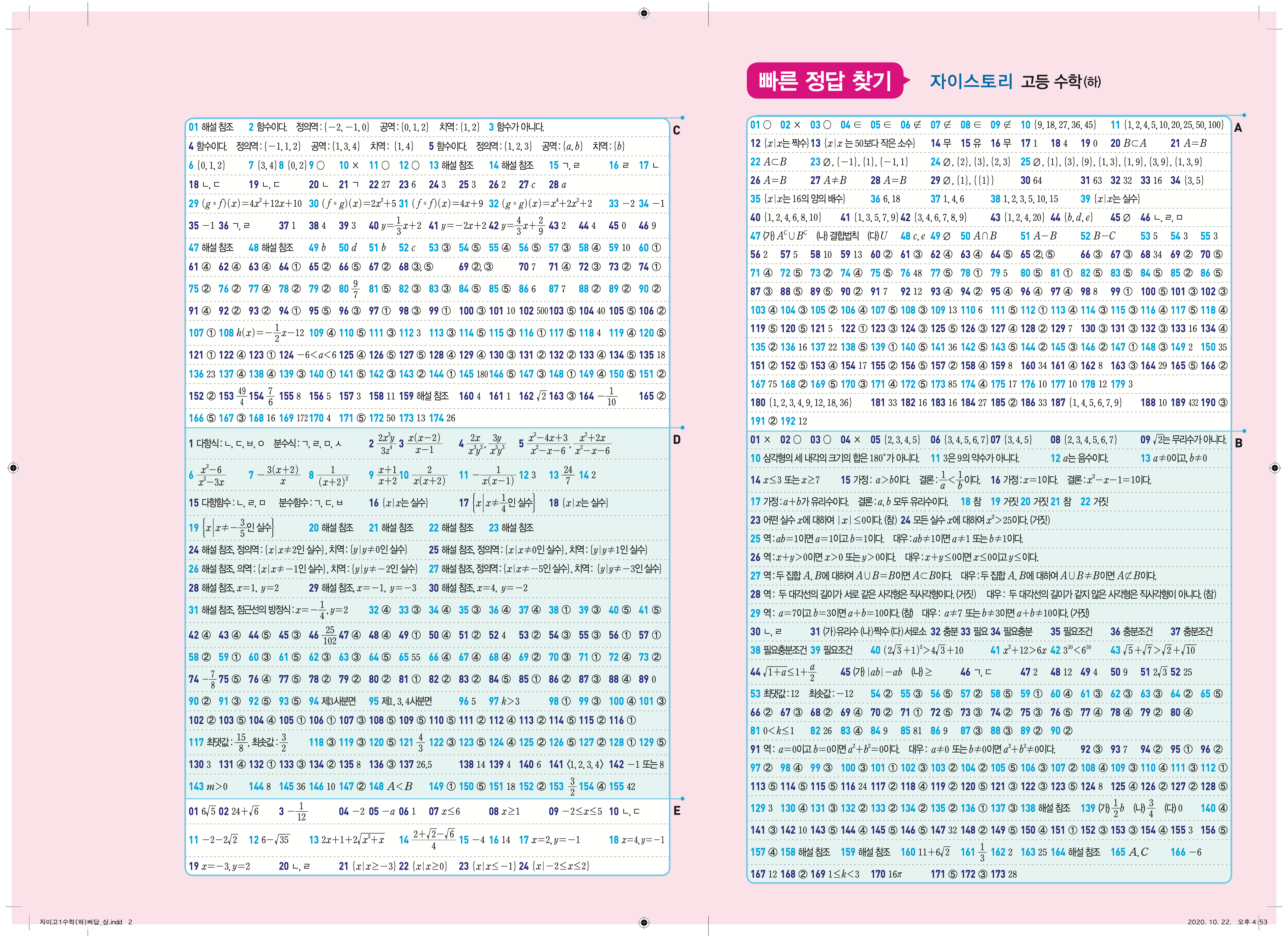 2021 자이스토리 고등수학하 답지 해설 바로보는 사진답지 빠른답지 모바일최적화
