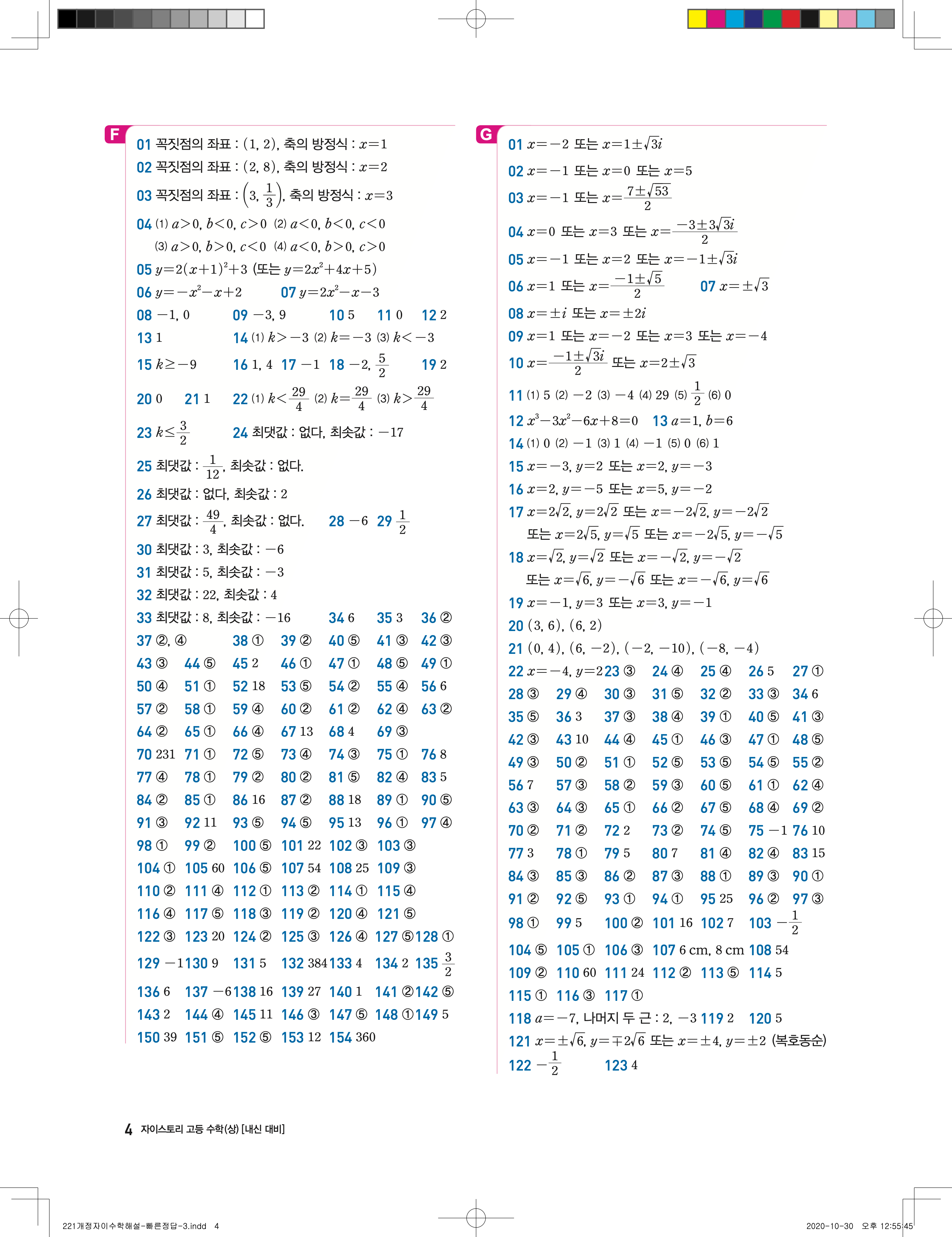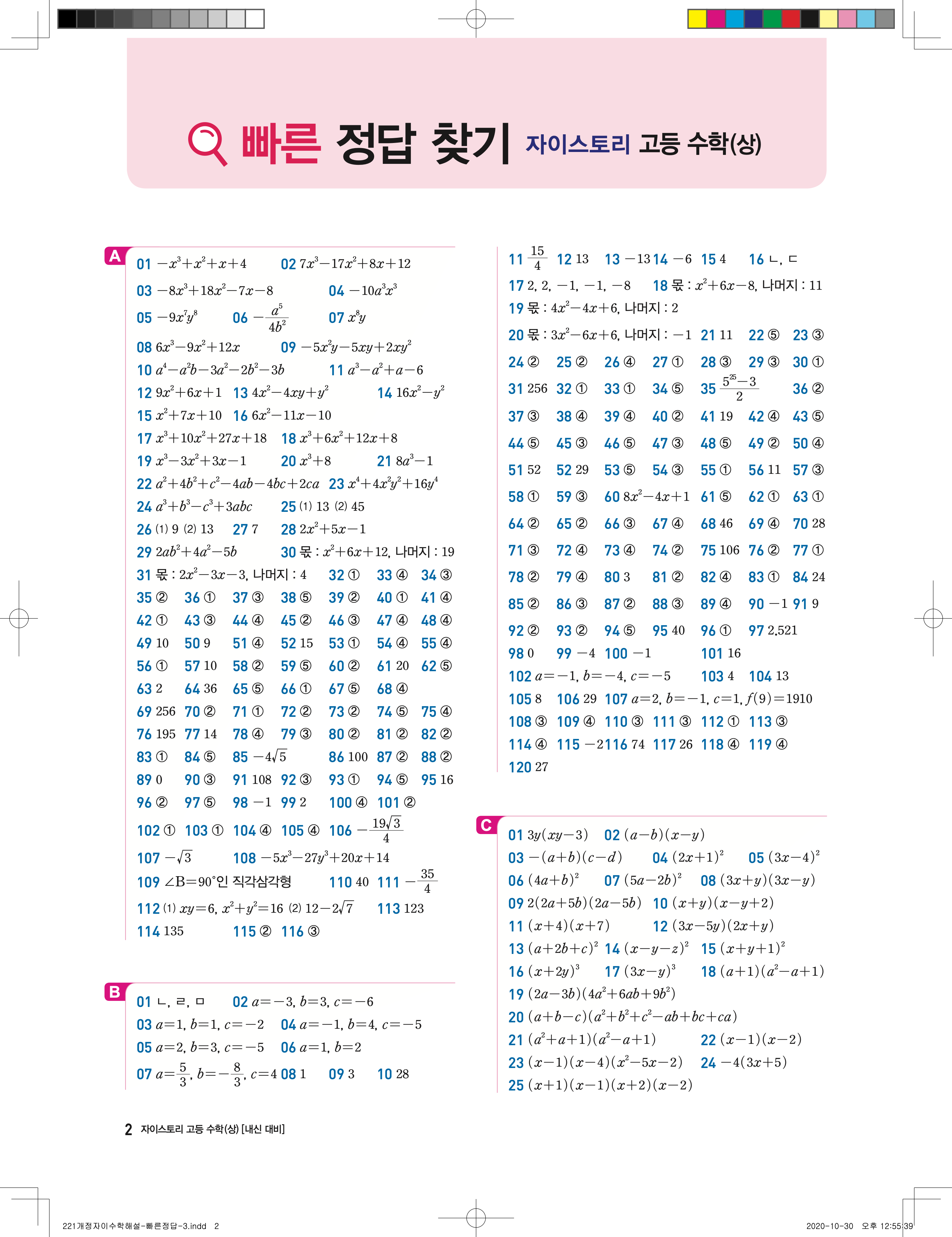 2021 자이스토리 고등수학상 답지 해설 바로보는 사진답지 빠른답지 모바일최적화