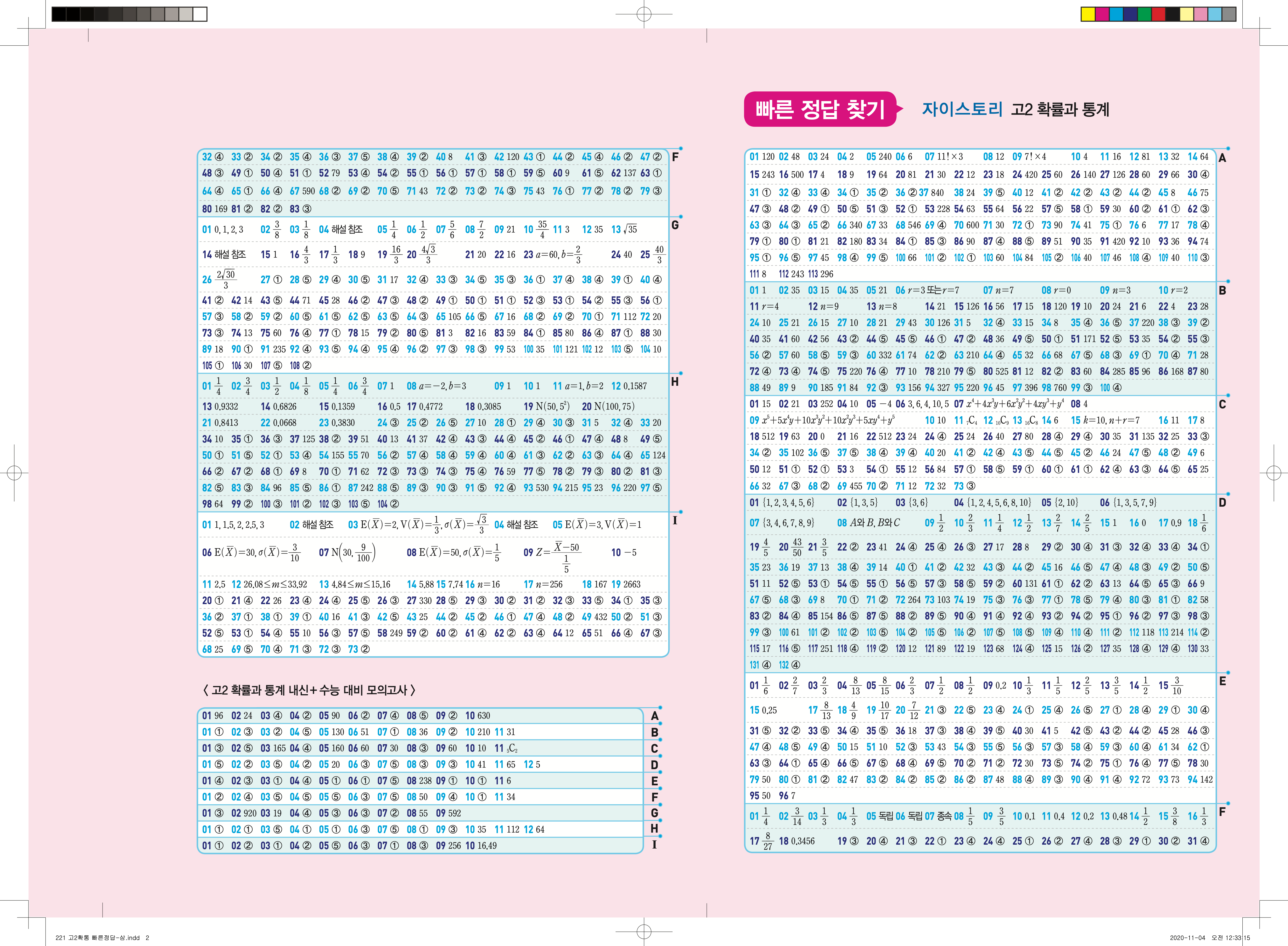 2021 자이스토리 고2 확률과통계 답지 해설 바로보는 사진답지 빠른답지 모바일최적화