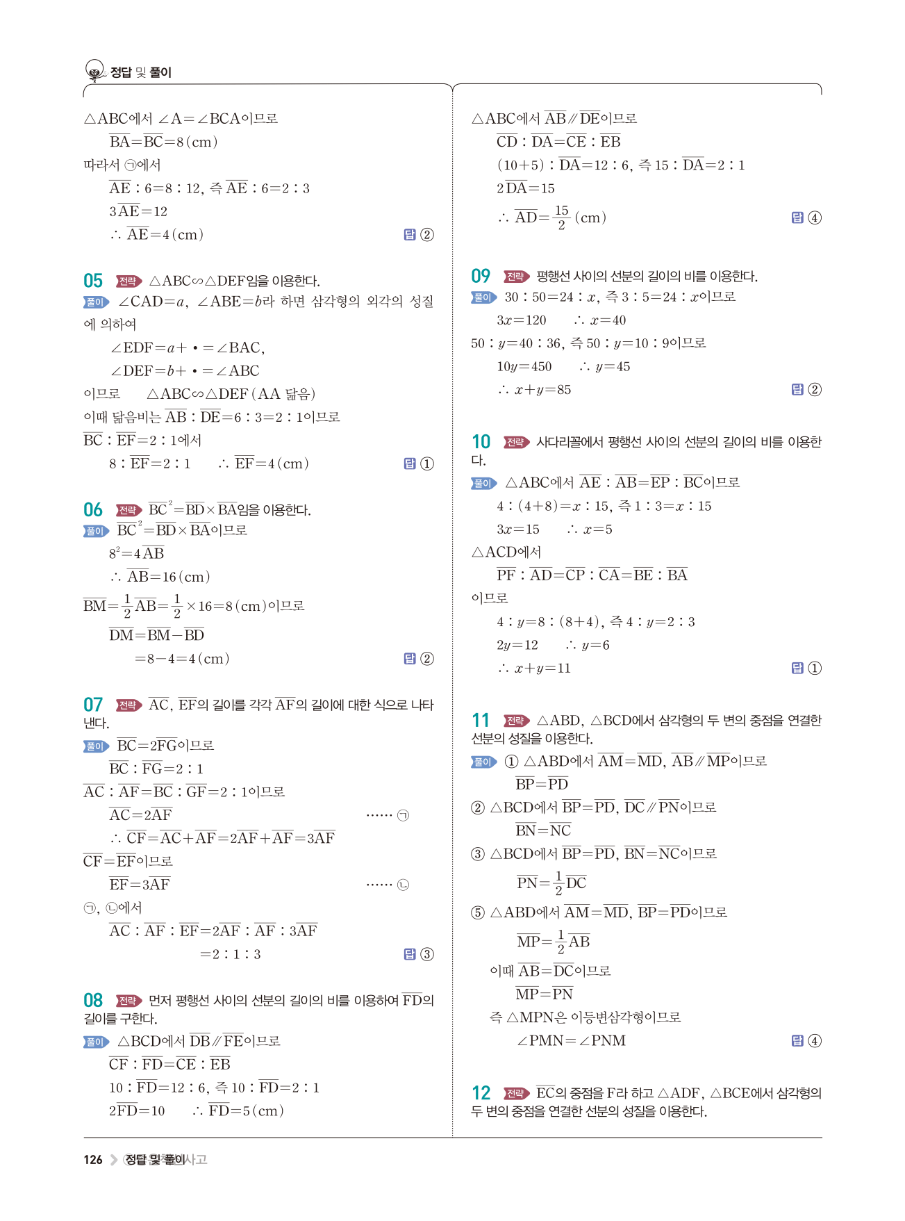 수학교과서 답지