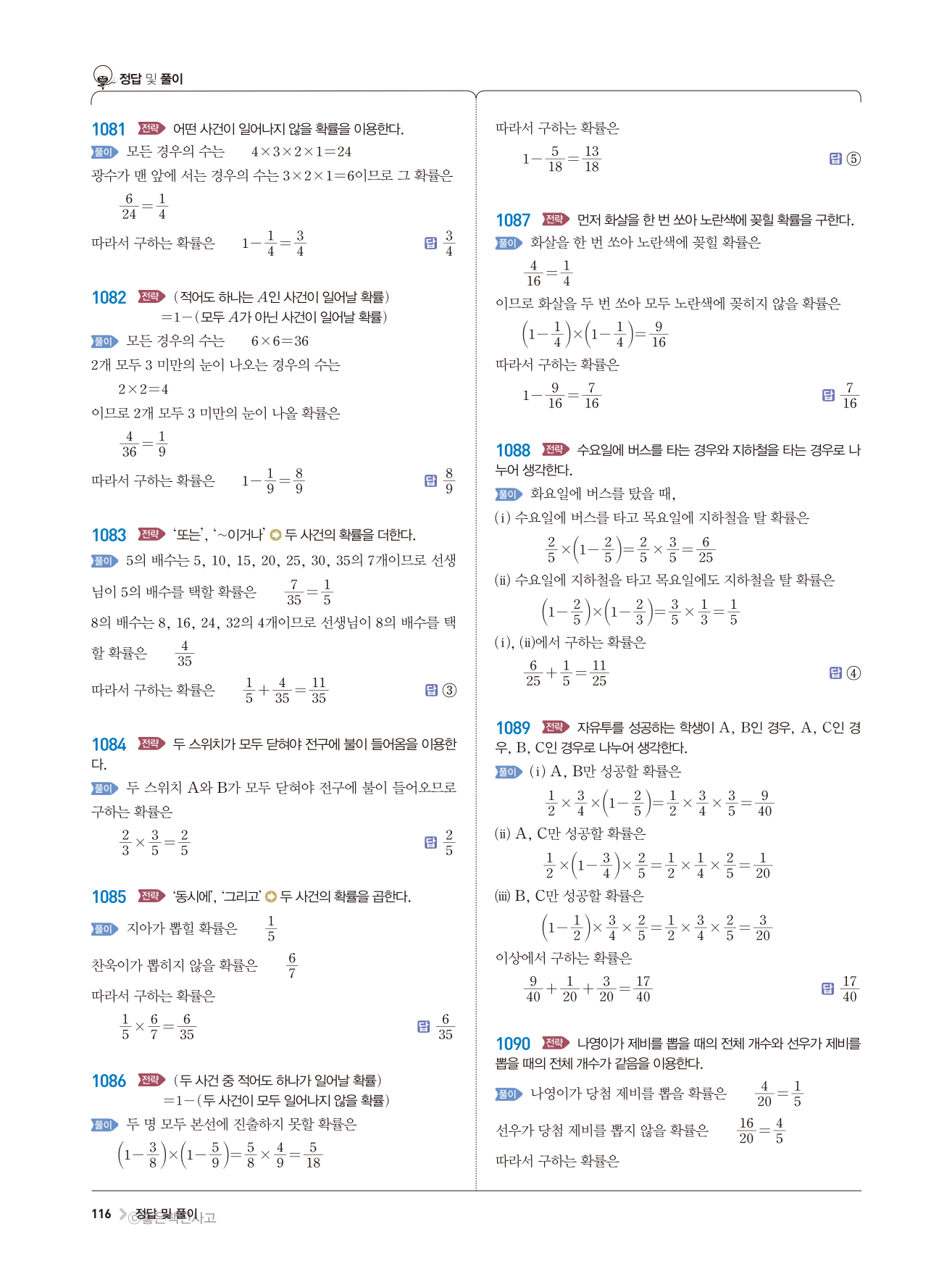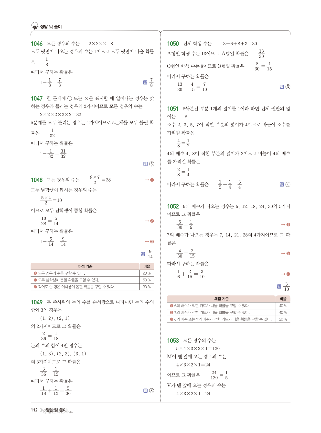 수학문제집 답지