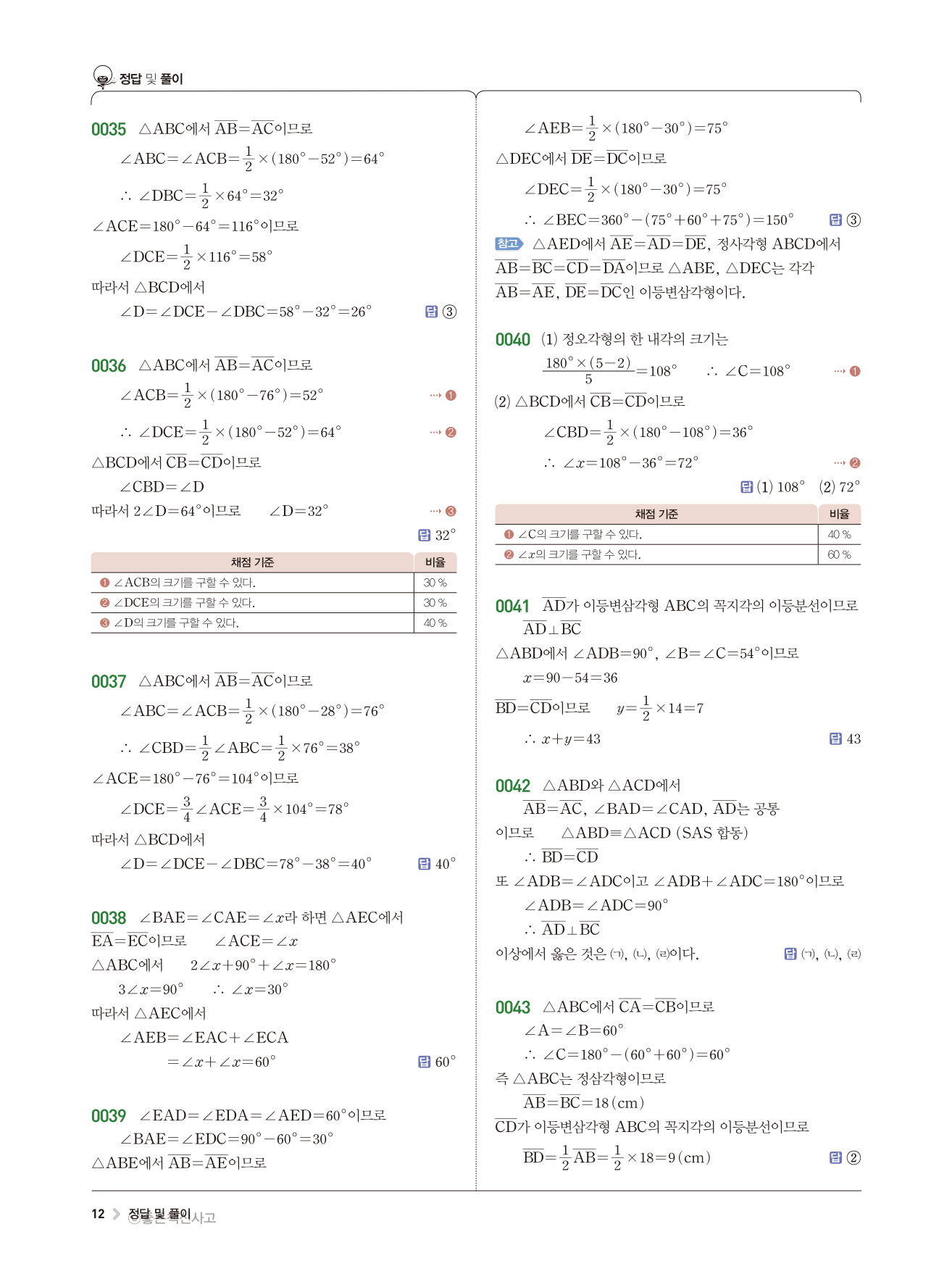 | 천재교육 이준열 중2 수학교과서 답지 | |