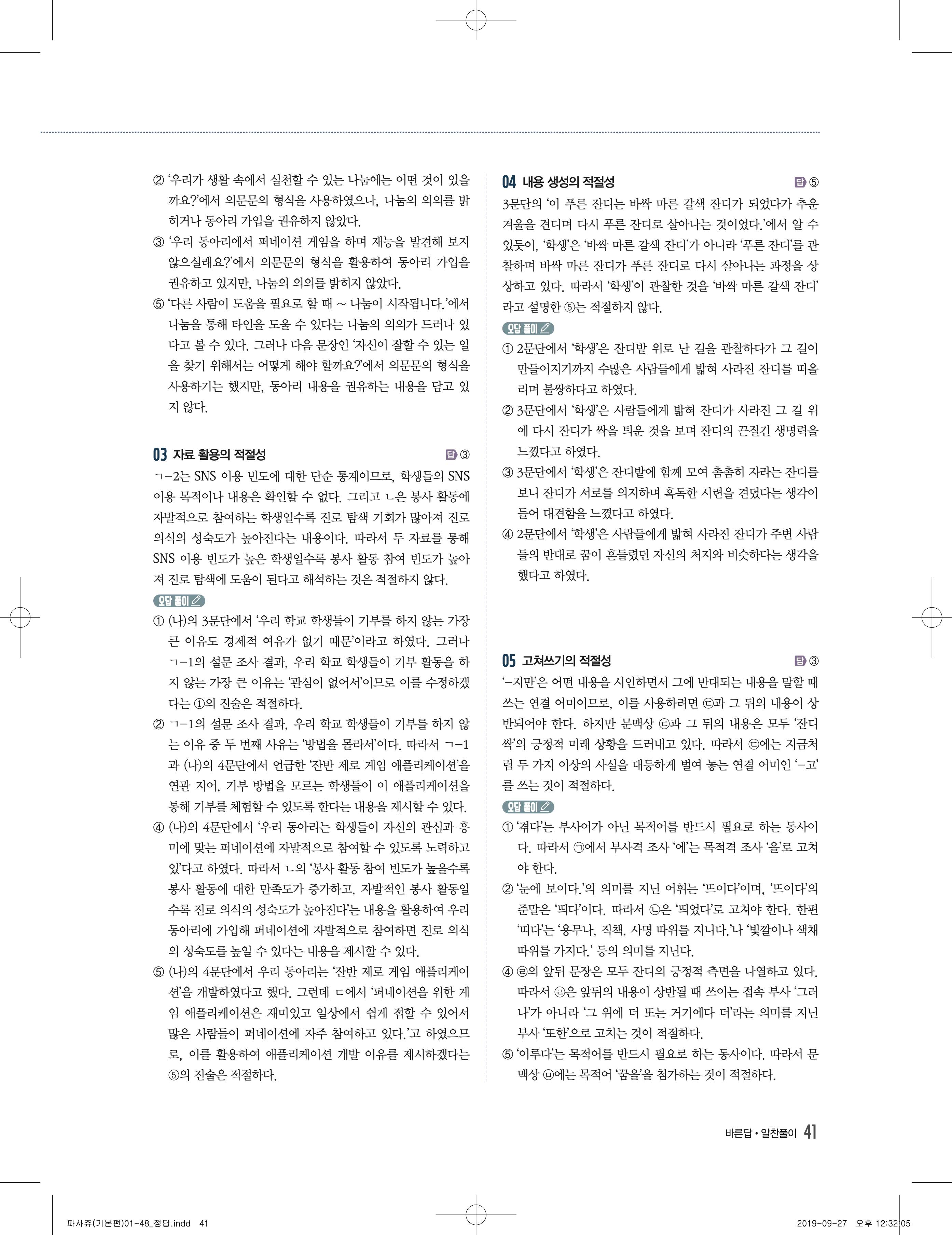 다운로드 받을필요 없이 바로 볼수 있는 모바일에 최적화된 답지 입니다