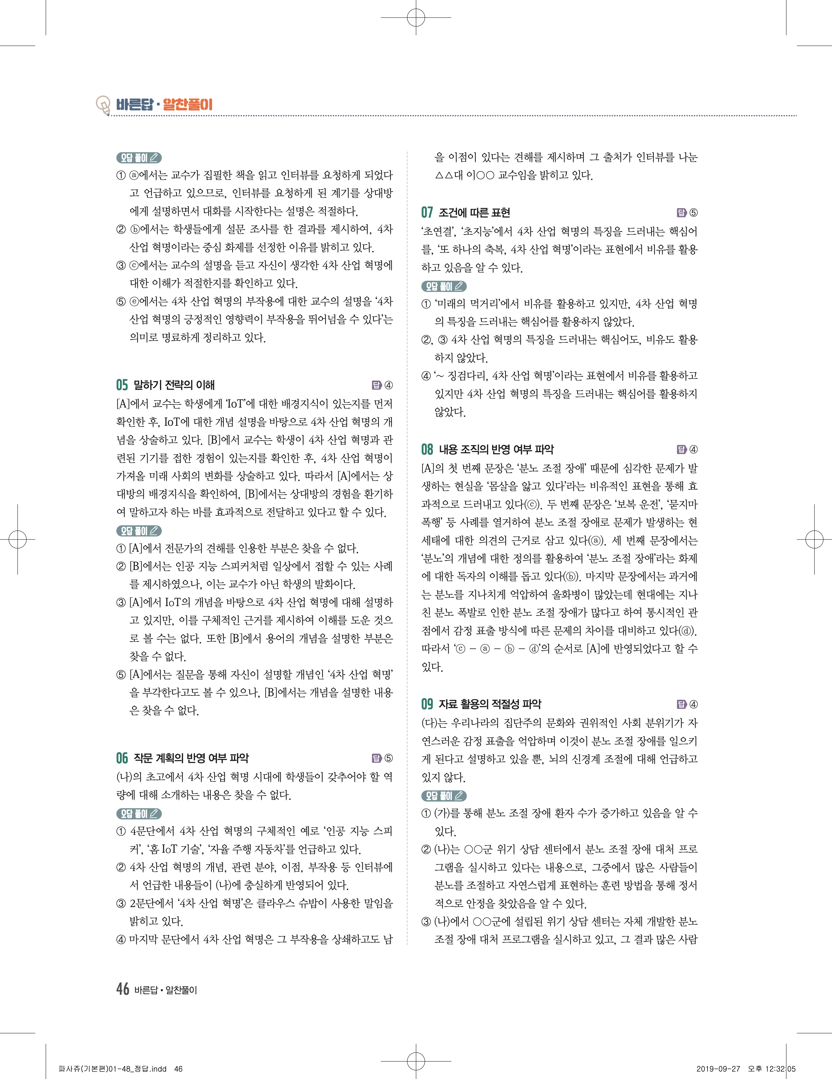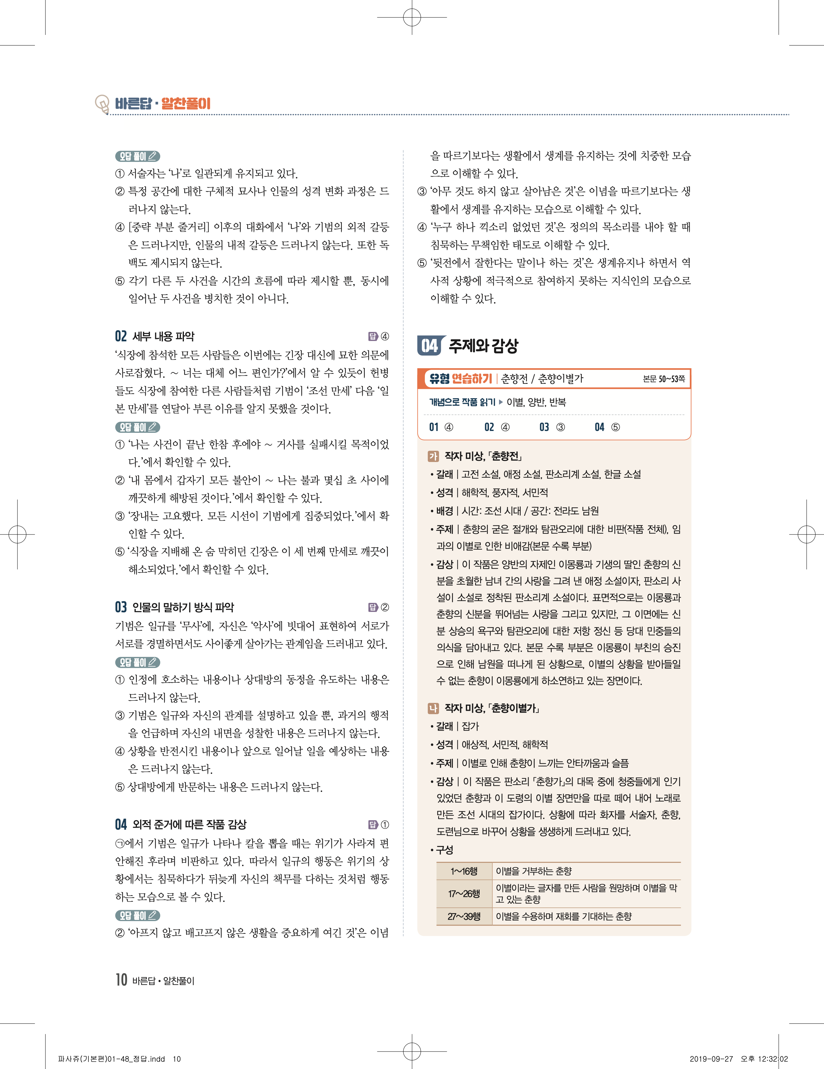 파사쥬 국어 답지 해설 바로보는 사진답지 빠른답지 모바일최적화