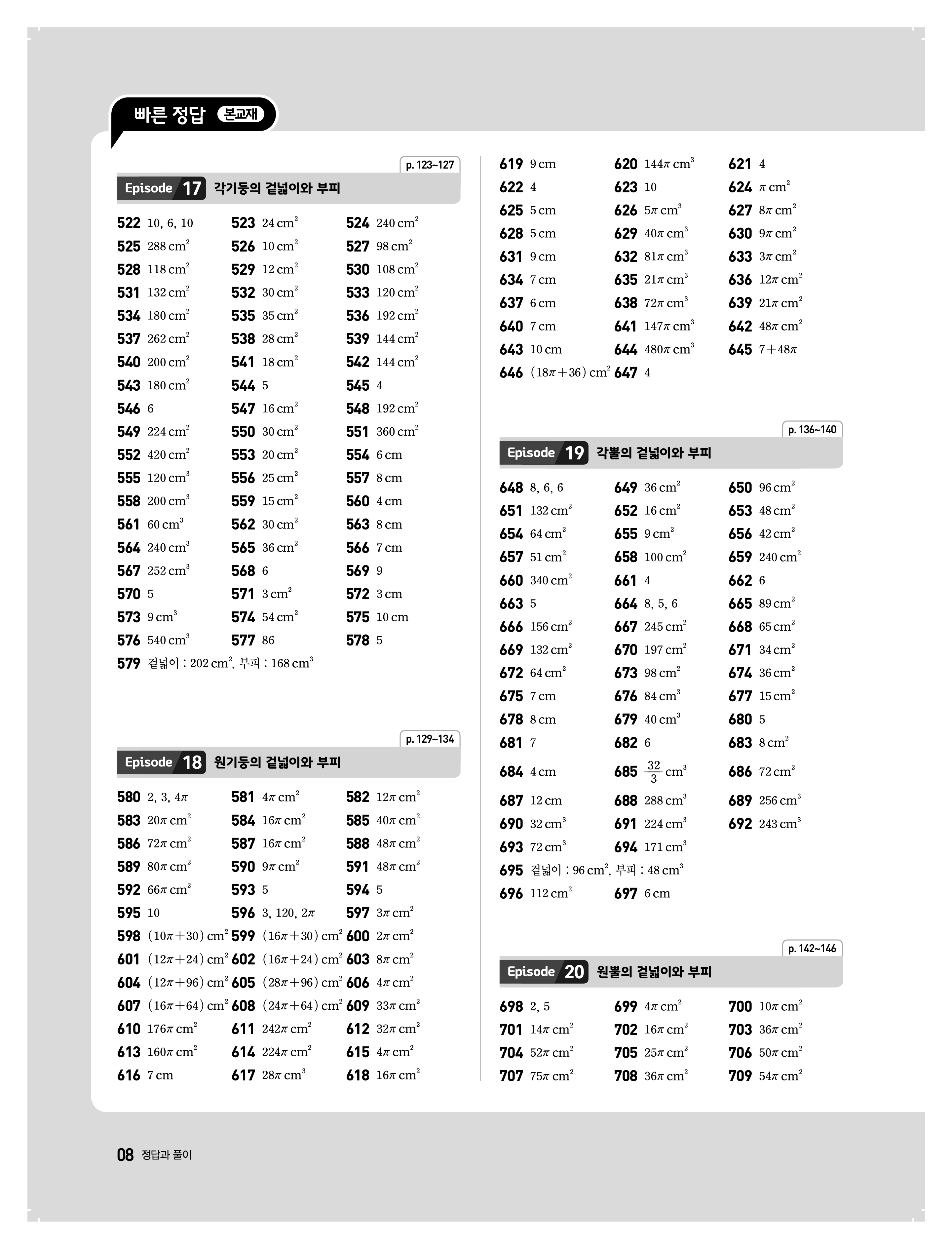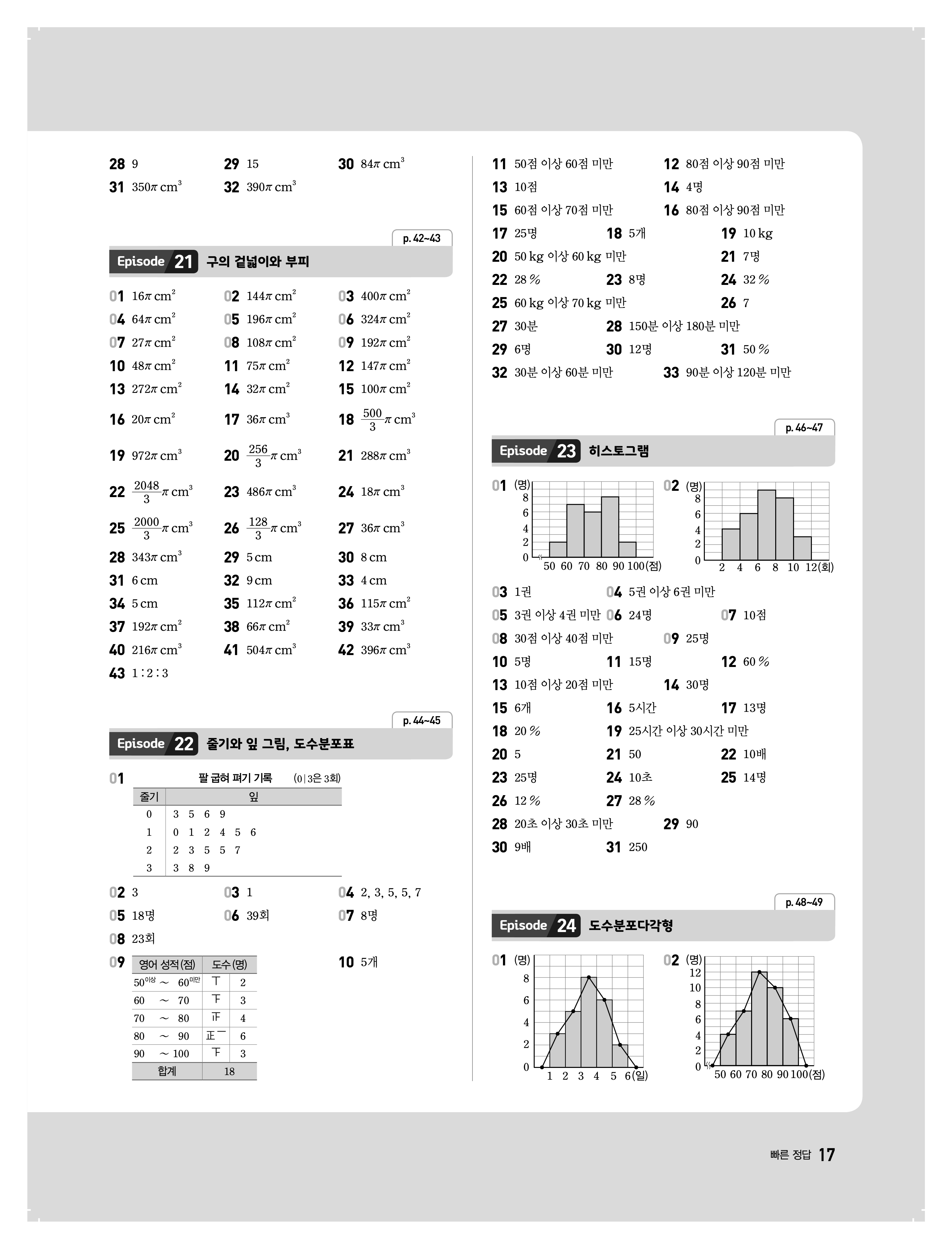 다운로드 받을필요 없이 바로 볼수 있는 모바일에 최적화된 답지 입니다