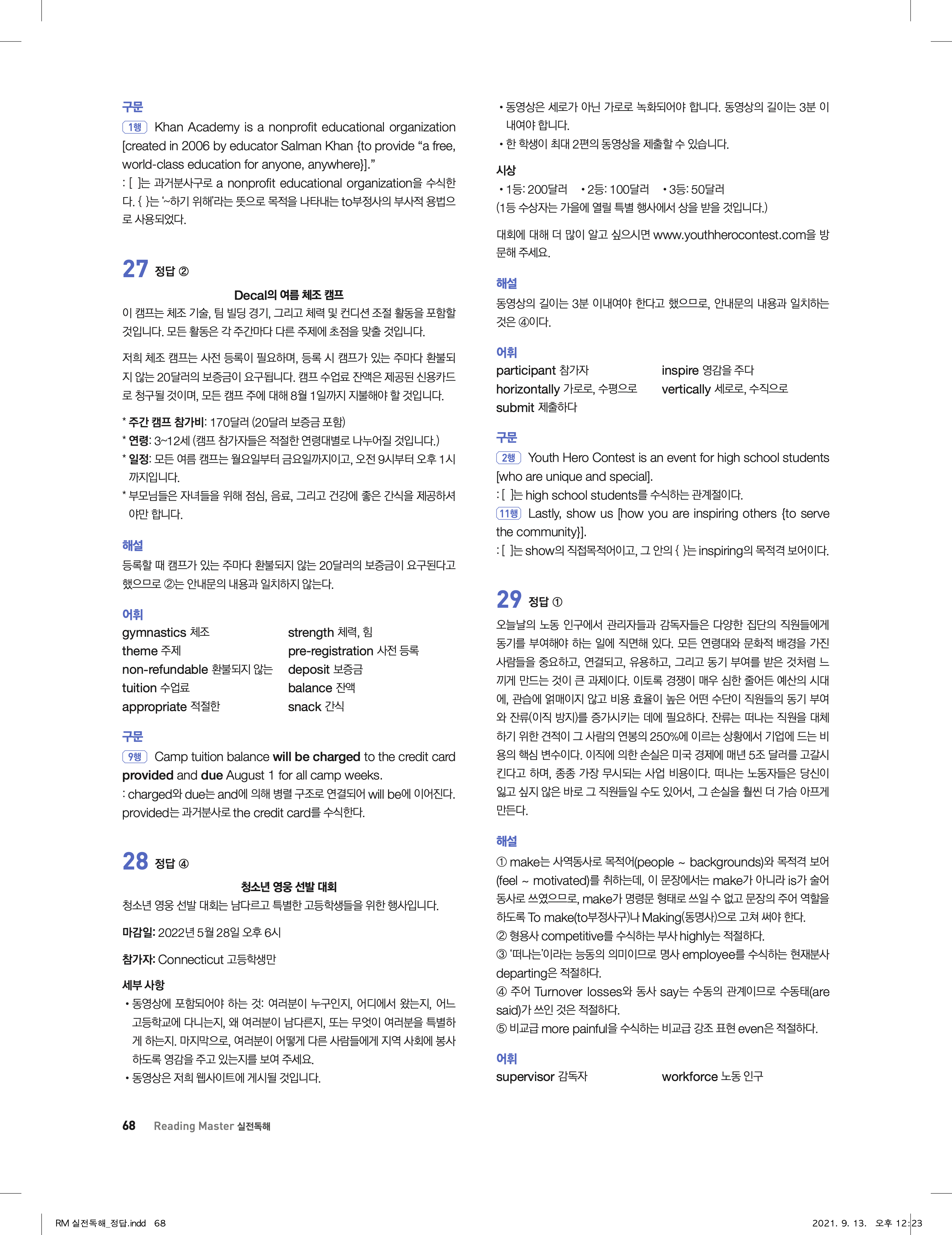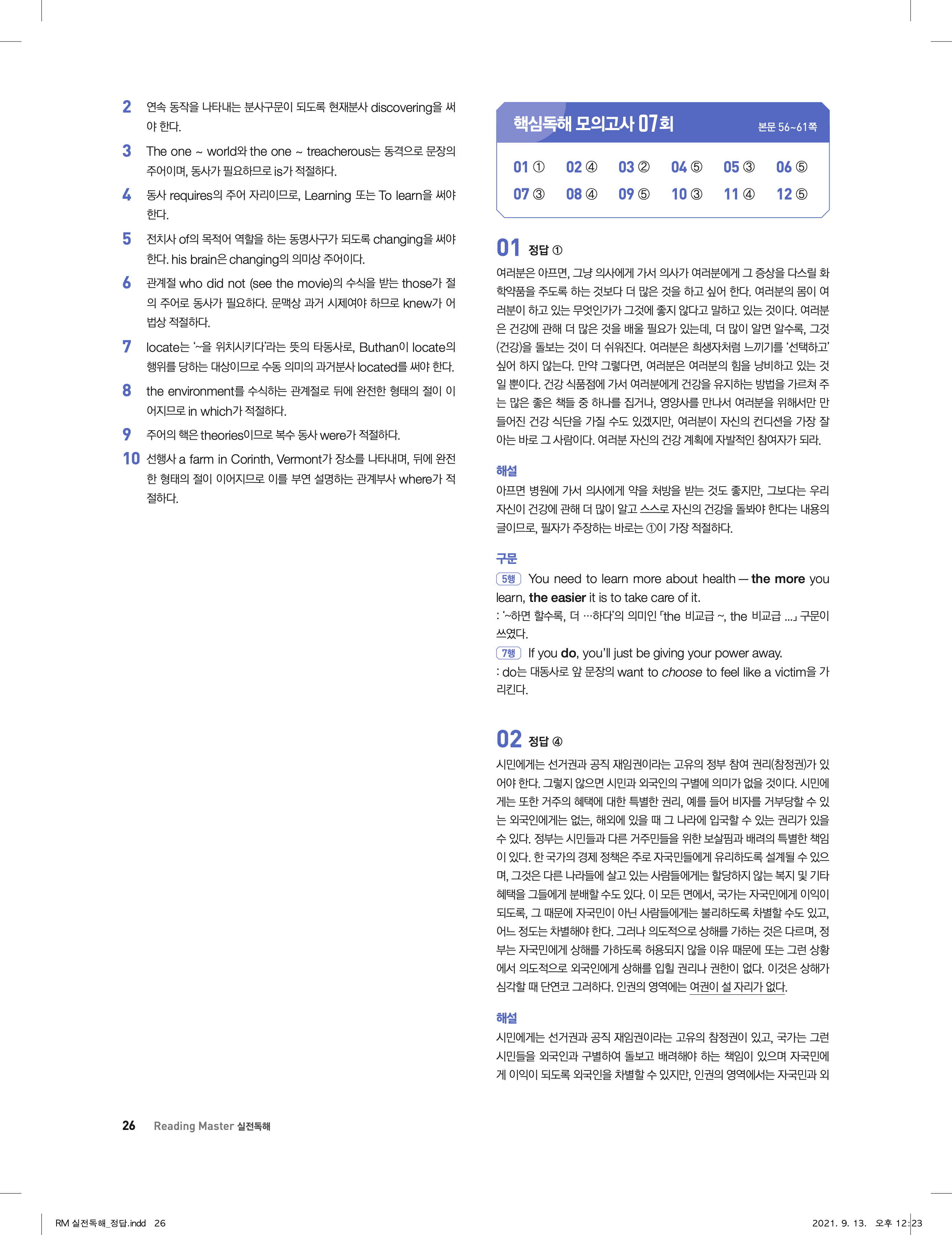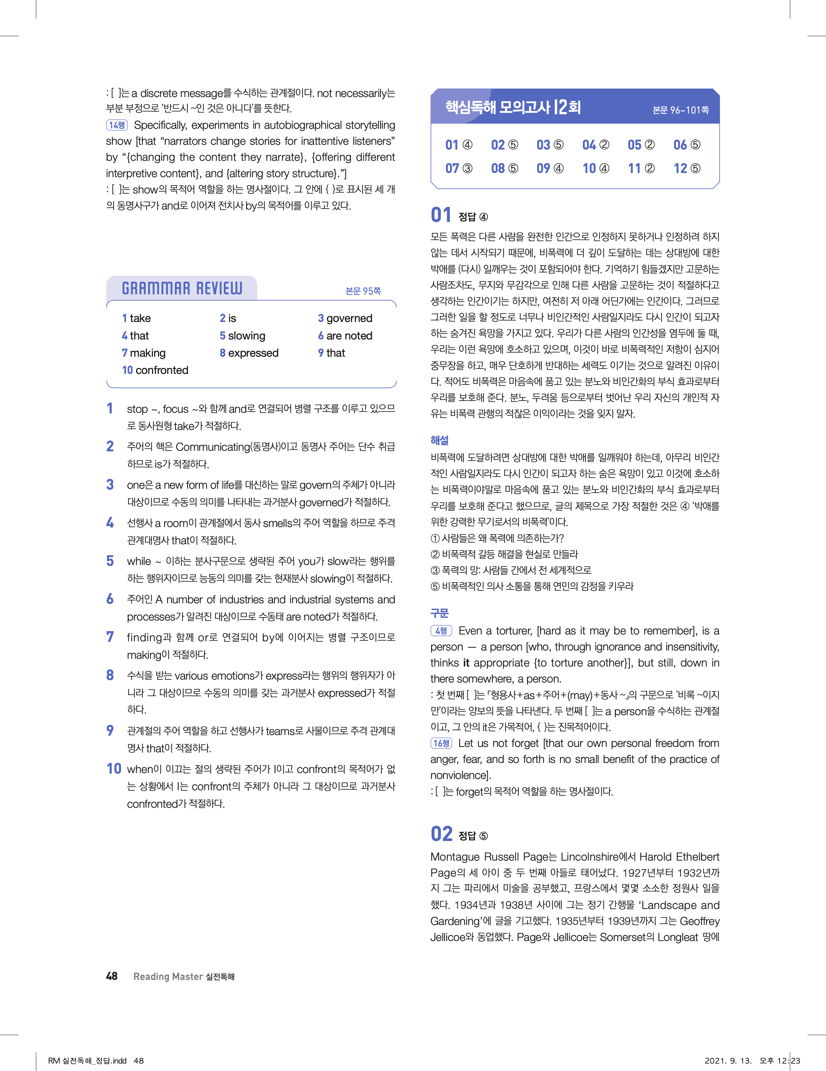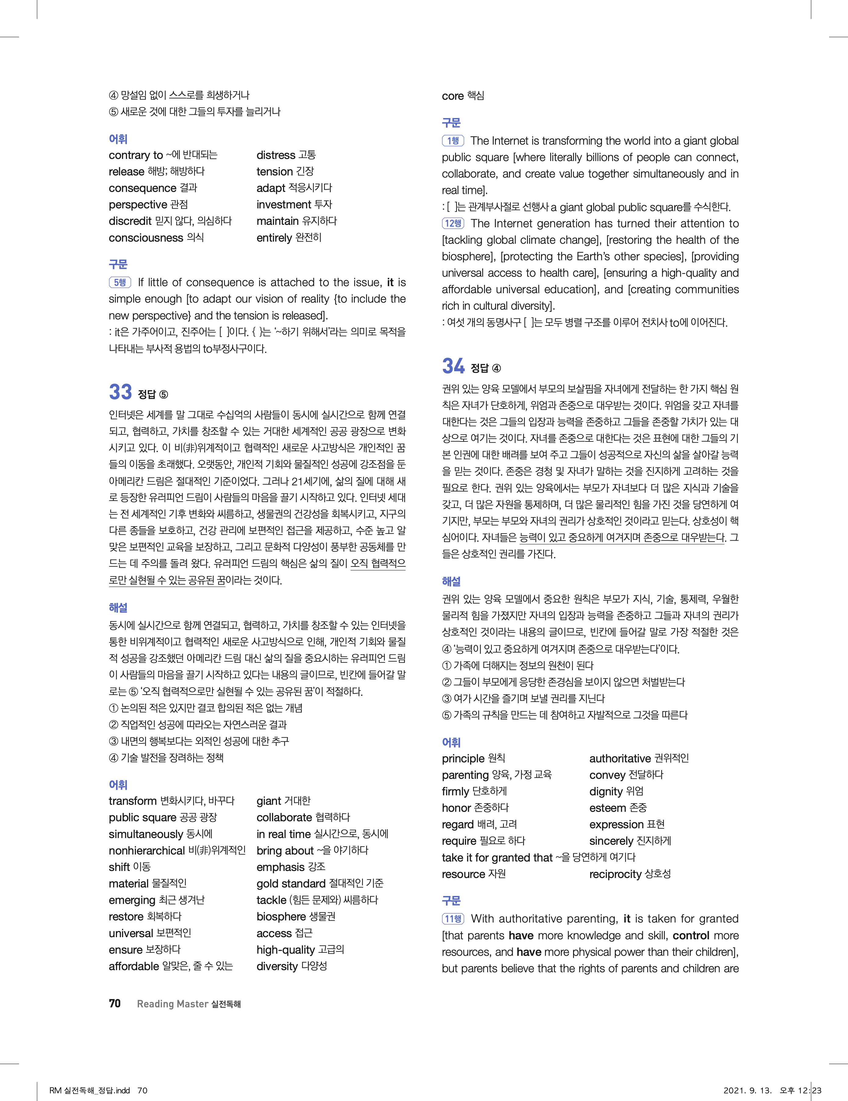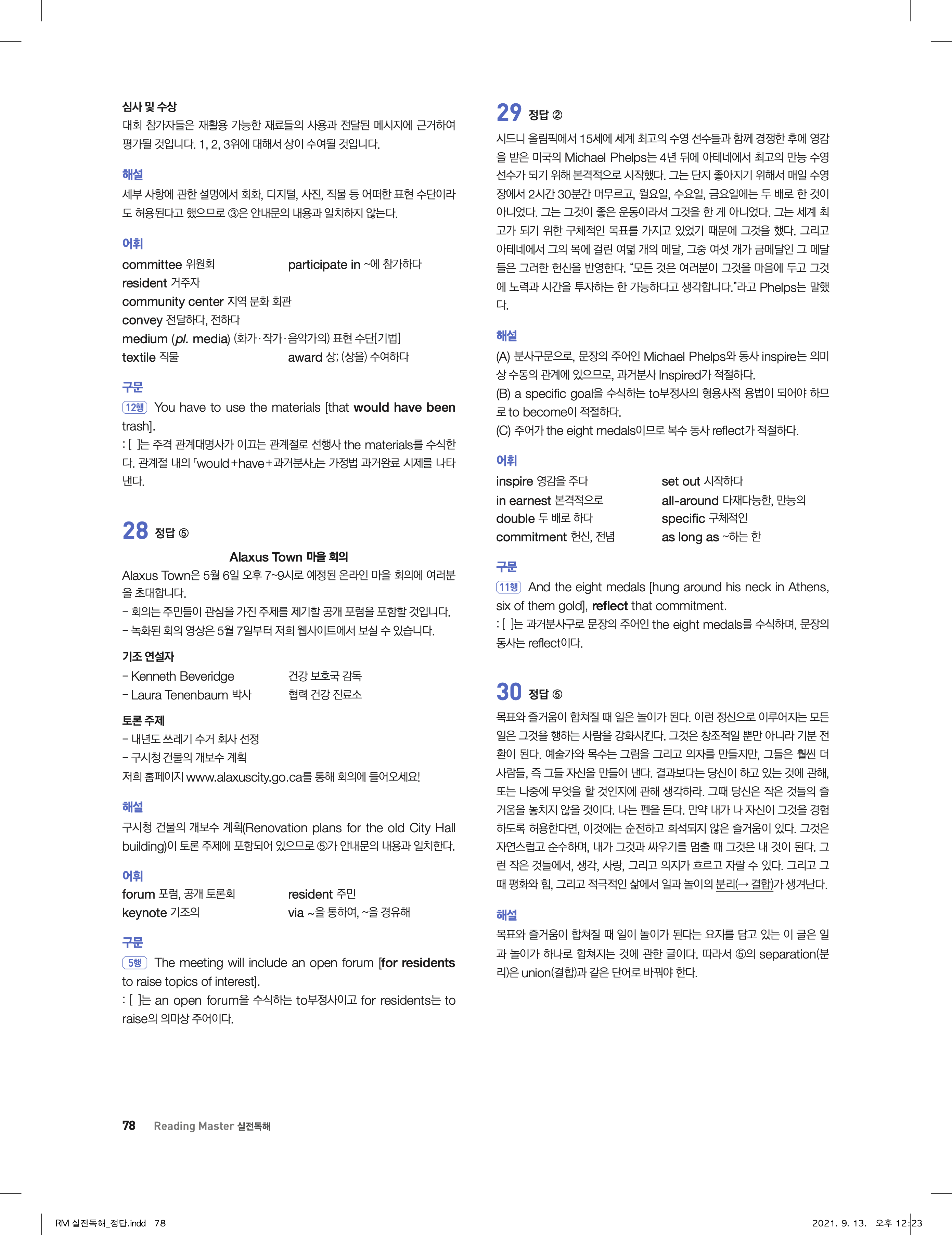 리딩마스터 실전독해 답지 해설 바로보는 사진답지 빠른답지 모바일최적화