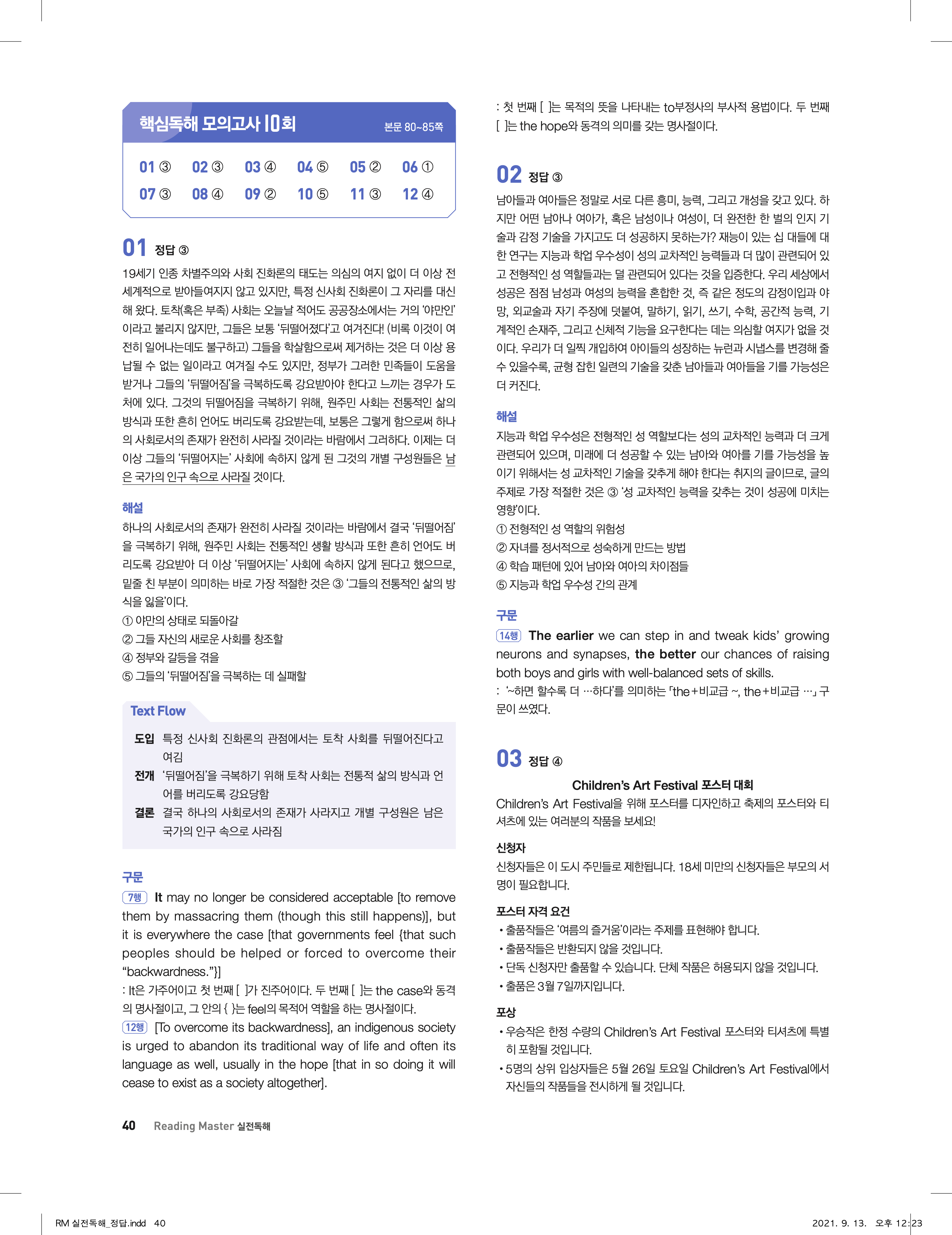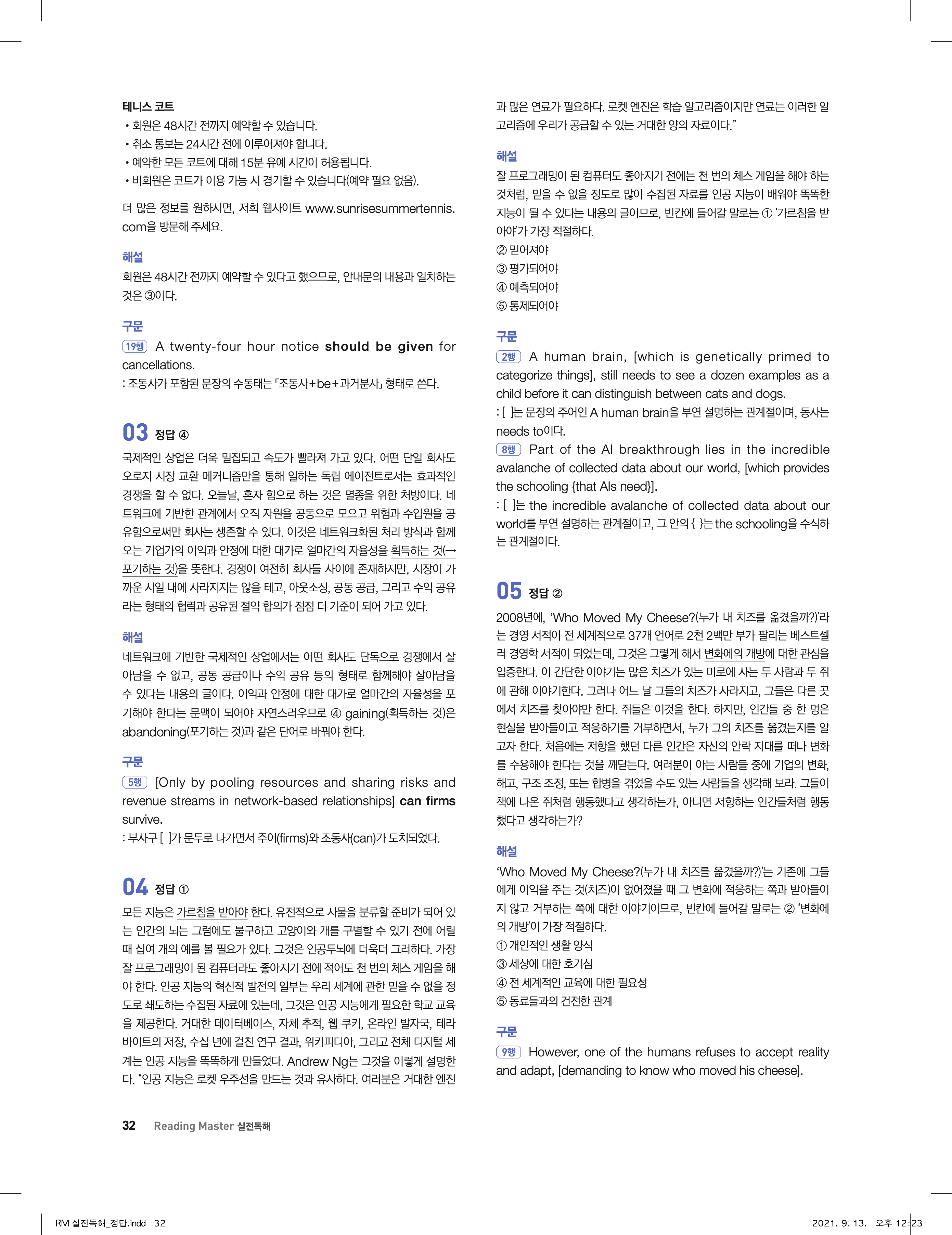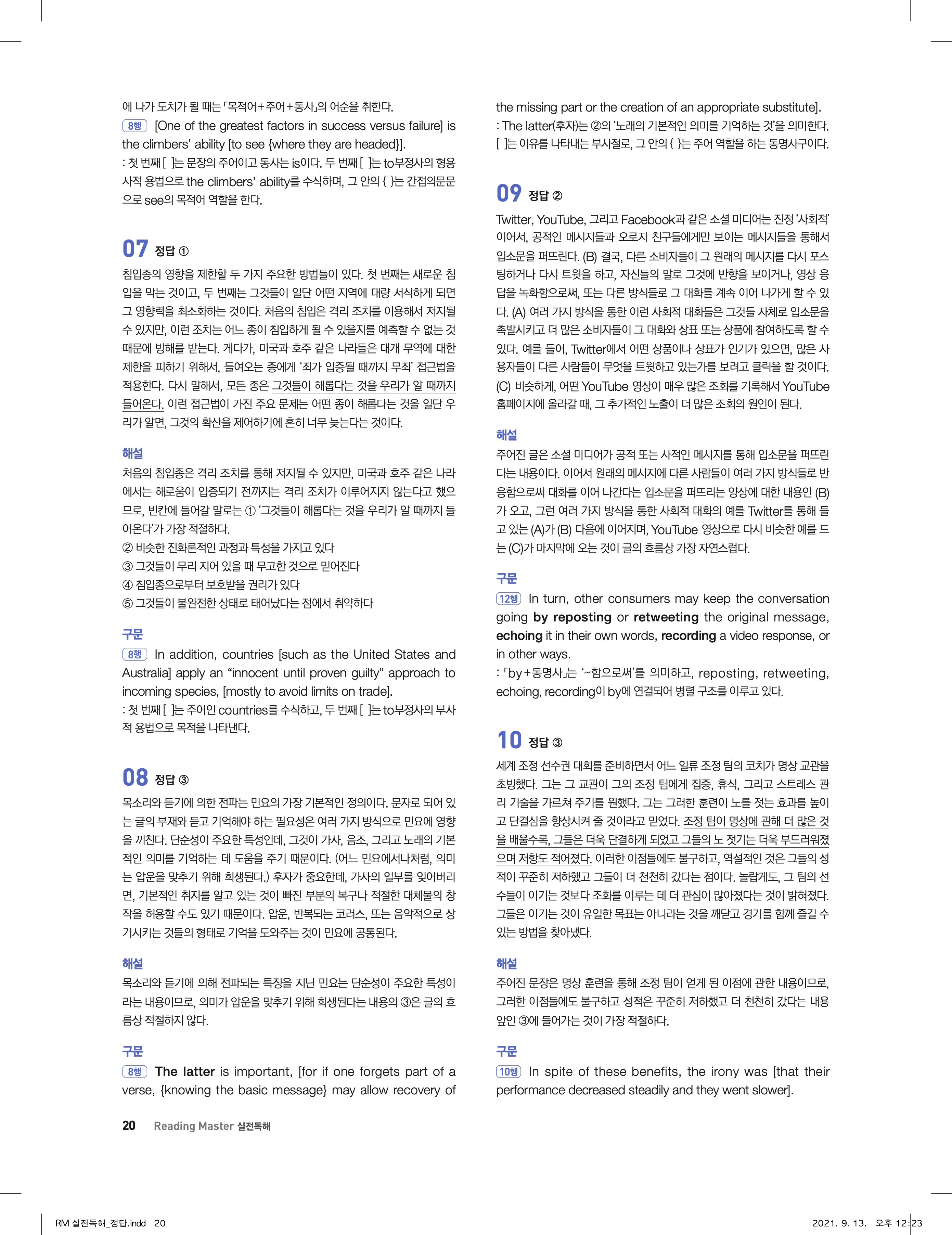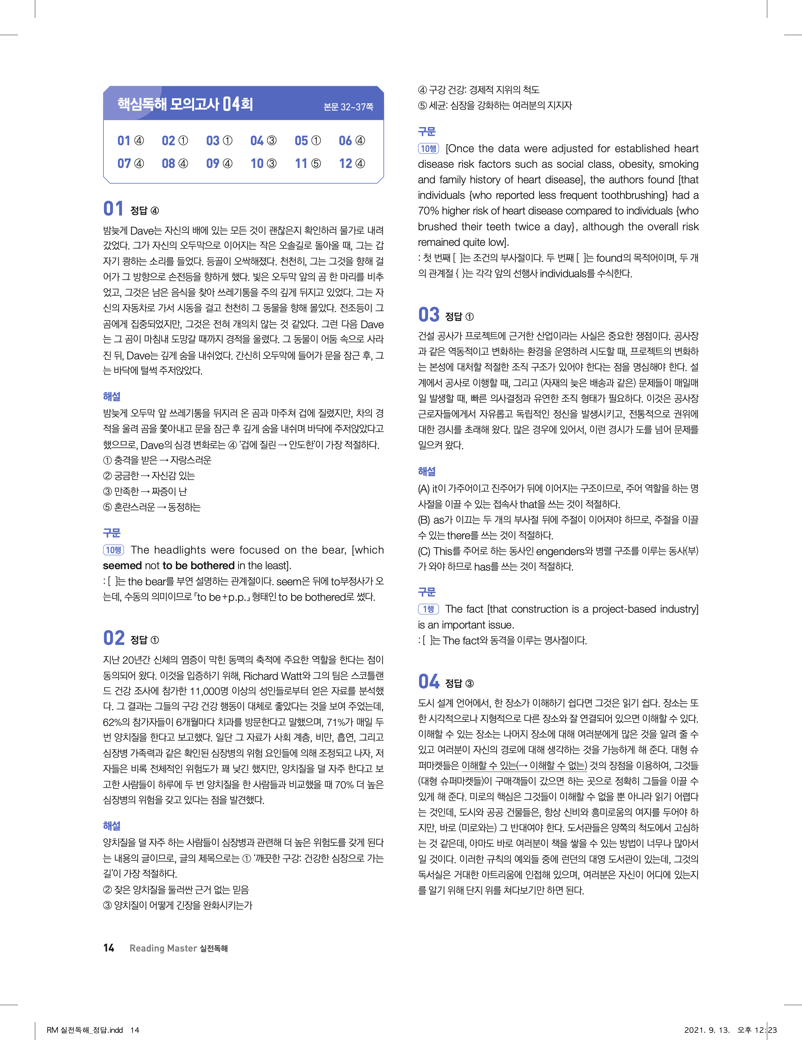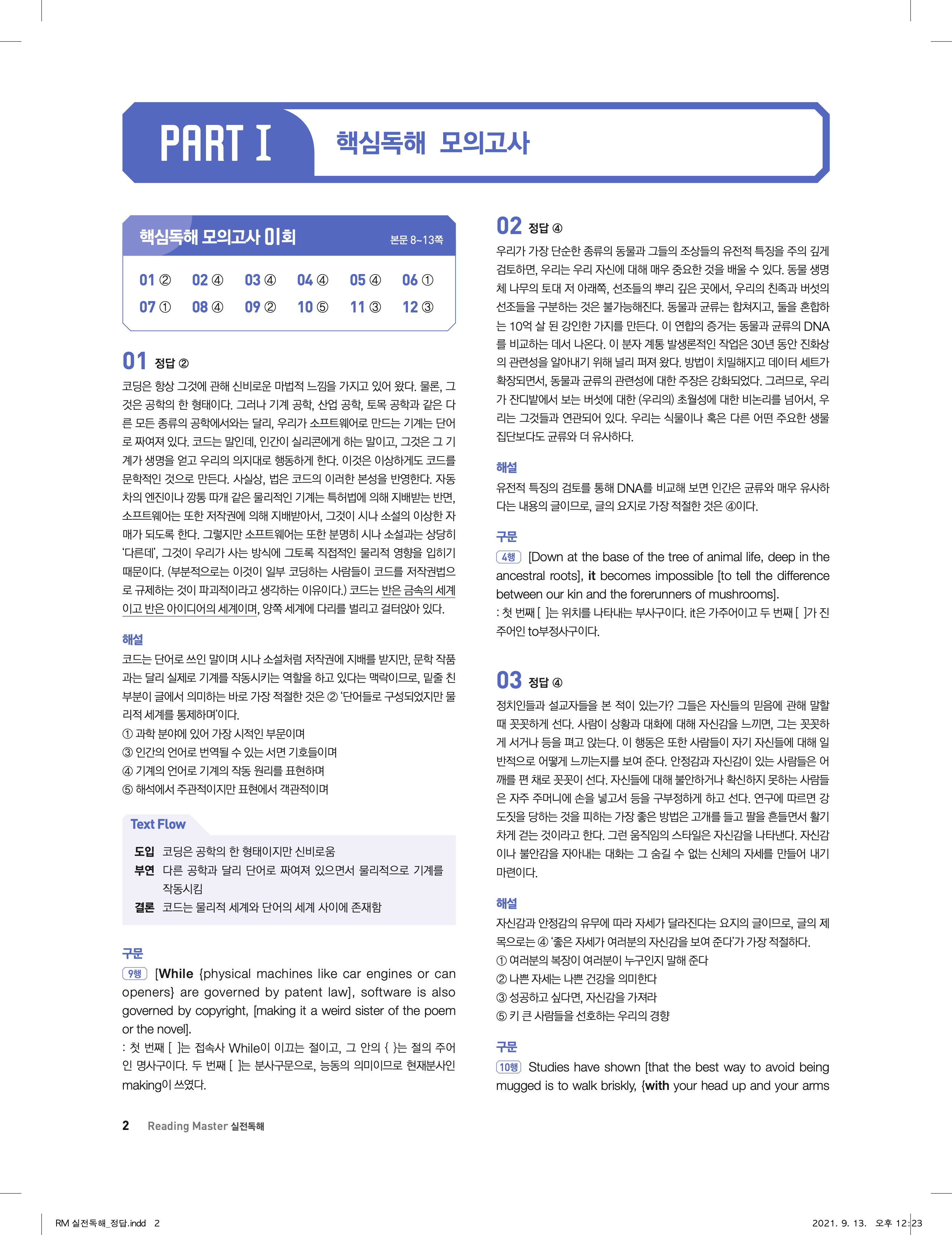 리딩마스터 실전독해 답지 해설 바로보는 사진답지 빠른답지 모바일최적화