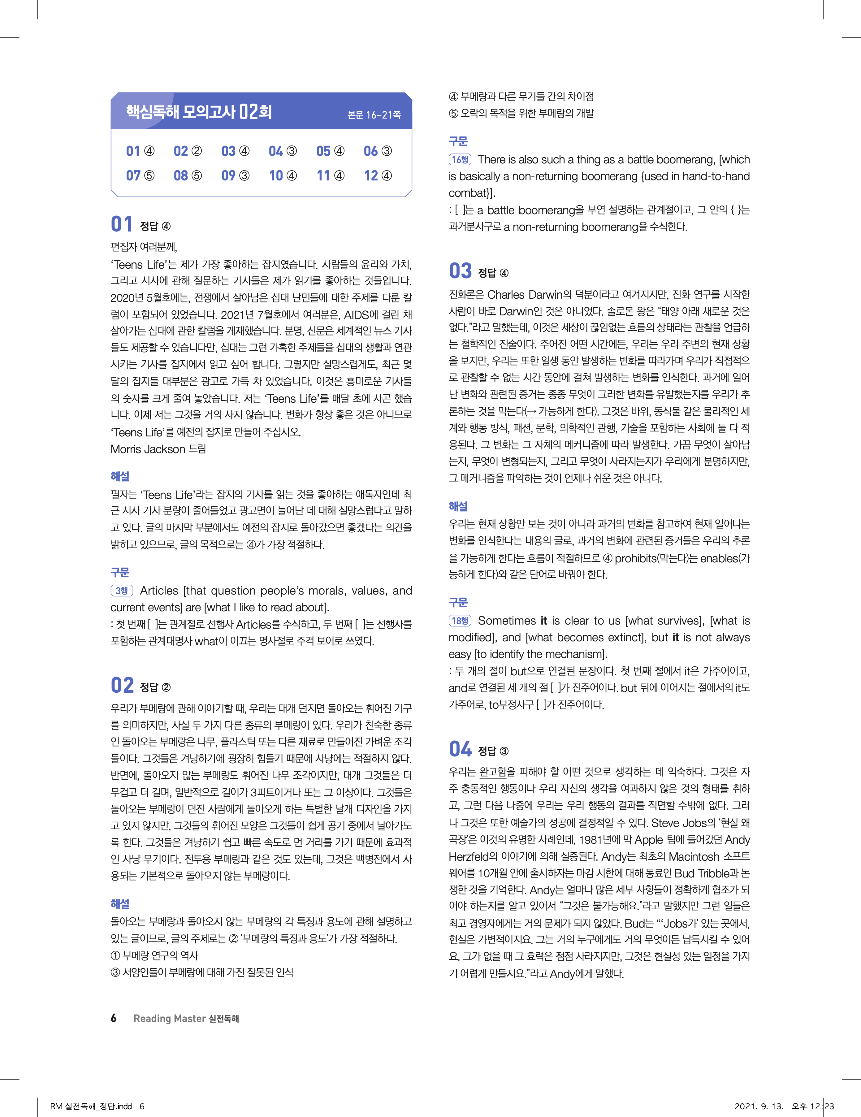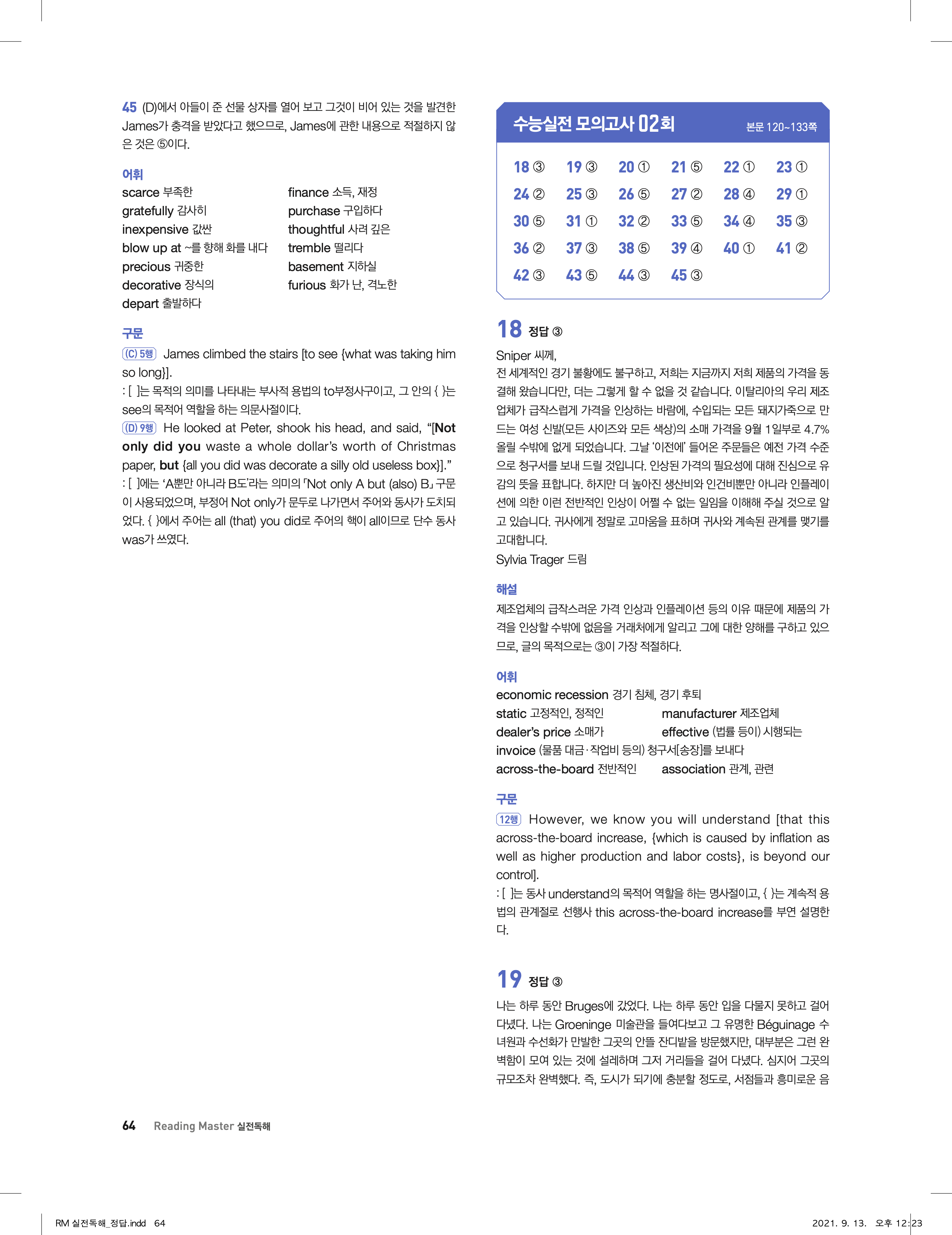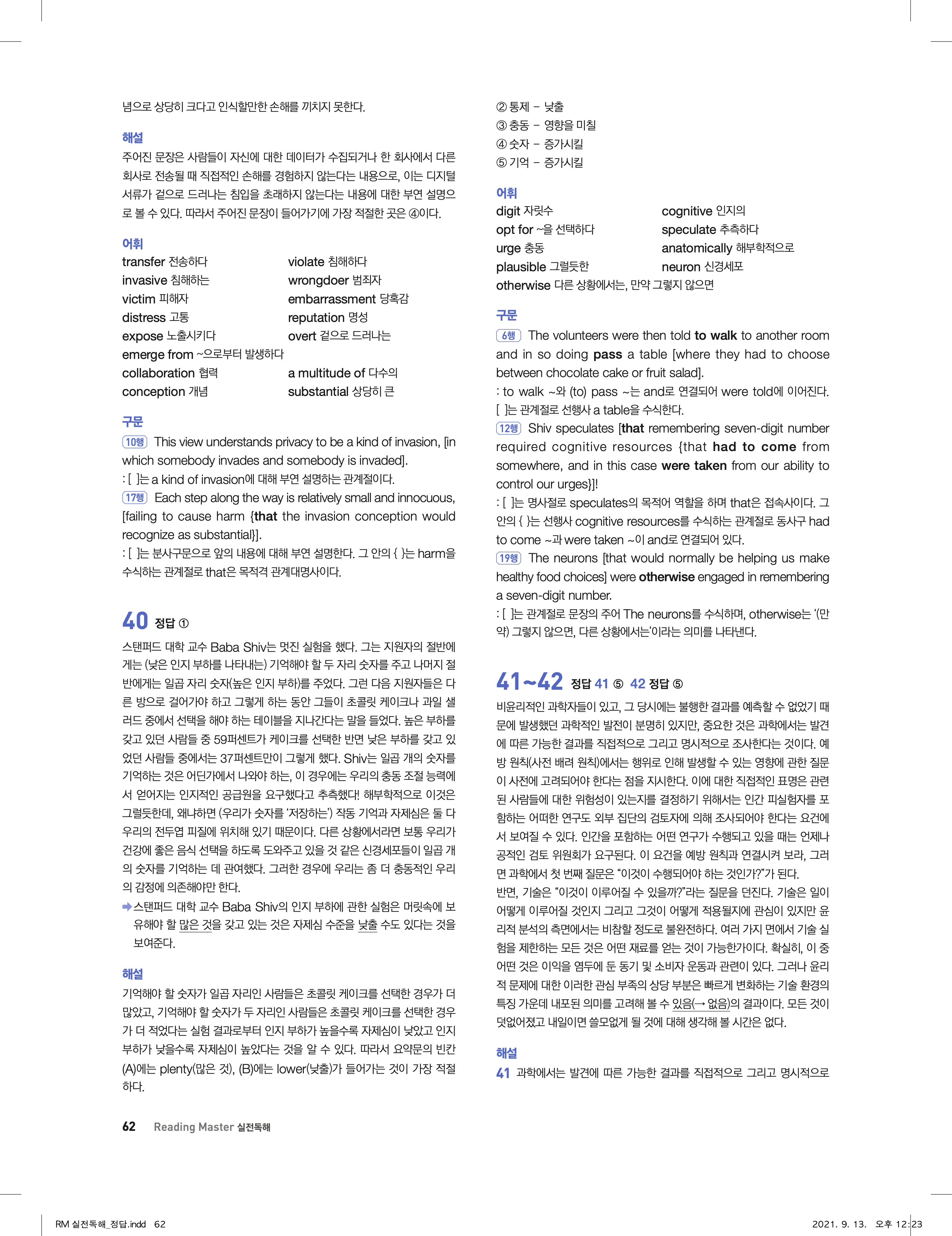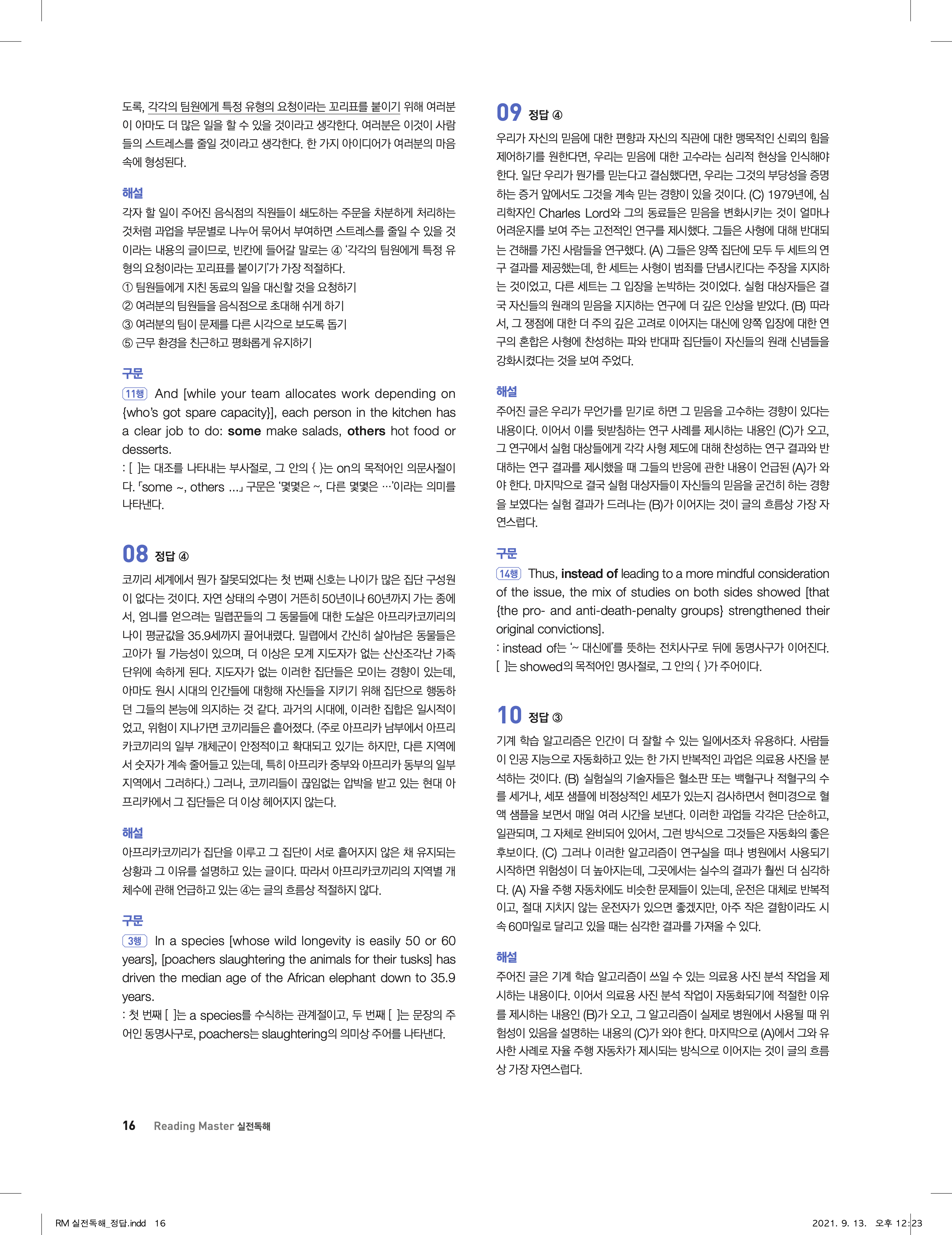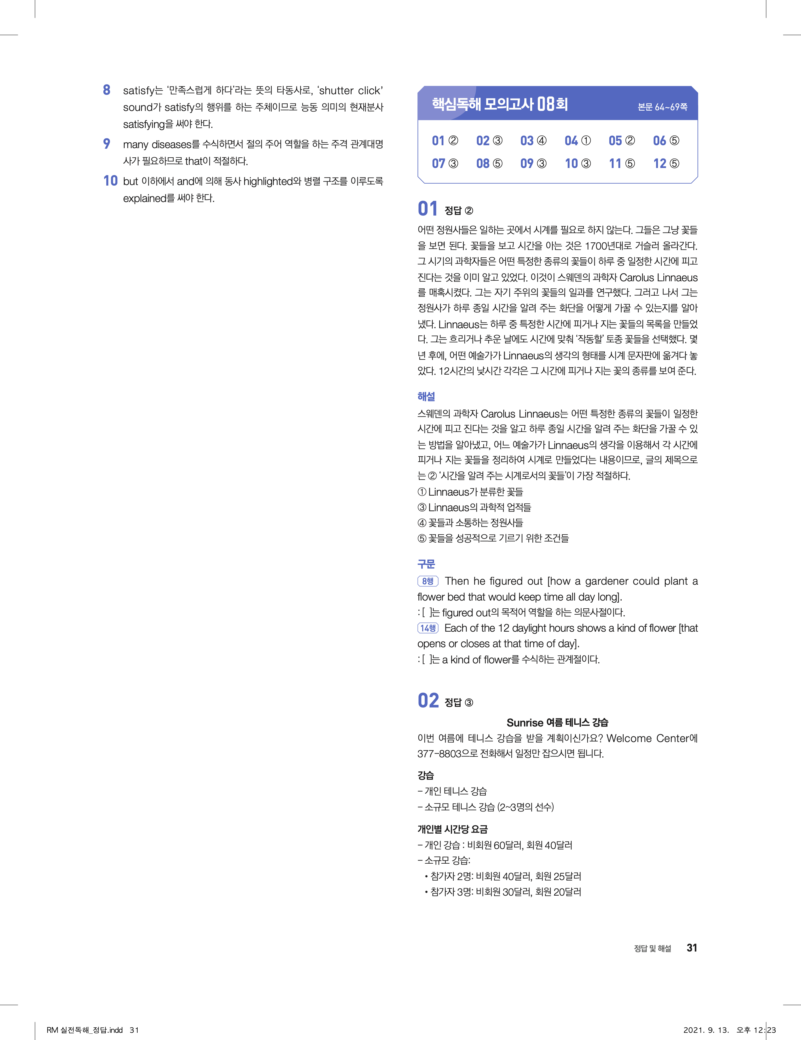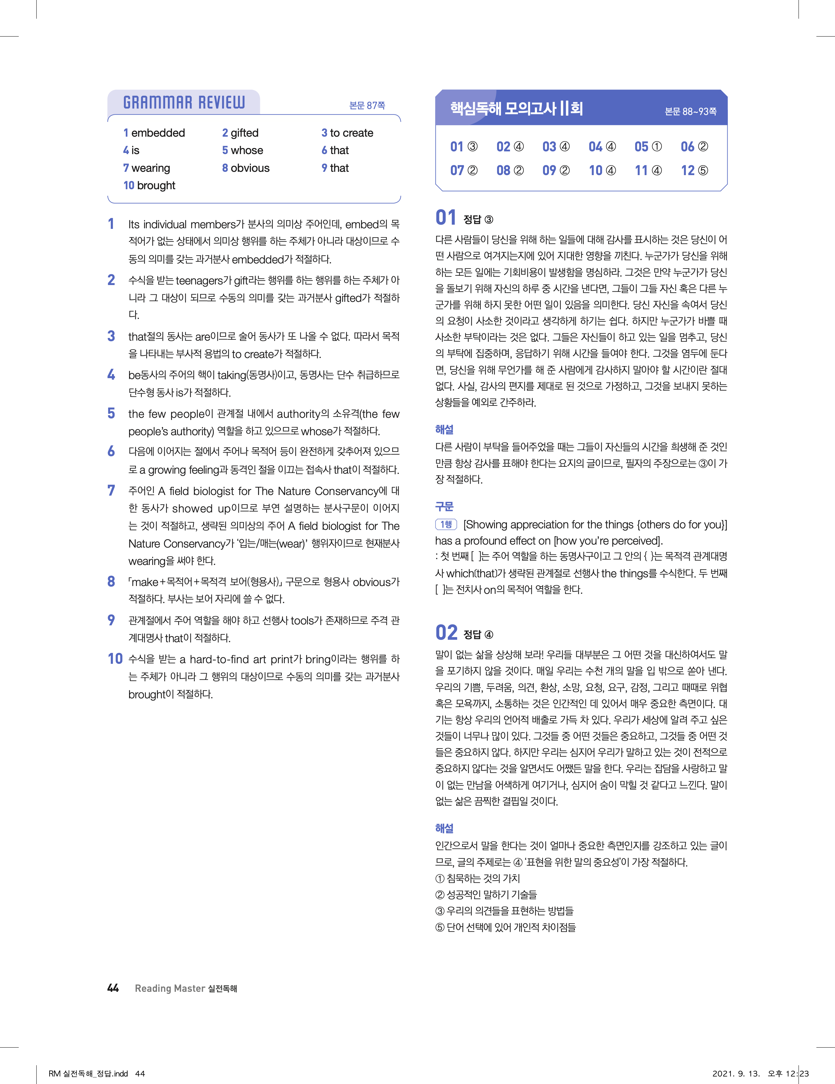 리딩마스터 실전독해 답지 해설 바로보는 사진답지 빠른답지 모바일최적화