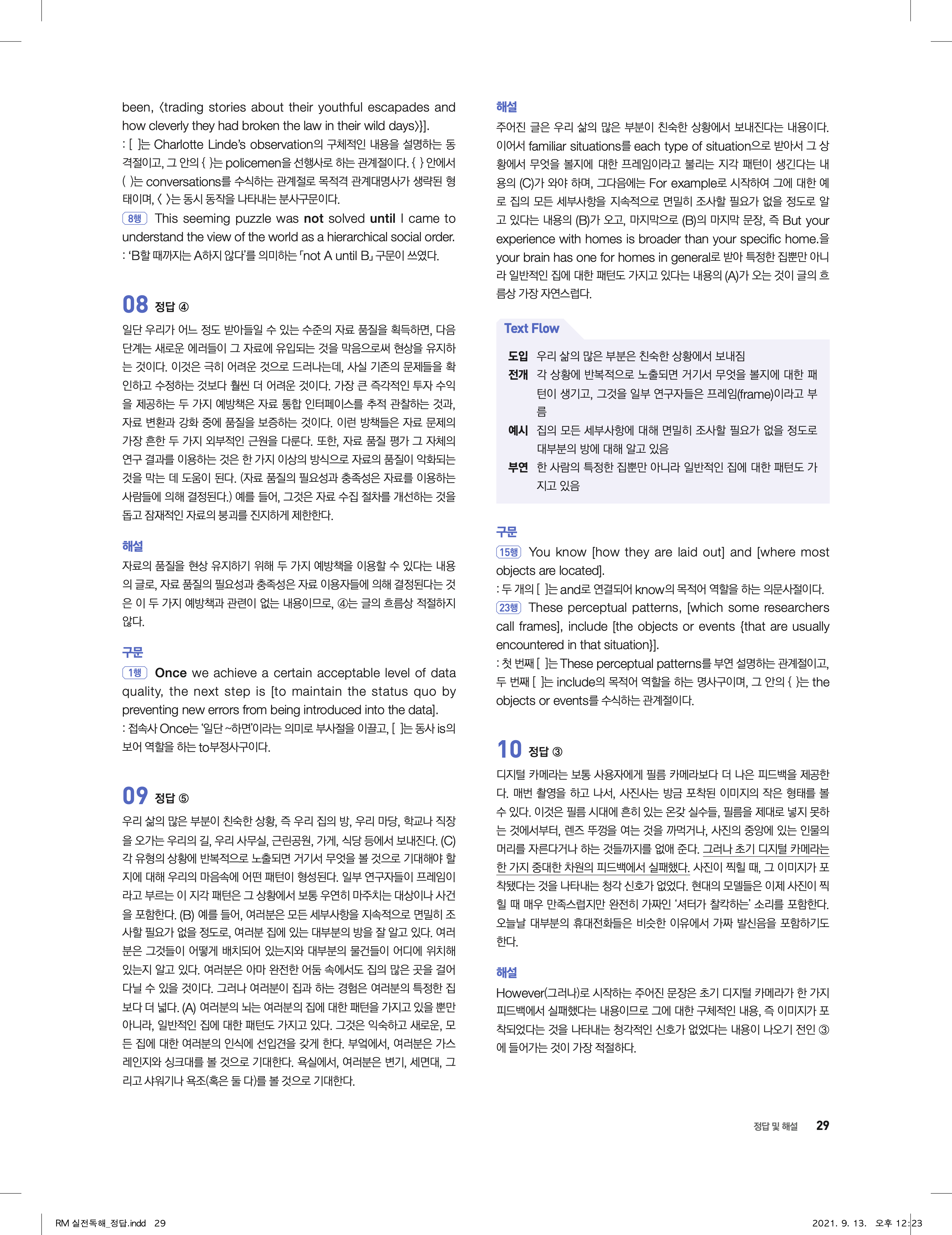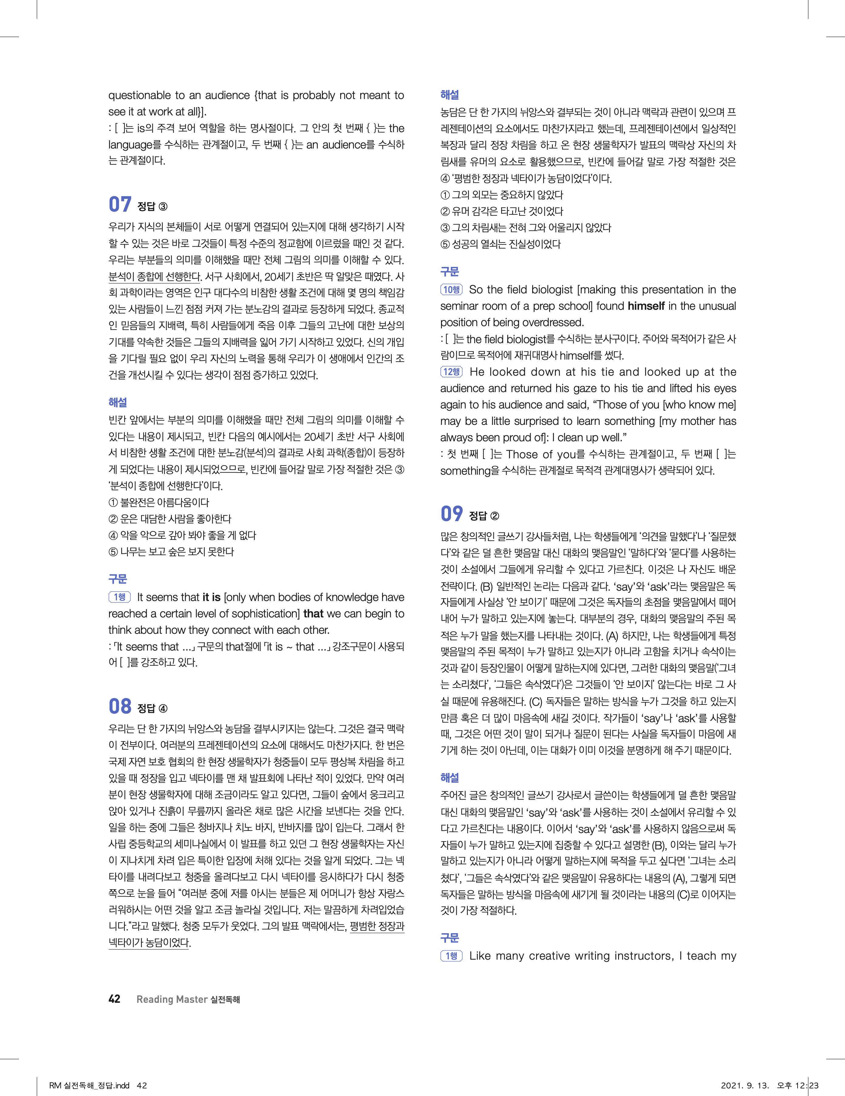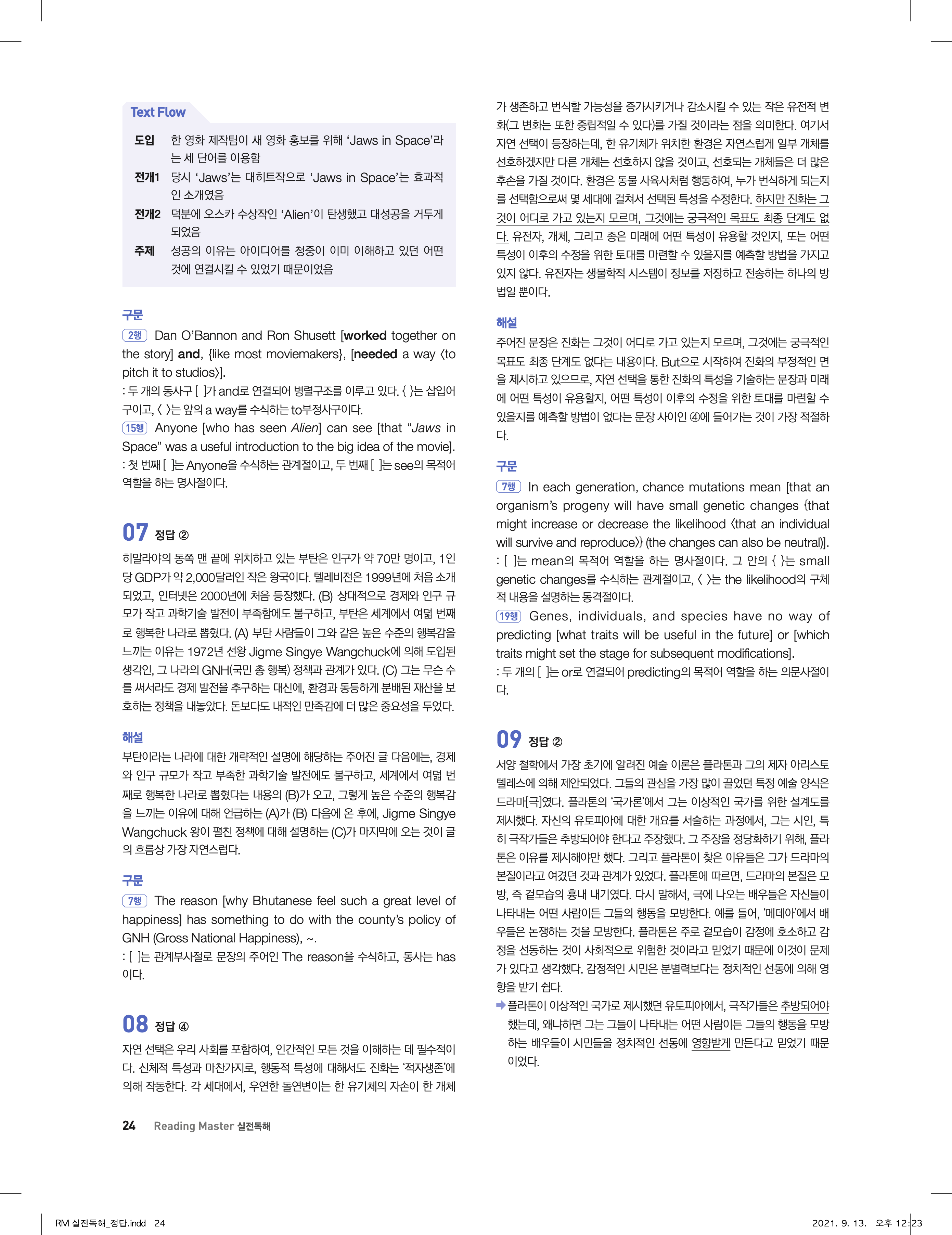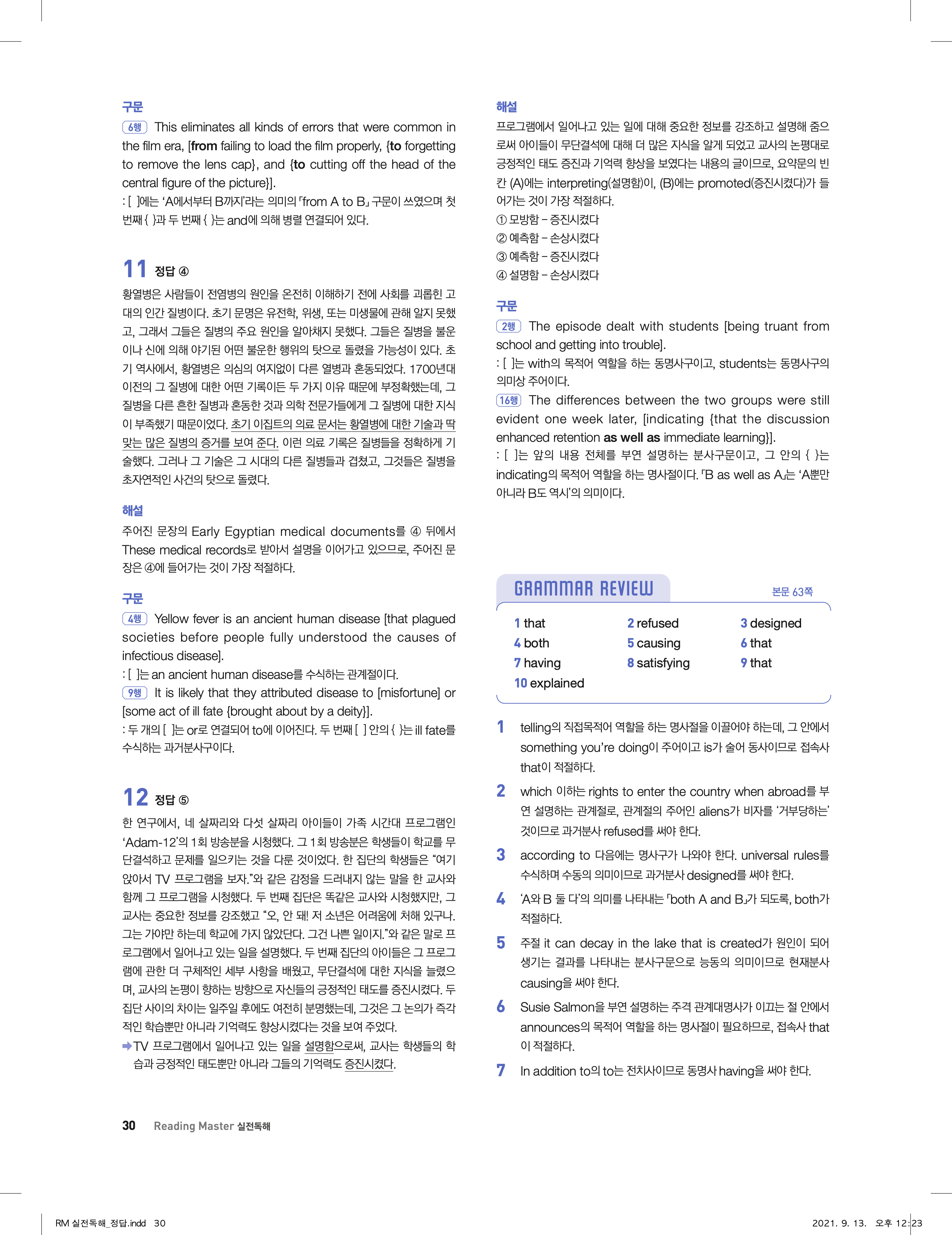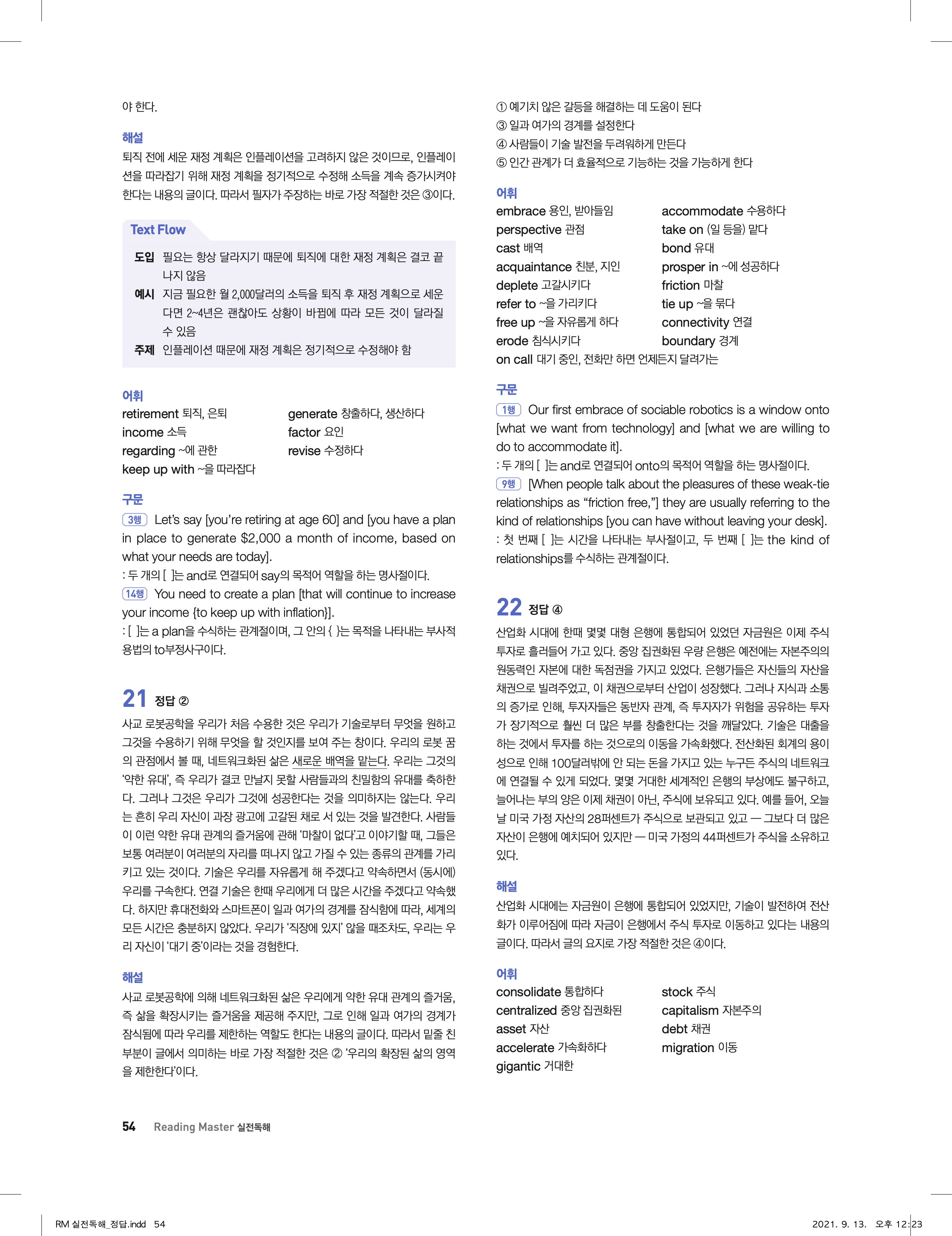 리딩마스터 실전독해 답지 해설 바로보는 사진답지 빠른답지 모바일최적화