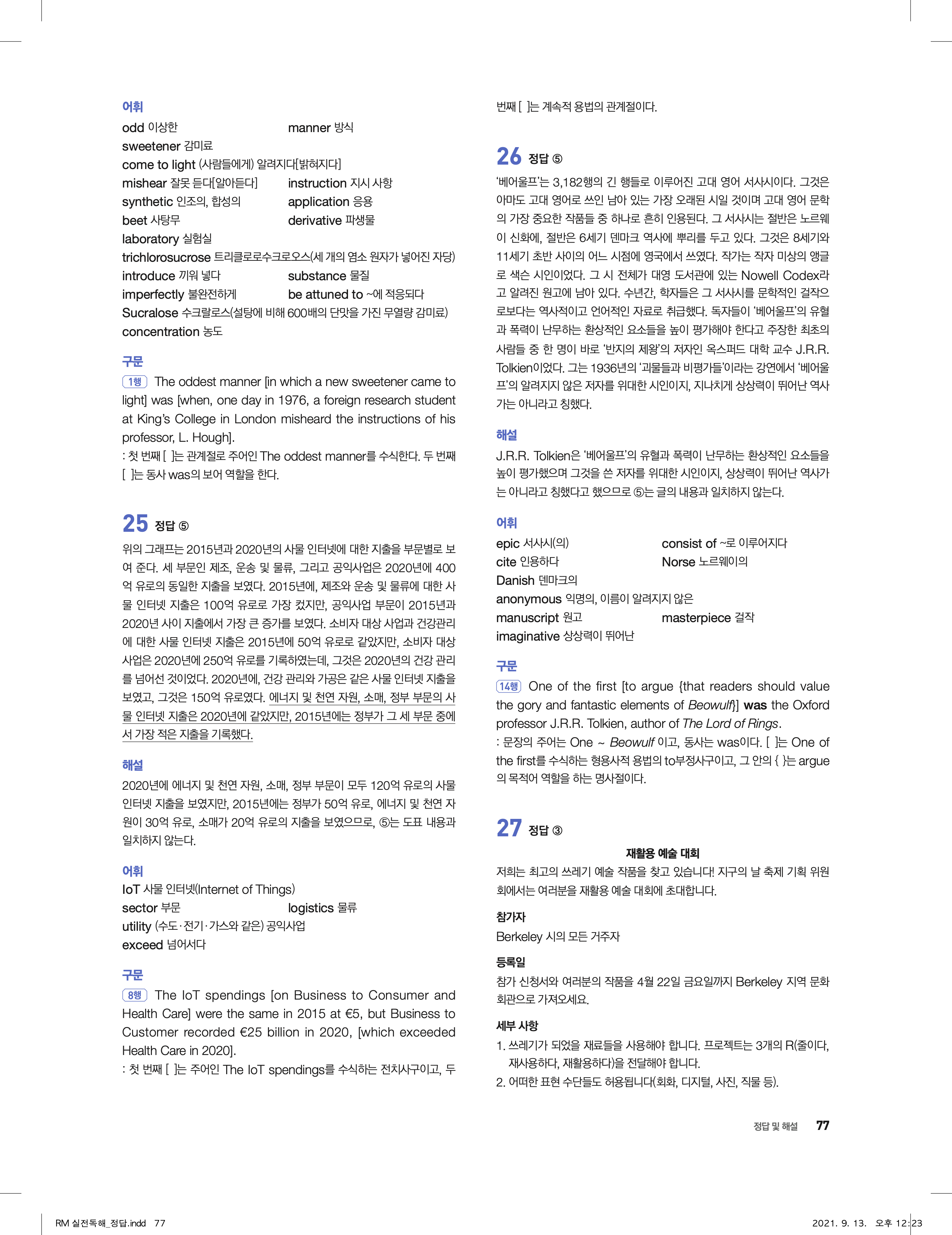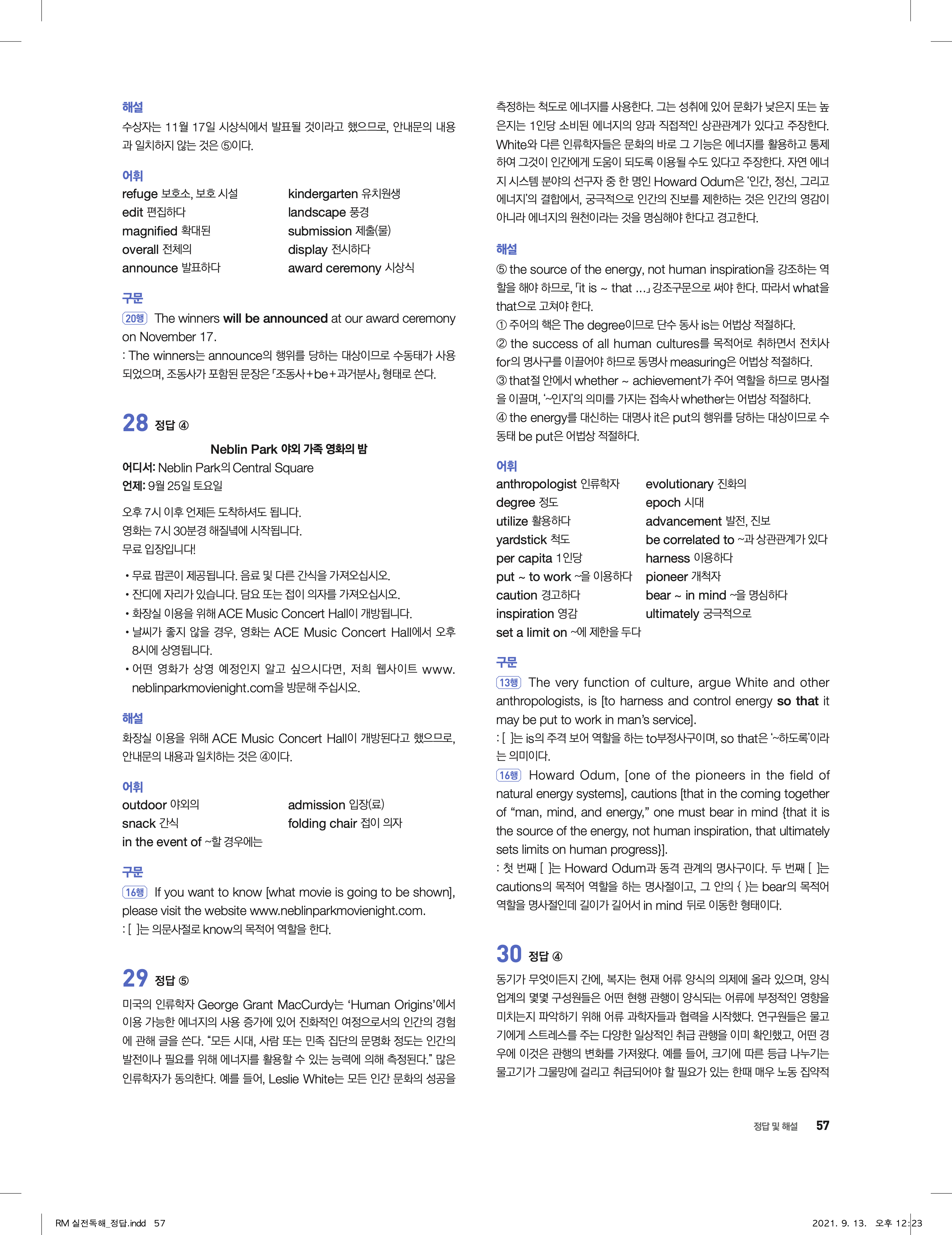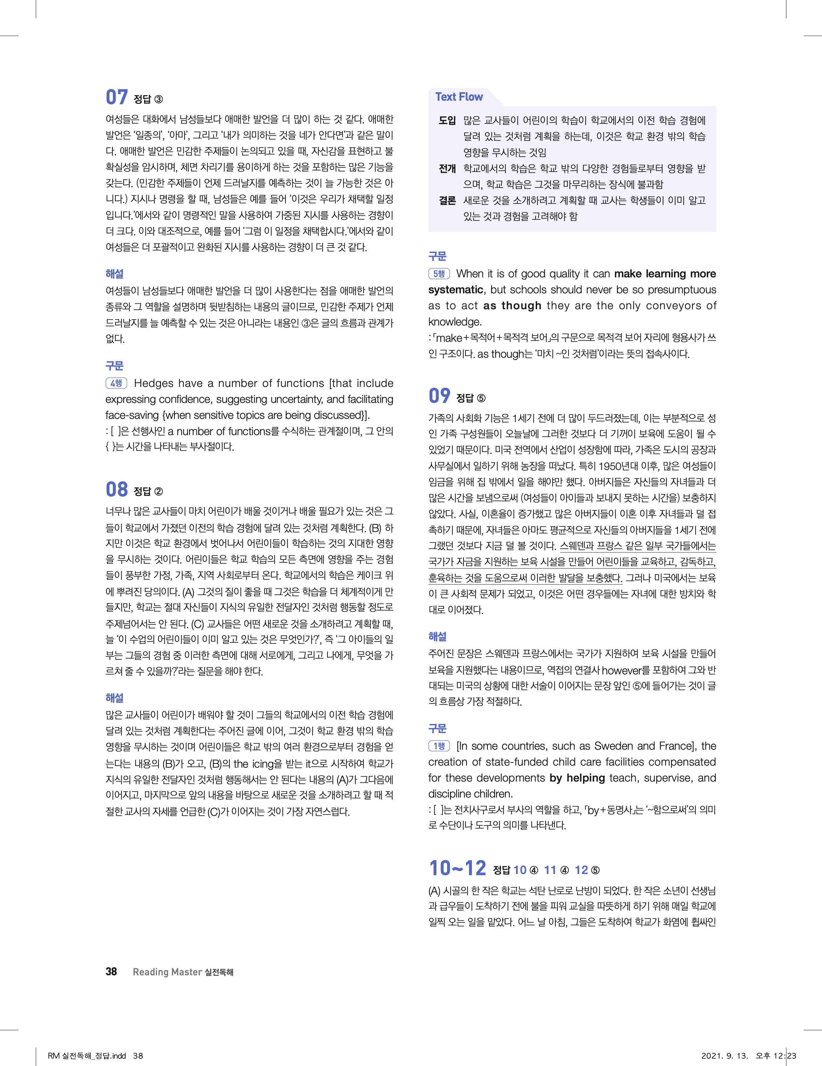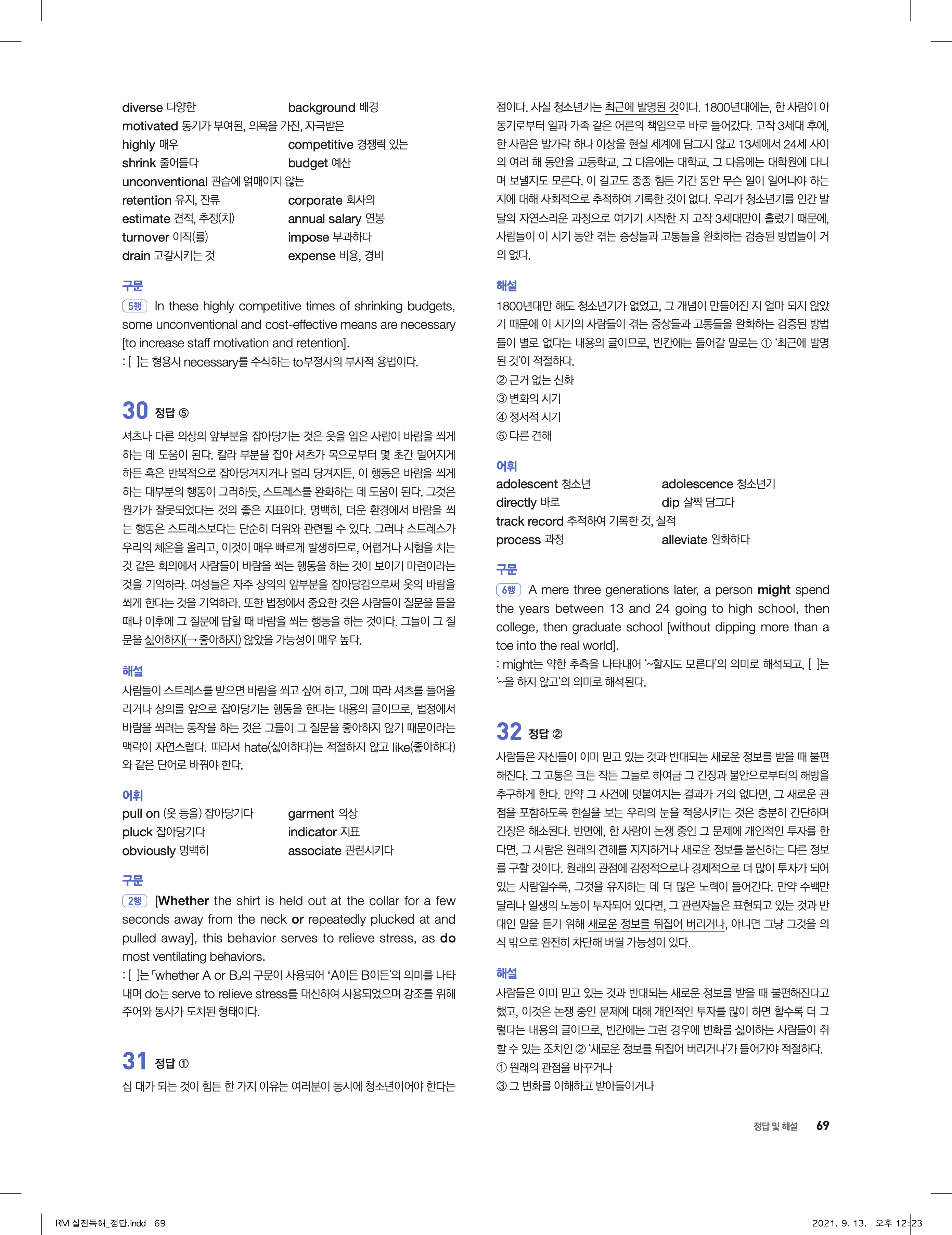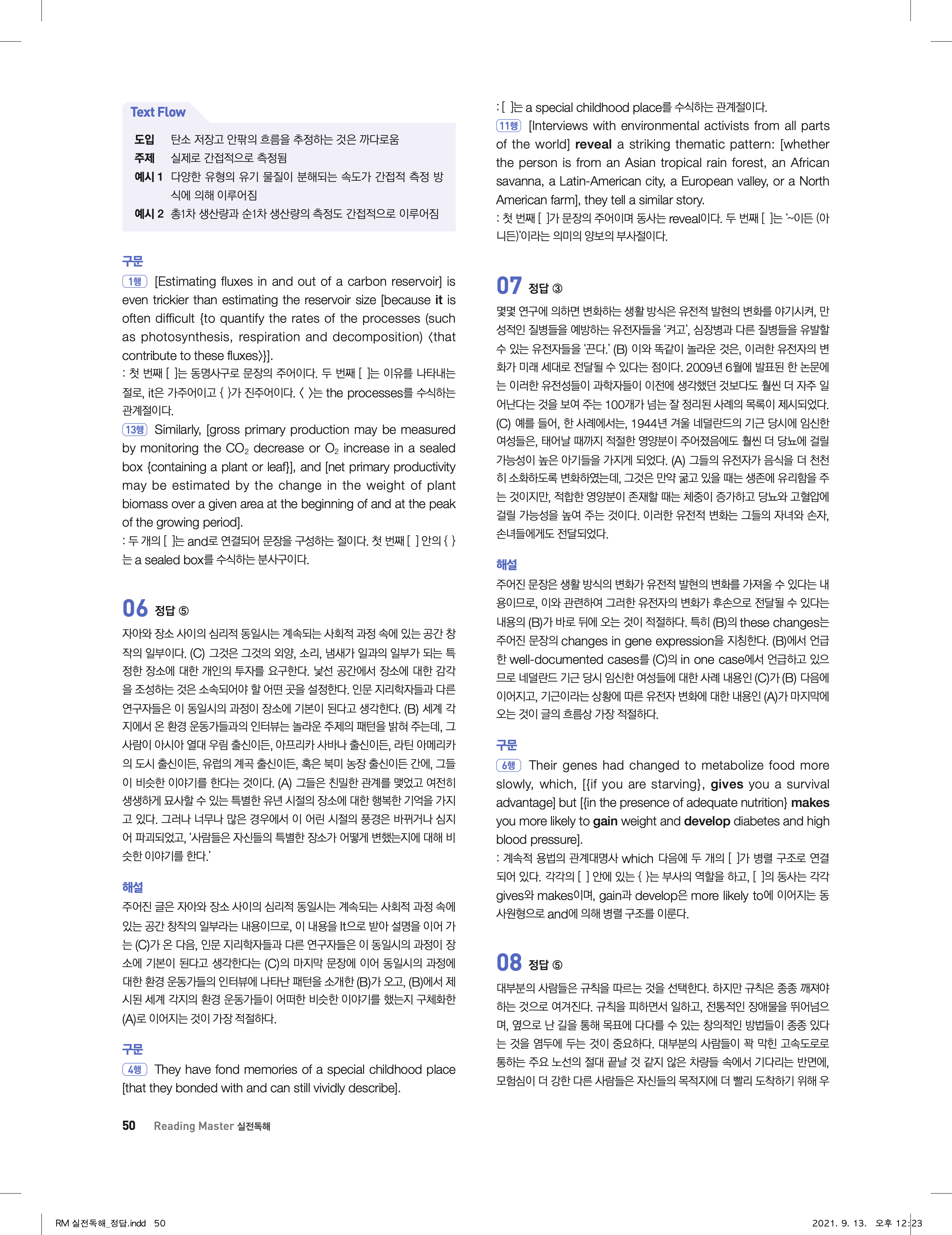 리딩마스터 실전독해 답지 해설 바로보는 사진답지 빠른답지 모바일최적화