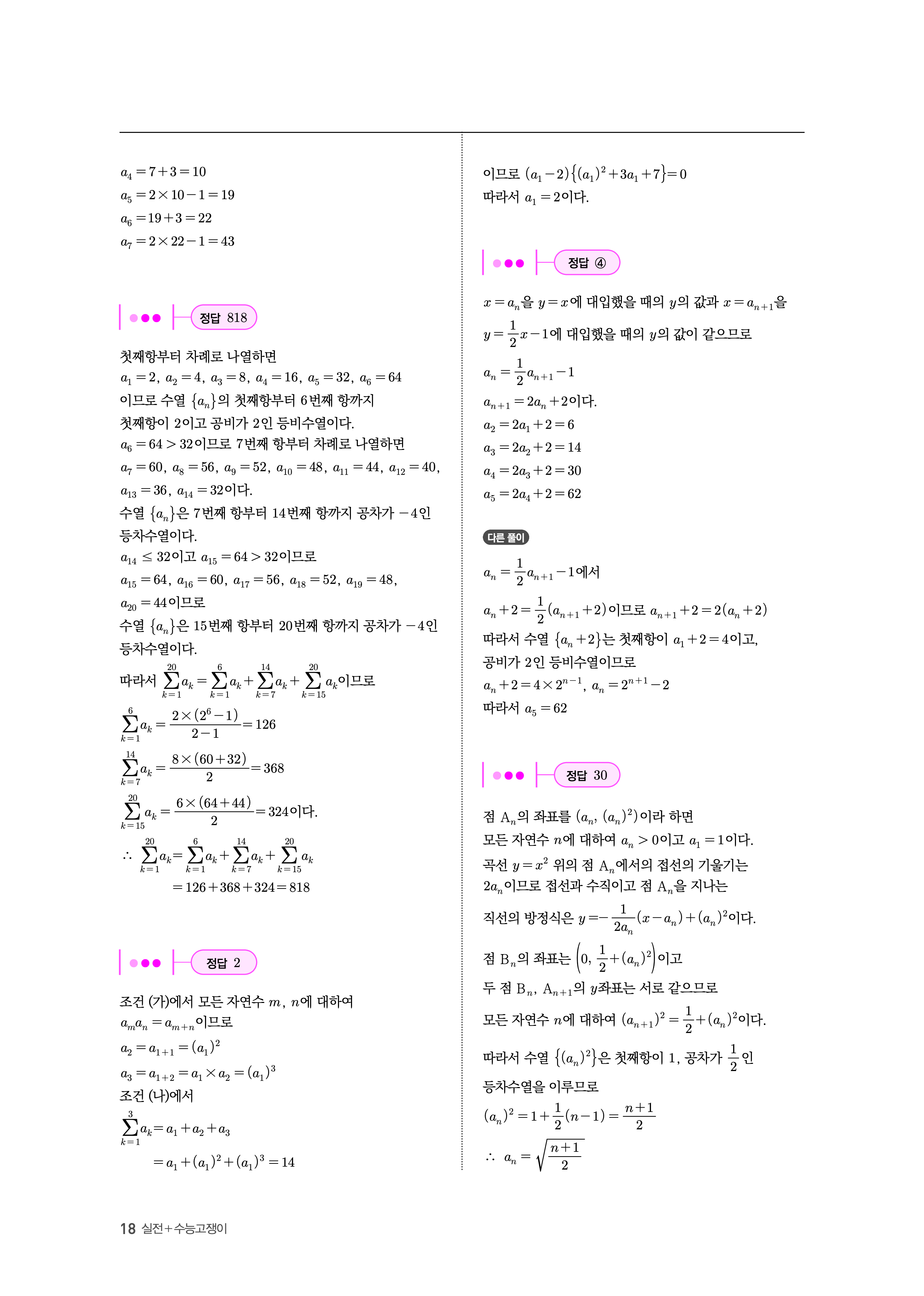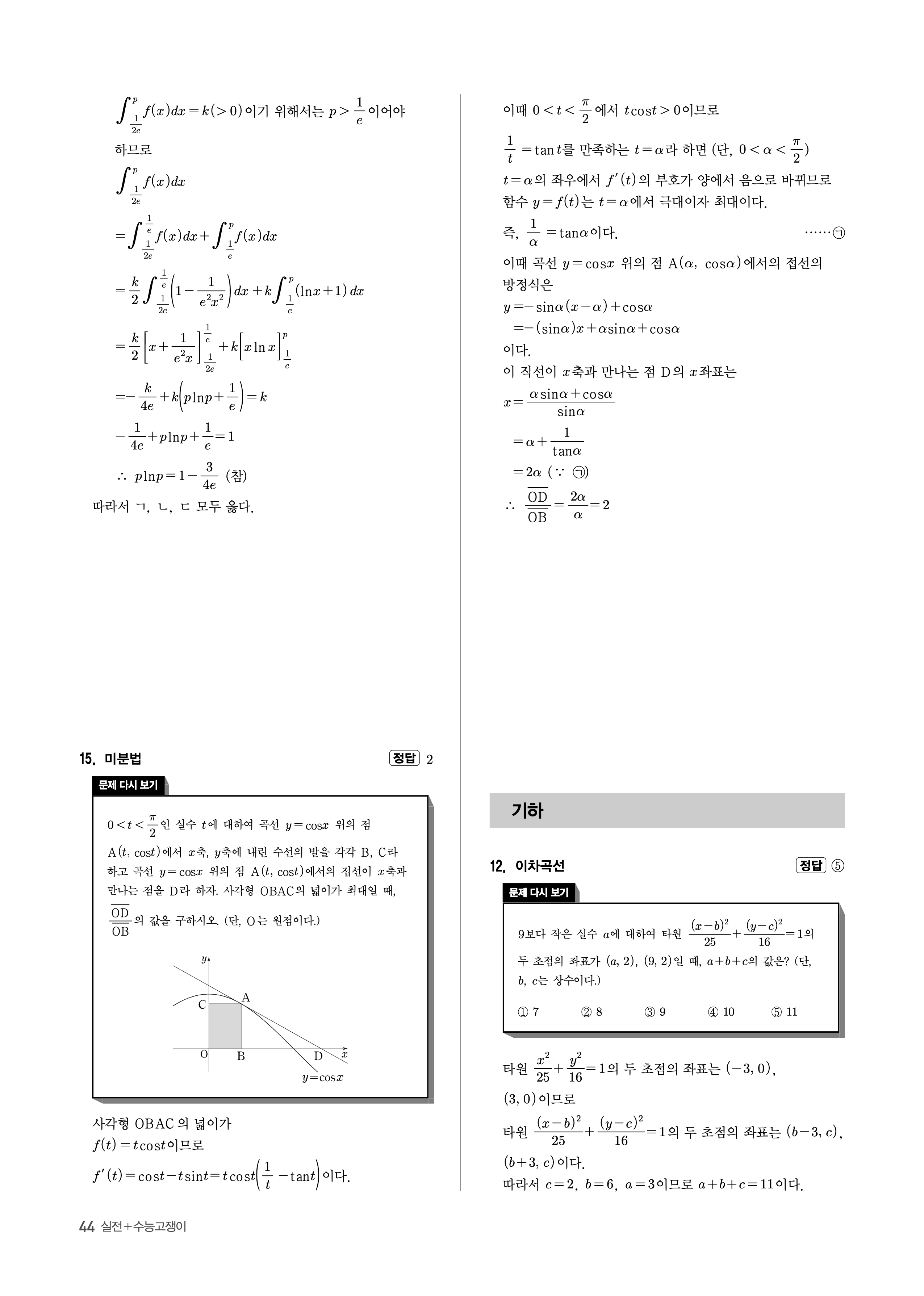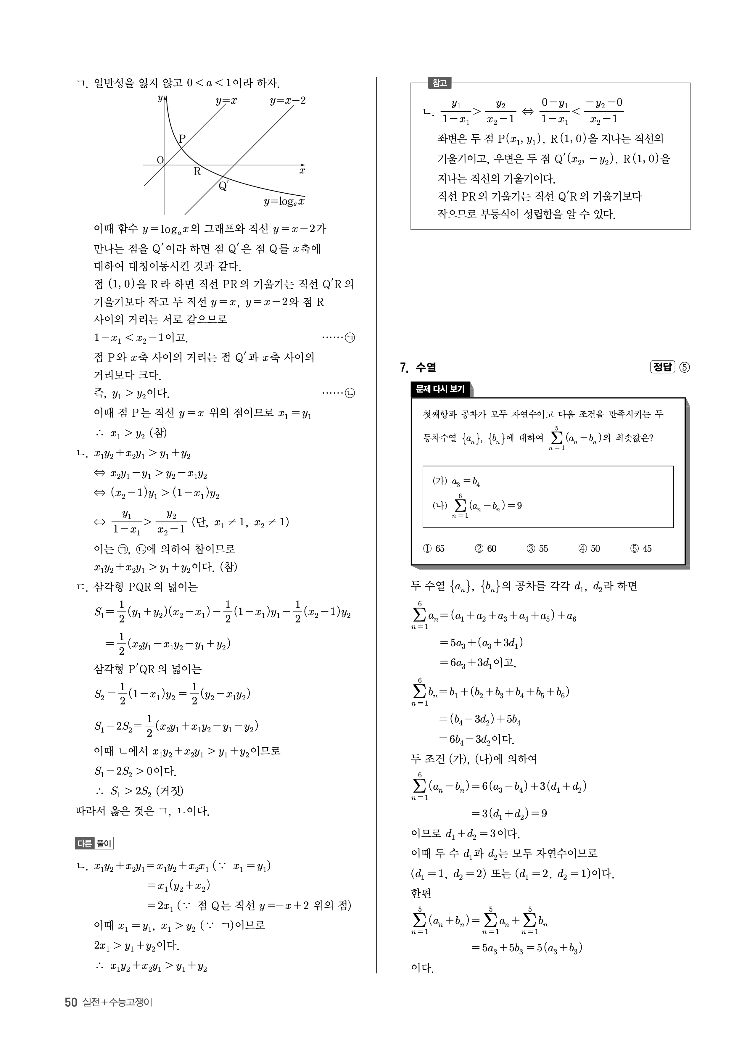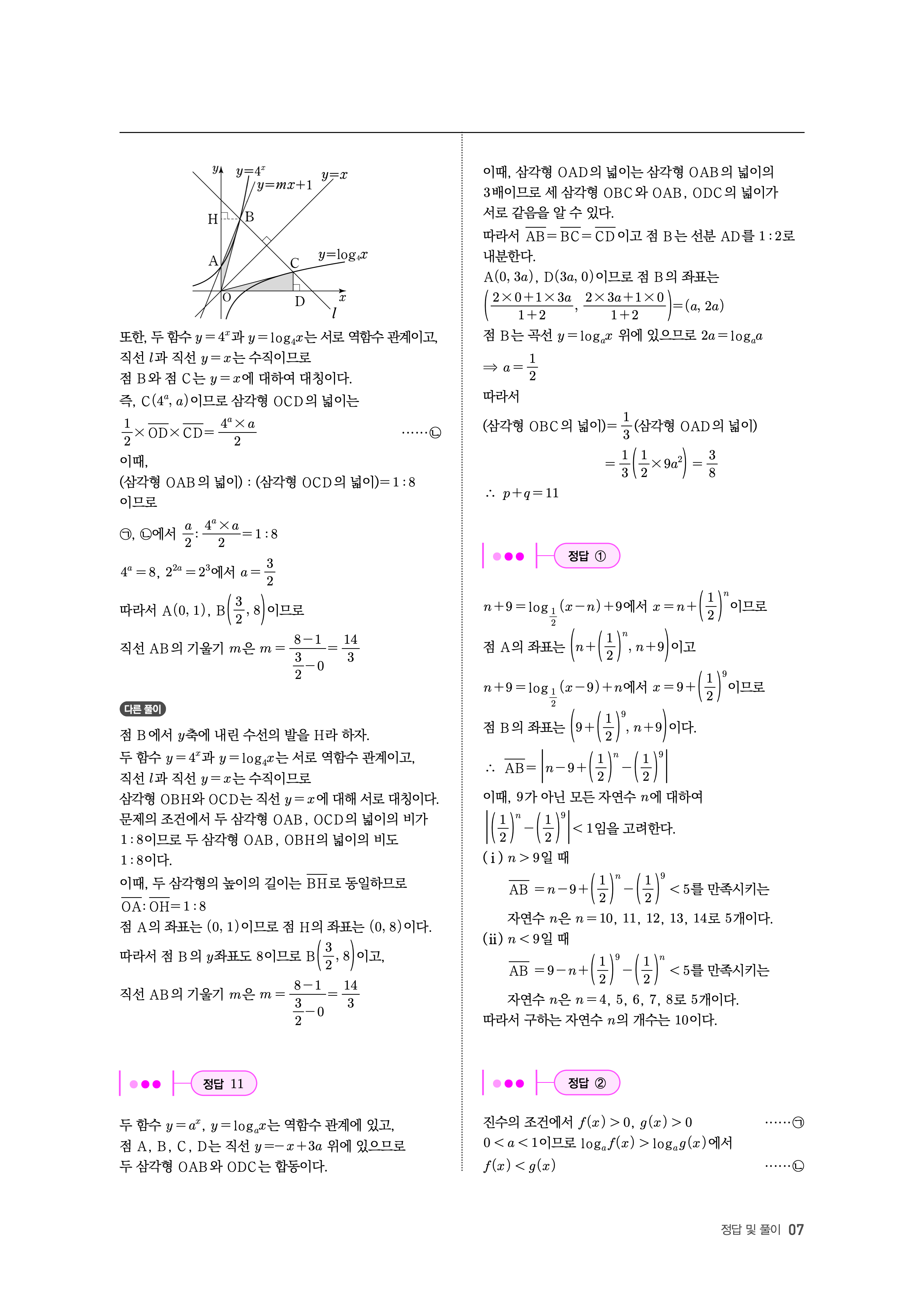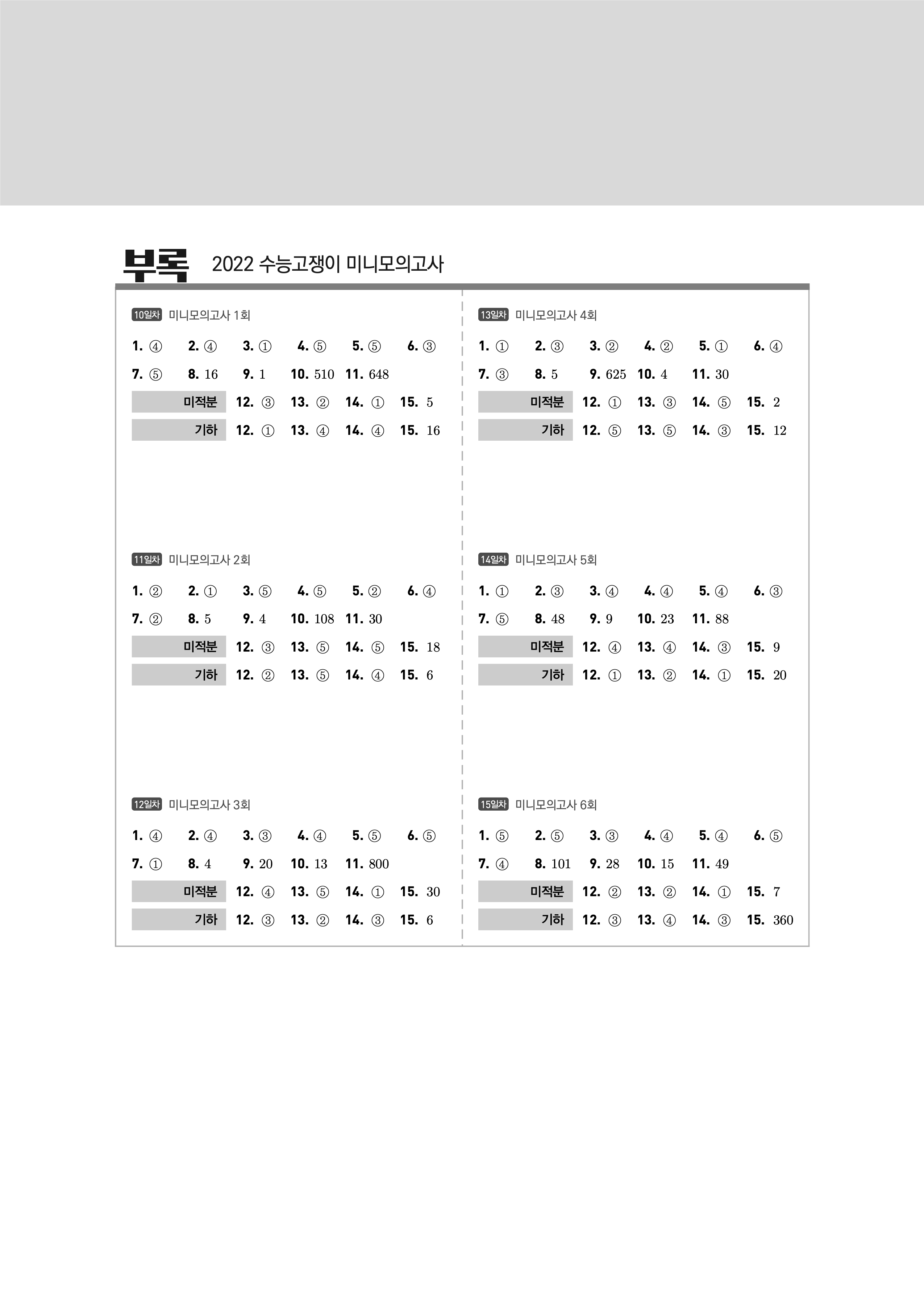 수능고쟁이 수학1 수학2 미적 기하 답지 해설 바로보는 사진답지 빠른답지 모바일최적화