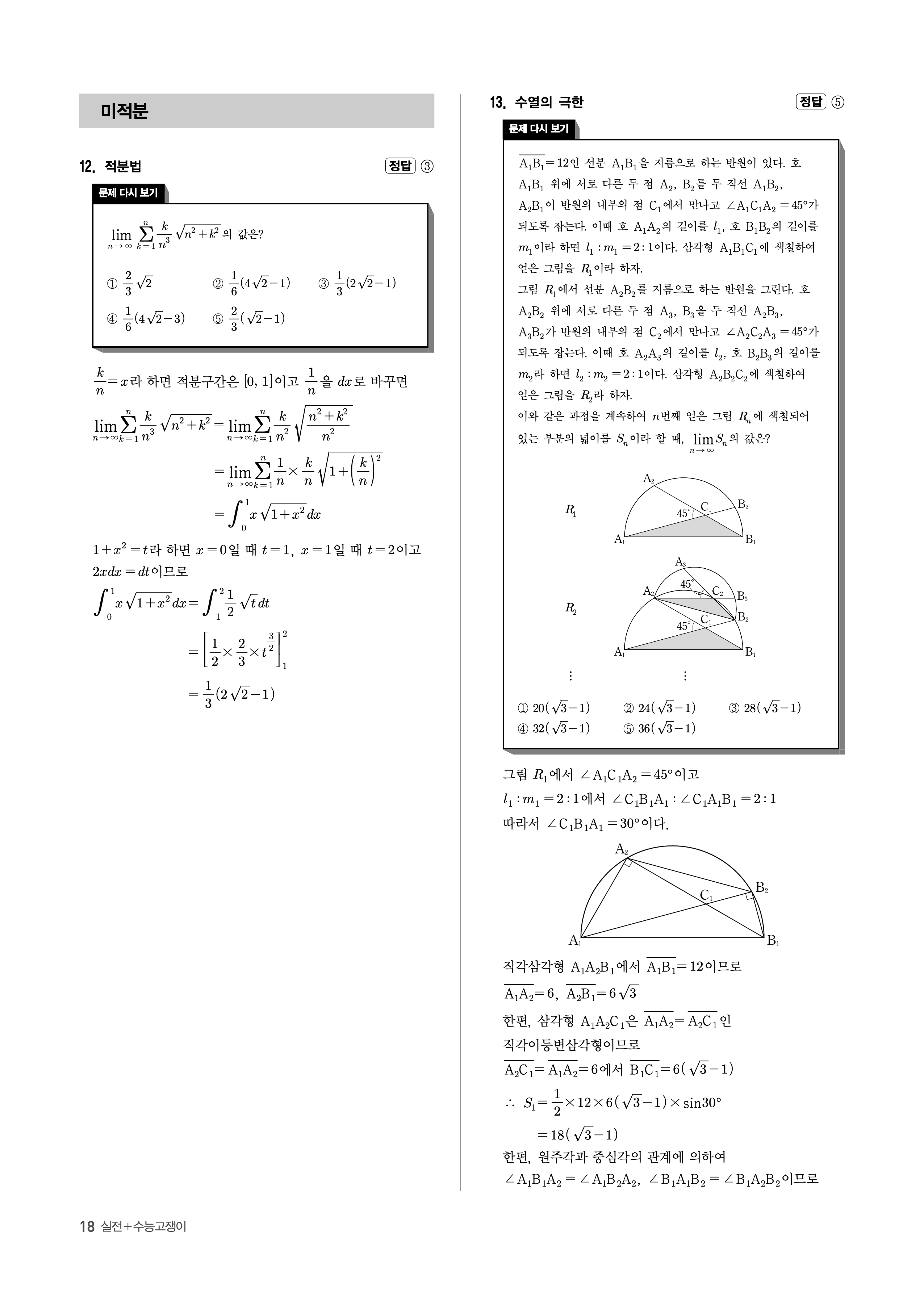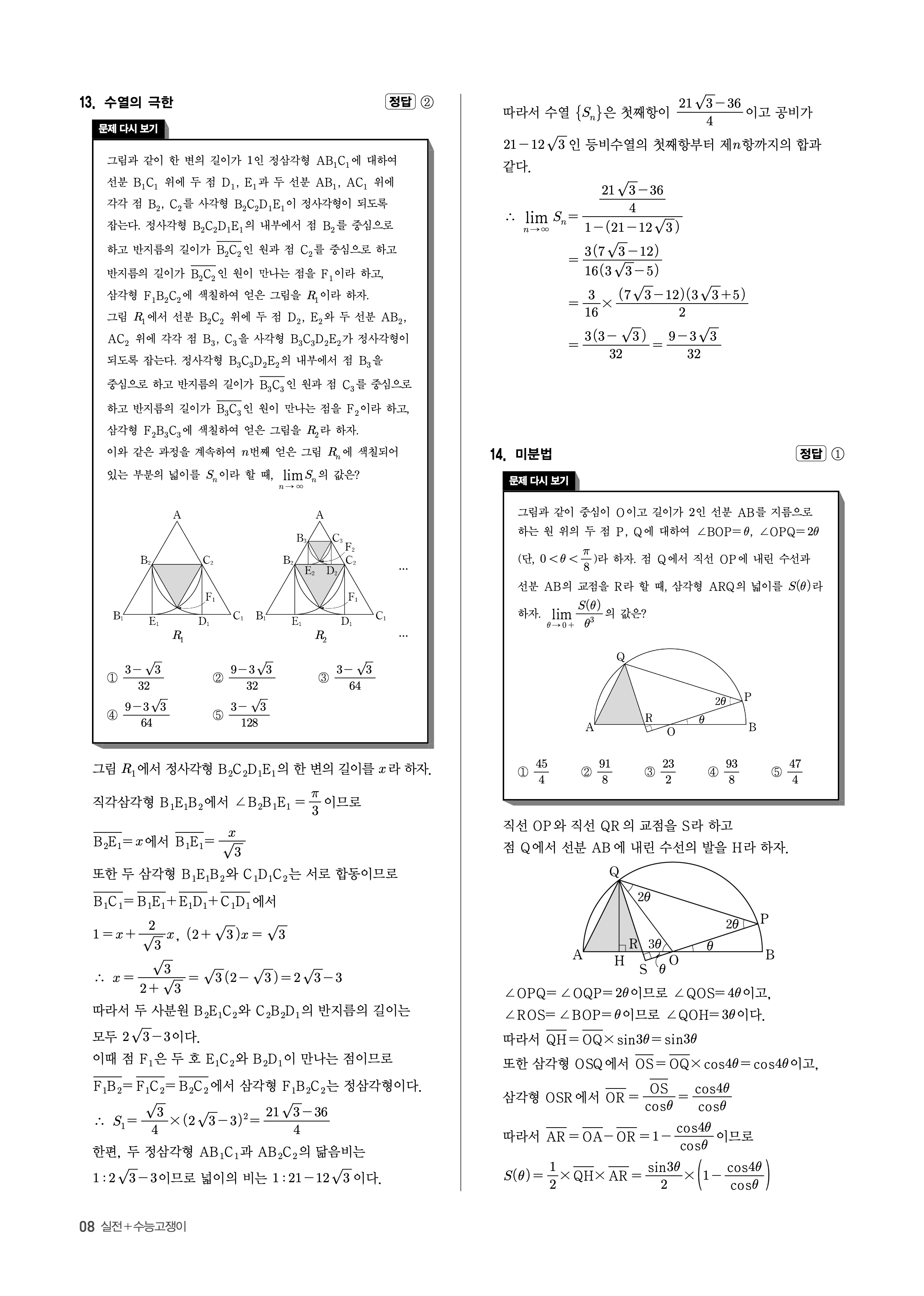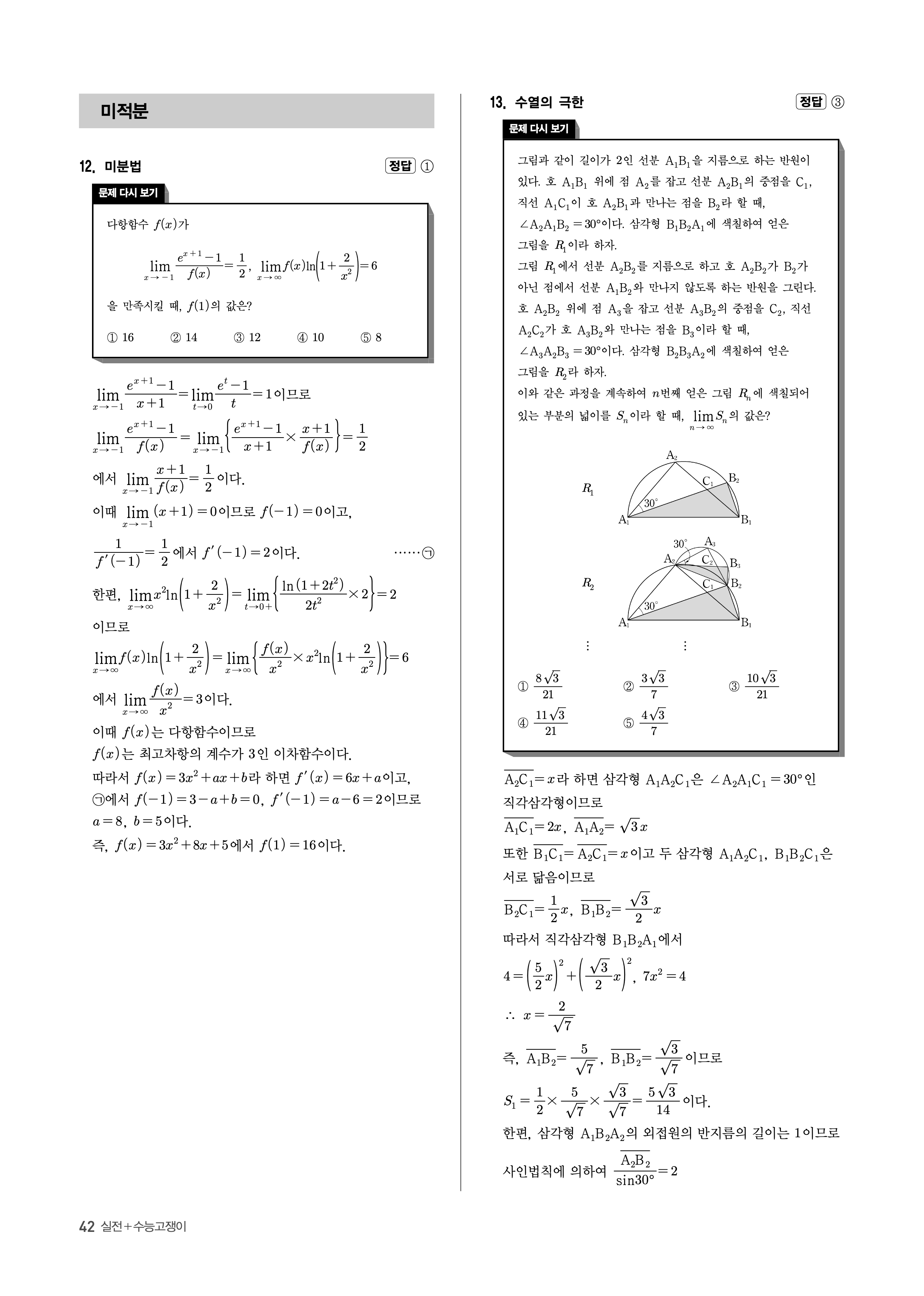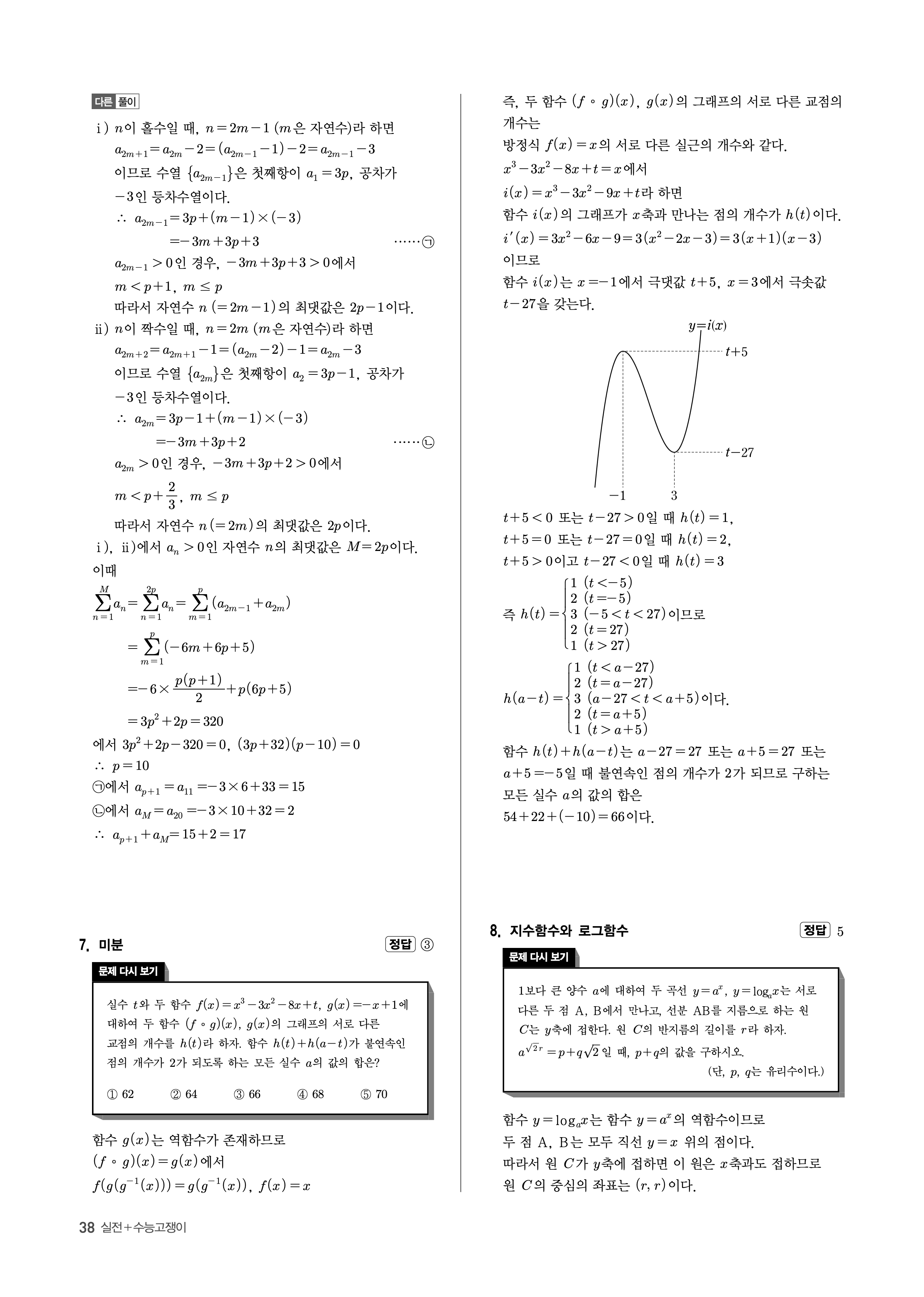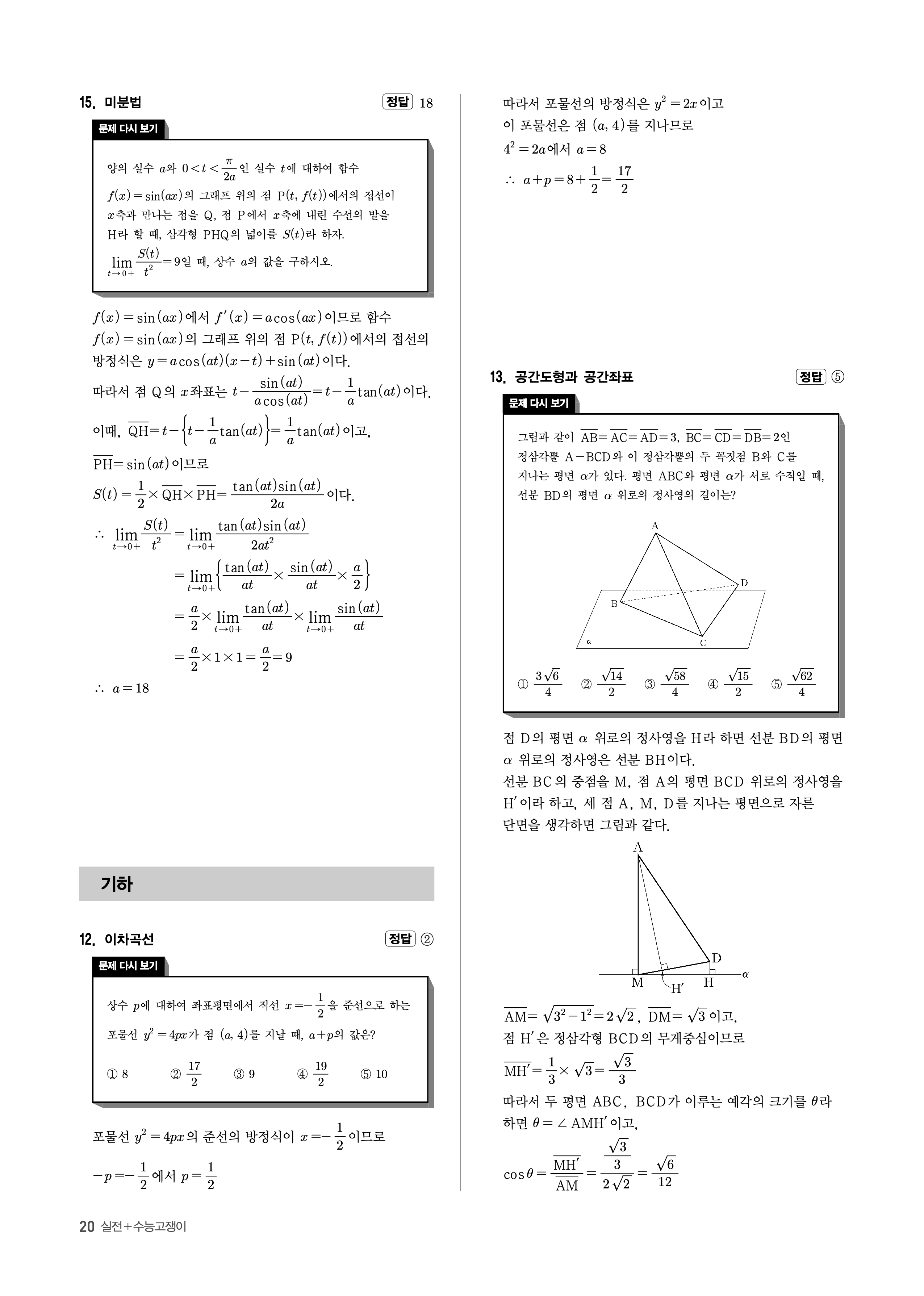수능고쟁이 수학1 수학2 미적 기하 답지 해설 바로보는 사진답지 빠른답지 모바일최적화