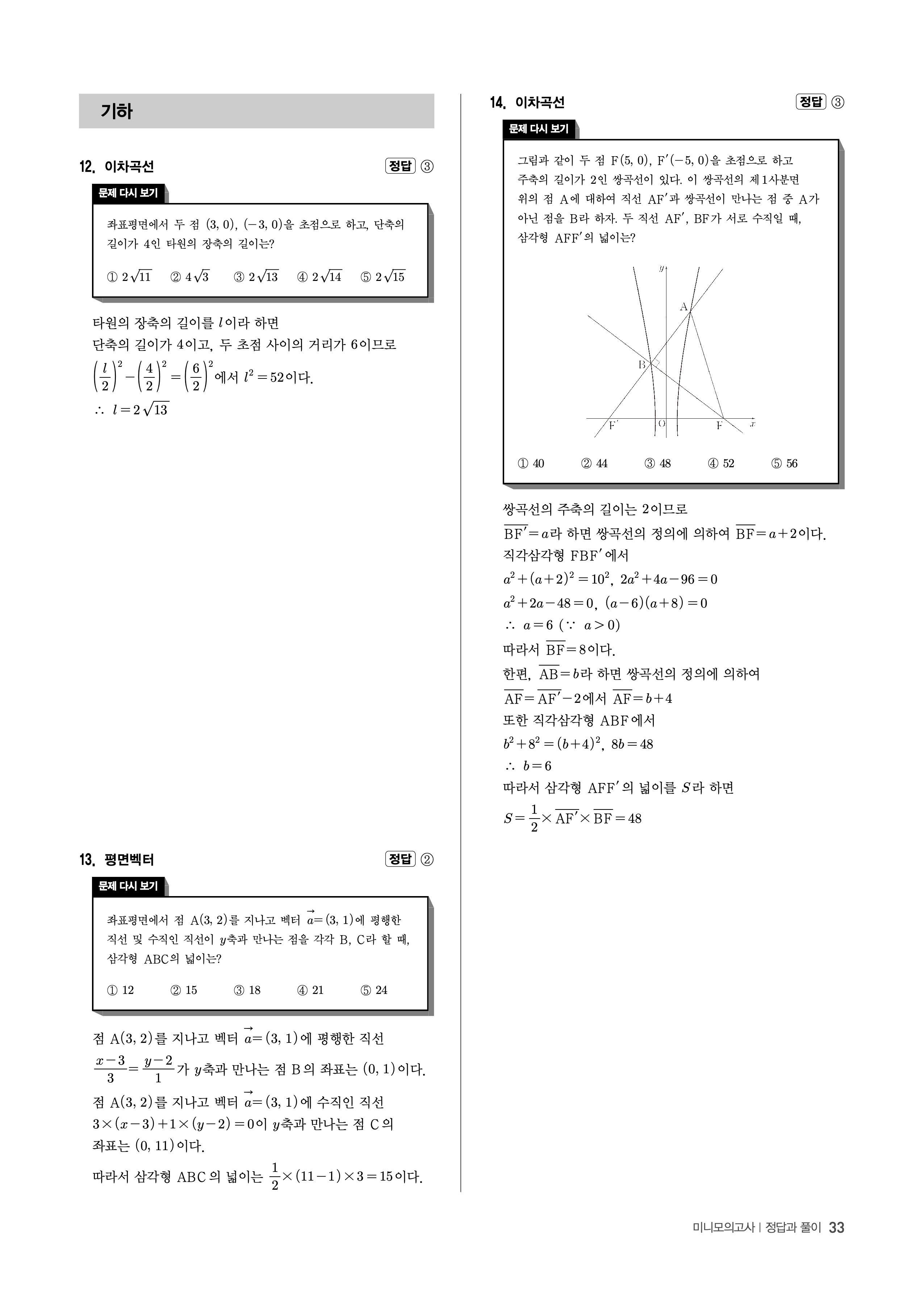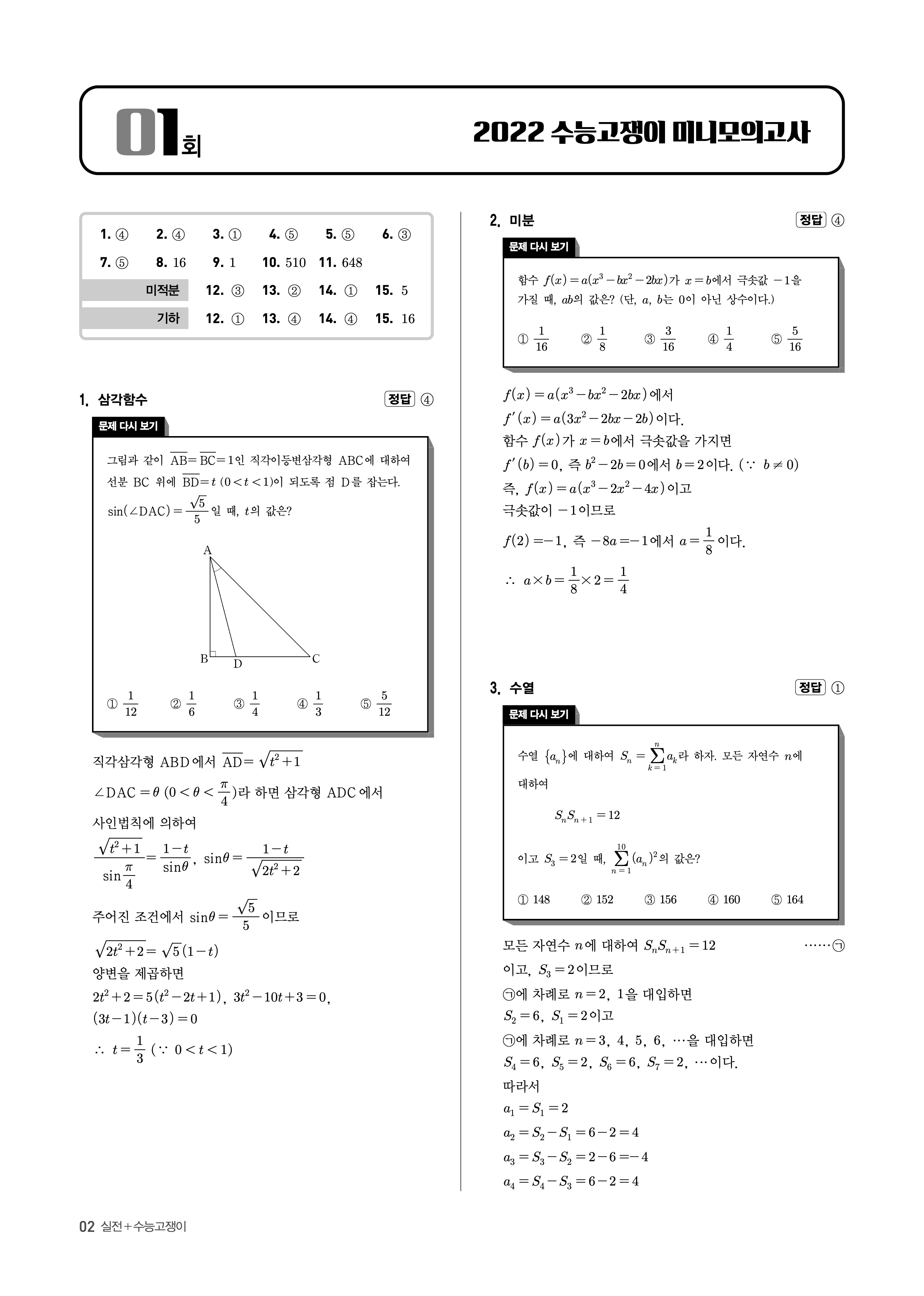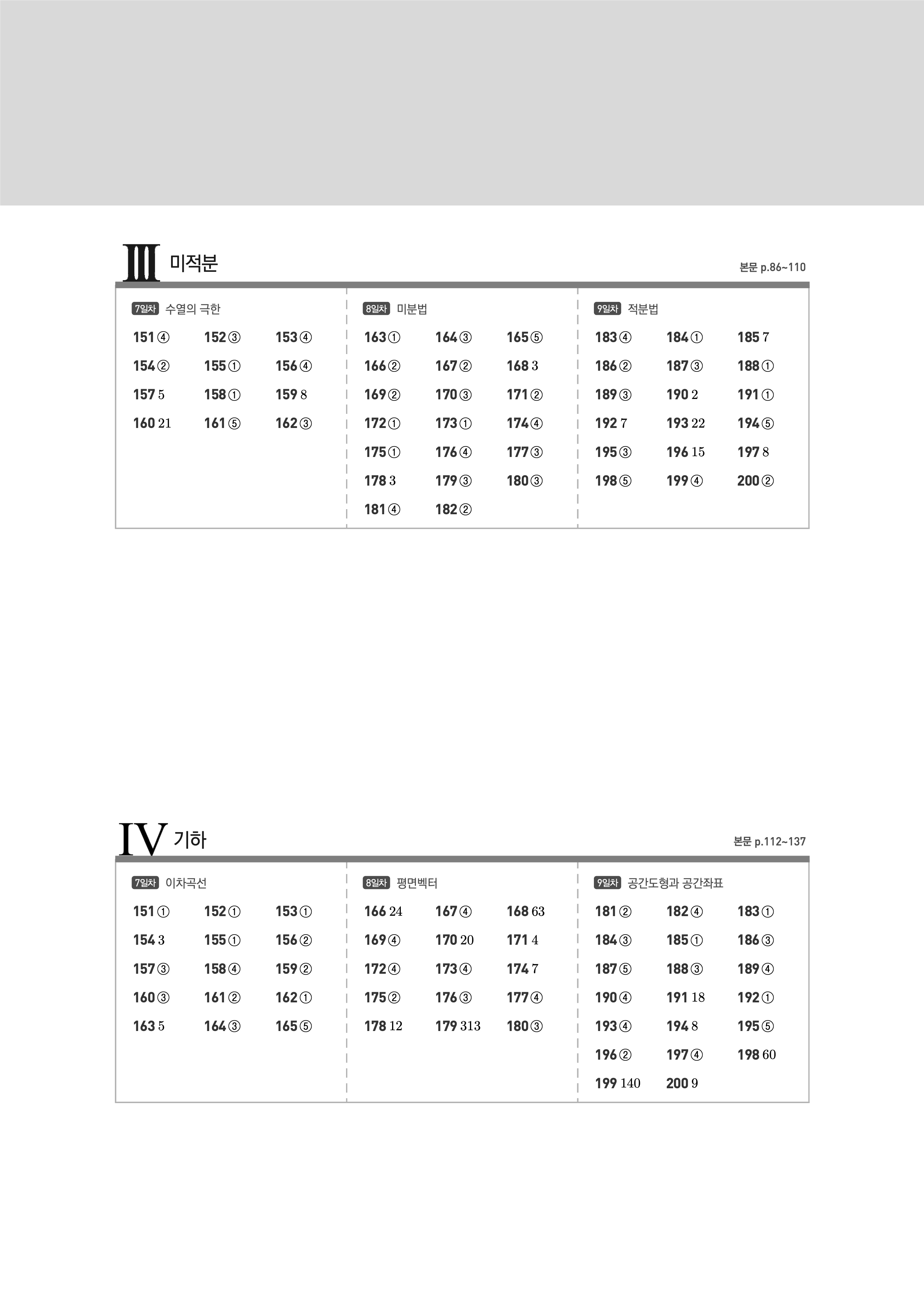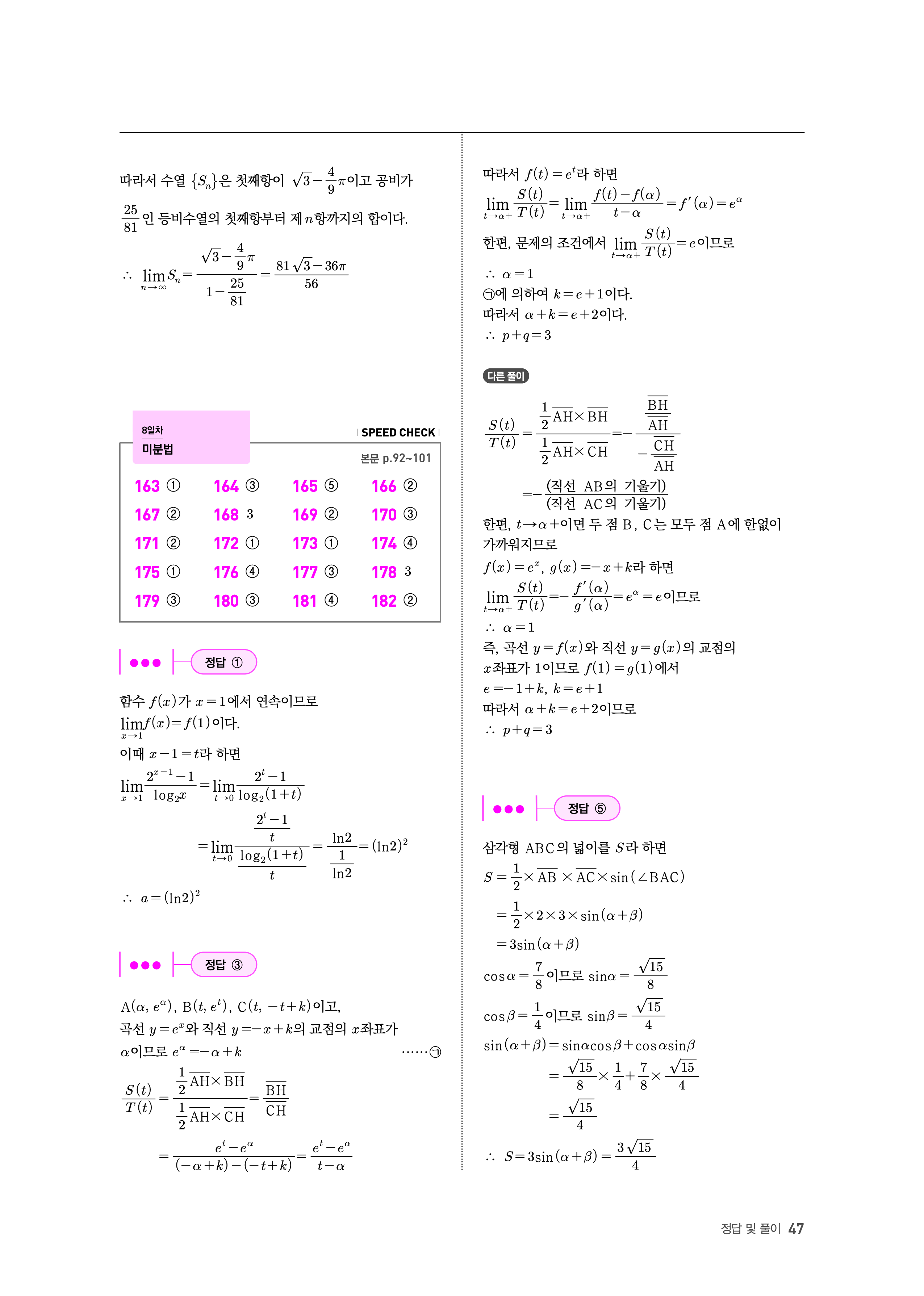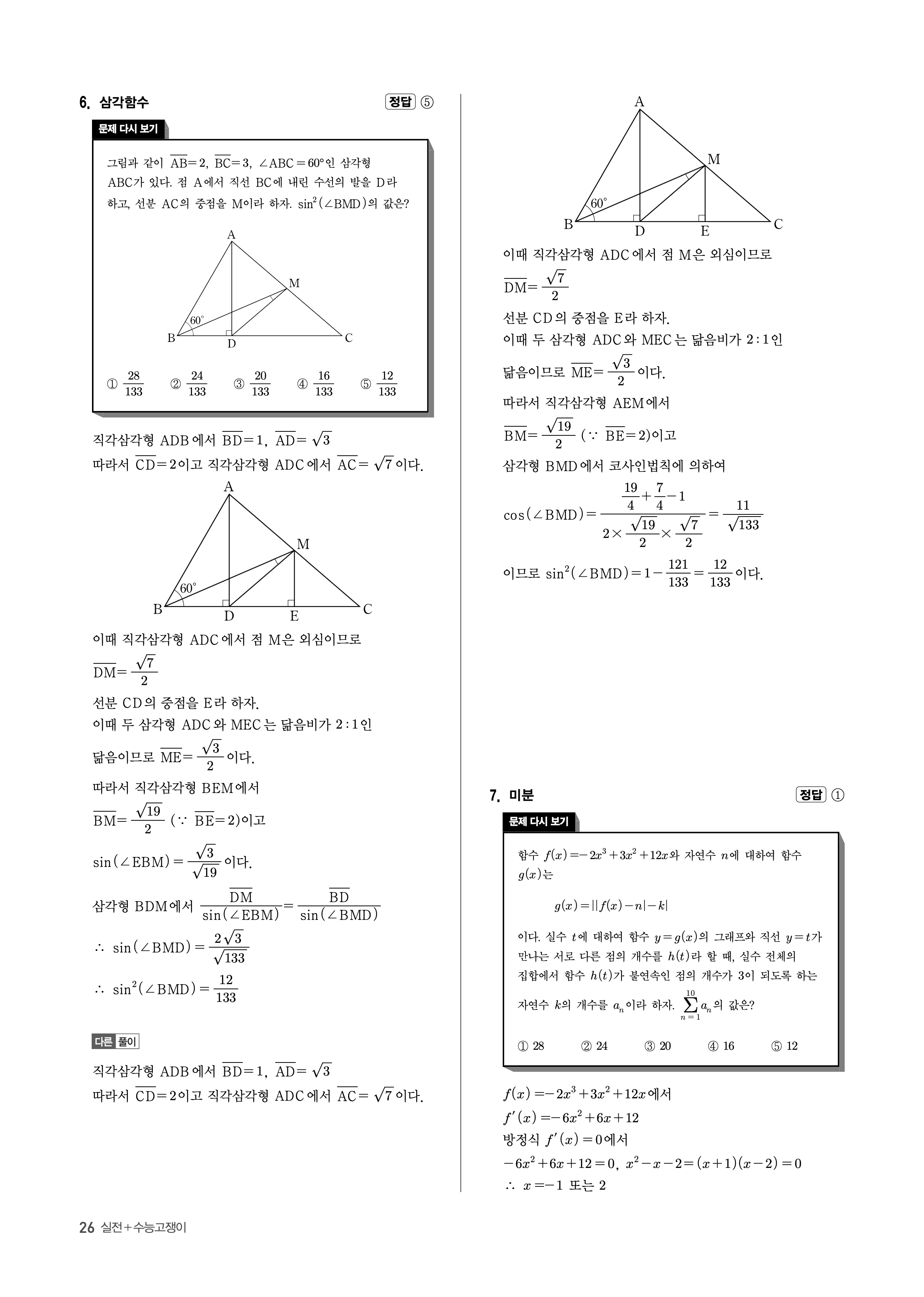 수능고쟁이 수학1 수학2 미적 기하 답지 해설 바로보는 사진답지 빠른답지 모바일최적화