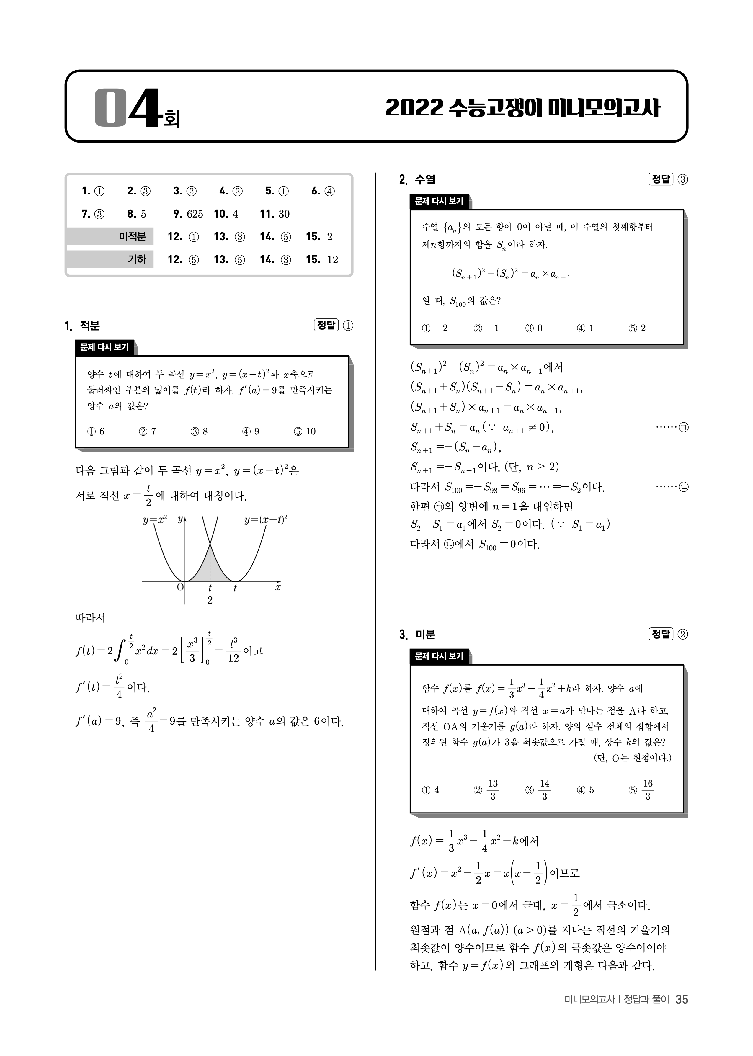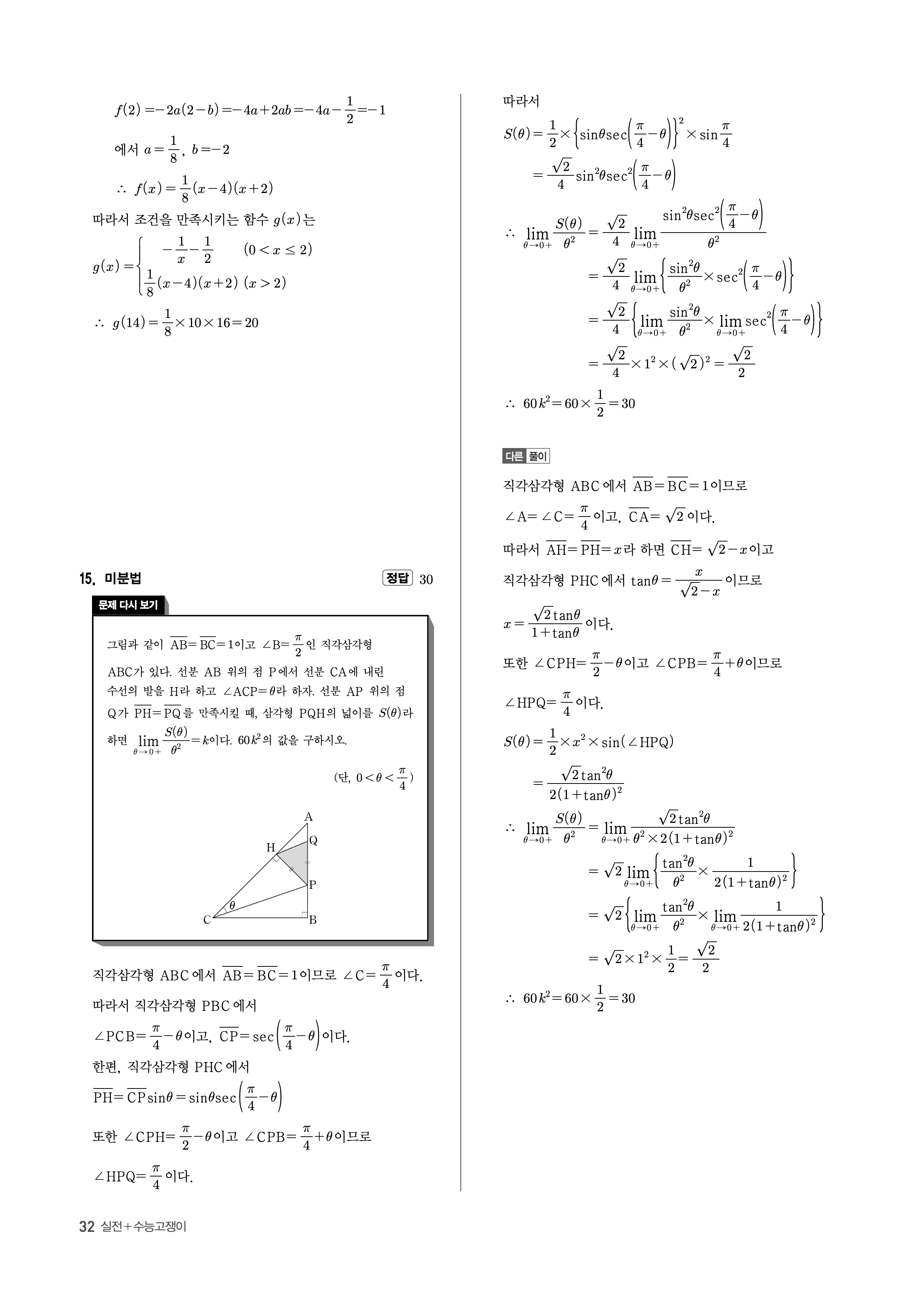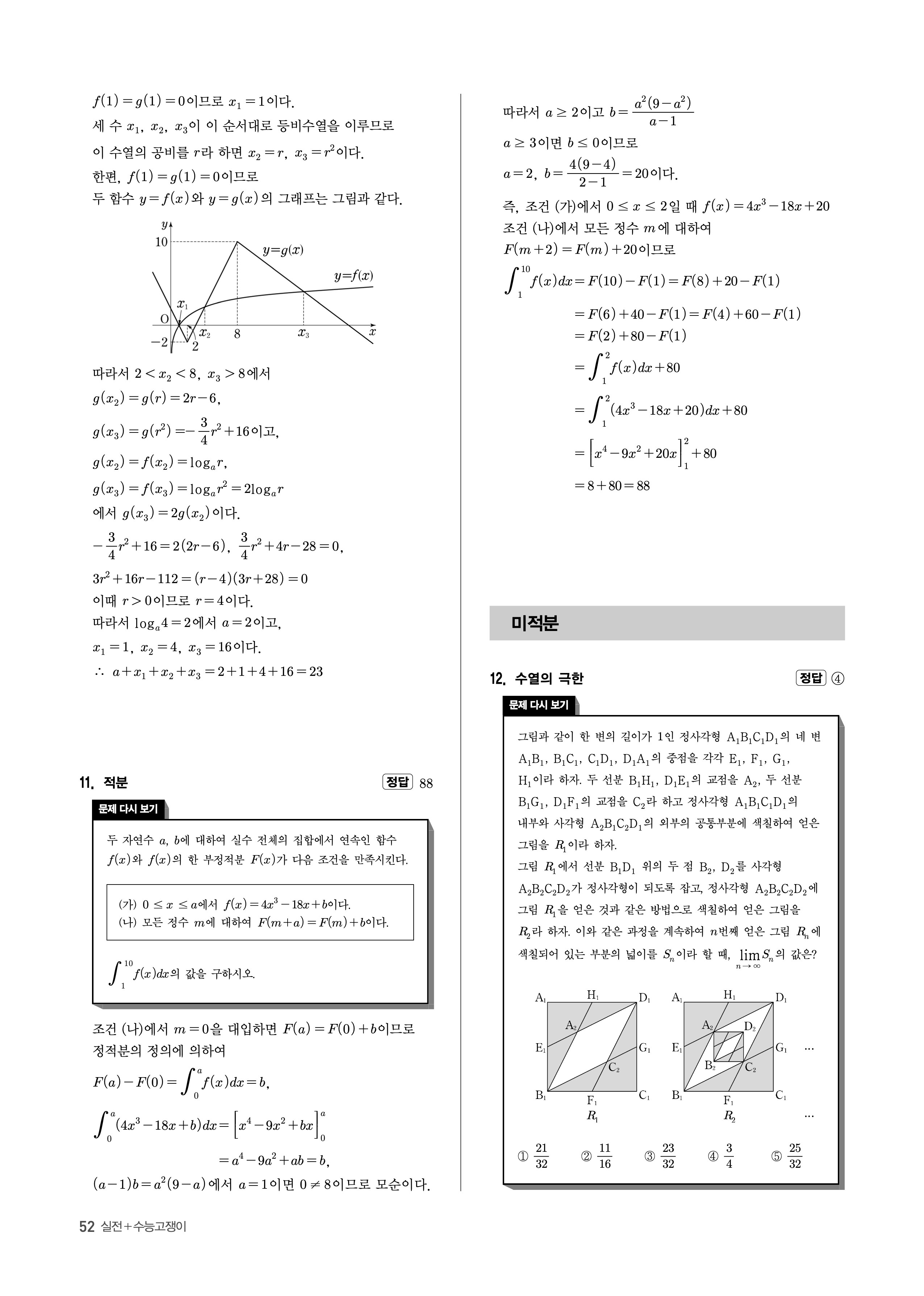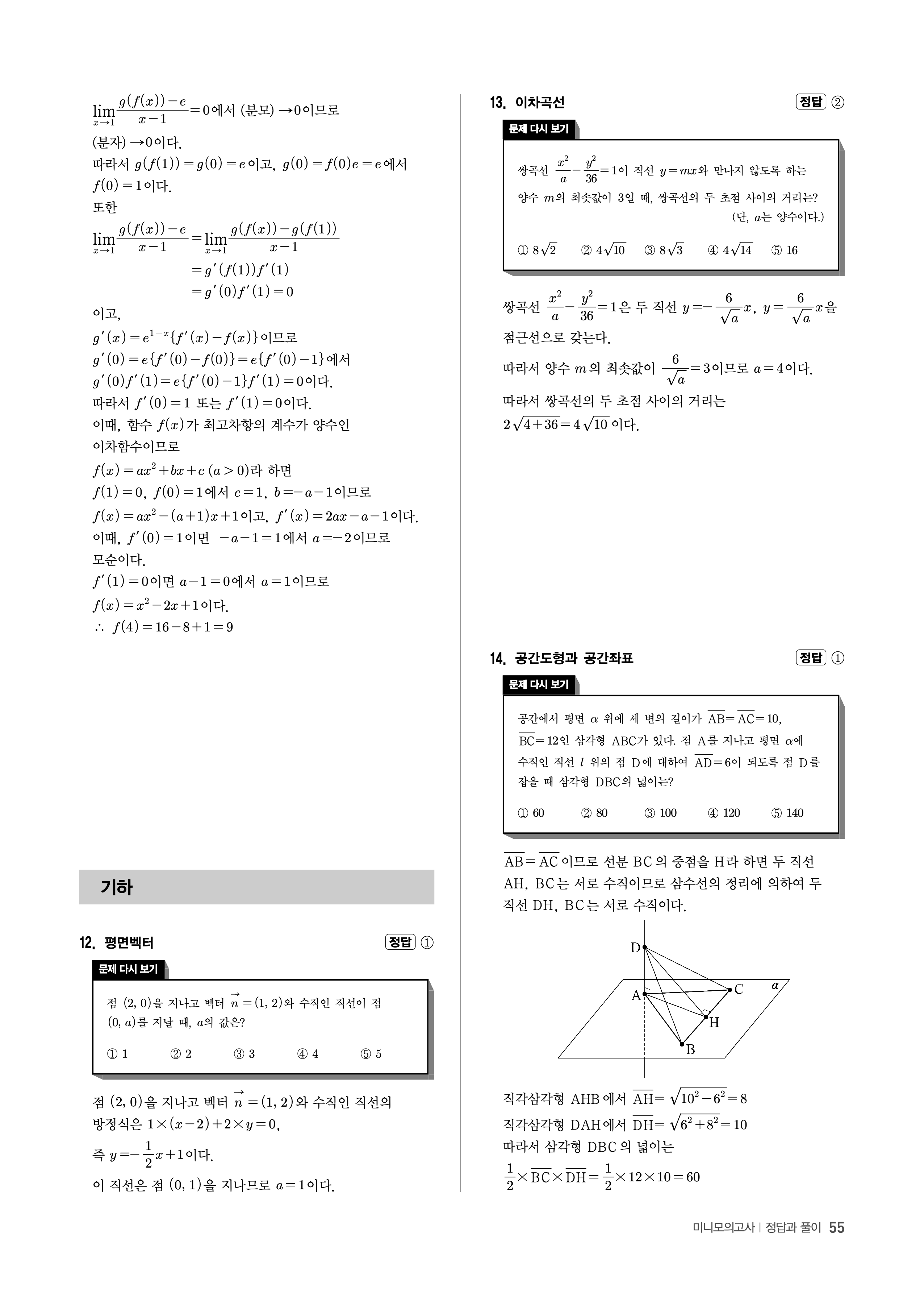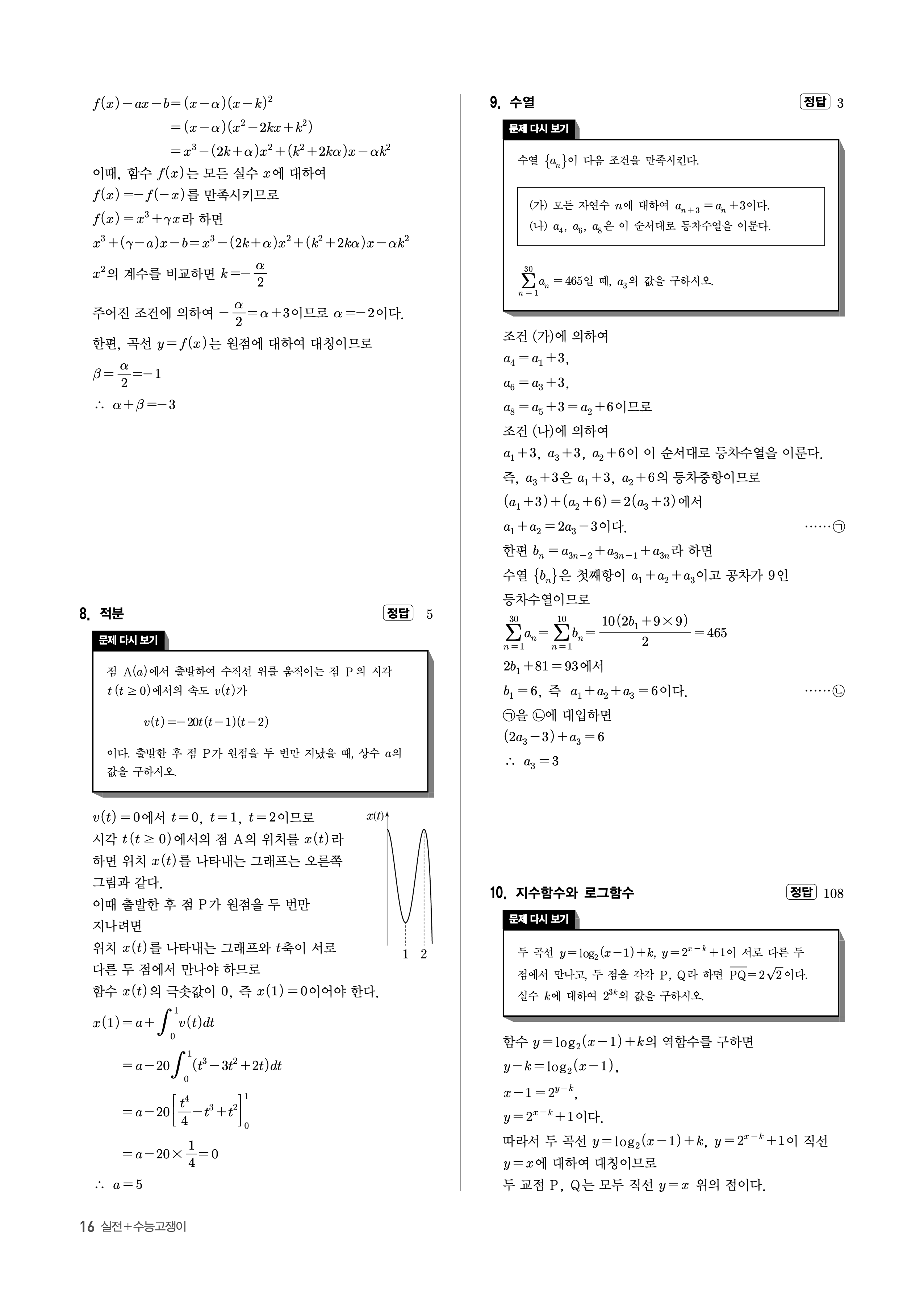 수능고쟁이 수학1 수학2 미적 기하 답지 해설 바로보는 사진답지 빠른답지 모바일최적화