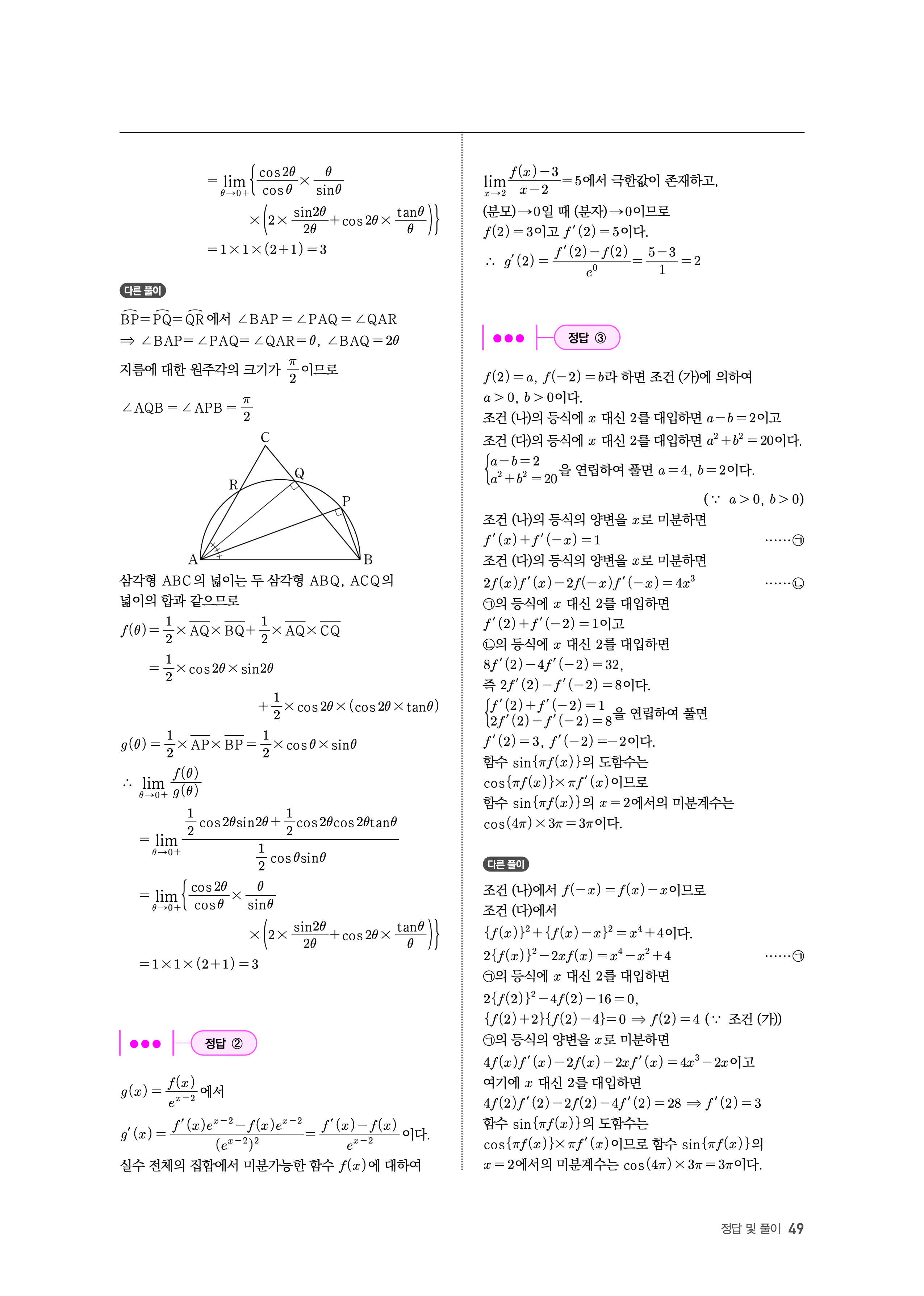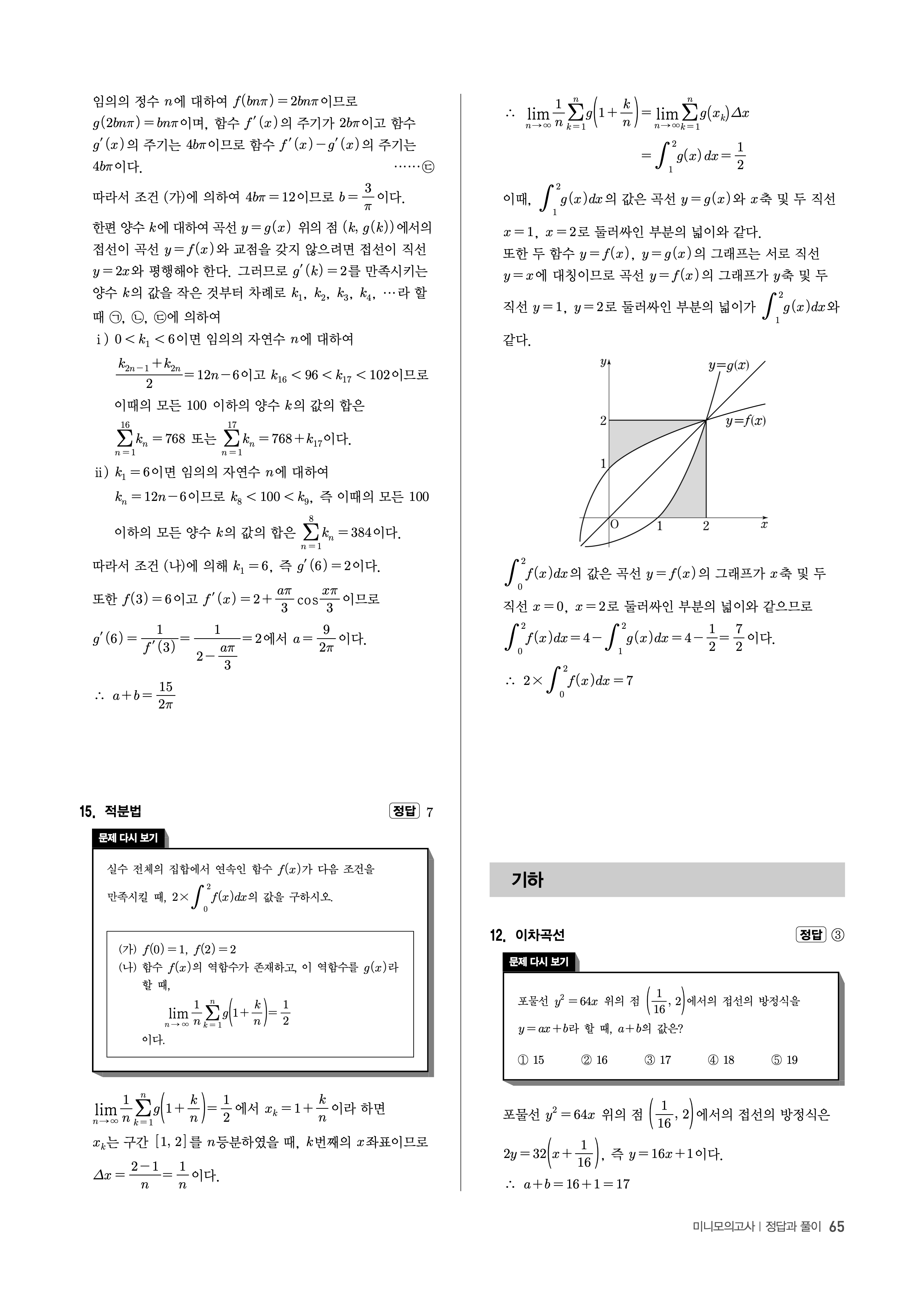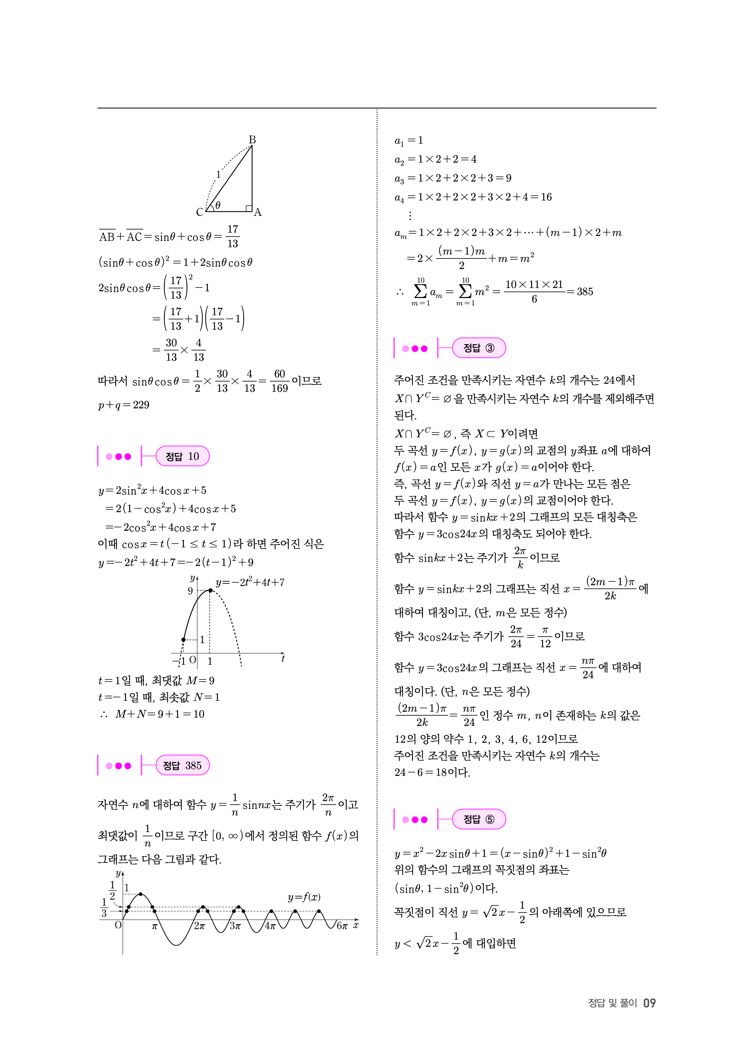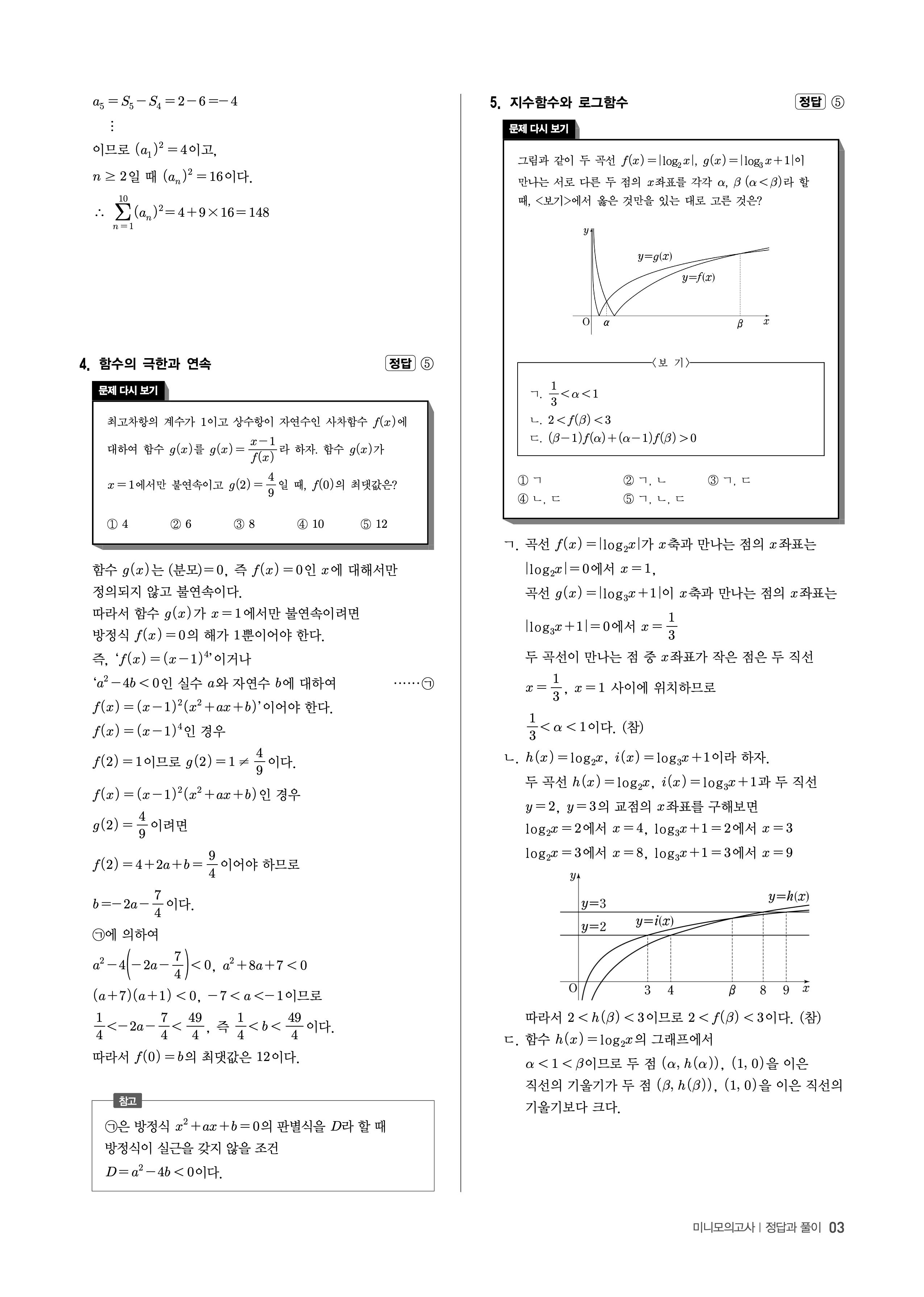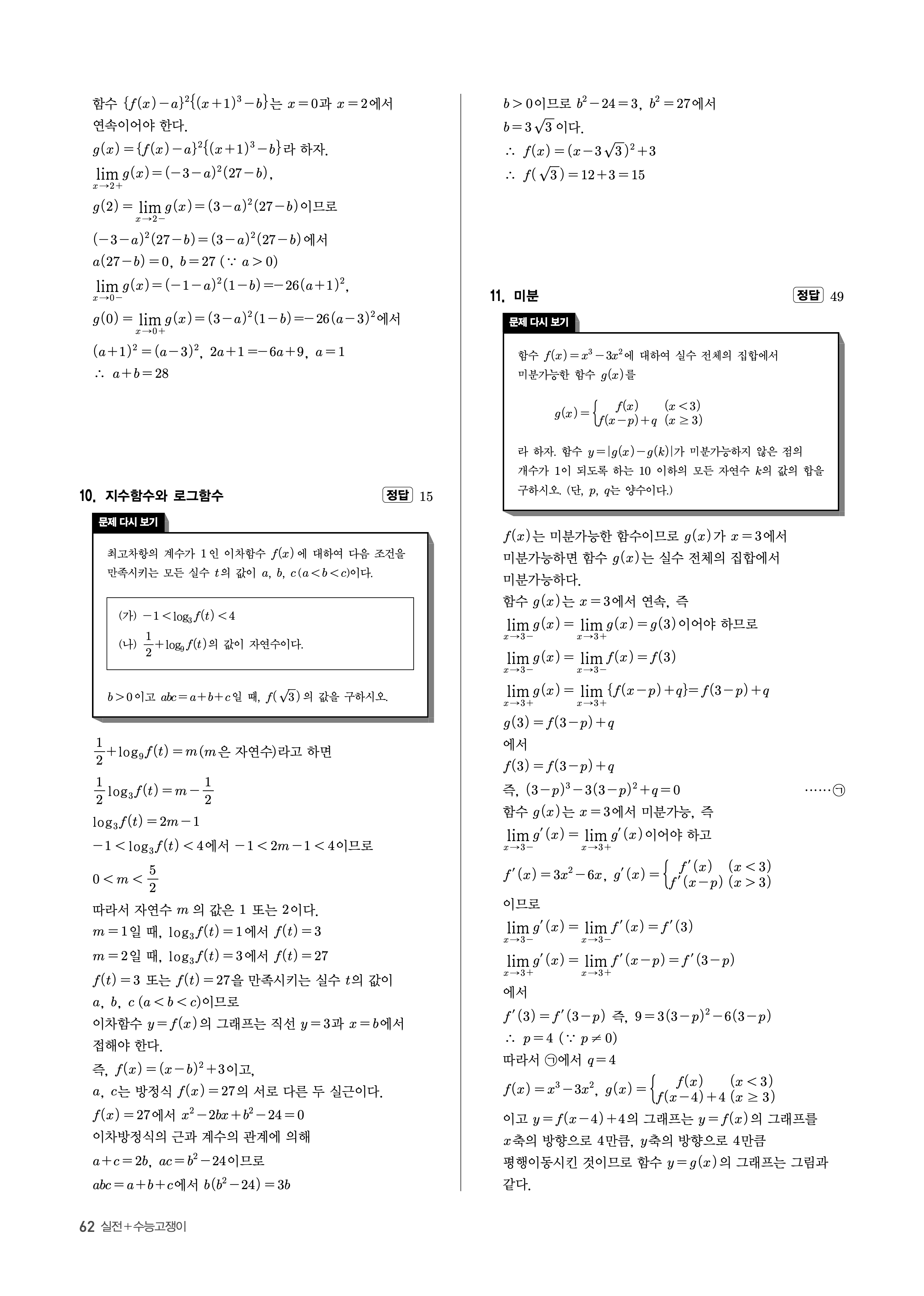 수능고쟁이 수학1 수학2 미적 기하 답지 해설 바로보는 사진답지 빠른답지 모바일최적화