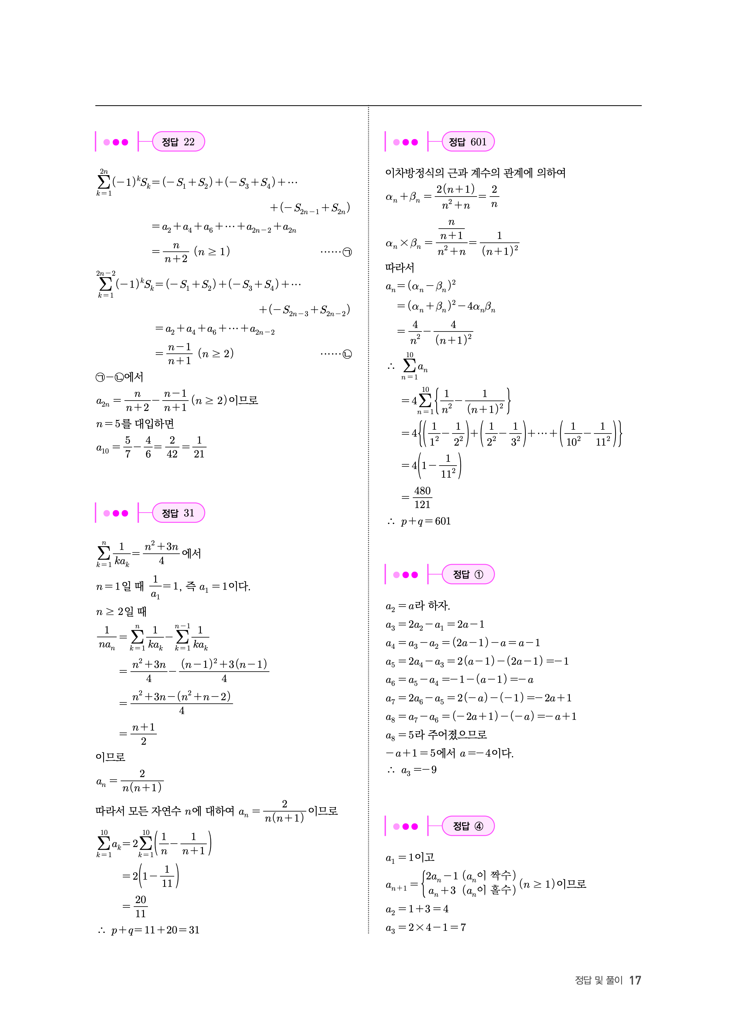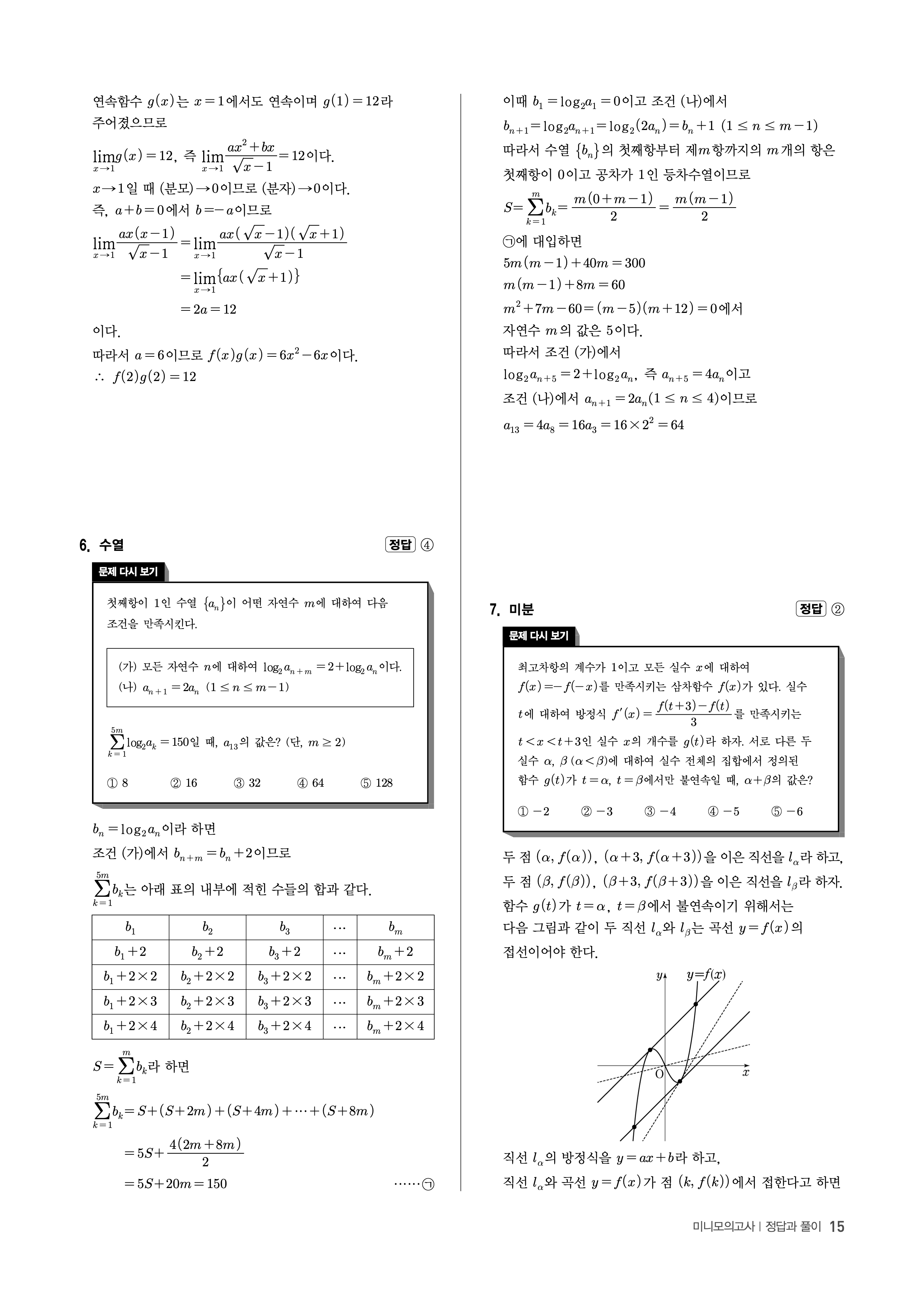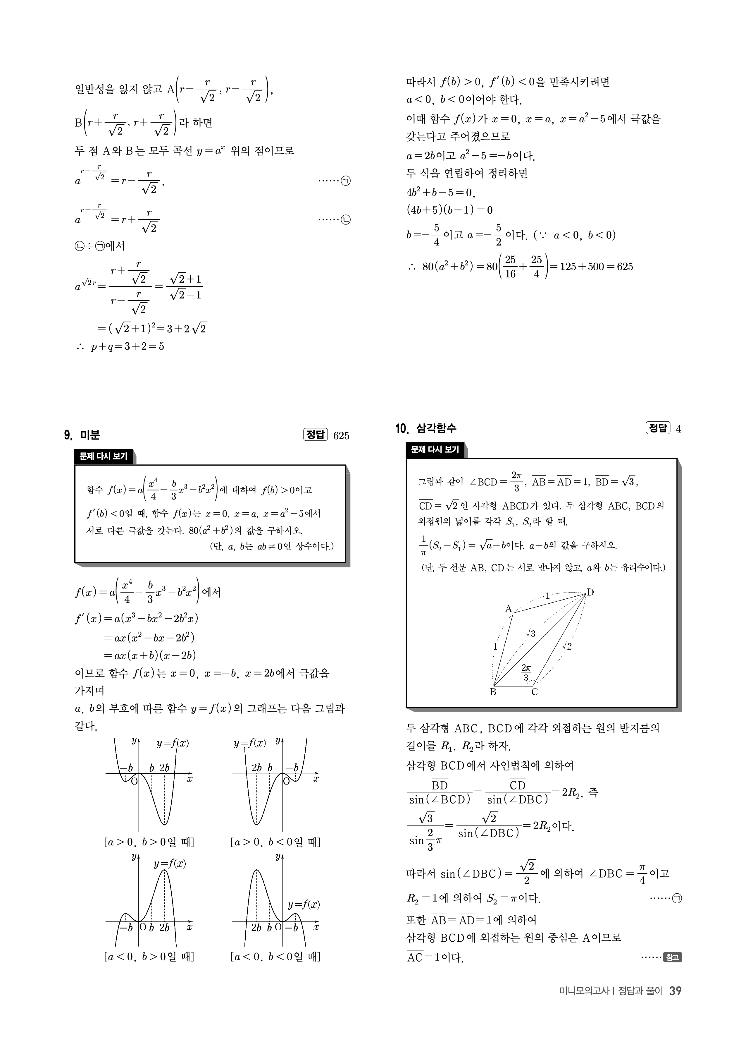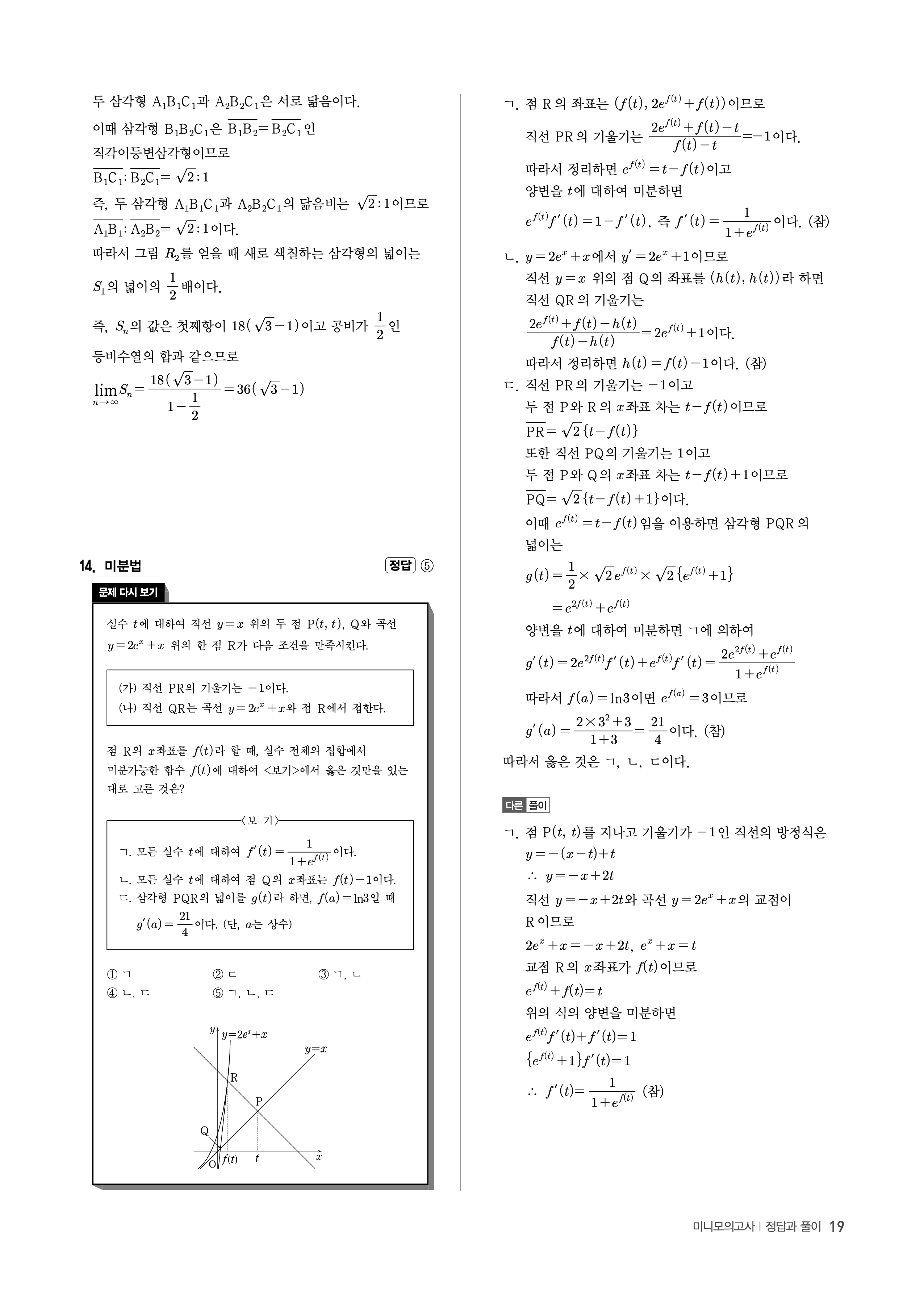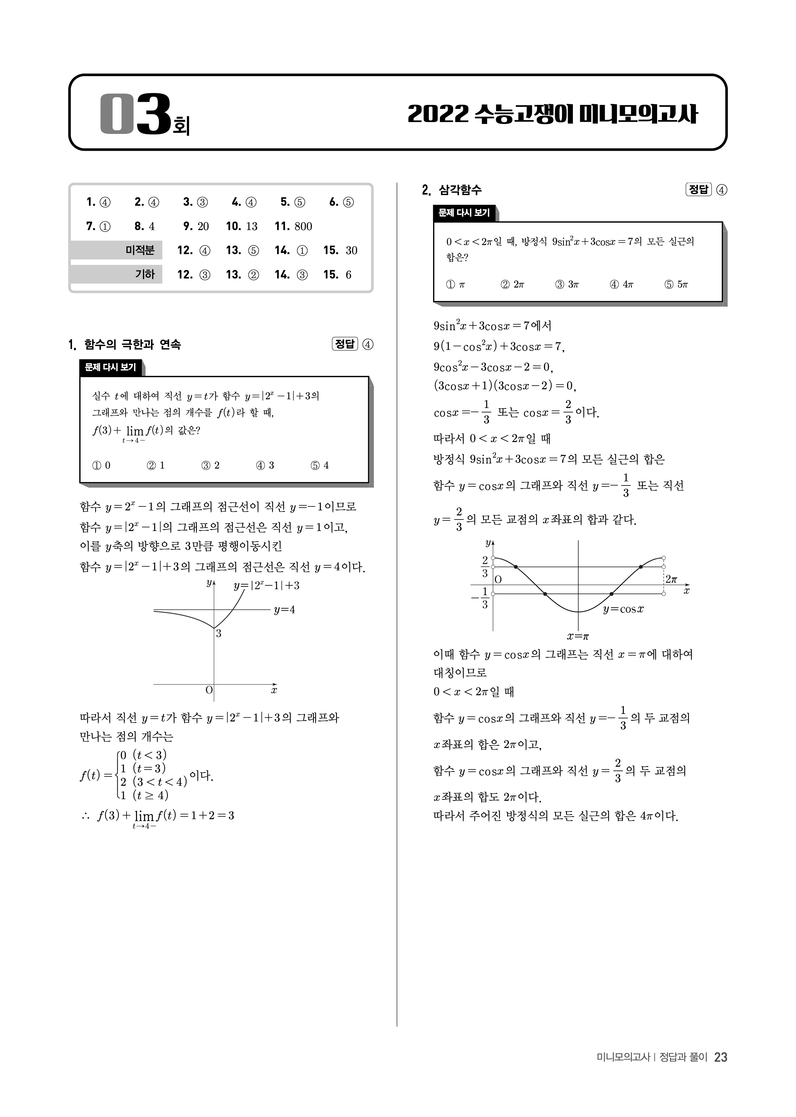 수능고쟁이 수학1 수학2 미적 기하 답지 해설 바로보는 사진답지 빠른답지 모바일최적화