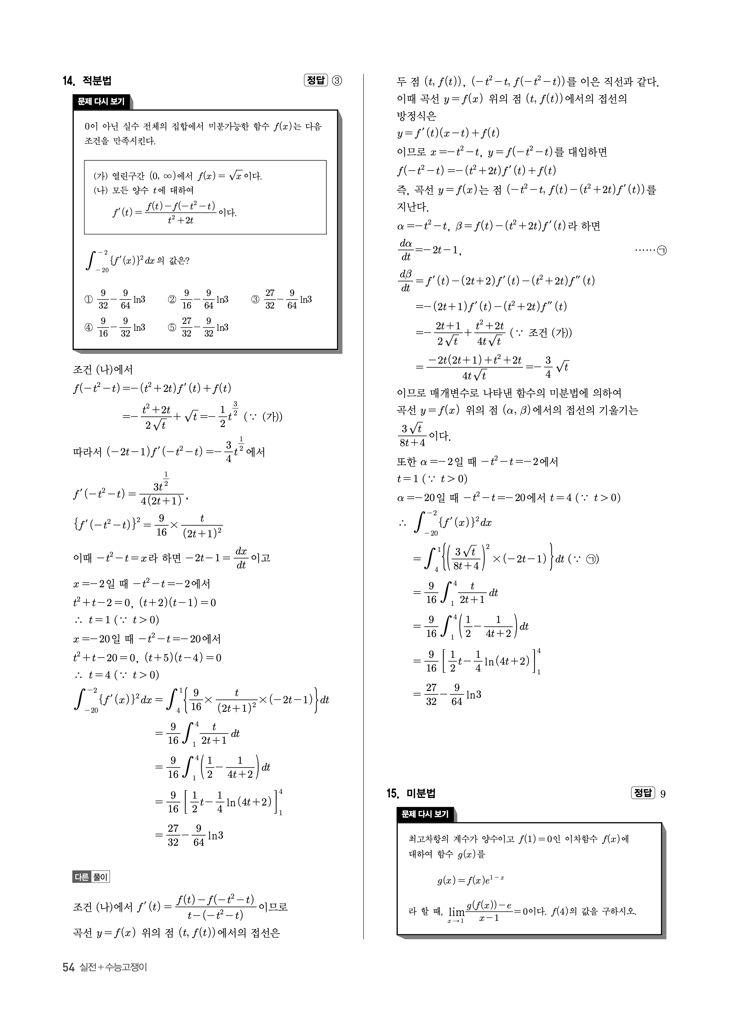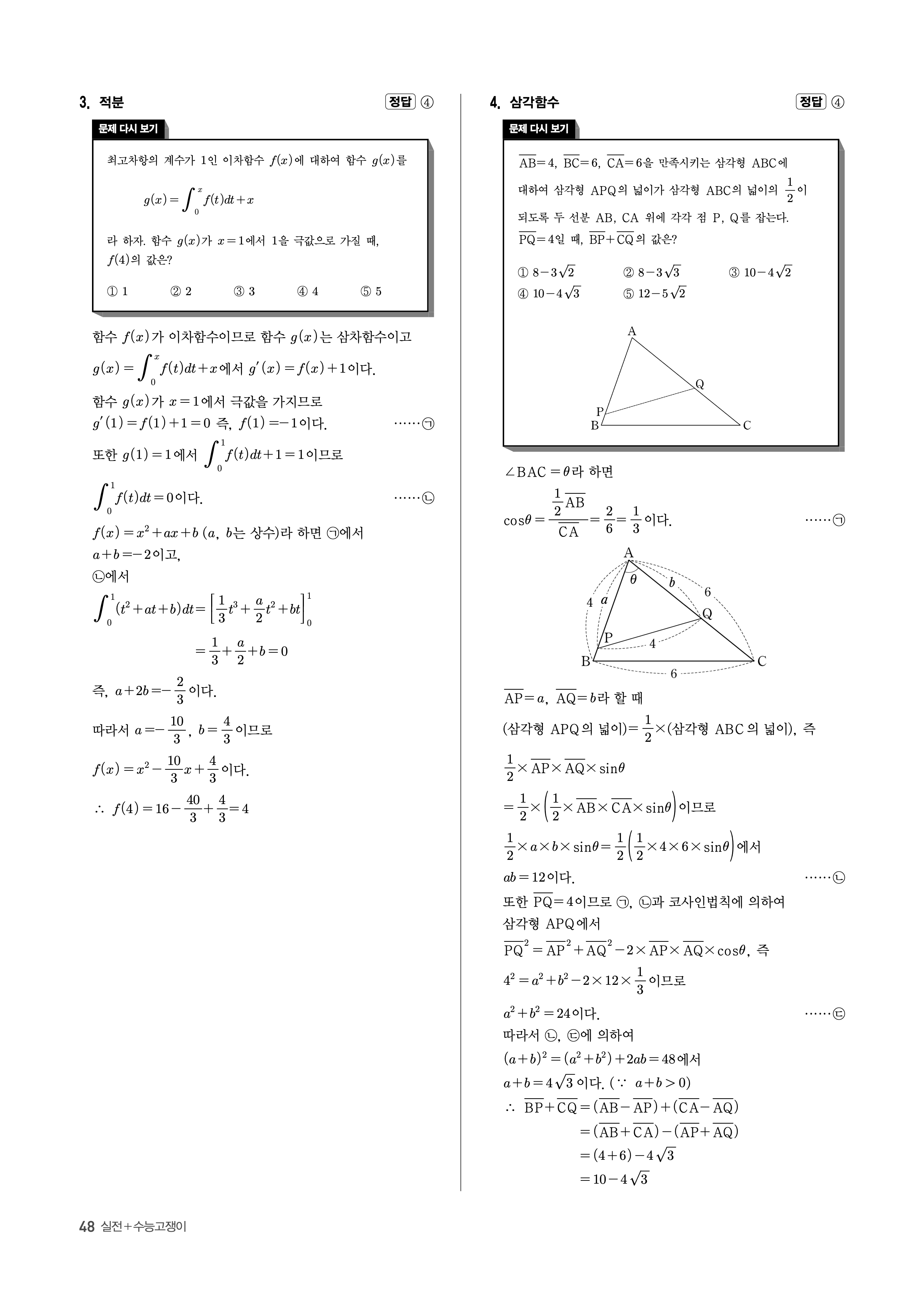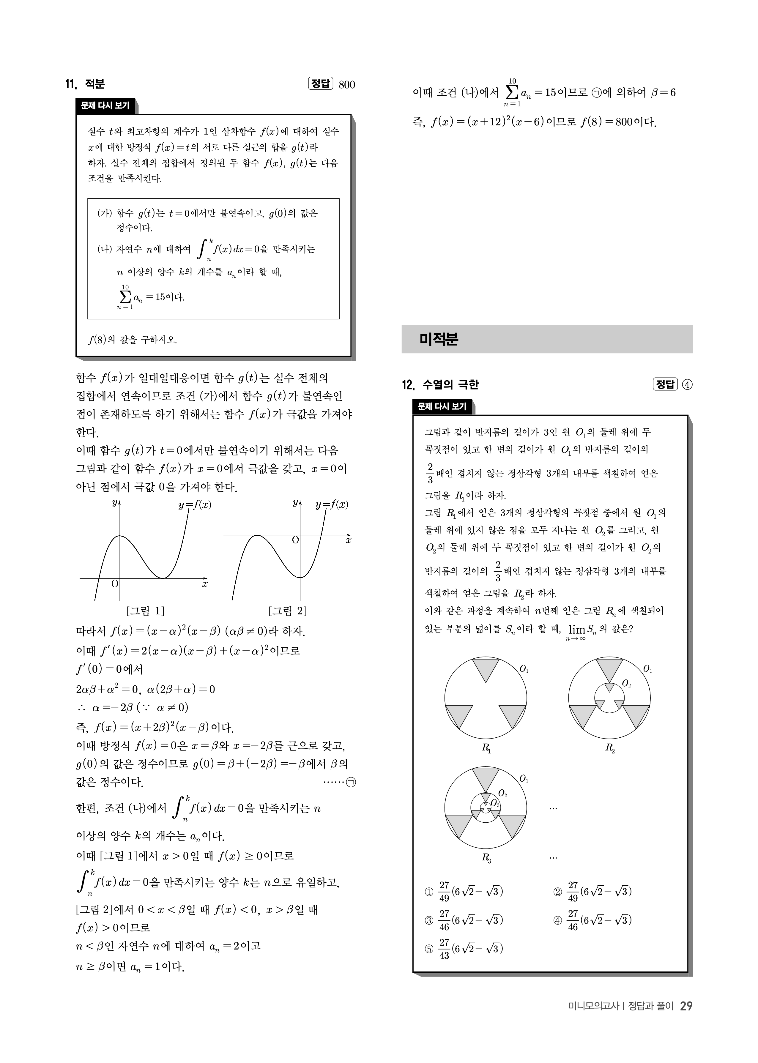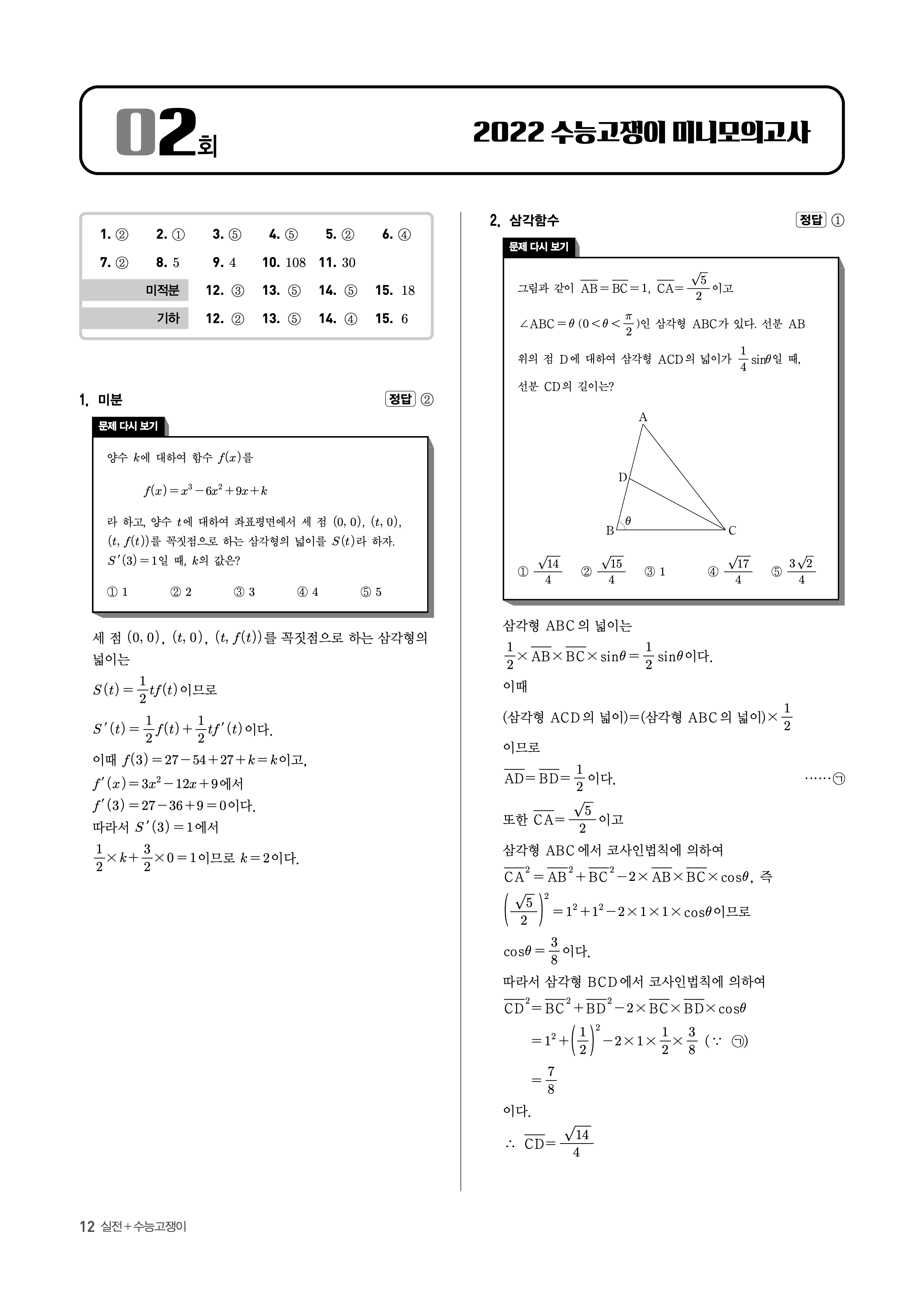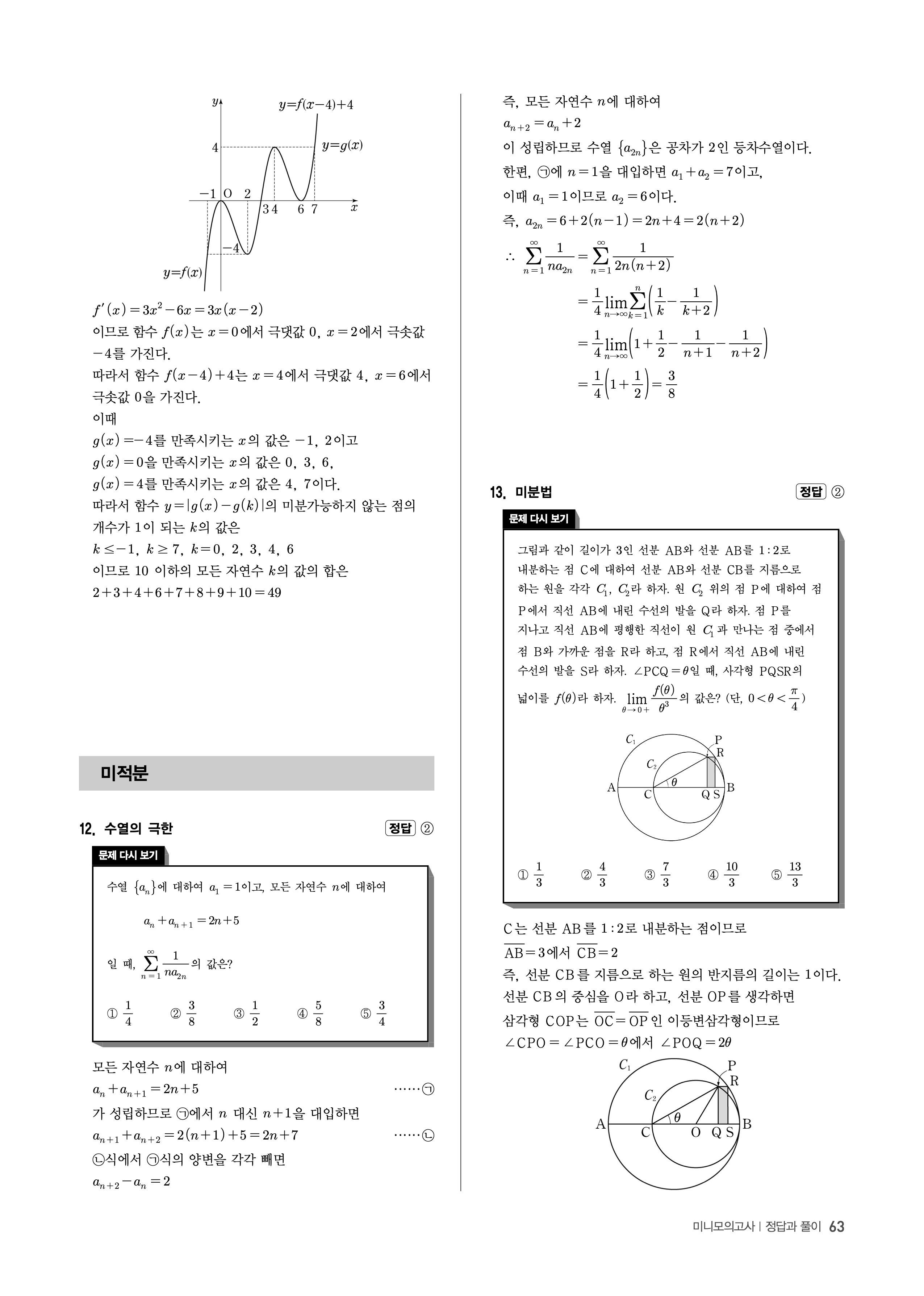 수능고쟁이 수학1 수학2 미적 기하 답지 해설 바로보는 사진답지 빠른답지 모바일최적화