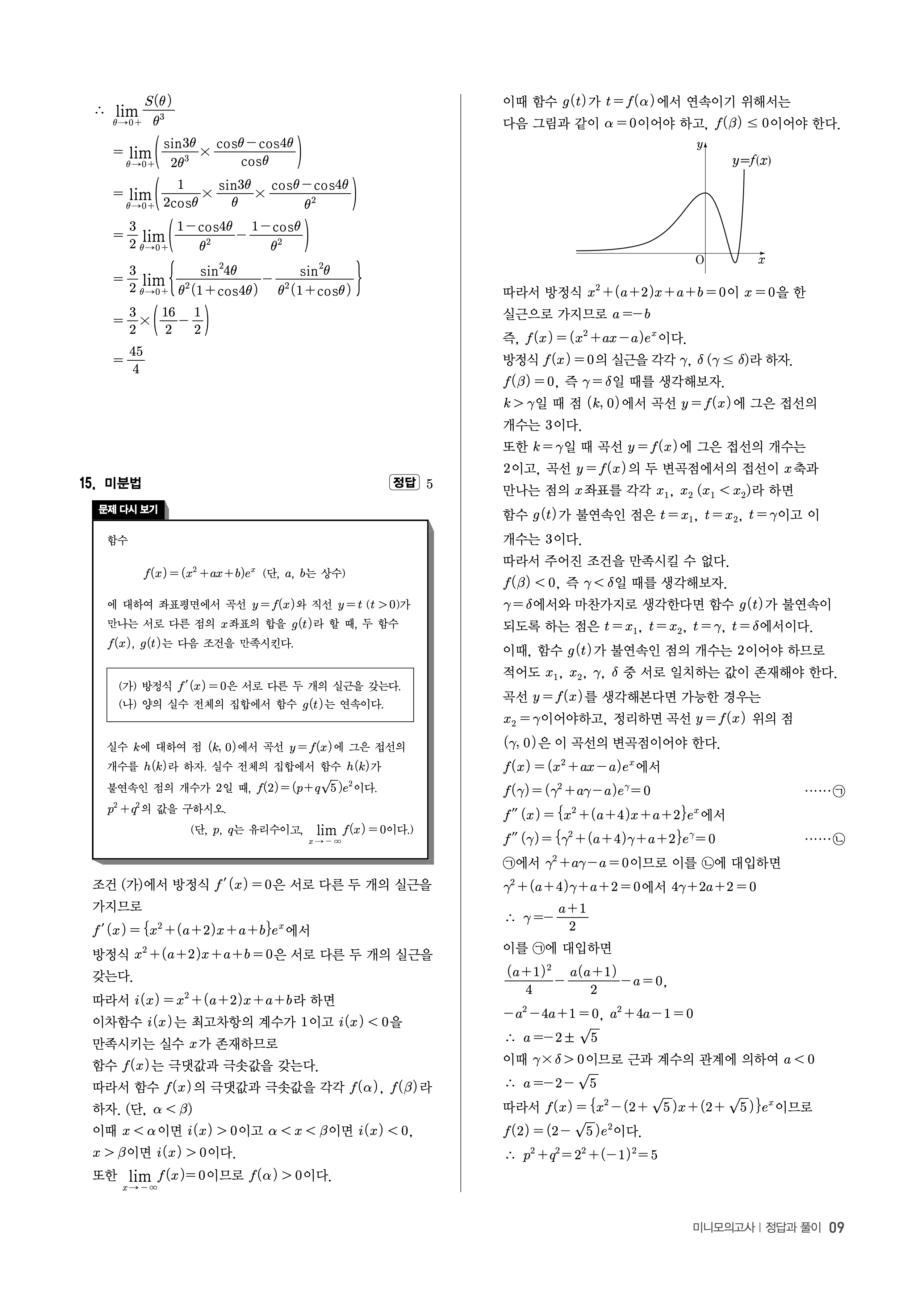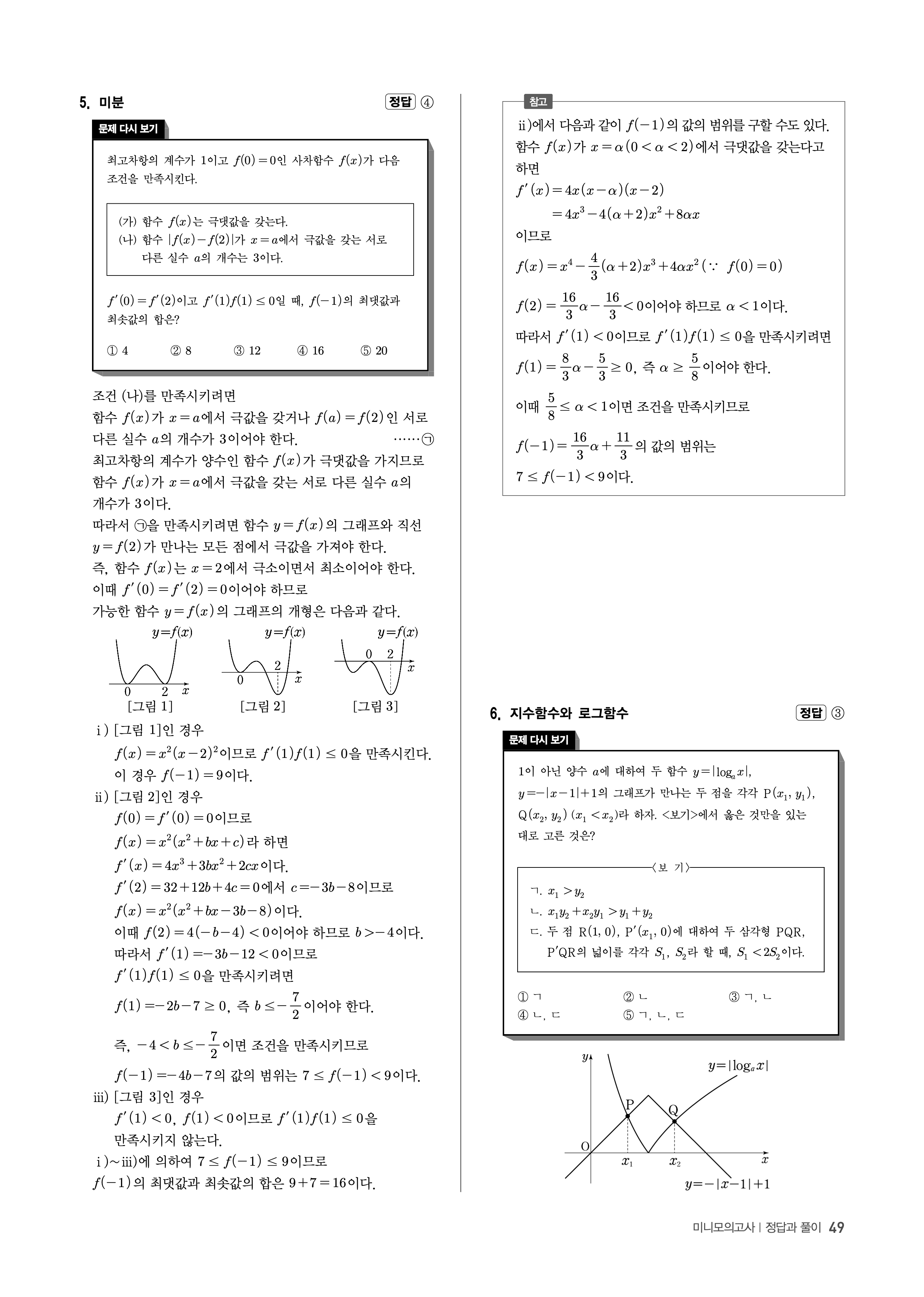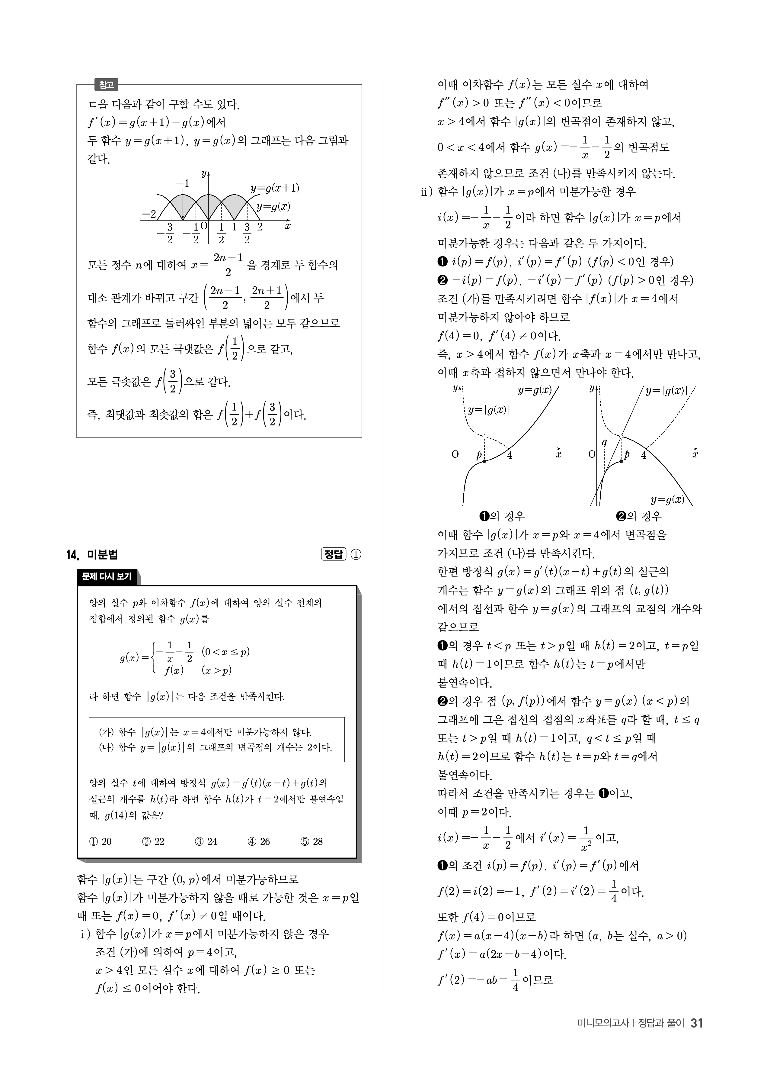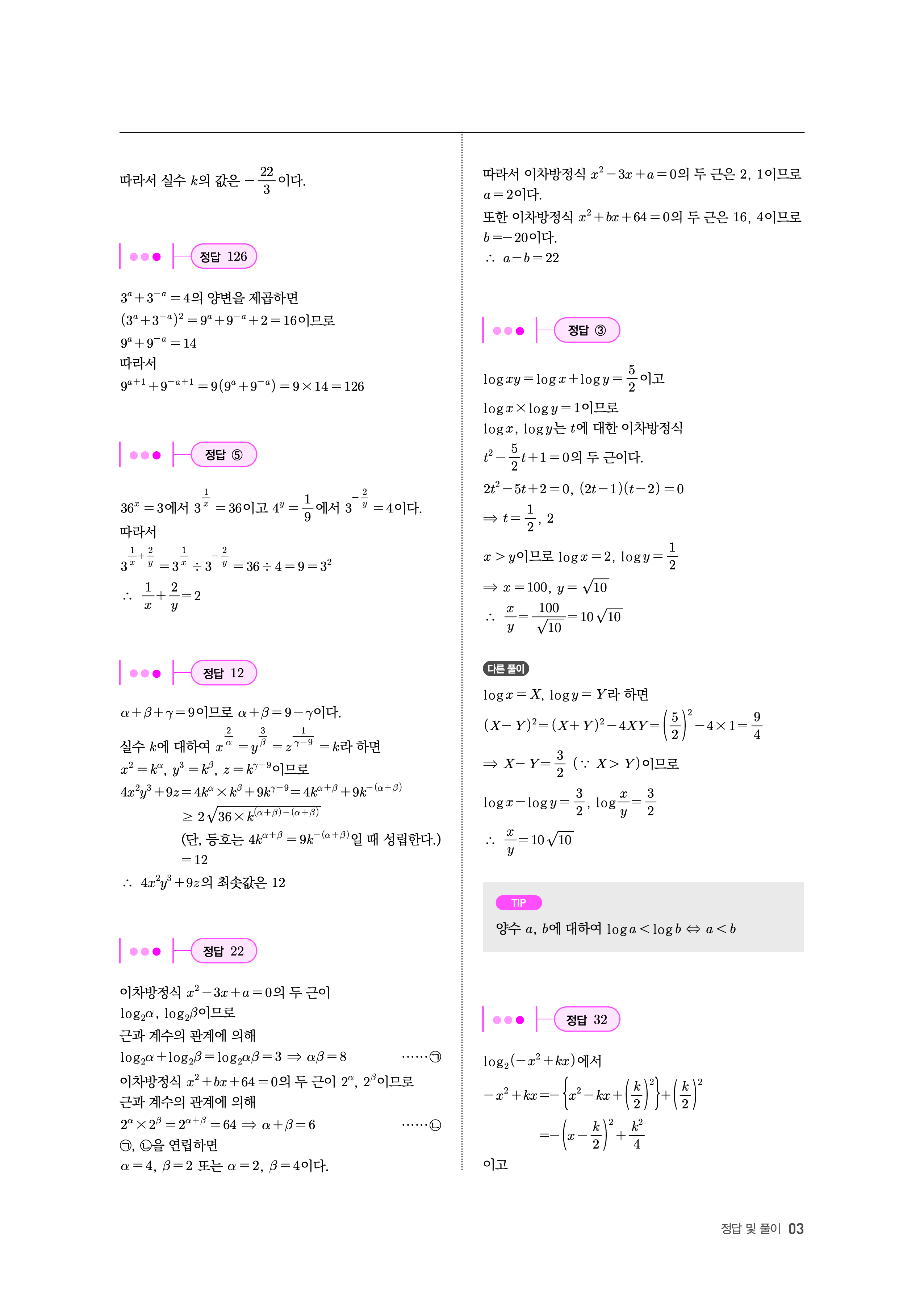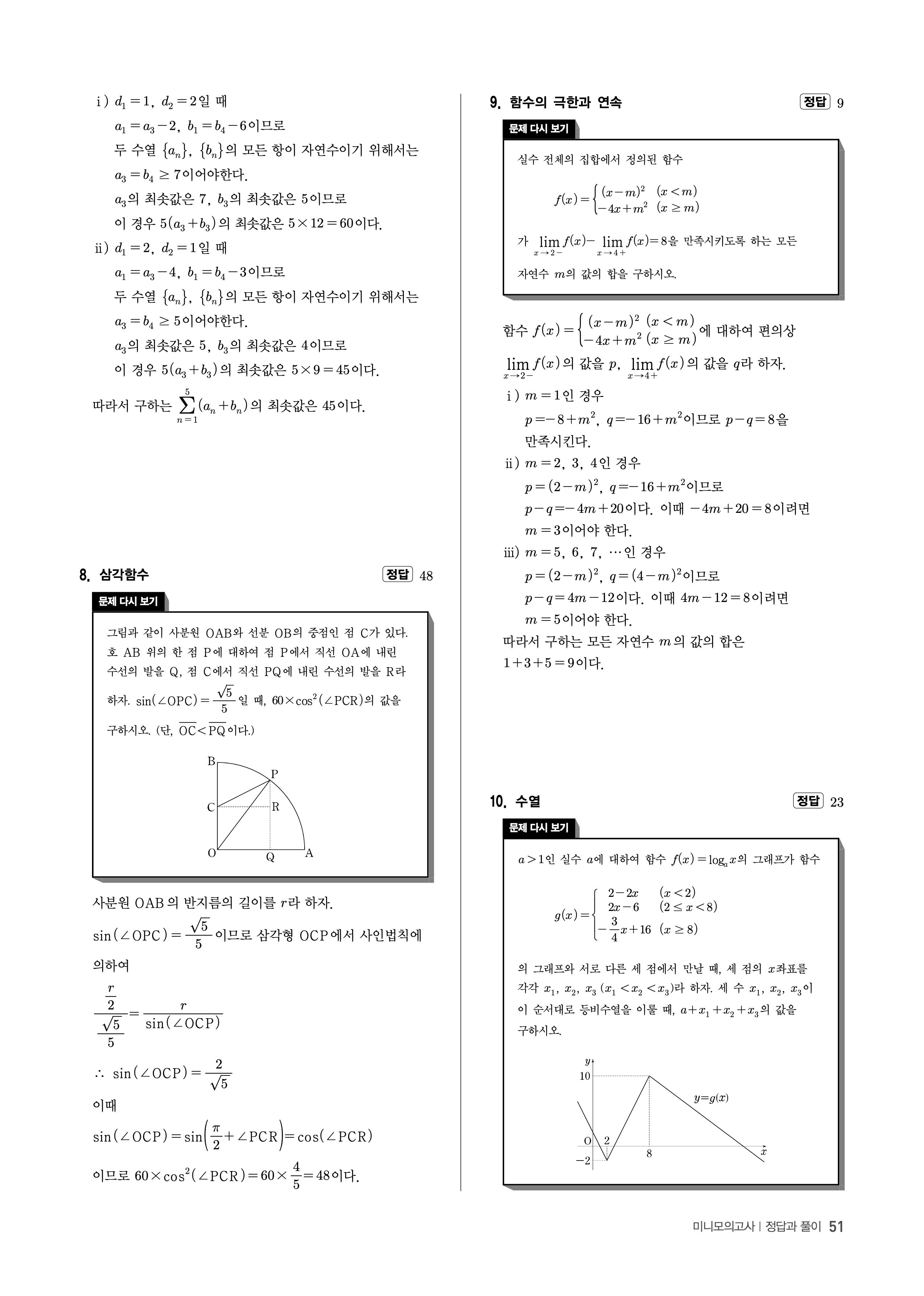 수능고쟁이 수학1 수학2 미적 기하 답지 해설 바로보는 사진답지 빠른답지 모바일최적화