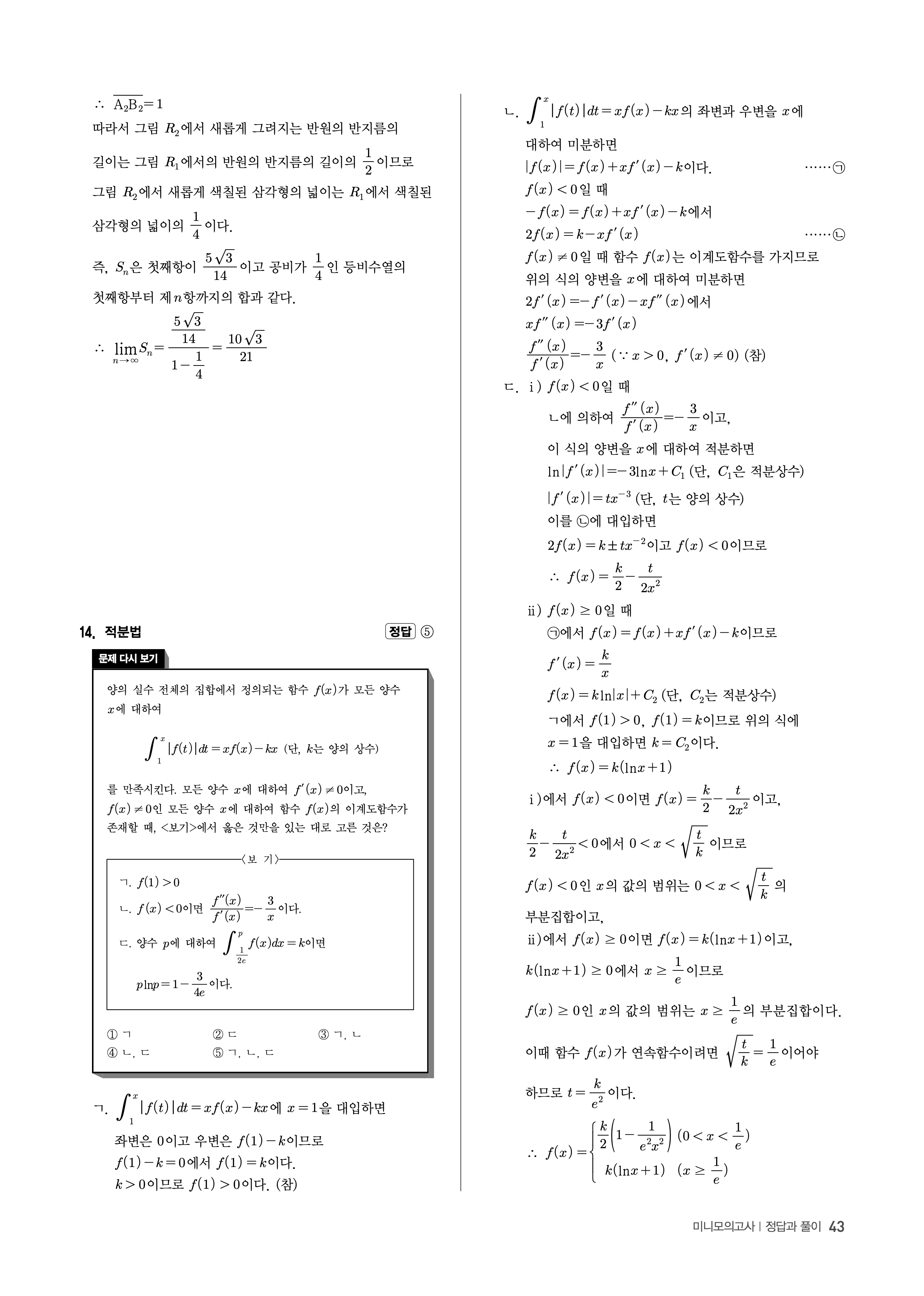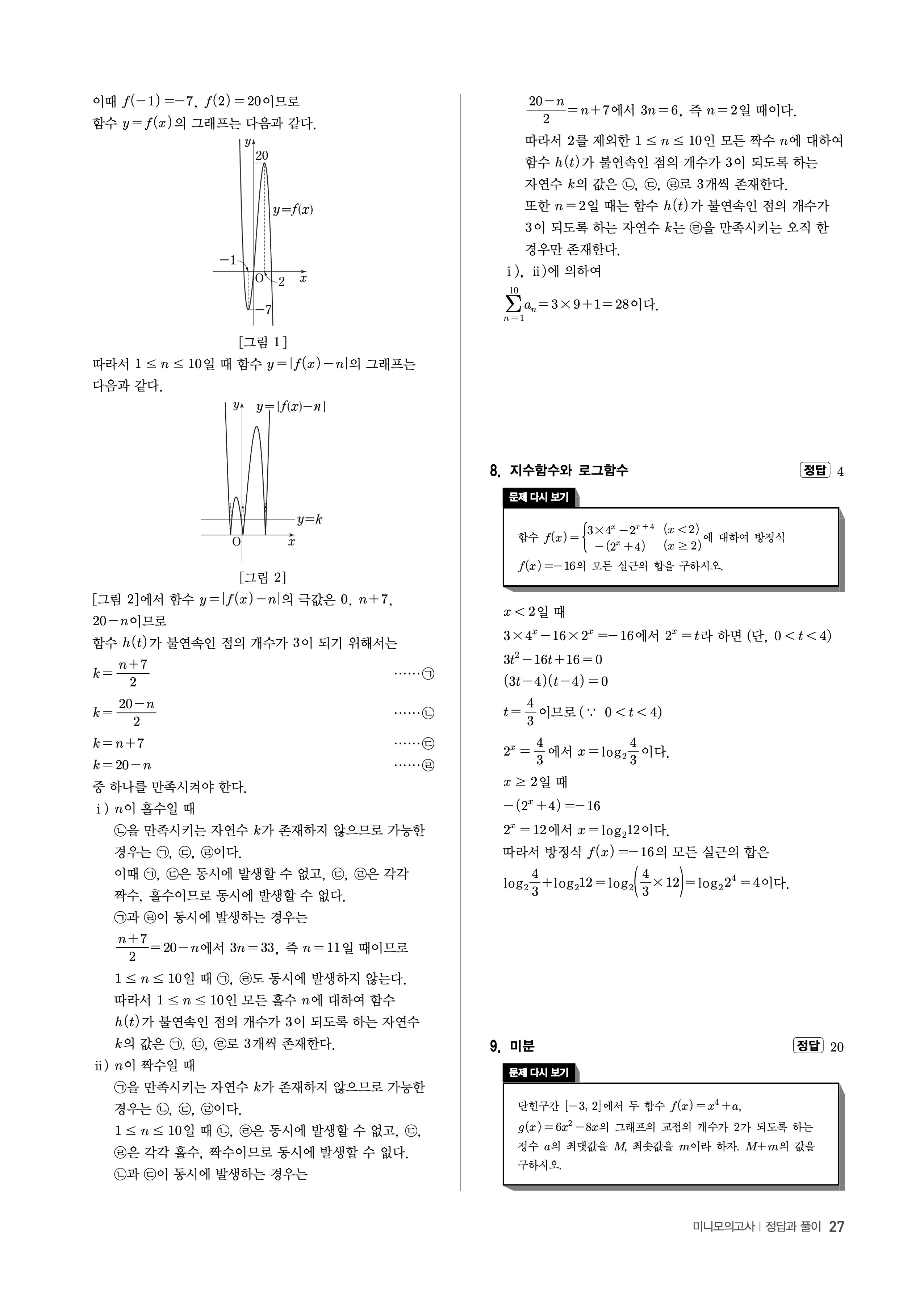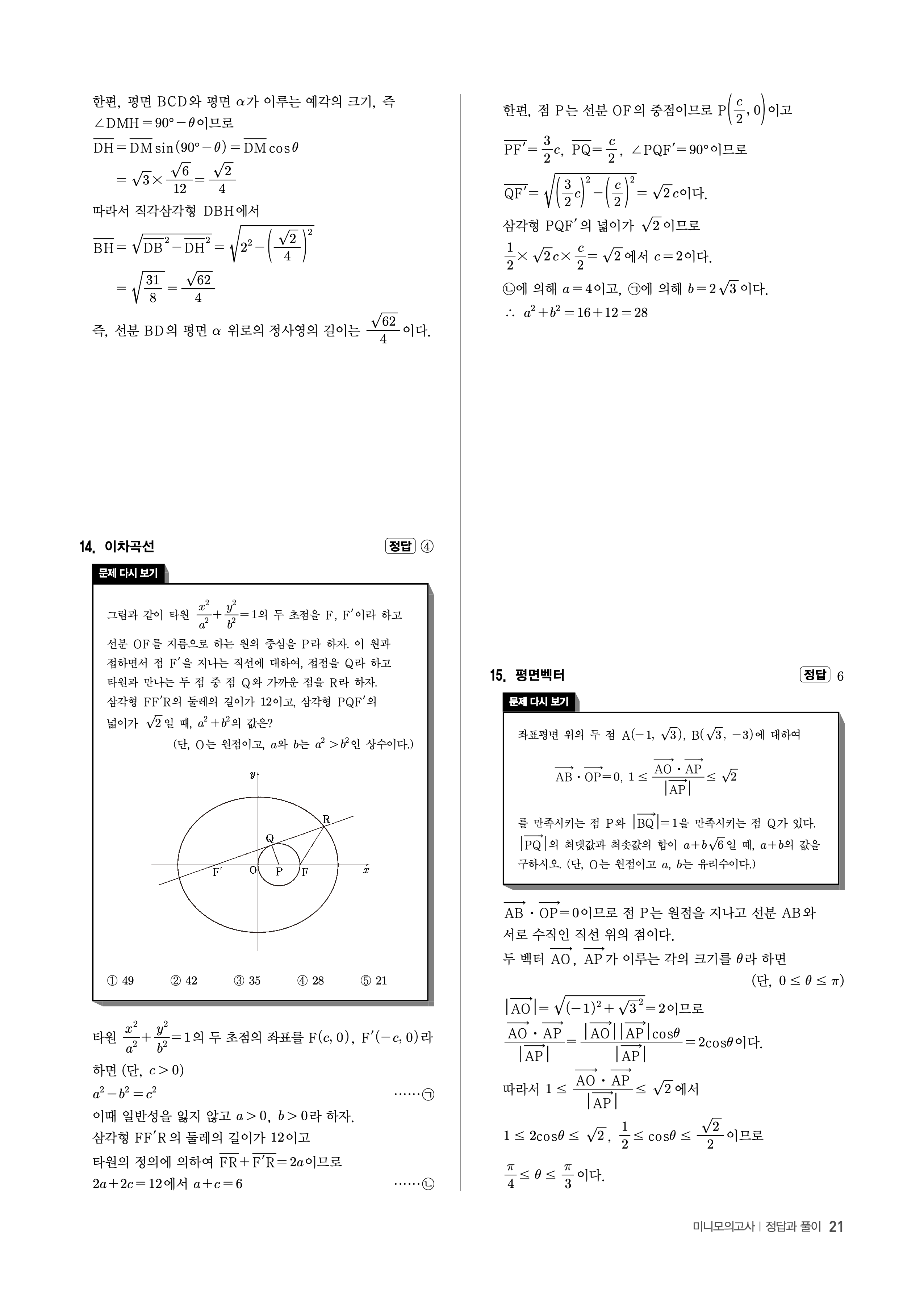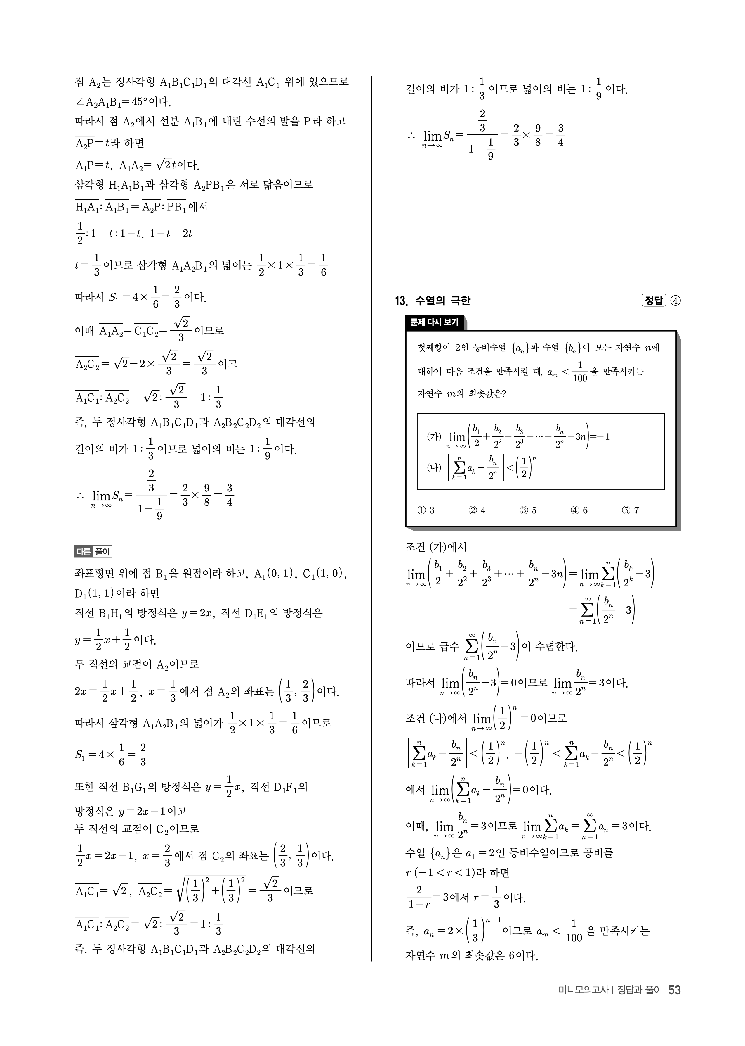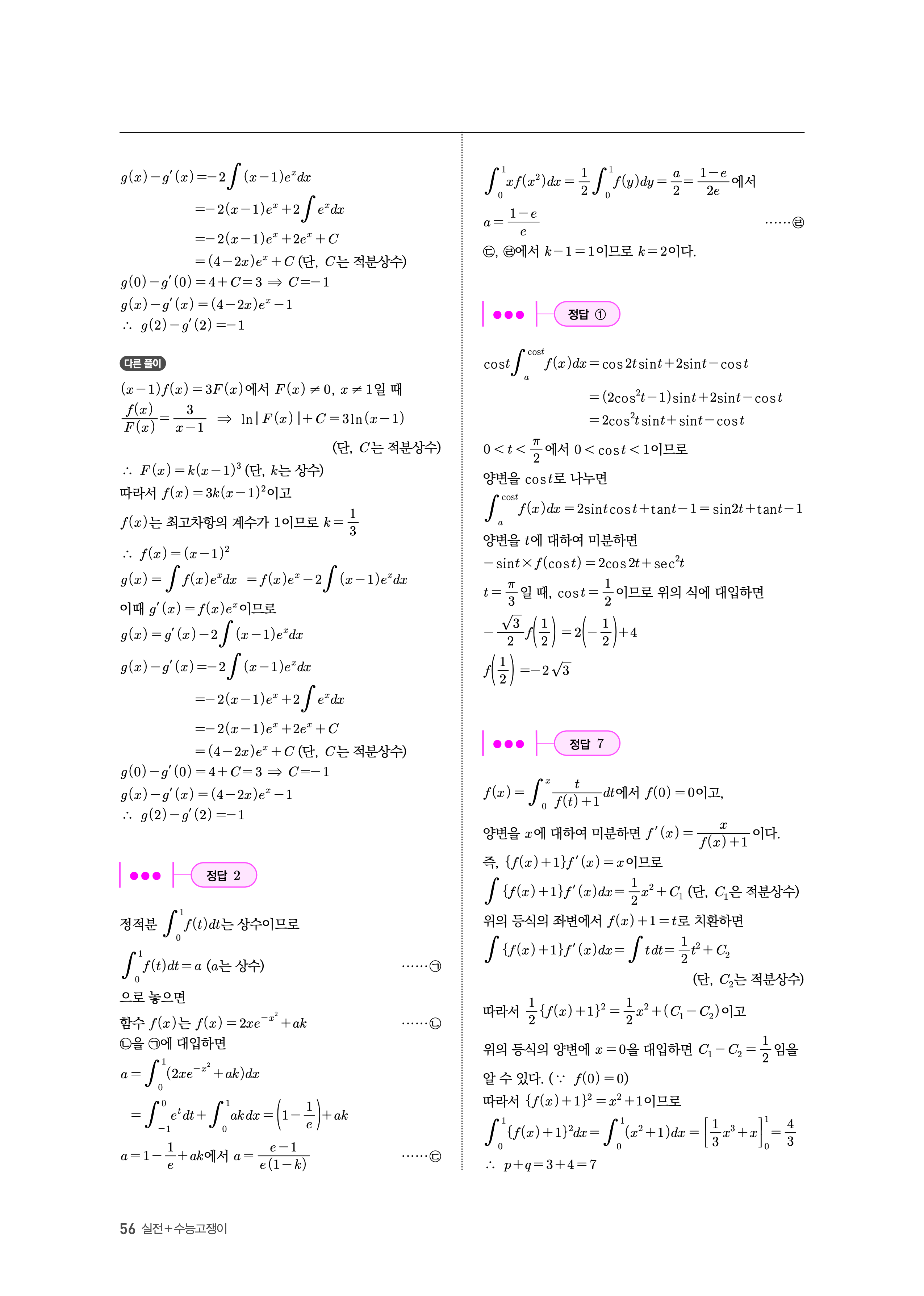 수능고쟁이 수학1 수학2 미적 기하 답지 해설 바로보는 사진답지 빠른답지 모바일최적화