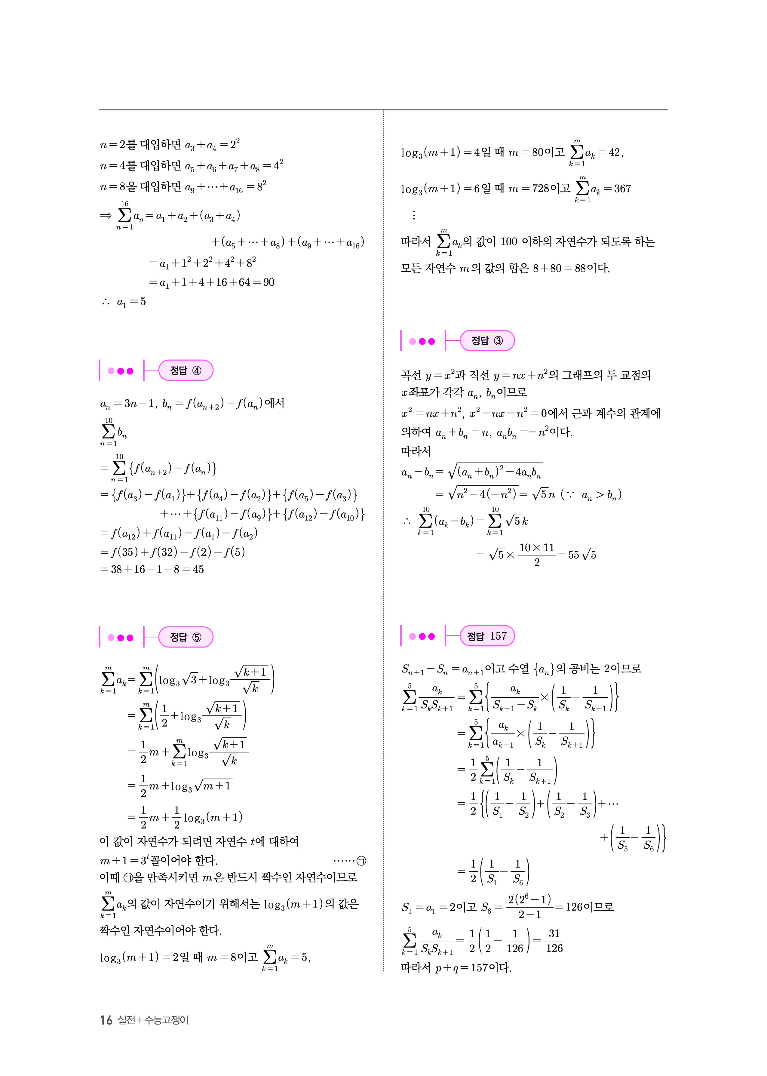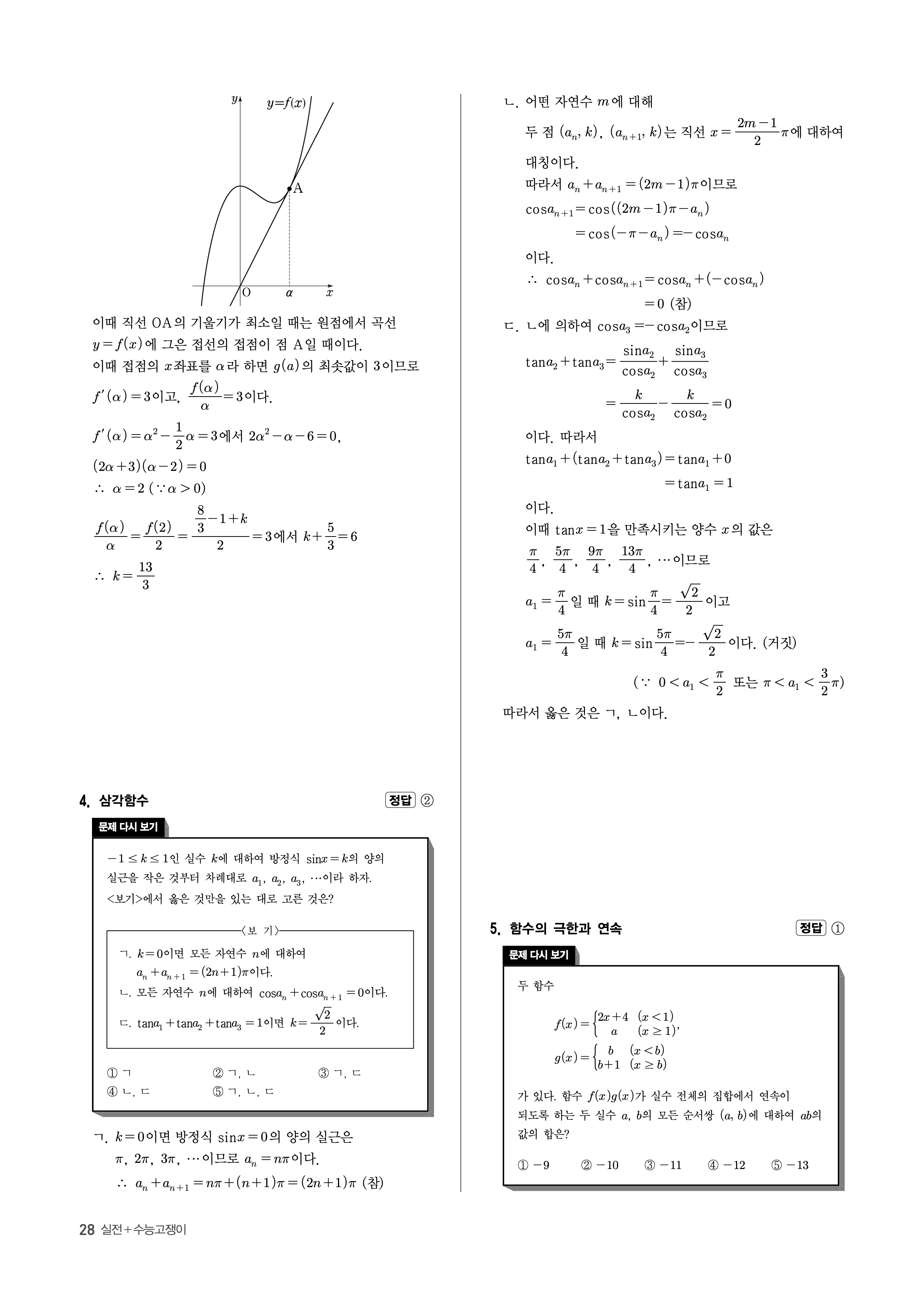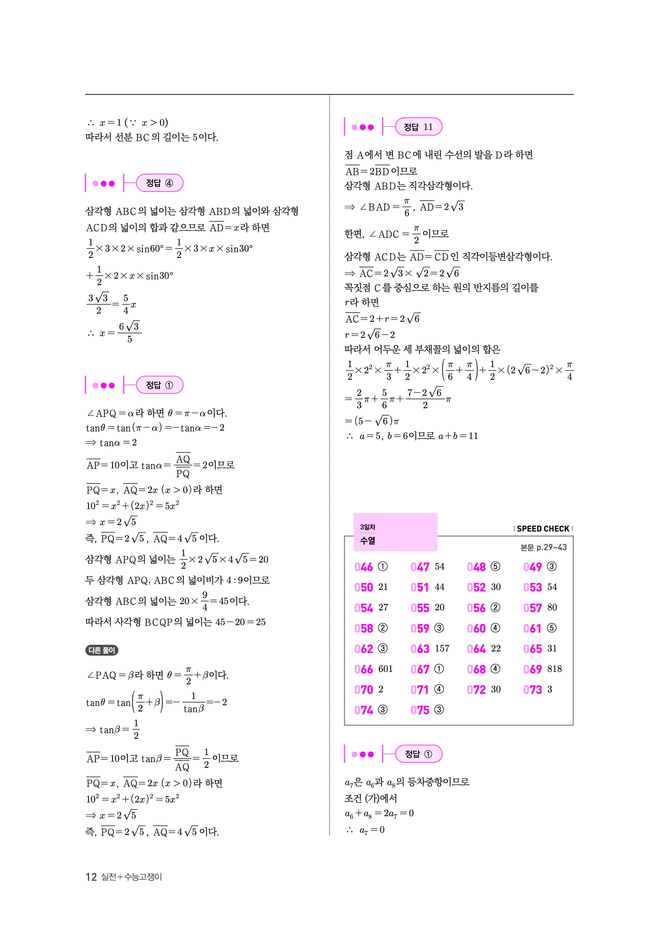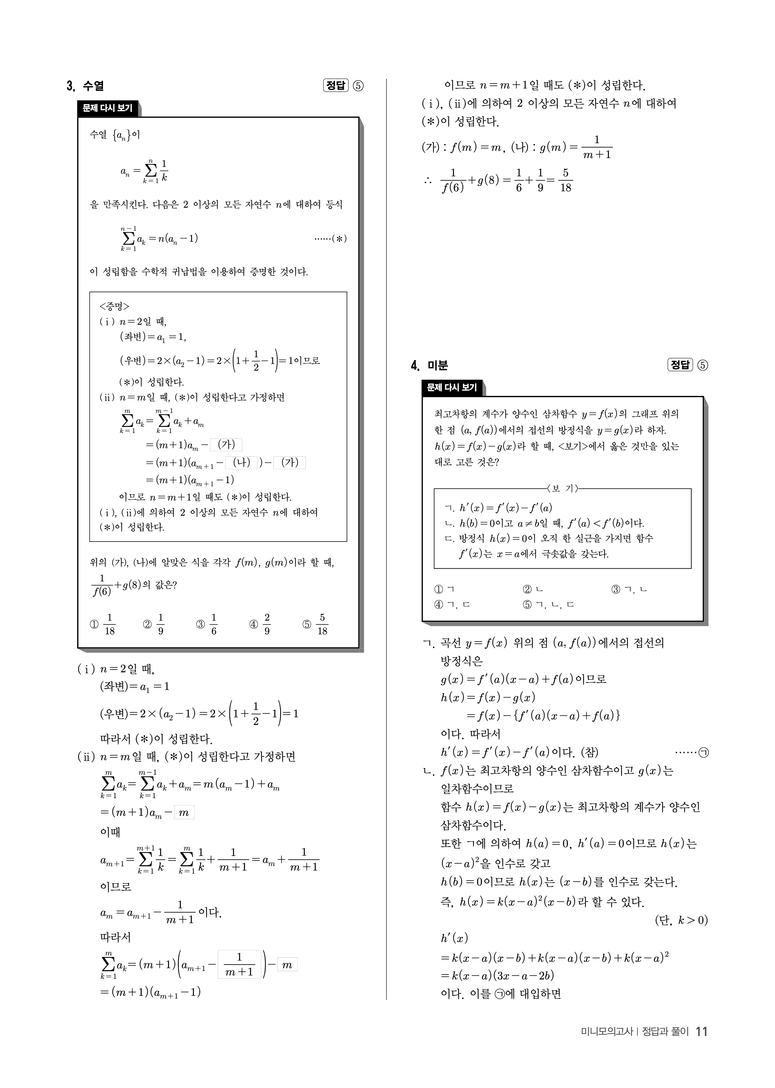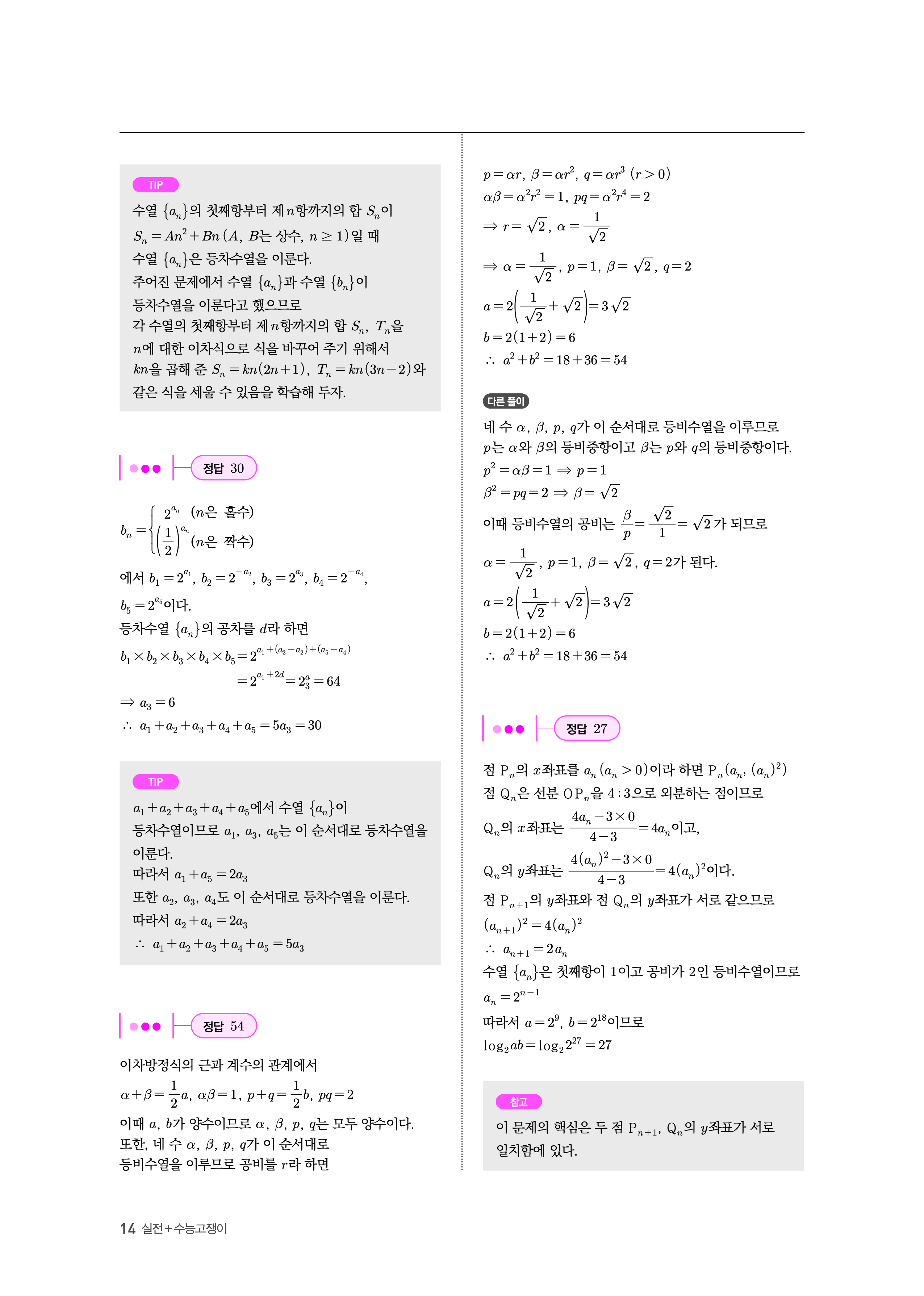 수능고쟁이 수학1 수학2 미적 기하 답지 해설 바로보는 사진답지 빠른답지 모바일최적화