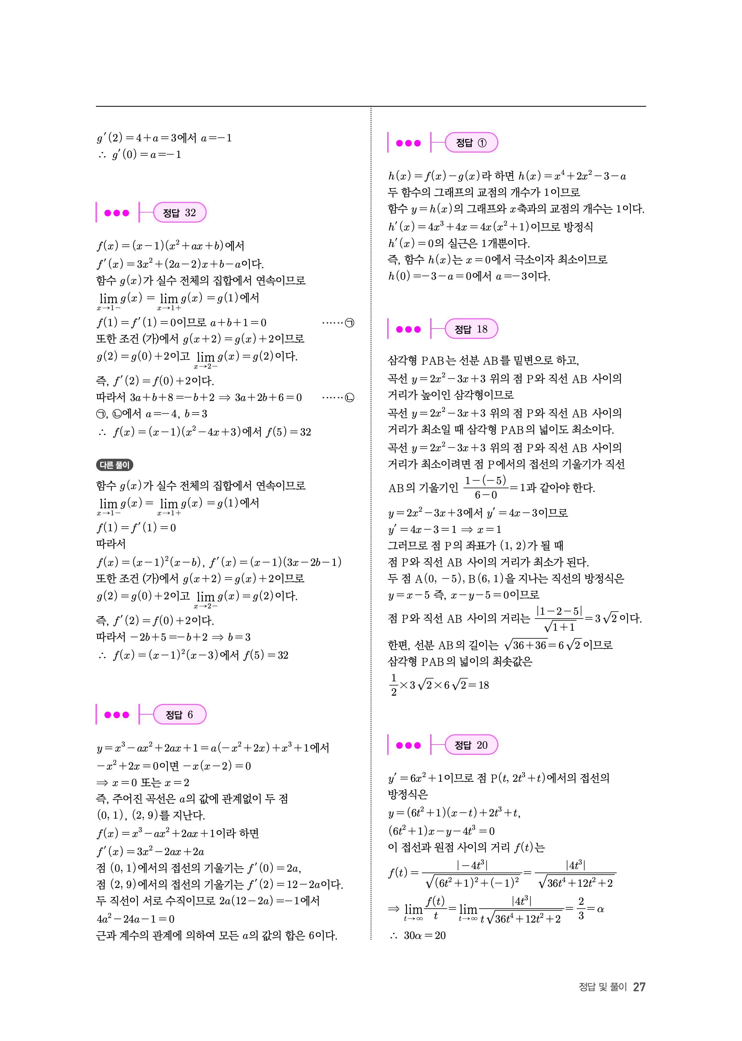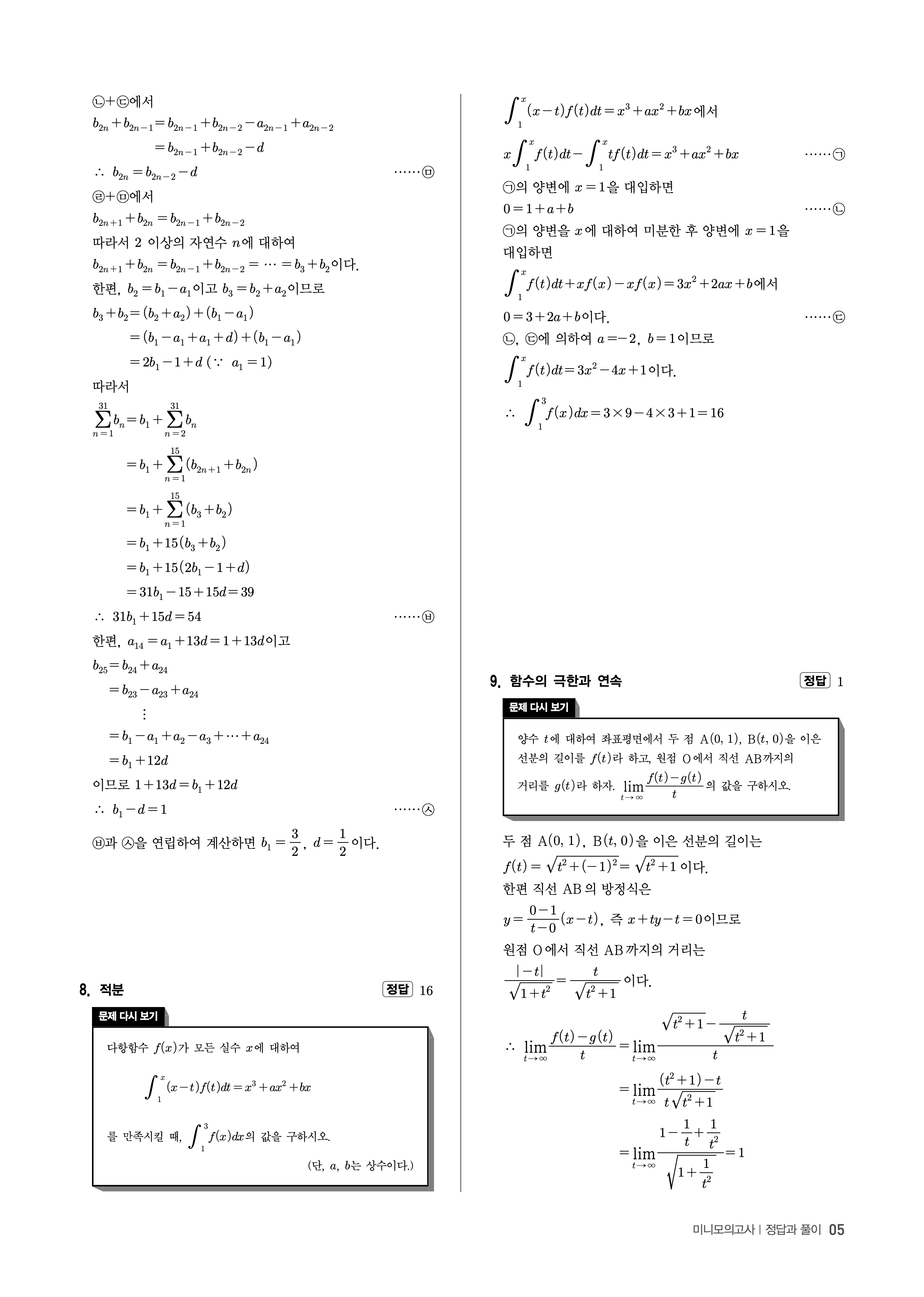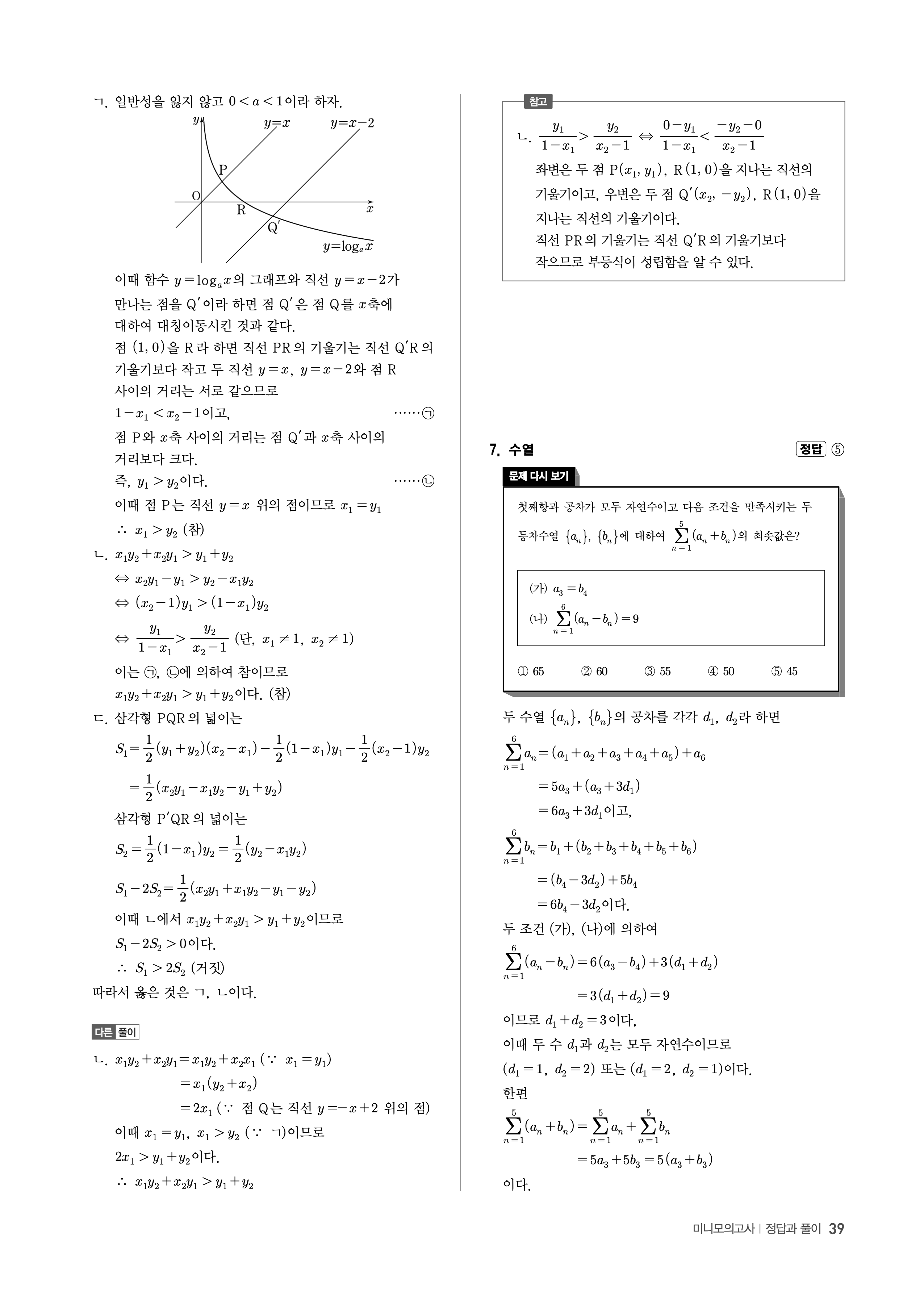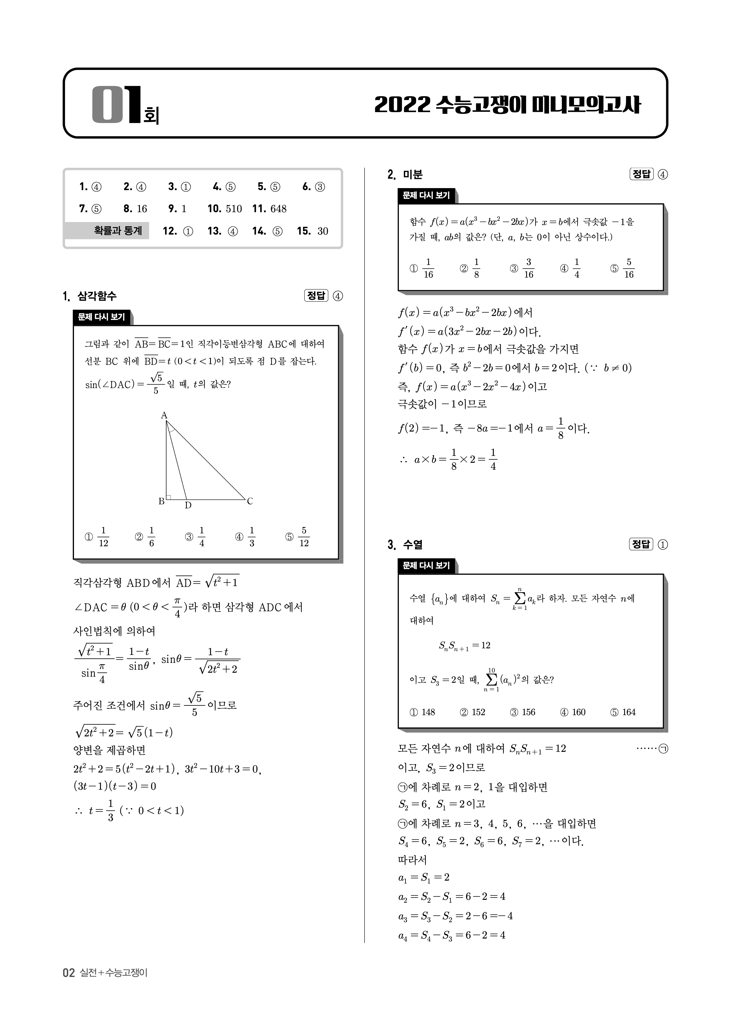 수능고쟁이 수학1 수학2 미적 기하 답지 해설 바로보는 사진답지 빠른답지 모바일최적화
