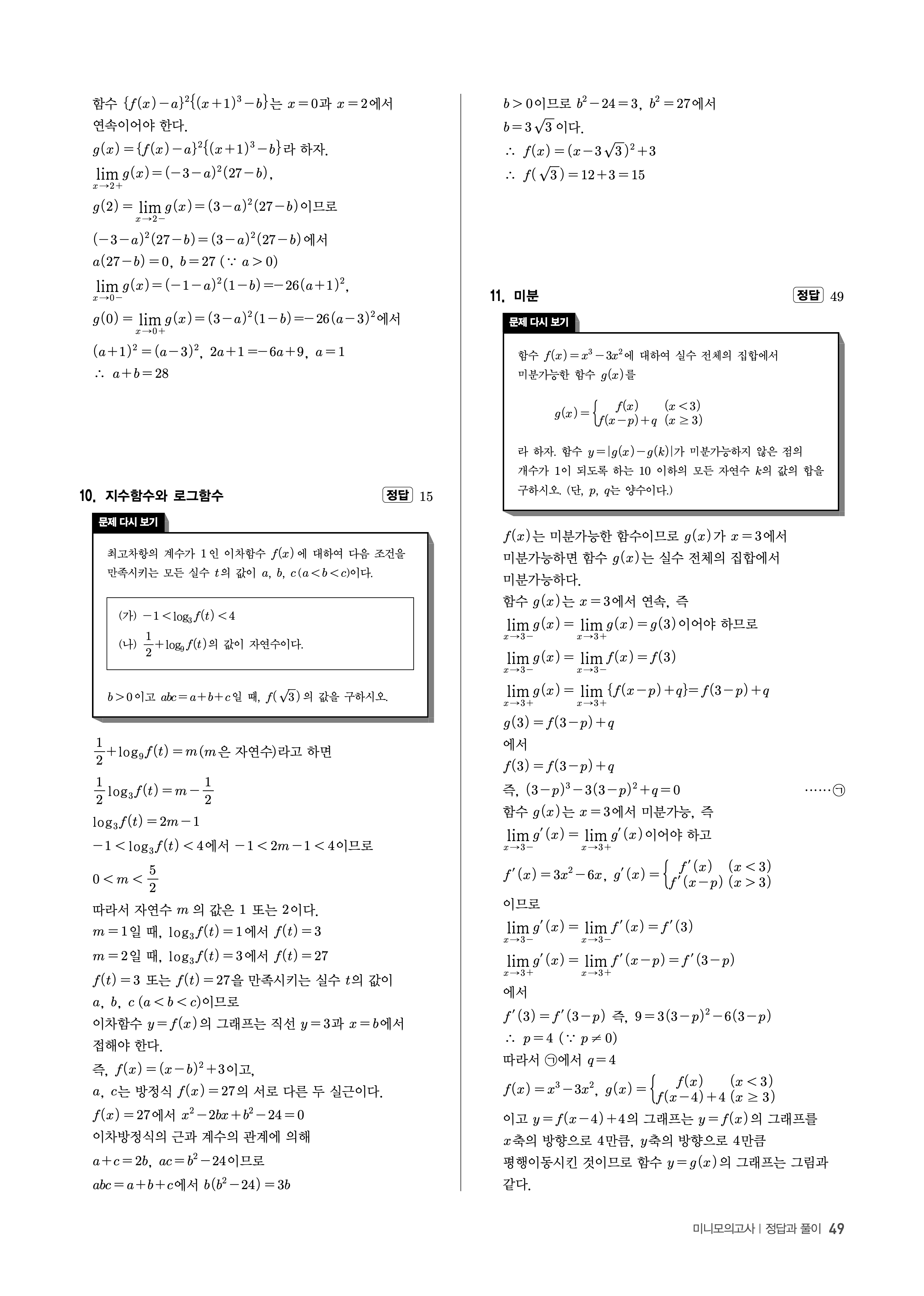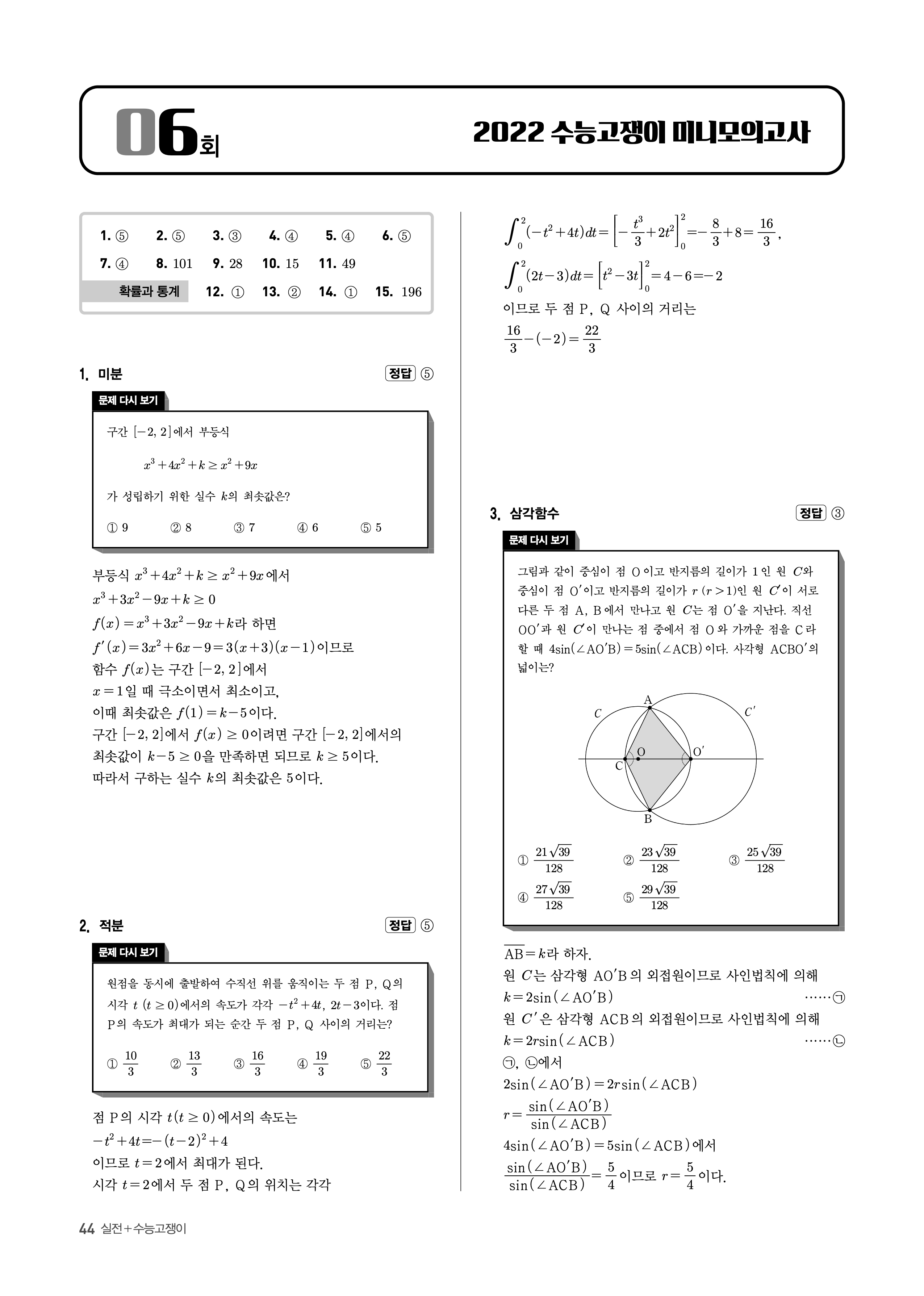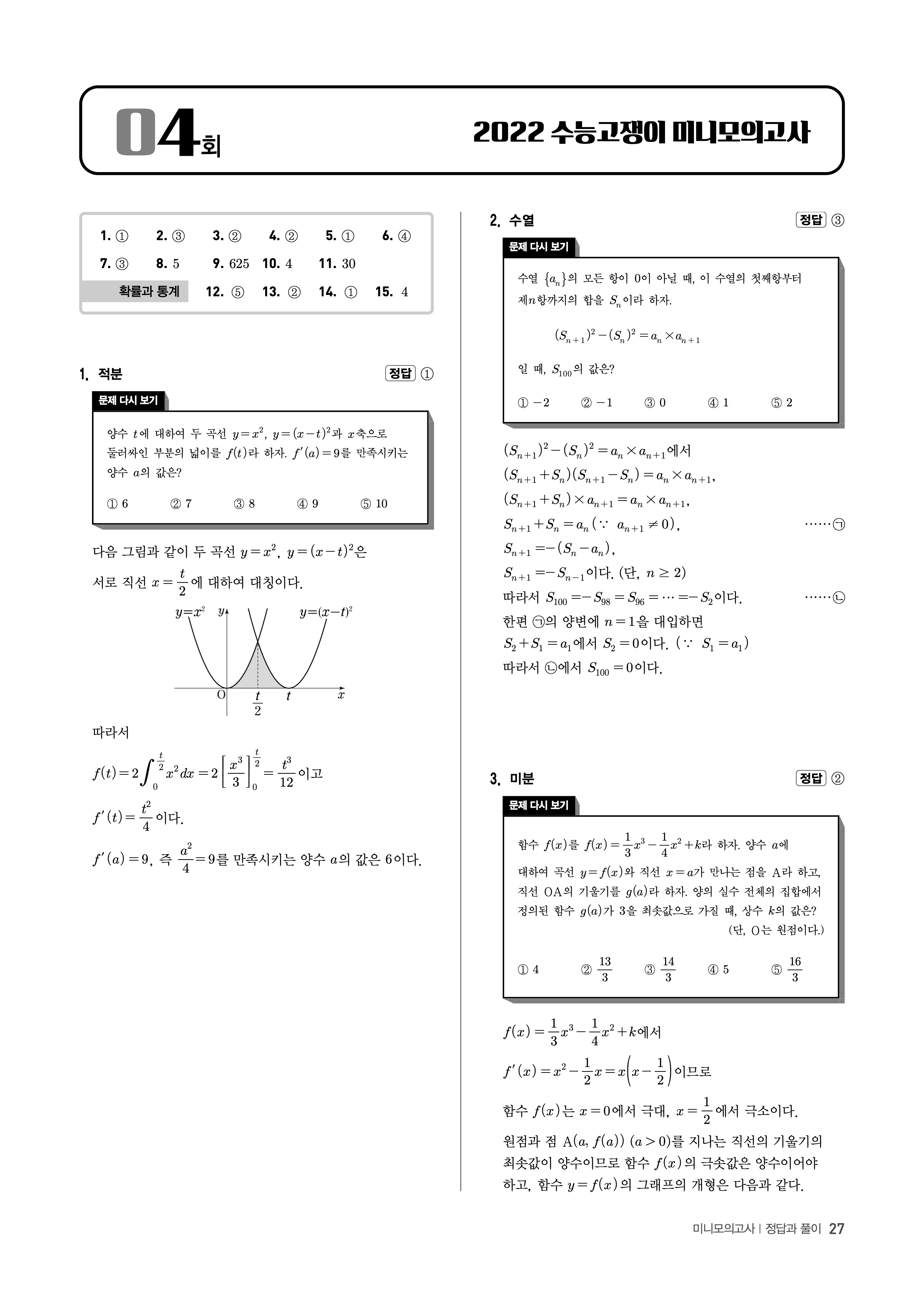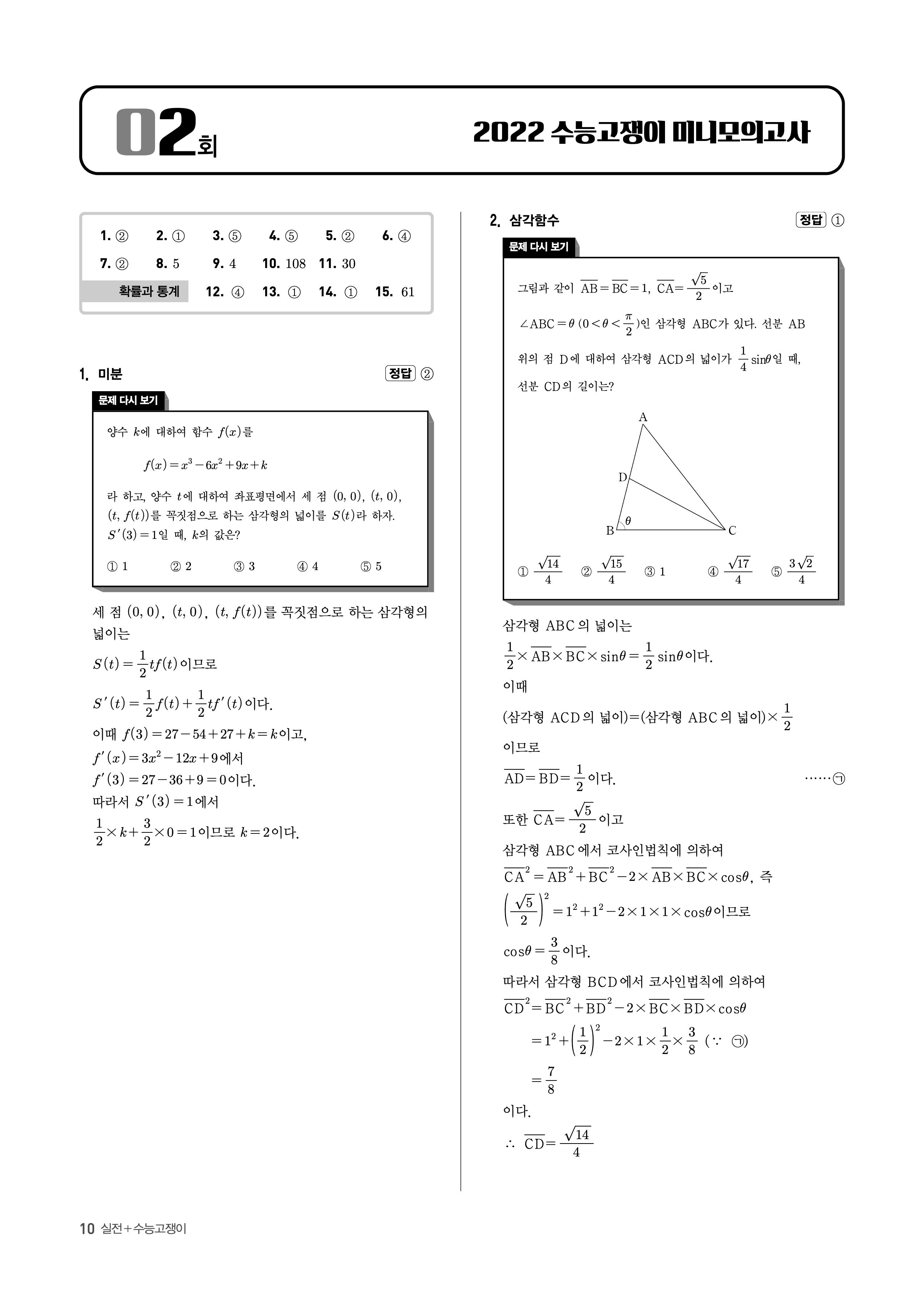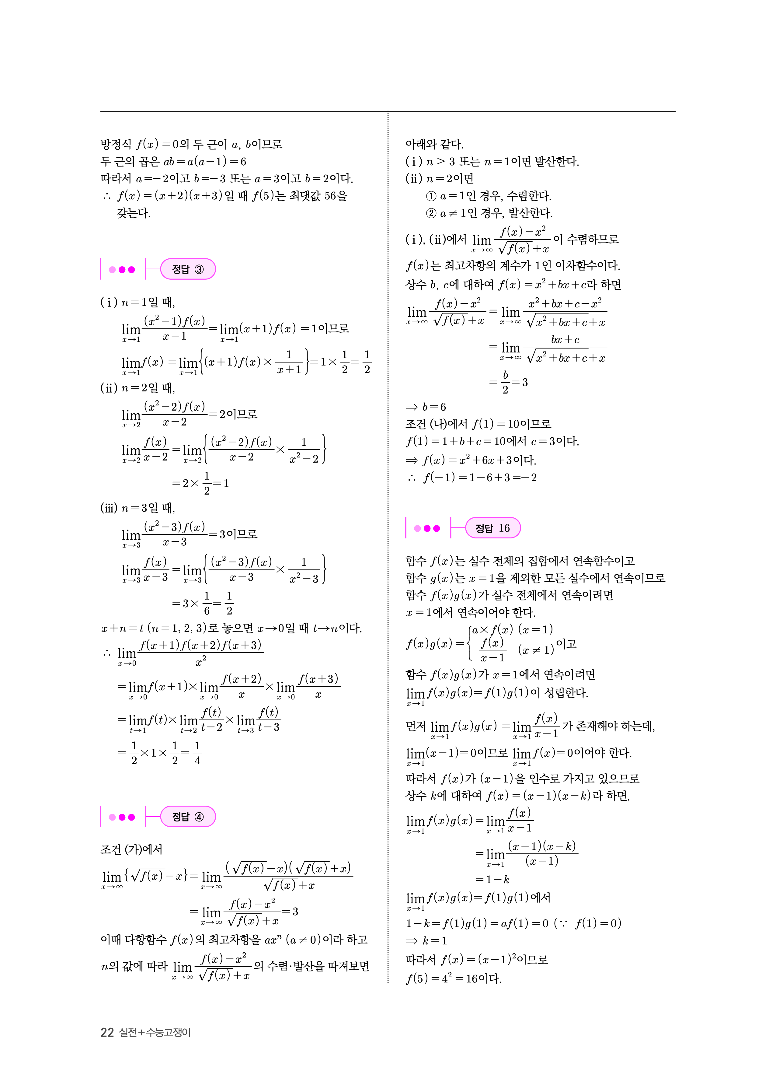 수능고쟁이 수학1 수학2 미적 기하 답지 해설 바로보는 사진답지 빠른답지 모바일최적화
