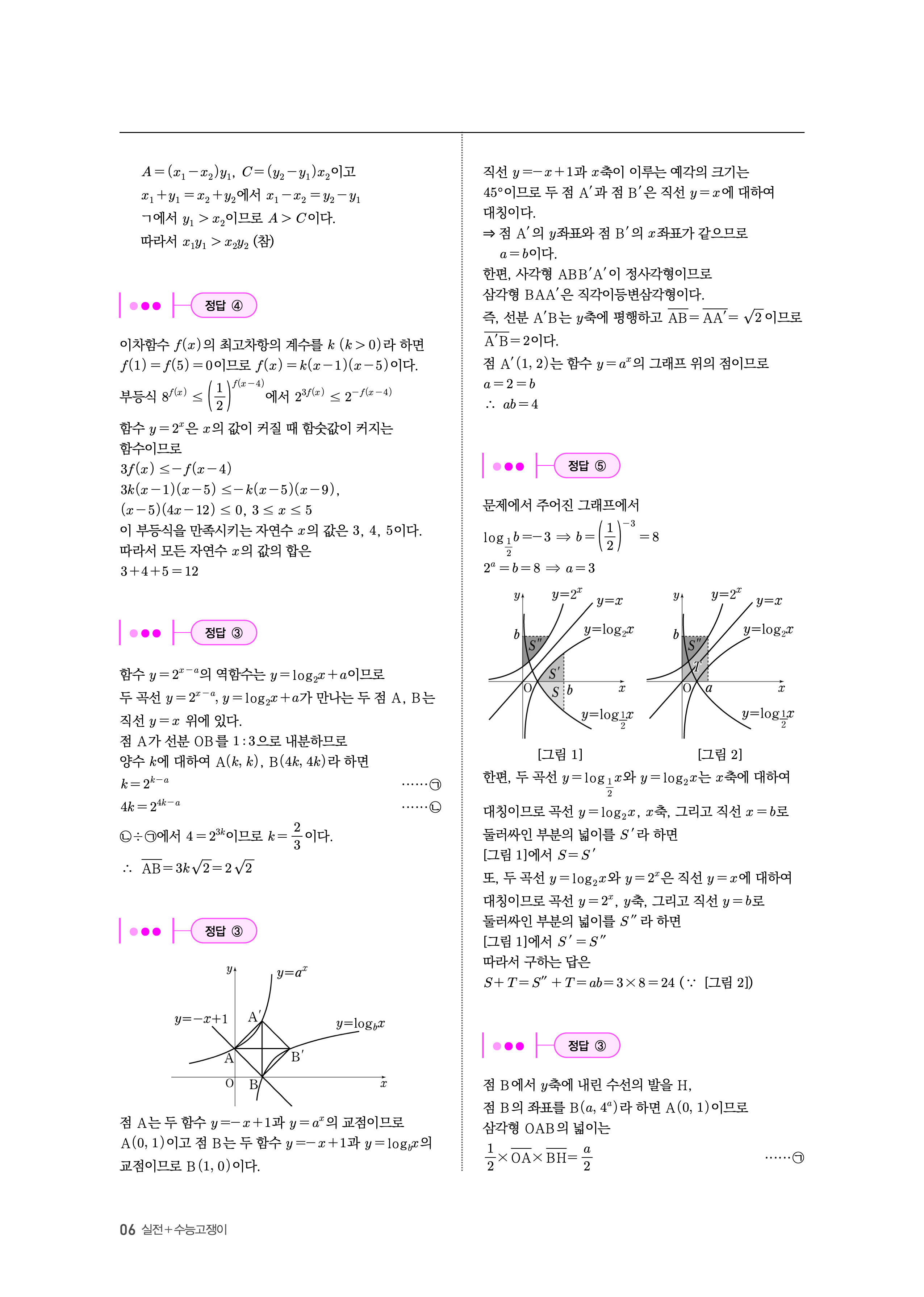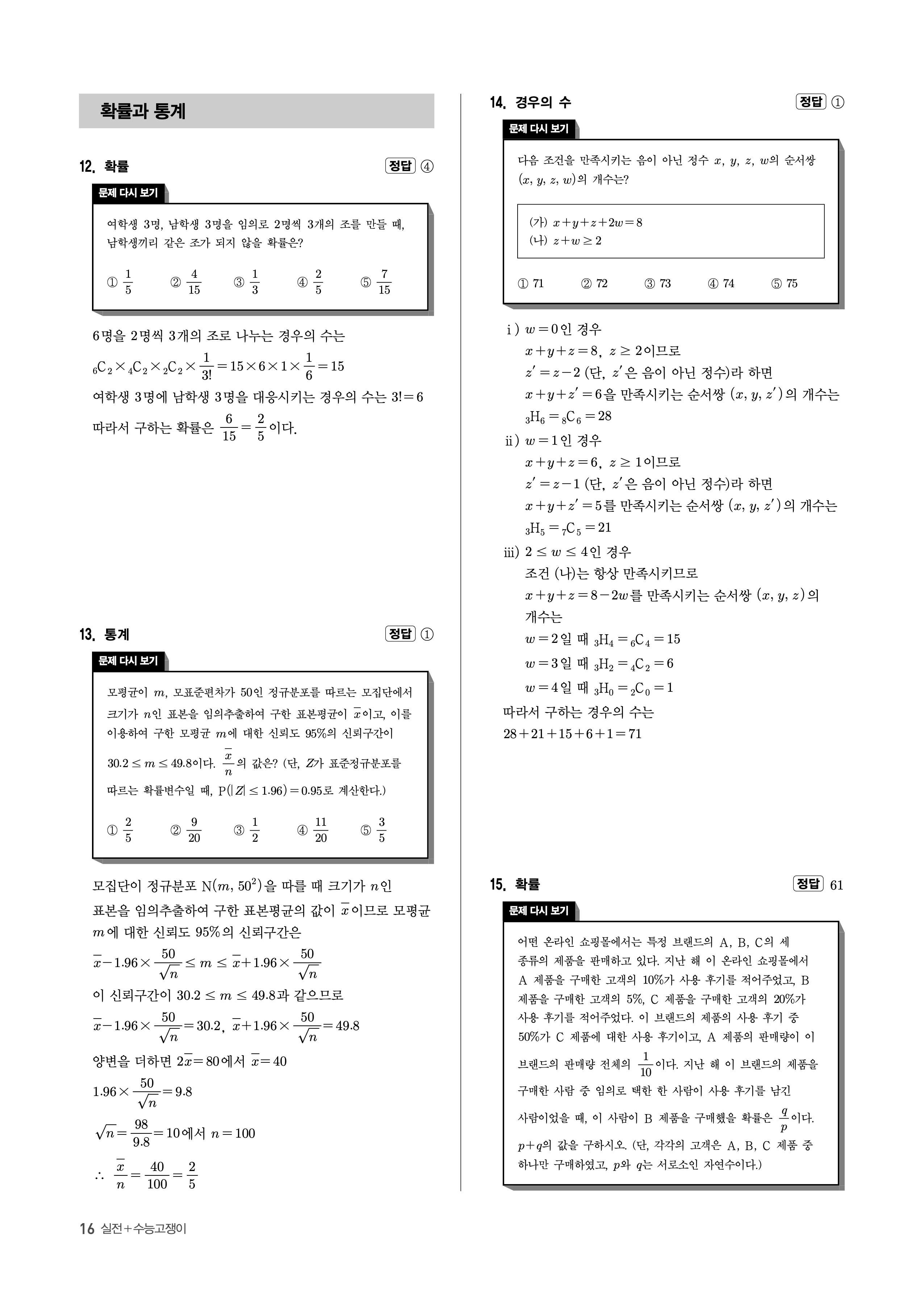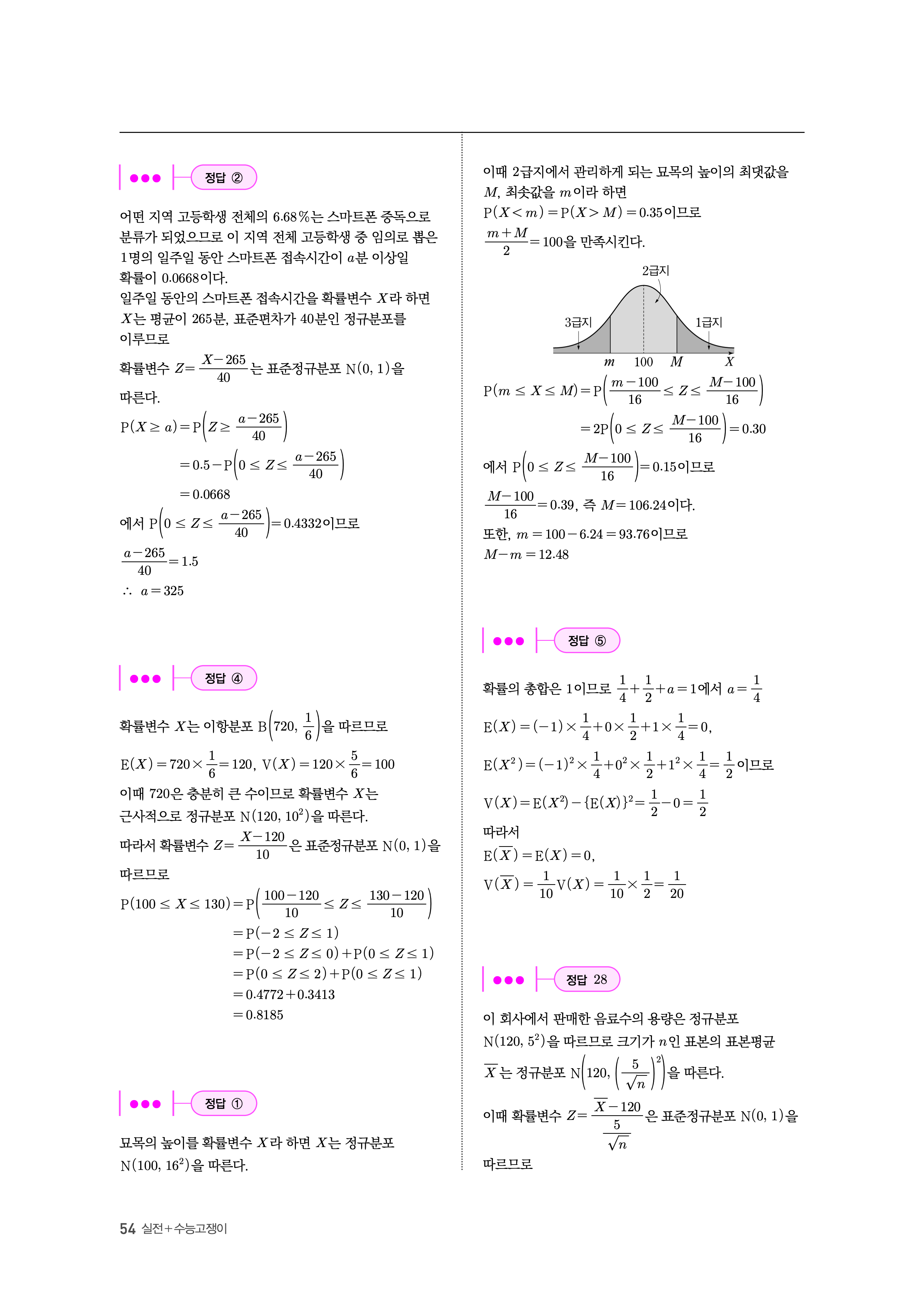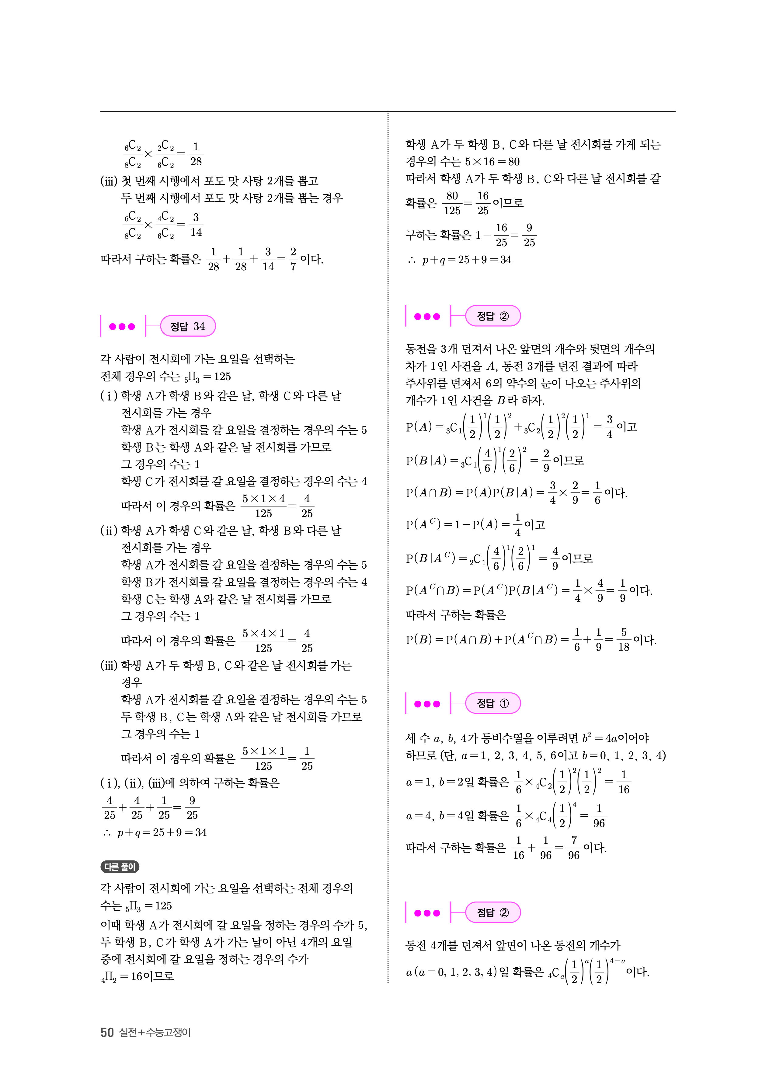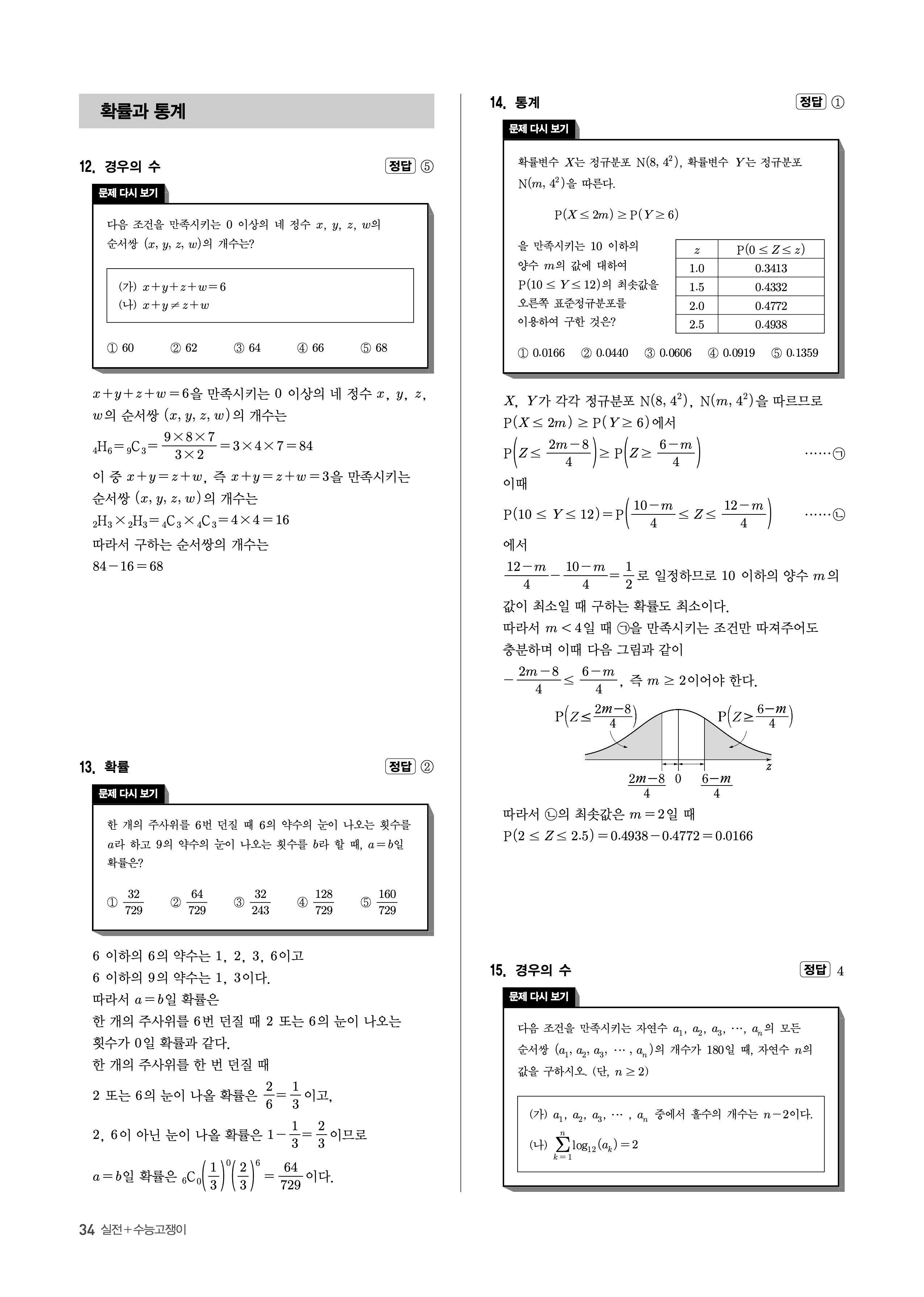 수능고쟁이 수학1 수학2 확률과통계 답지 해설 바로보는 사진답지 빠른답지 모바일최적화