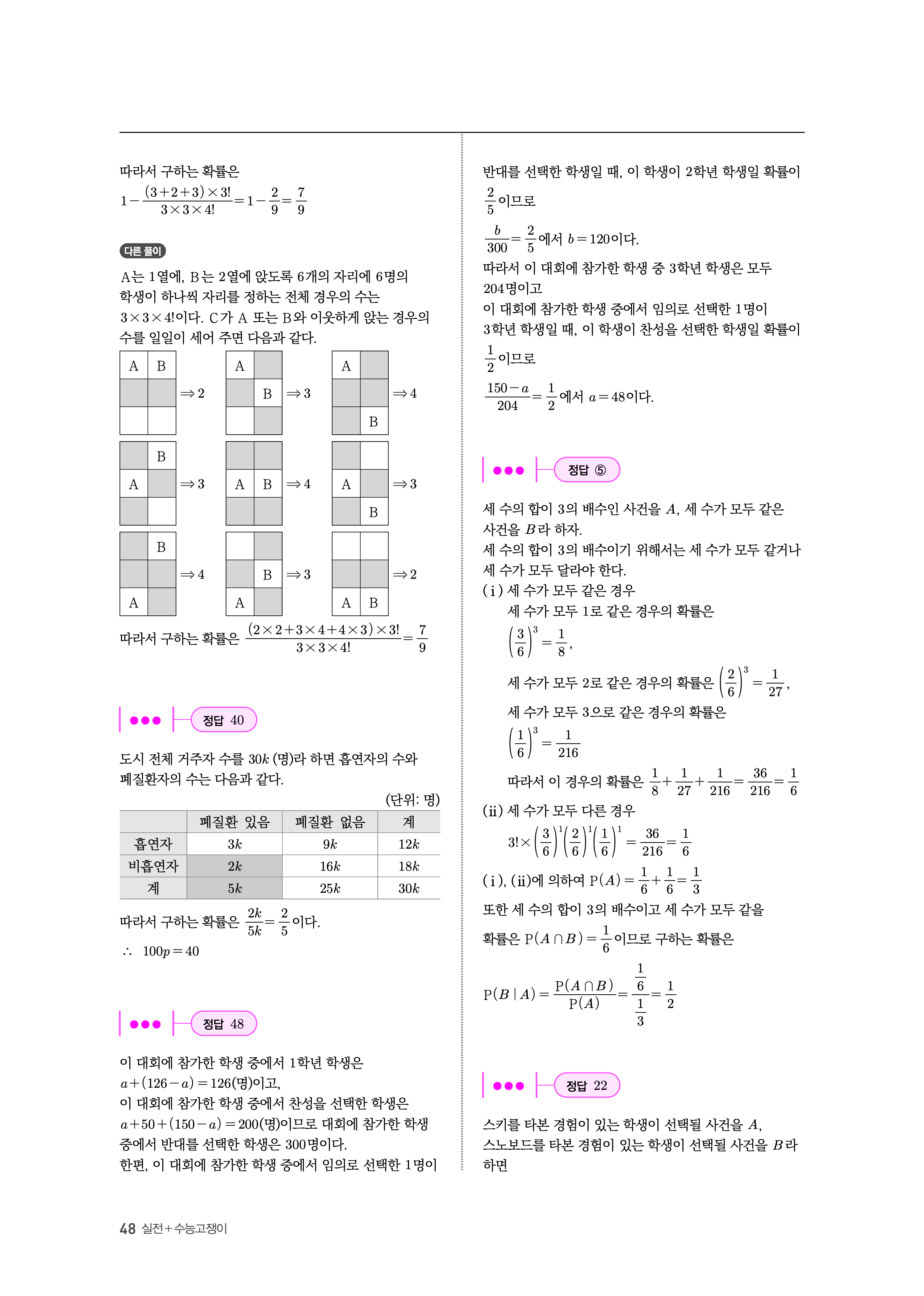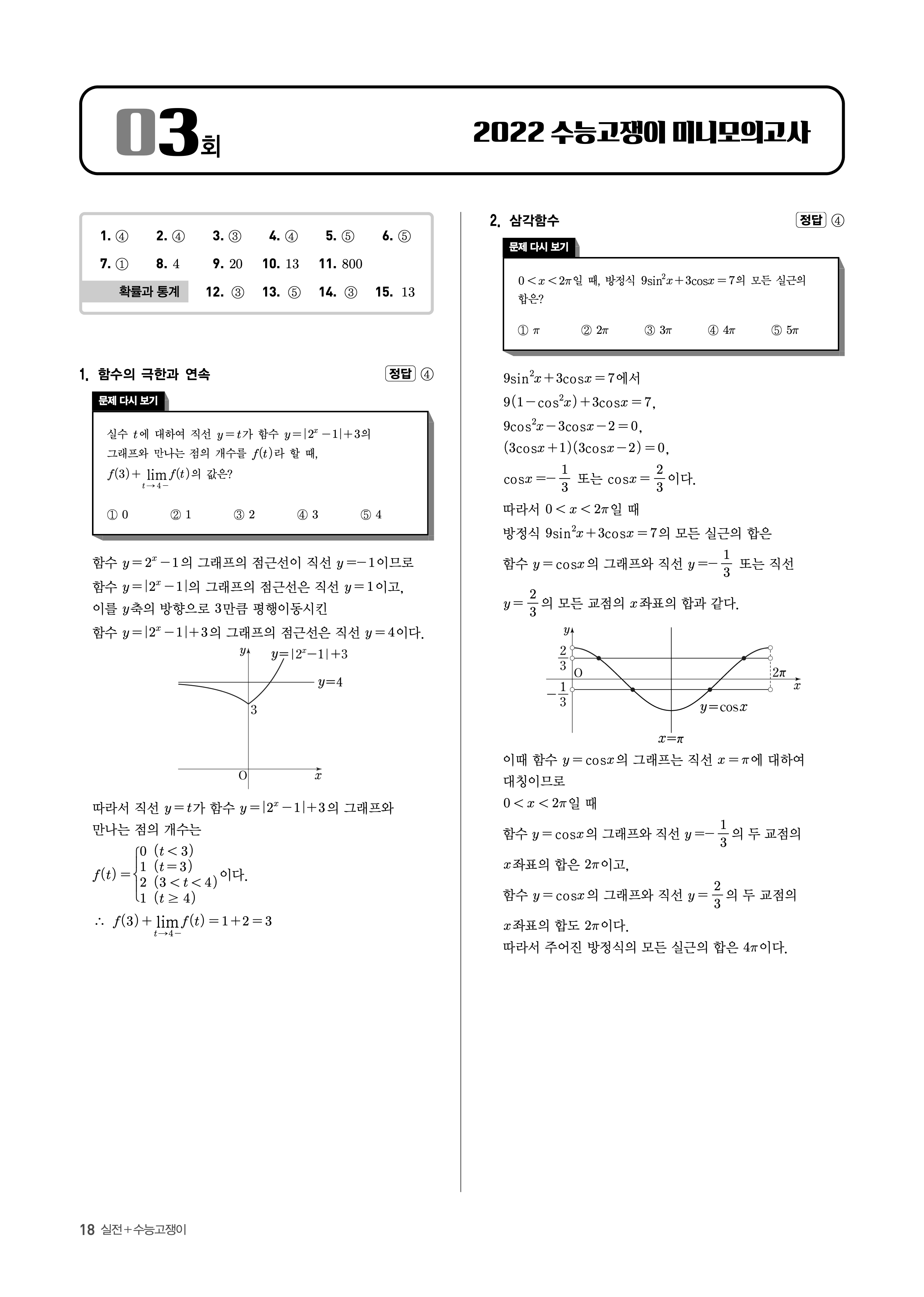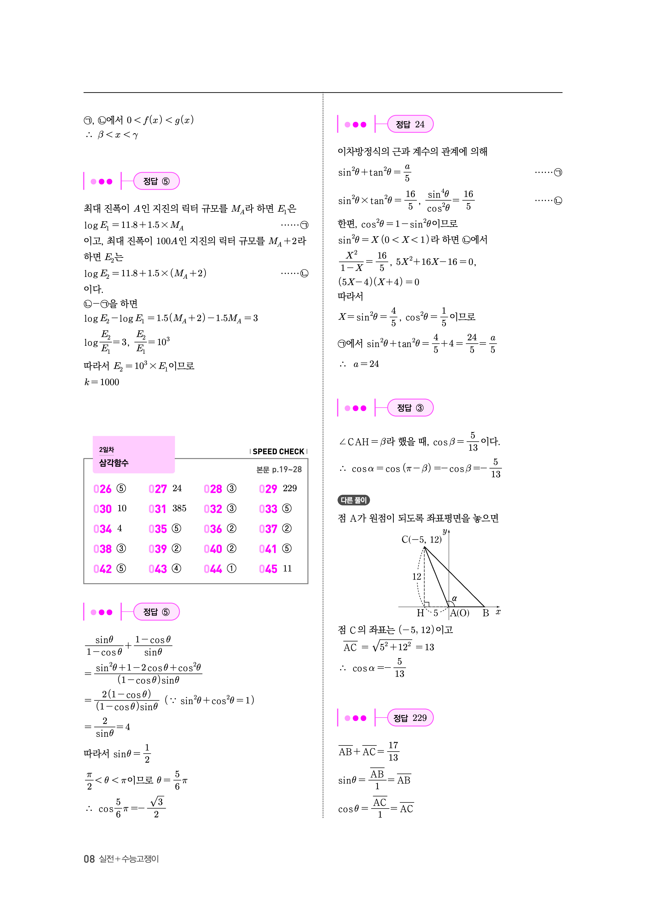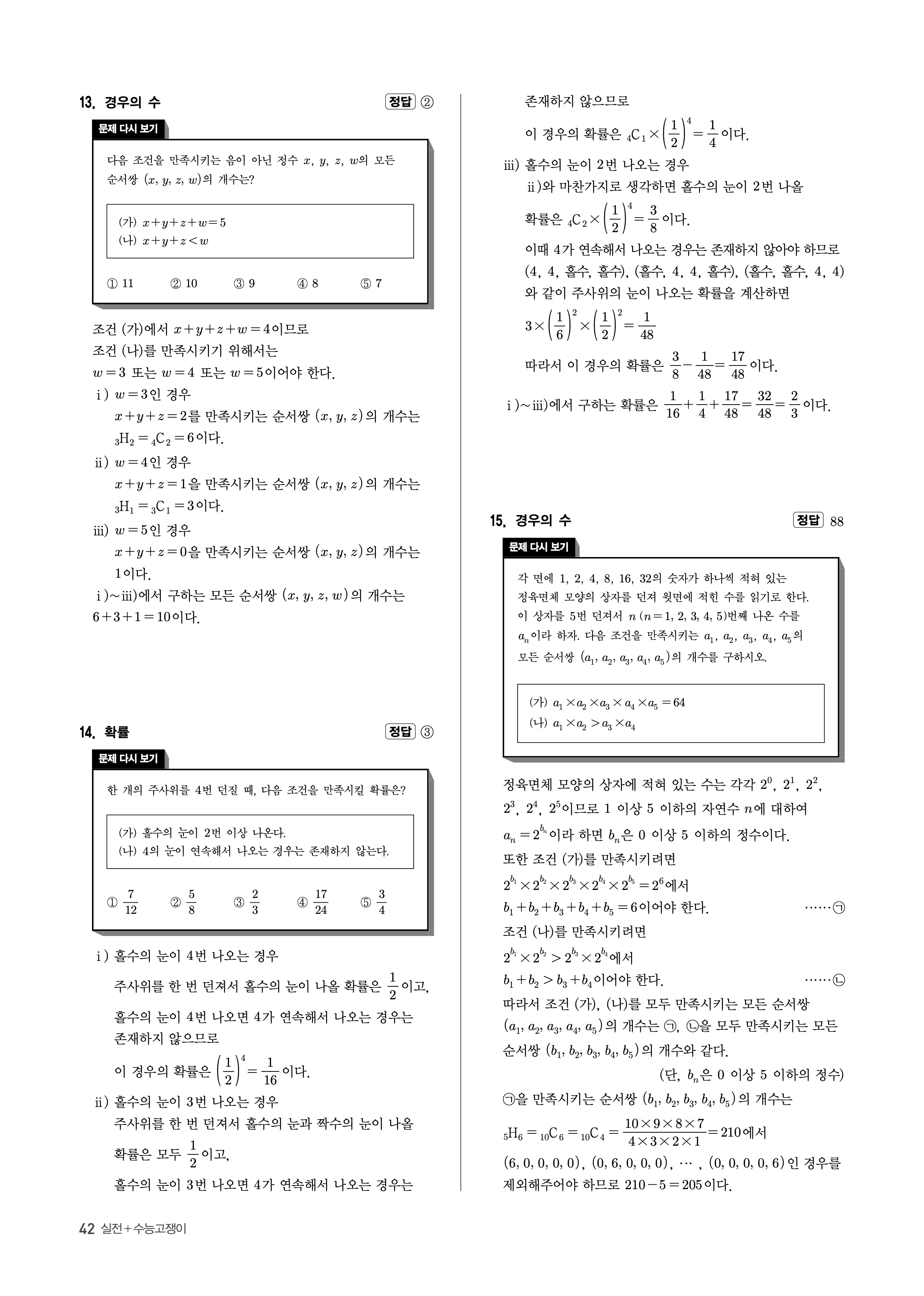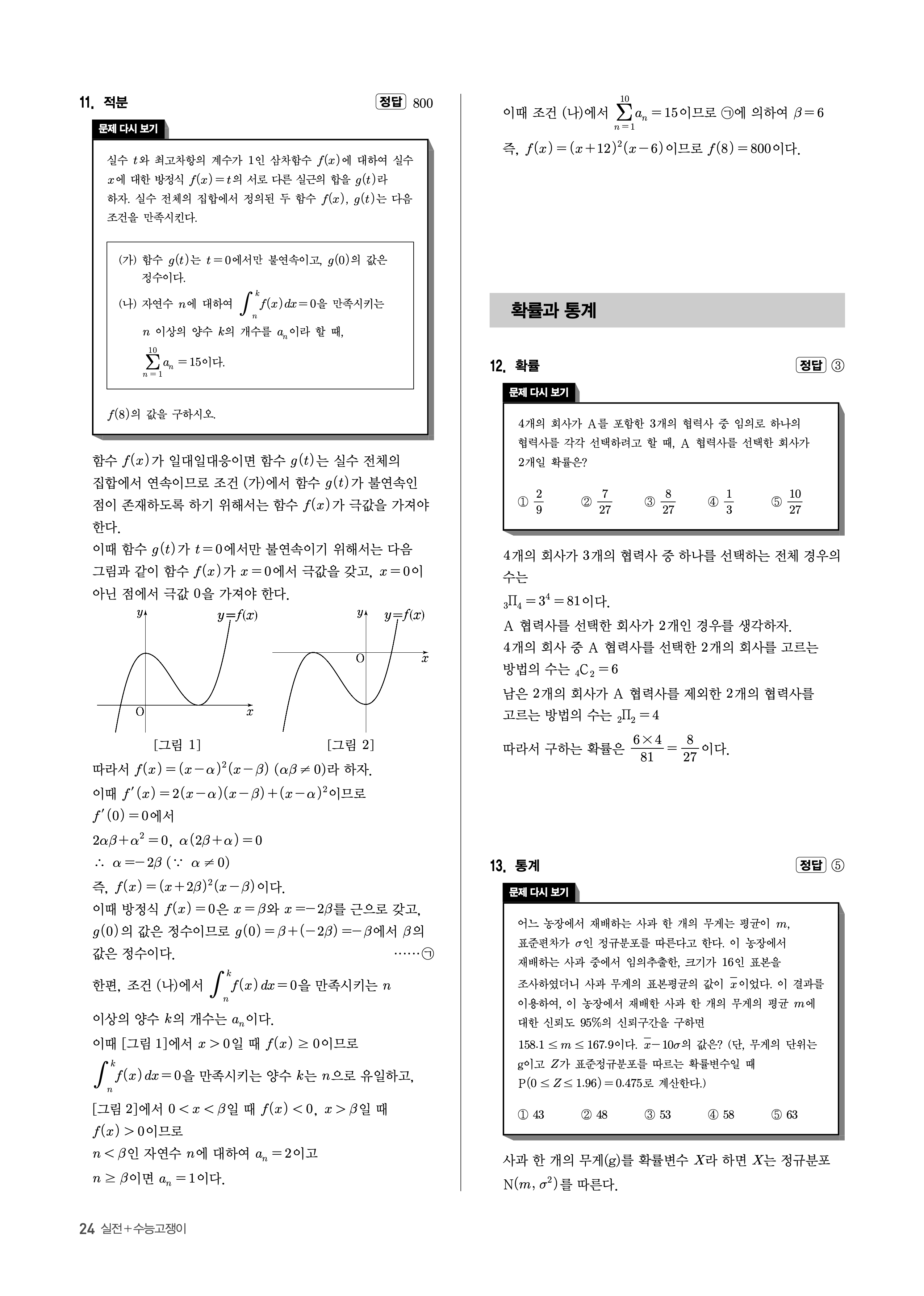 수능고쟁이 수학1 수학2 확률과통계 답지 해설 바로보는 사진답지 빠른답지 모바일최적화