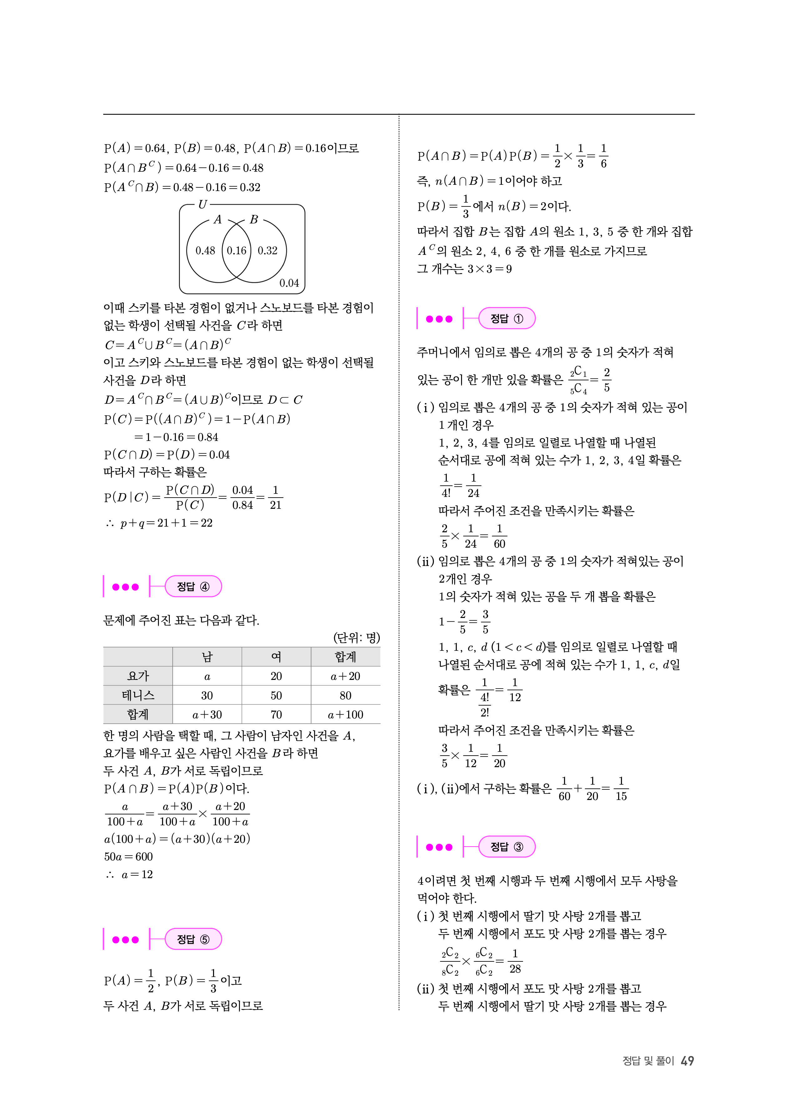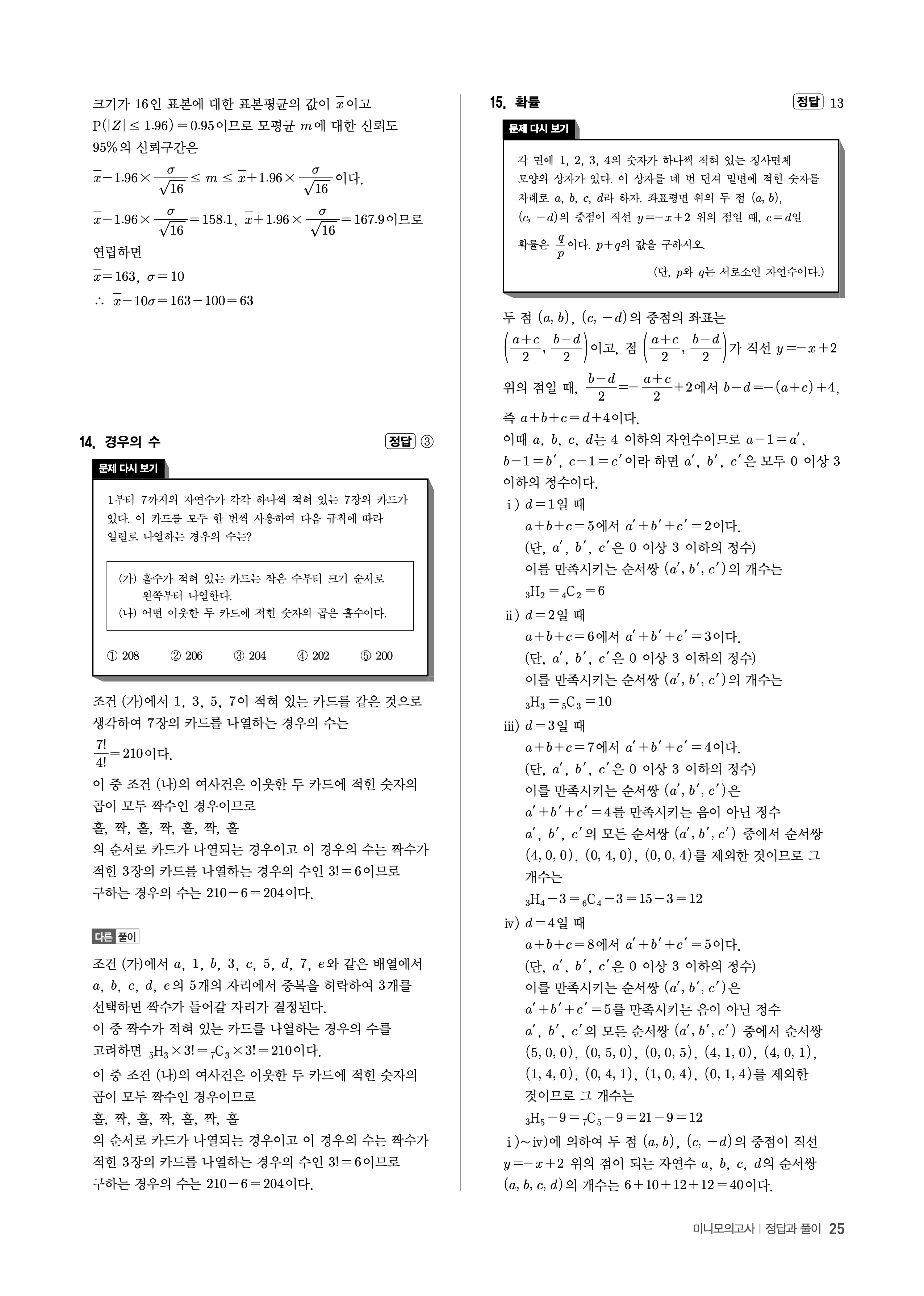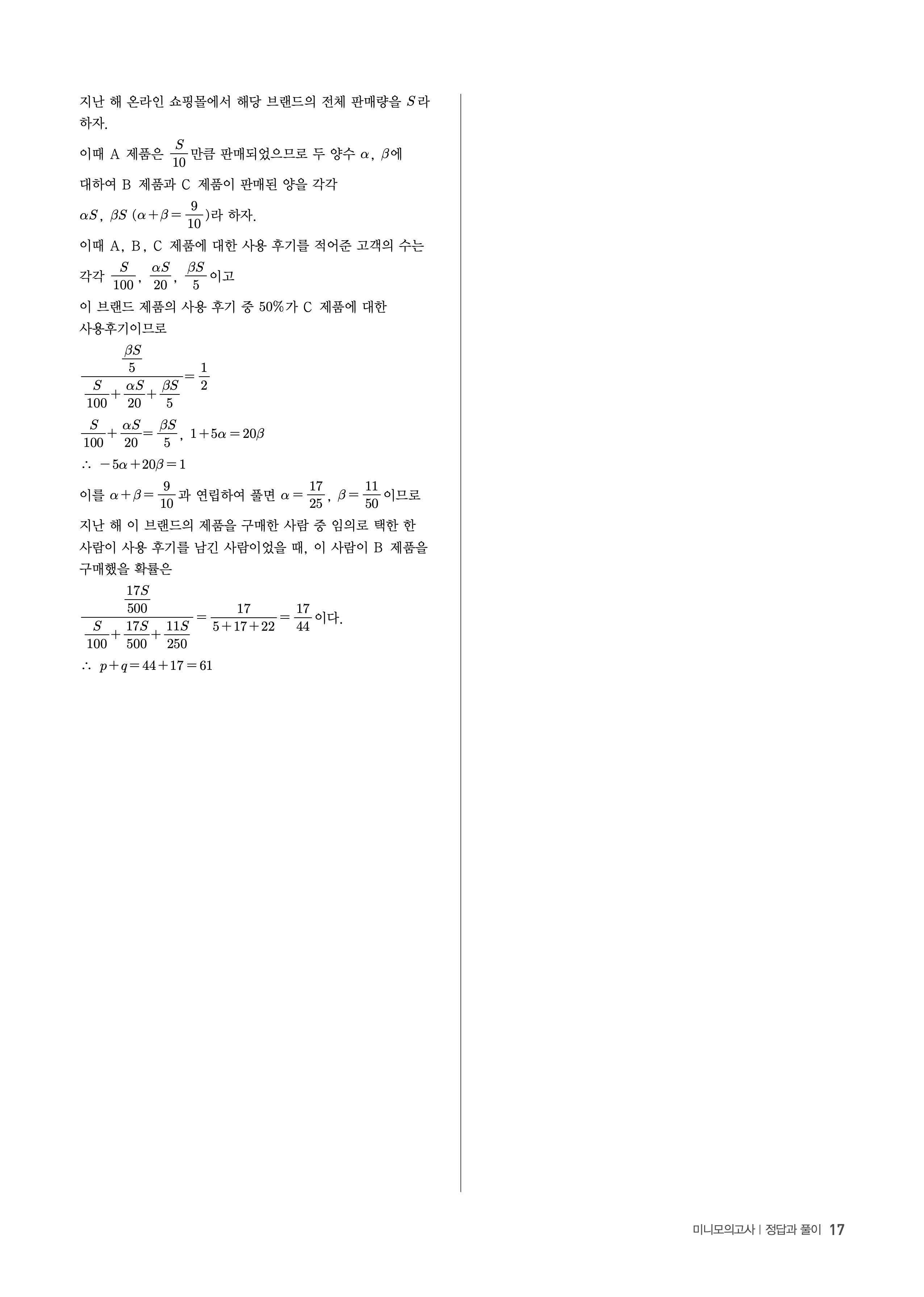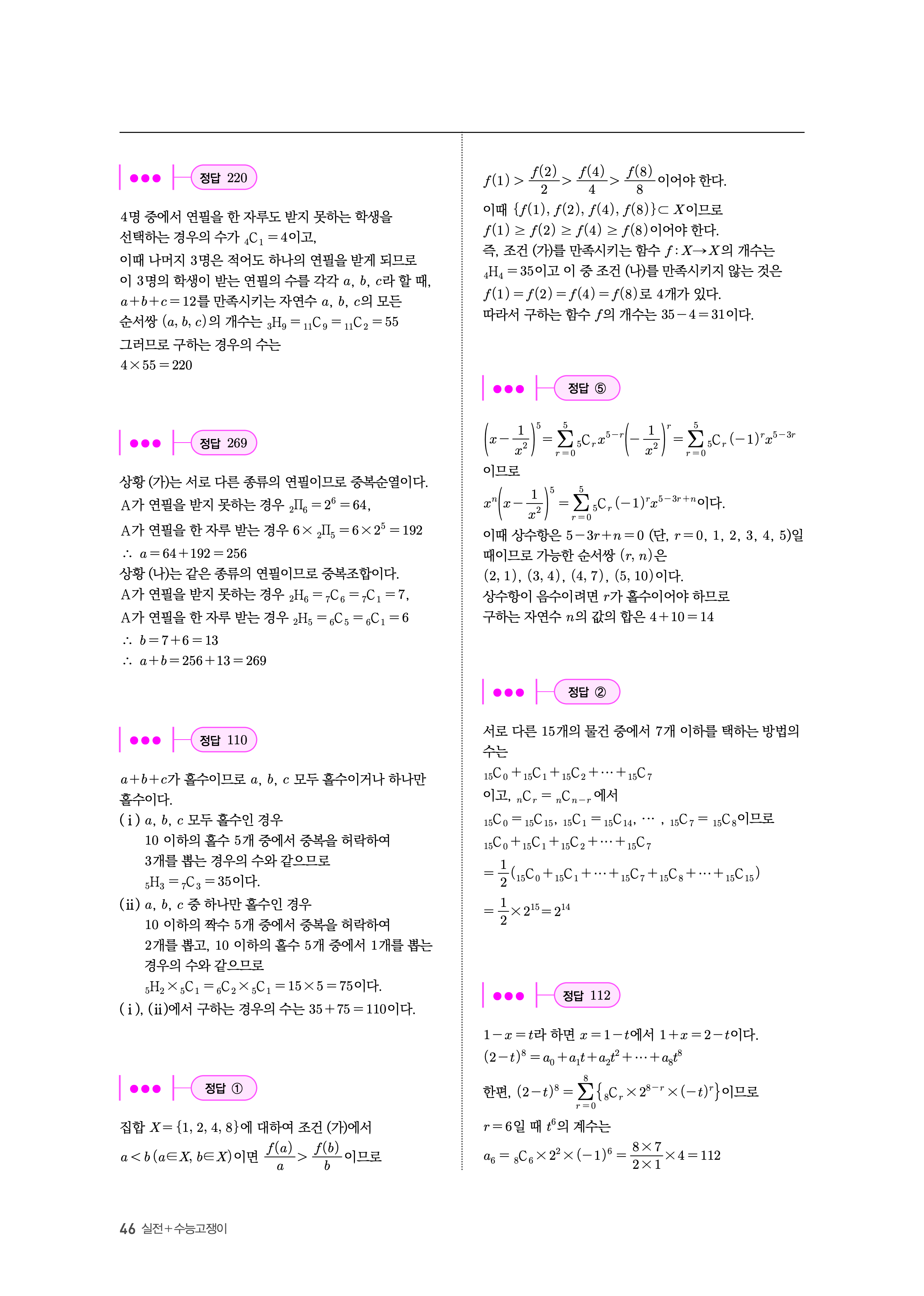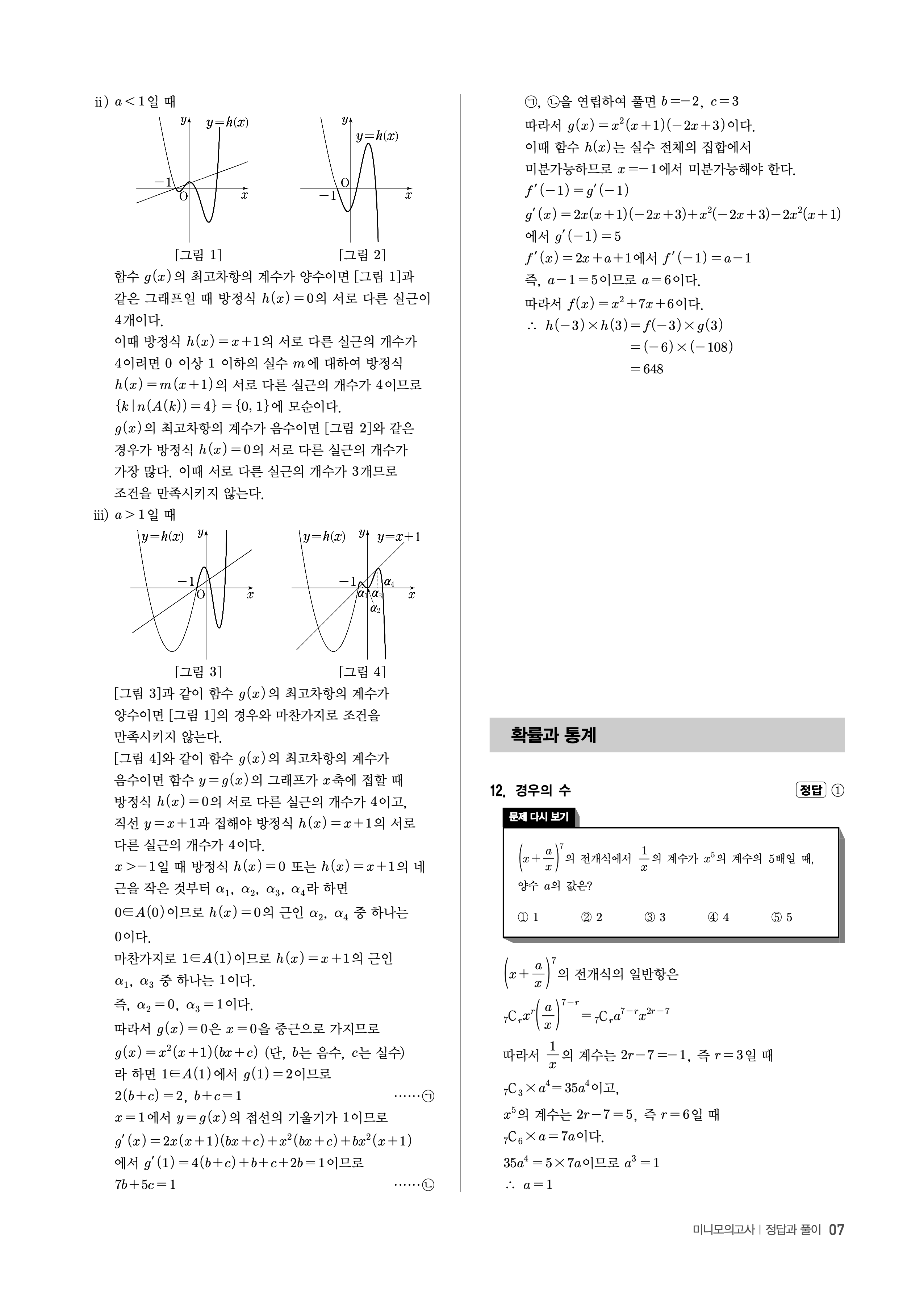 수능고쟁이 수학1 수학2 확률과통계 답지 해설 바로보는 사진답지 빠른답지 모바일최적화