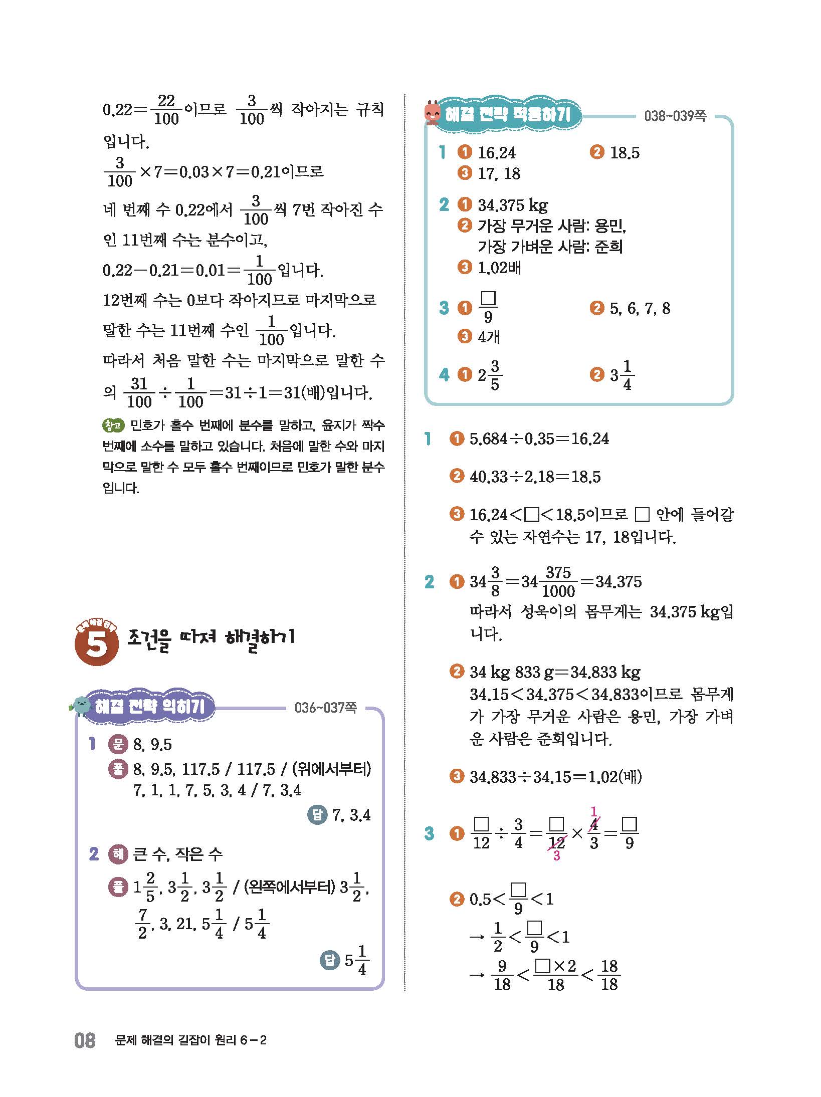 미래엔 문제 해결의 길잡이 원리 6-2답지 사진답지 빠른답지 모바일최적화