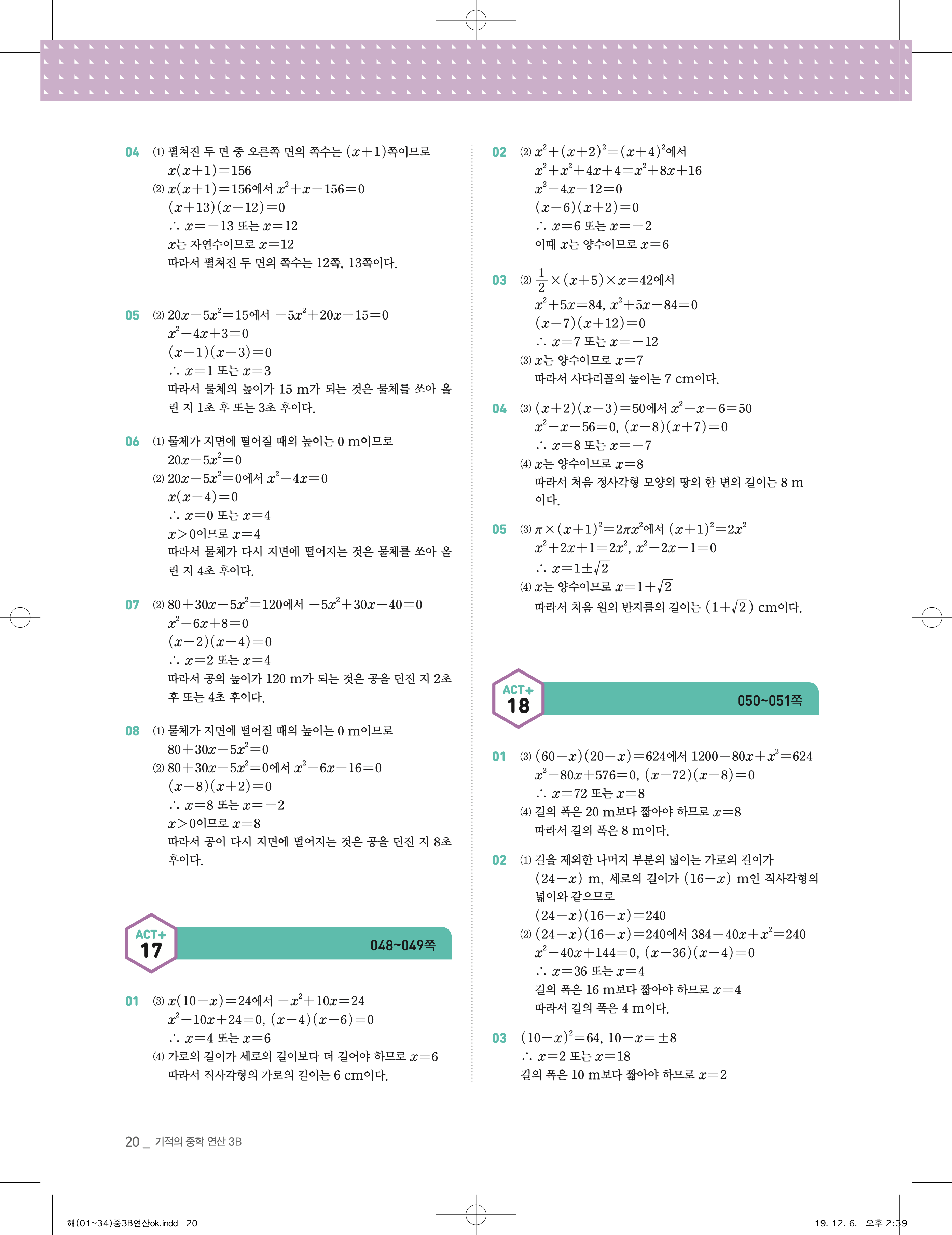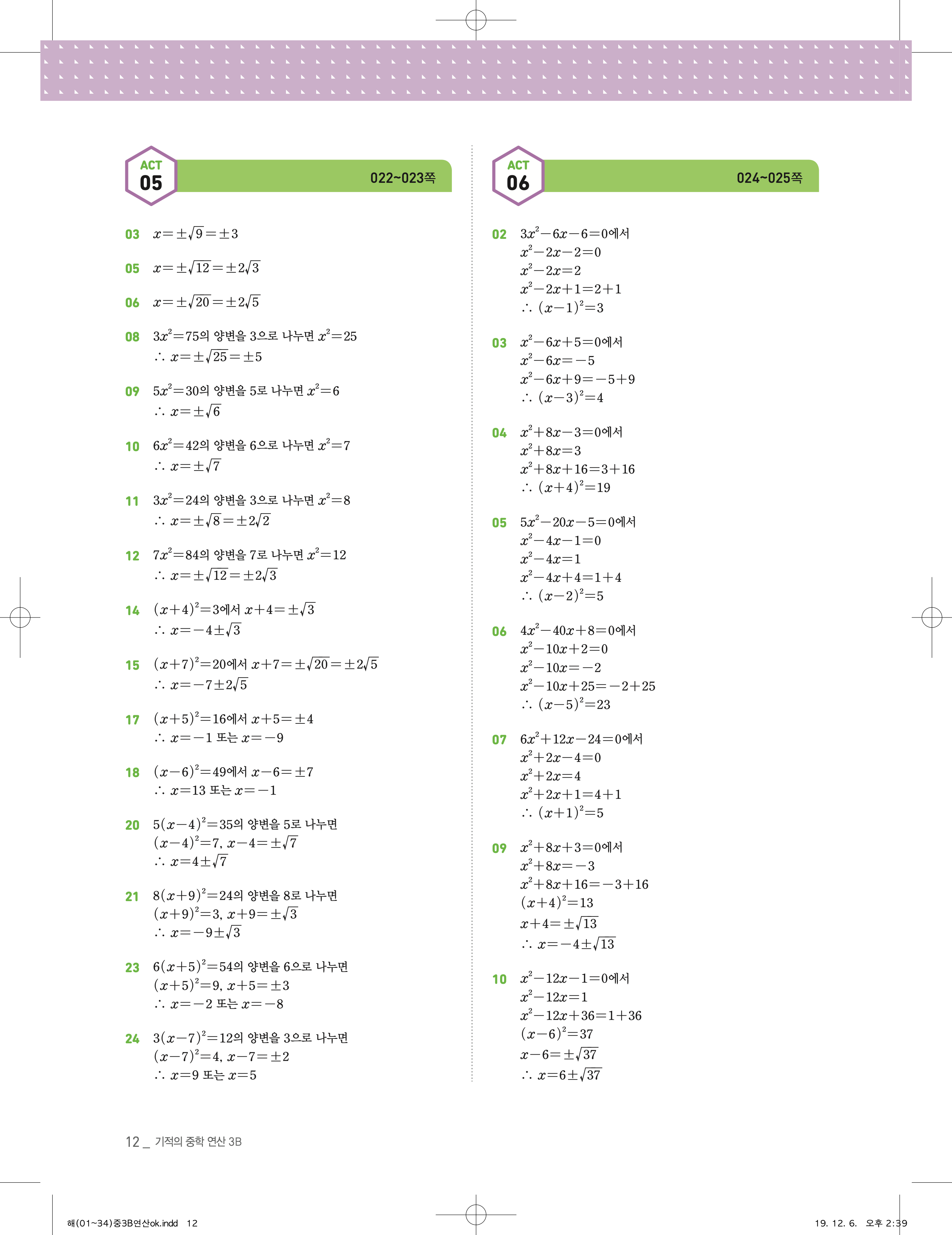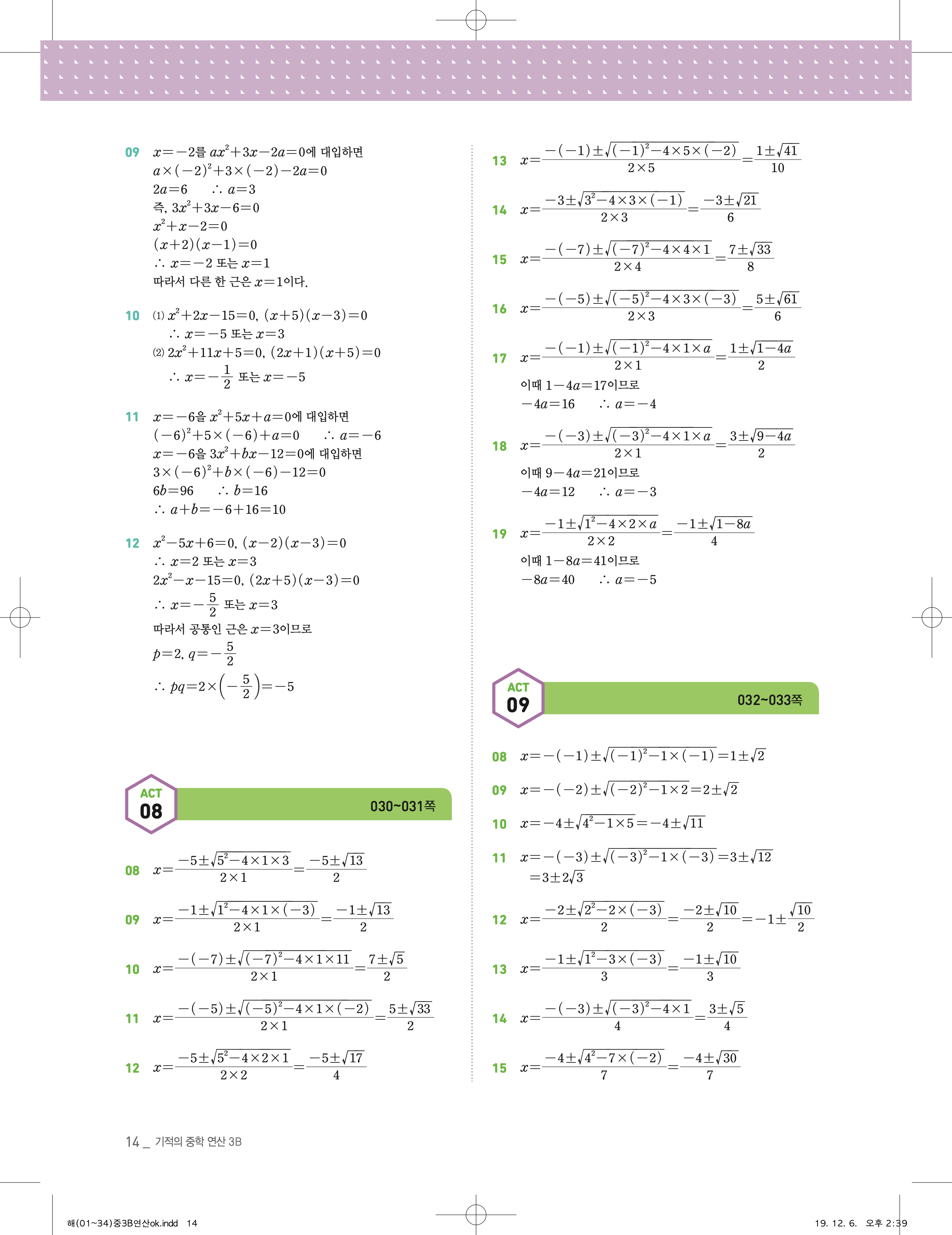 기적의중학연산3B 답지 해설 바로보는 사진답지 빠른답지 모바일최적화