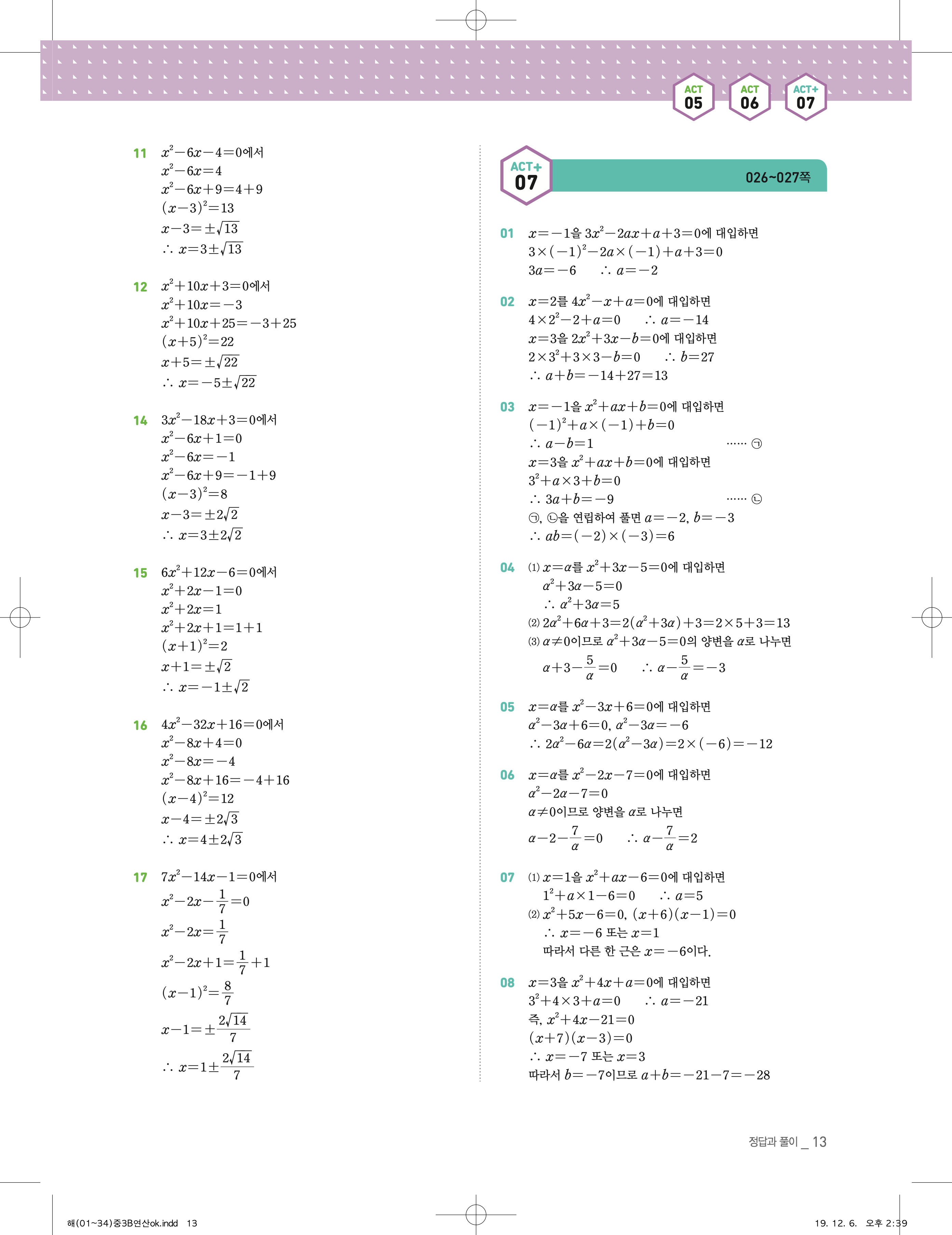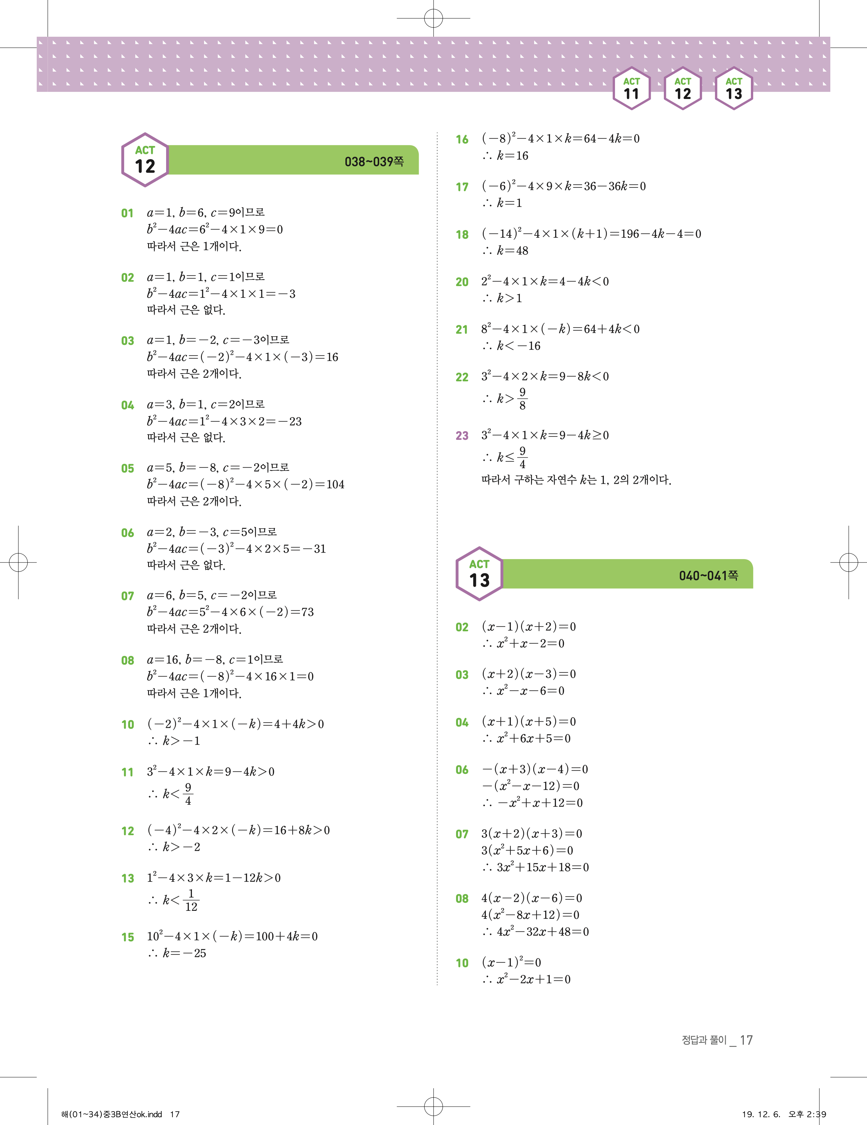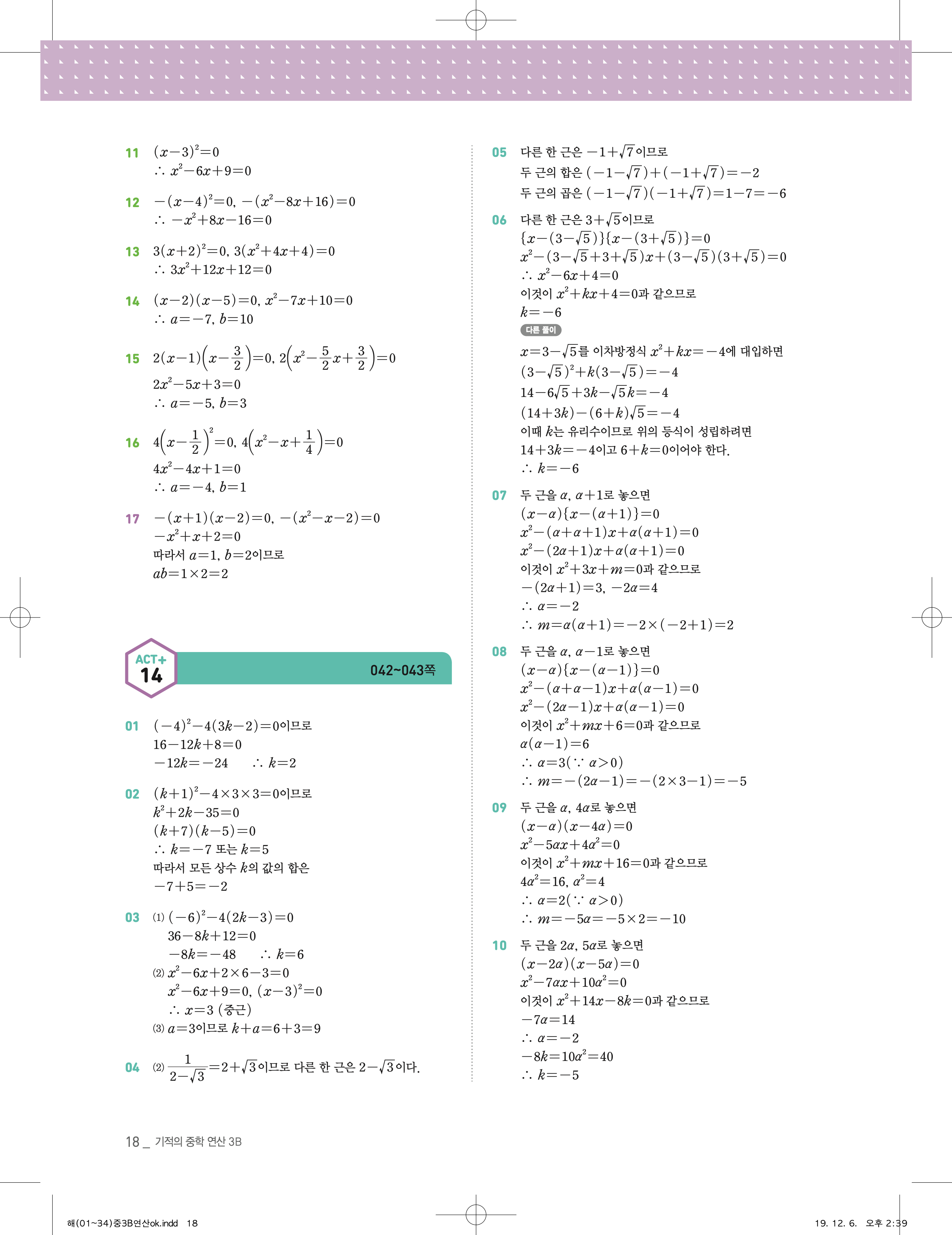 기적의중학연산3B 답지 해설 바로보는 사진답지 빠른답지 모바일최적화