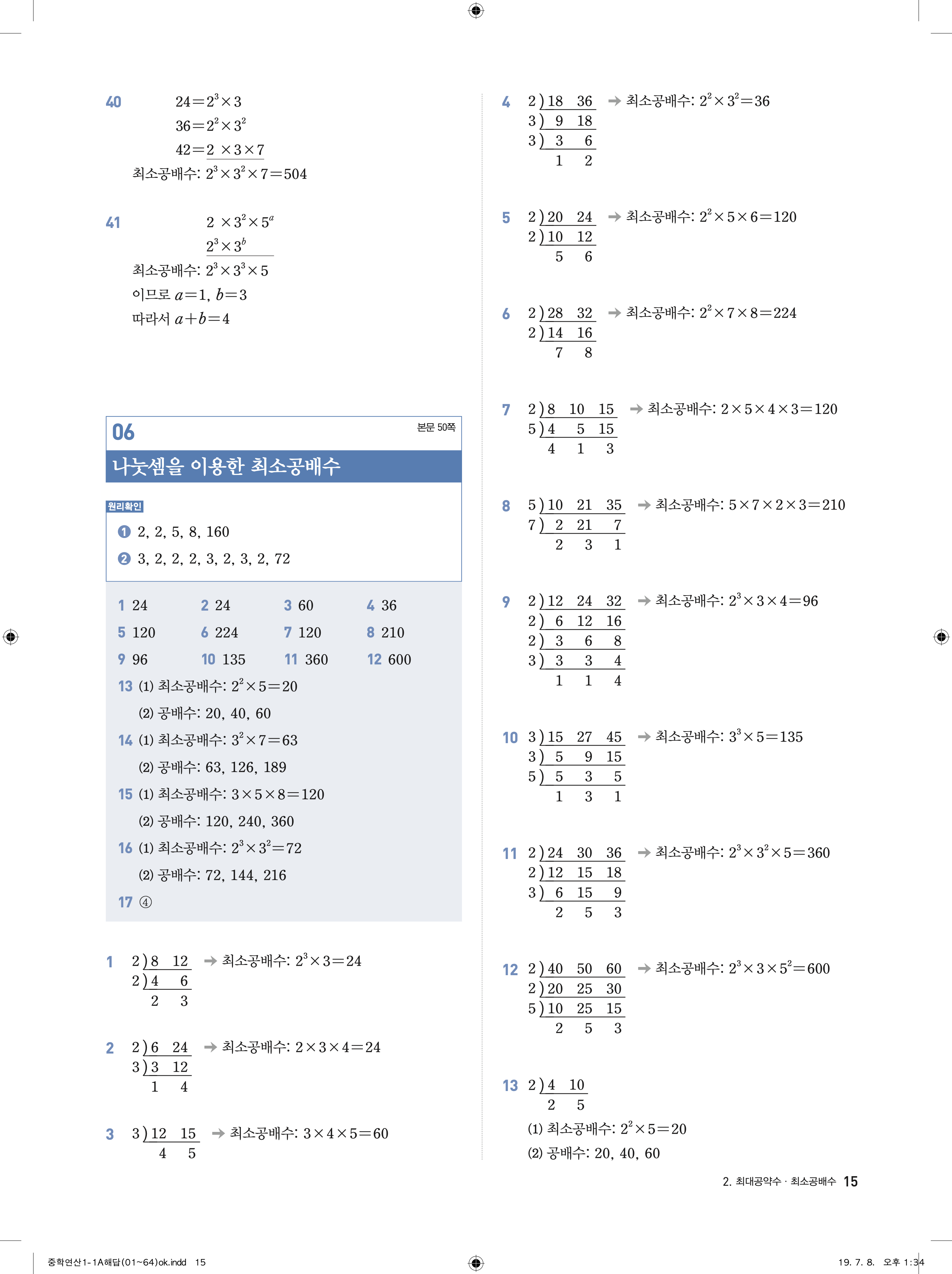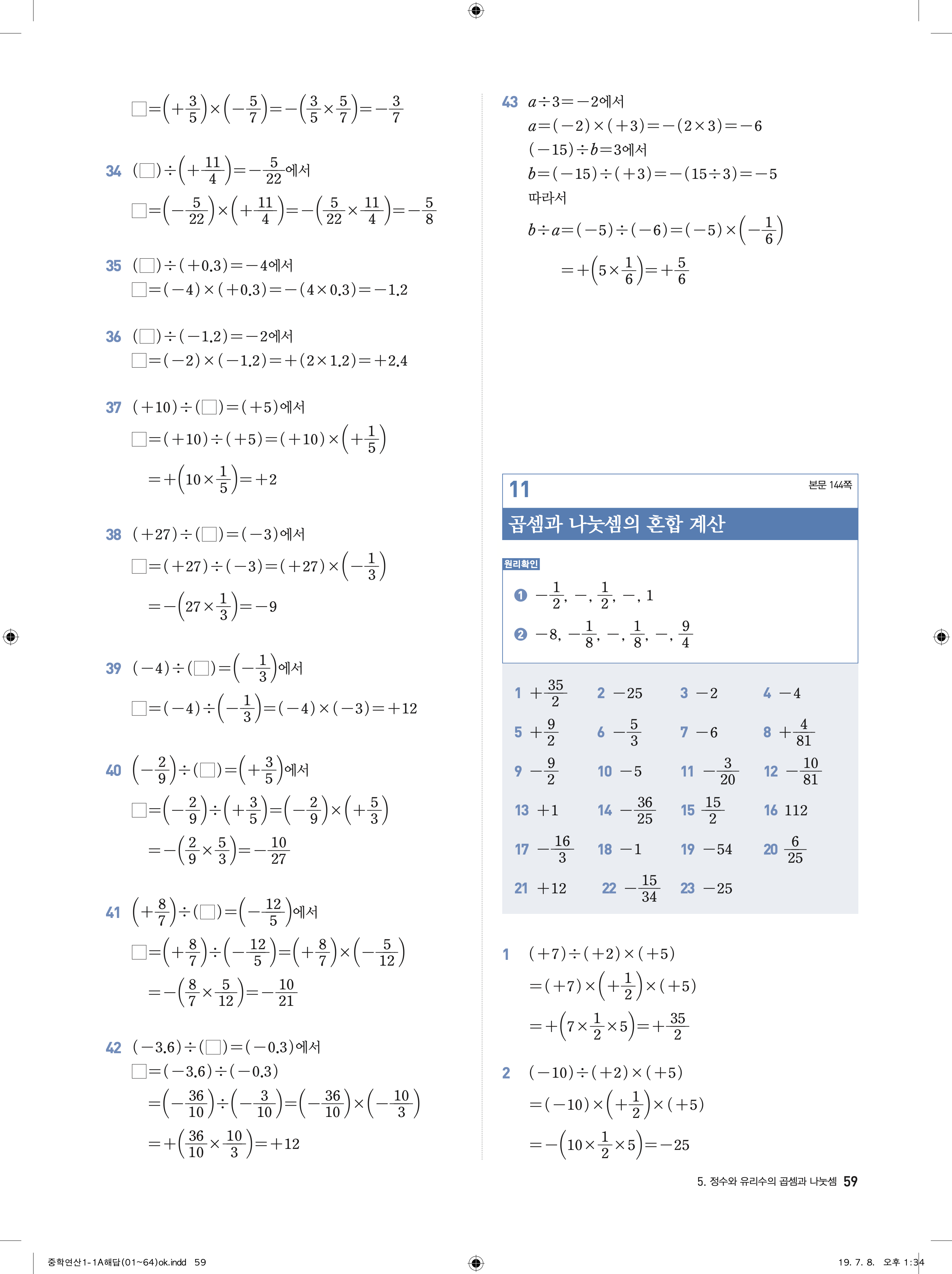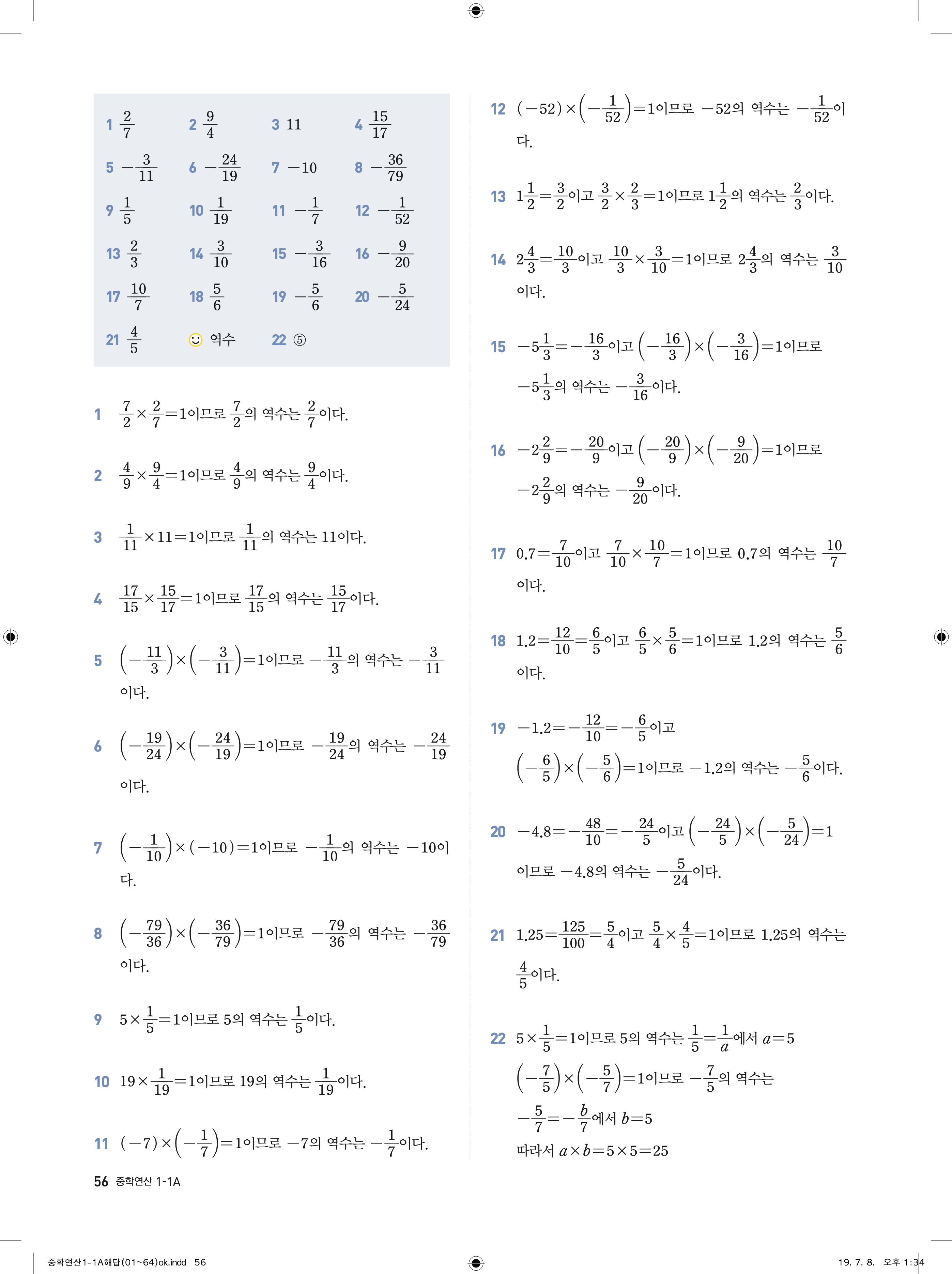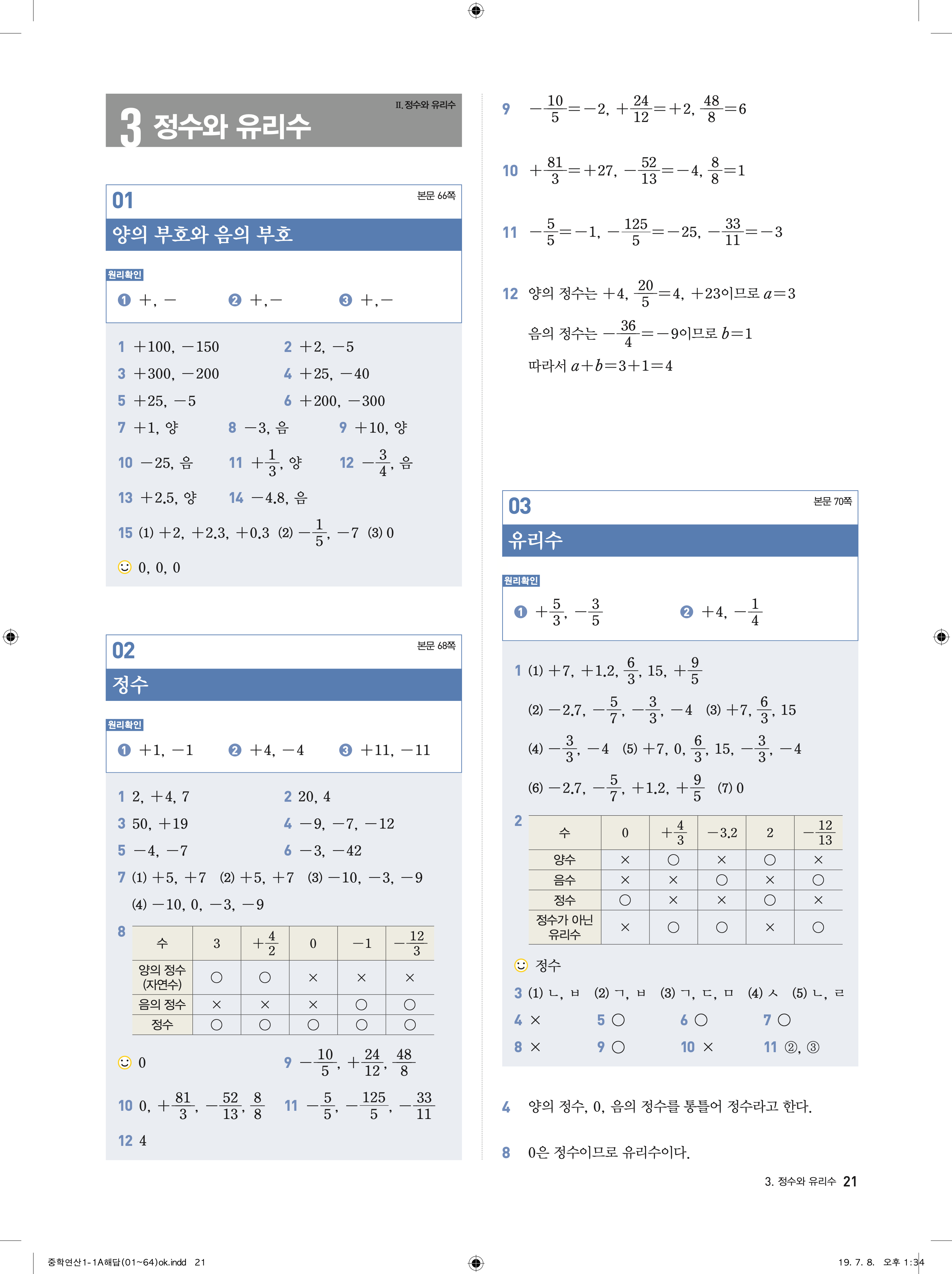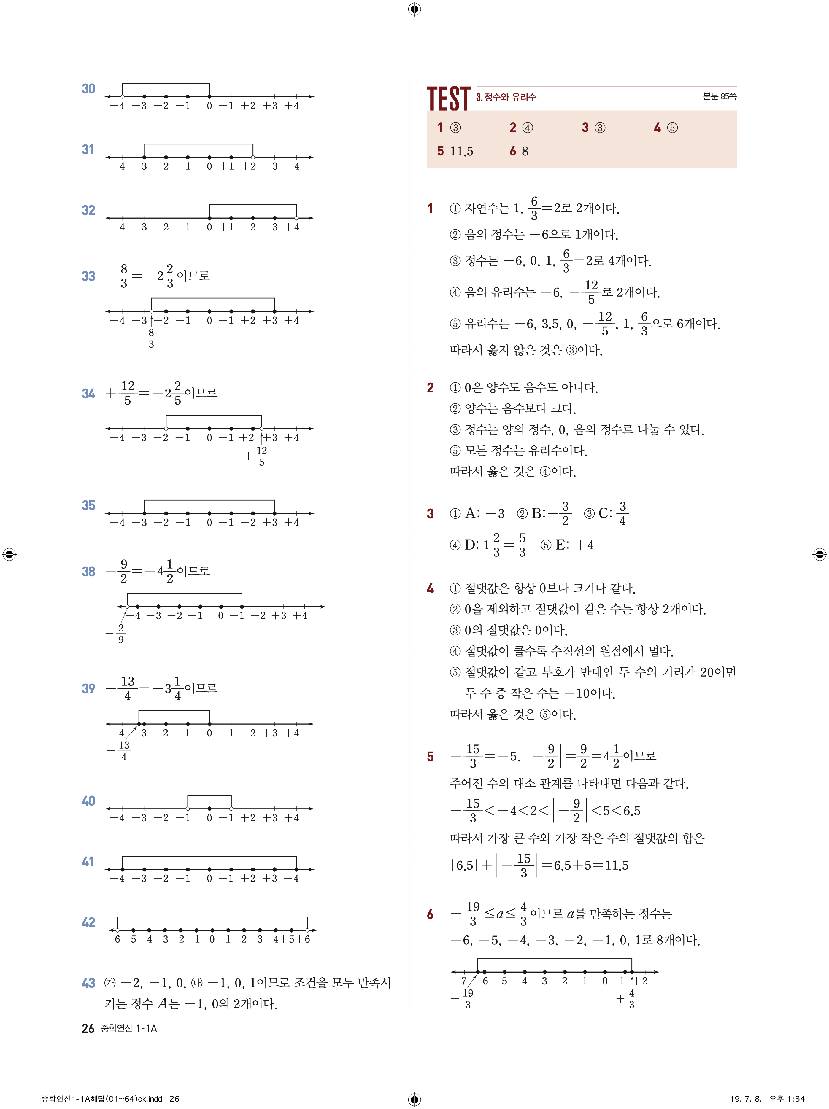 디딤돌 중학연산 1-1A 답지 해설 바로보는 사진답지 빠른답지 모바일최적화