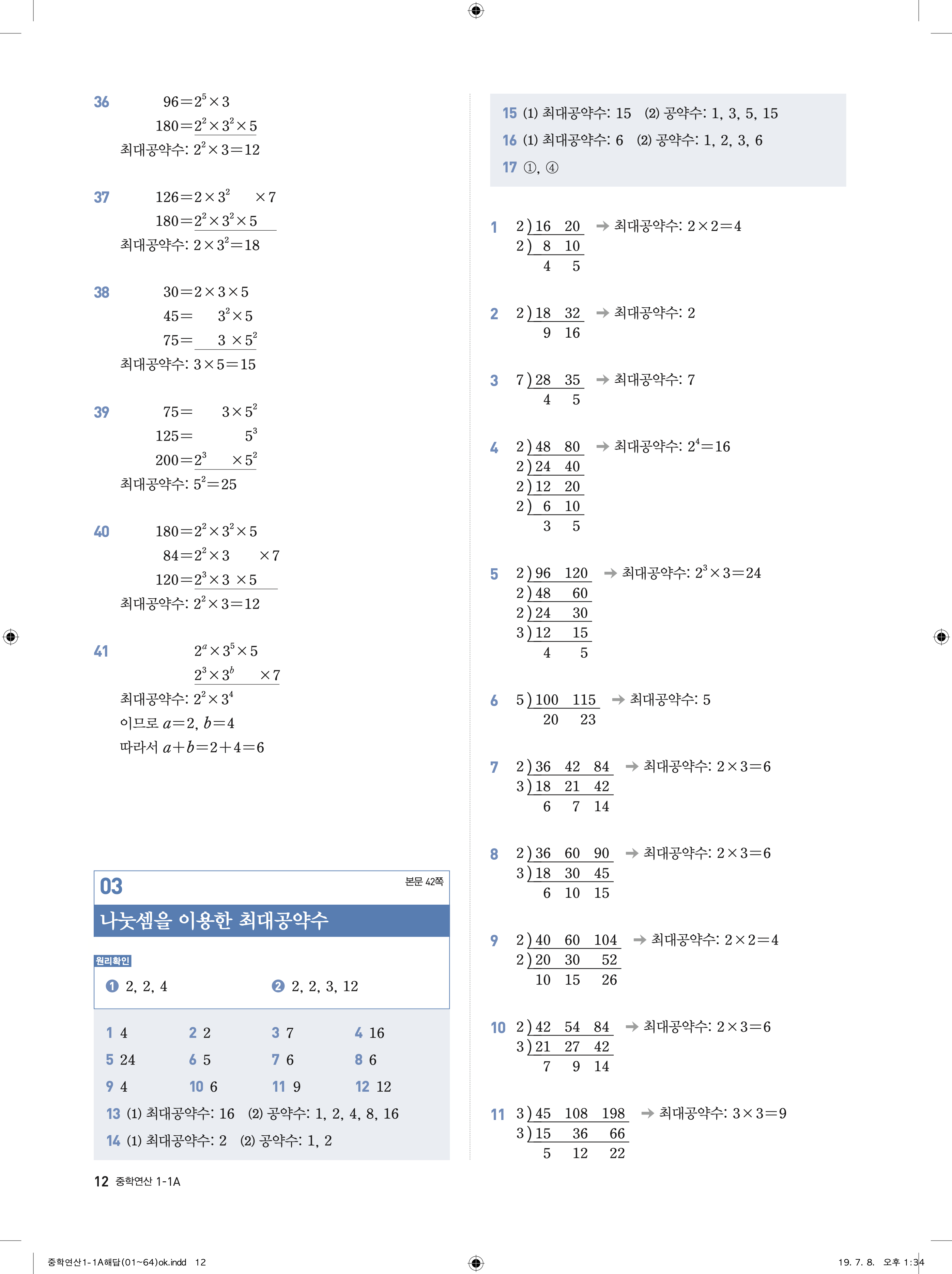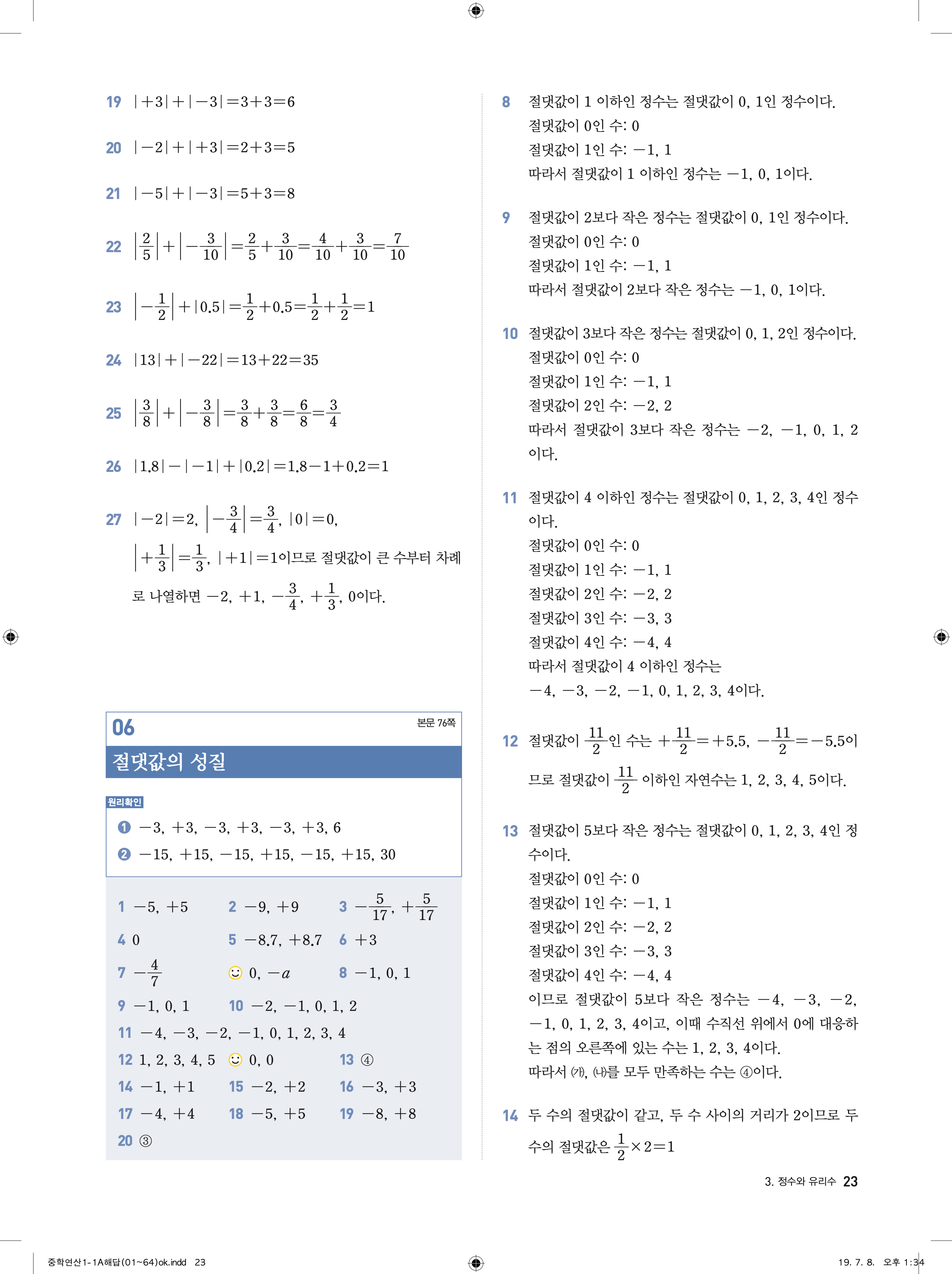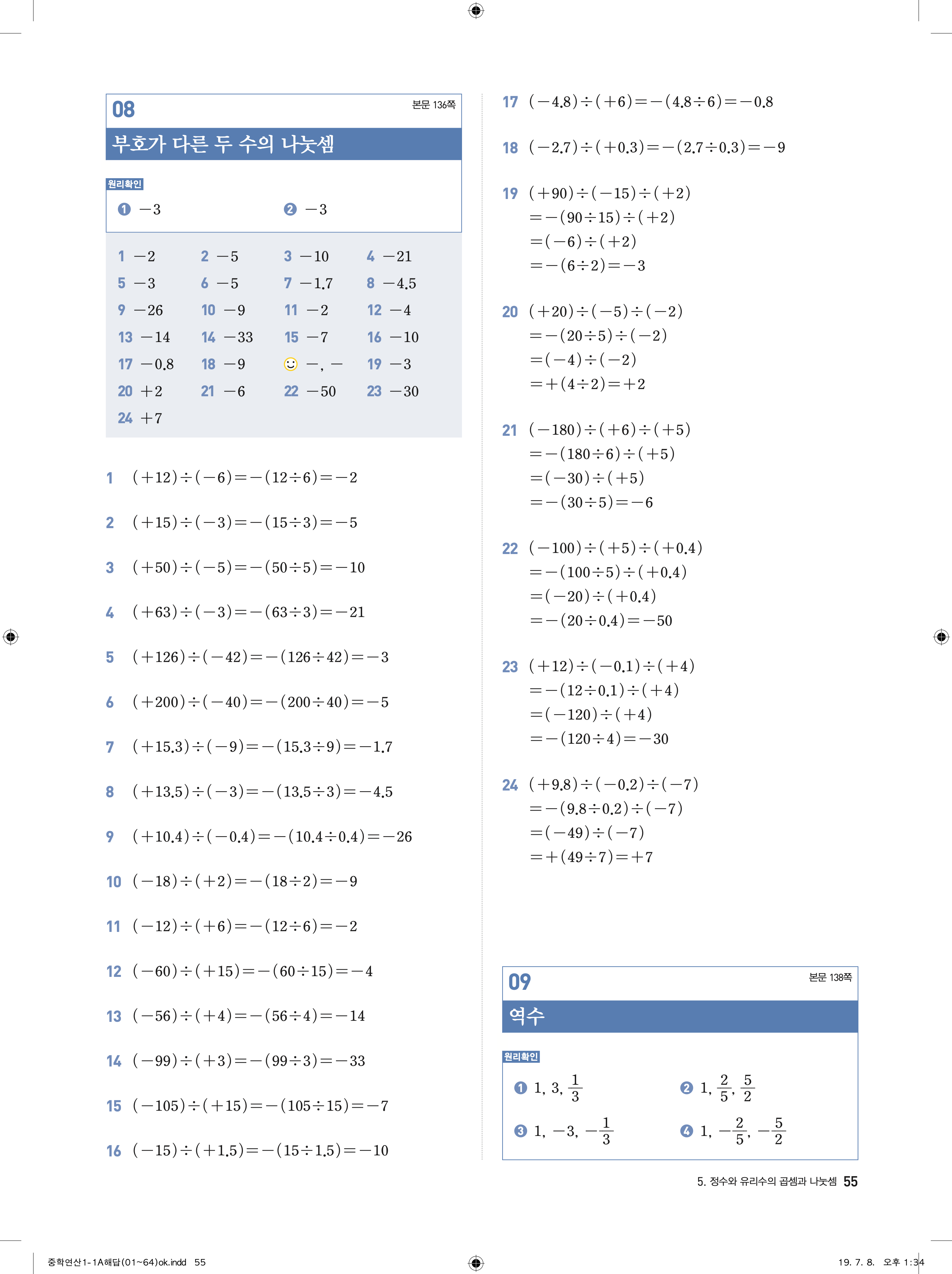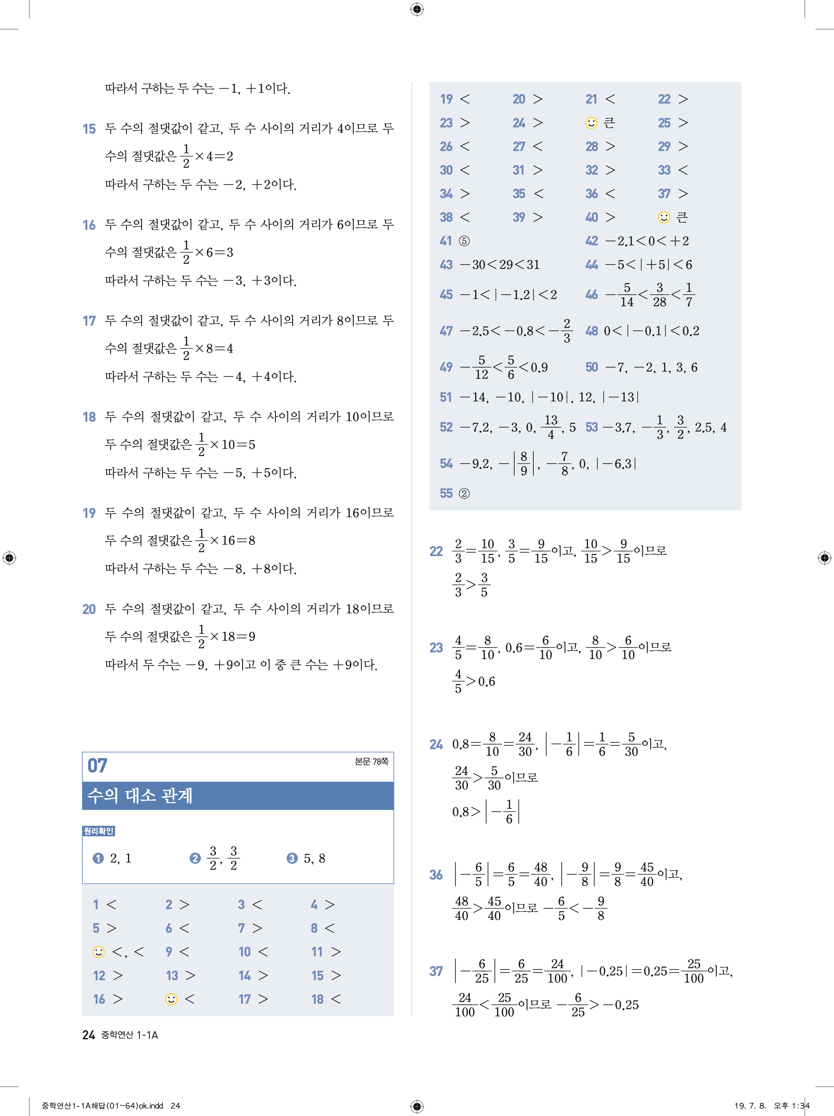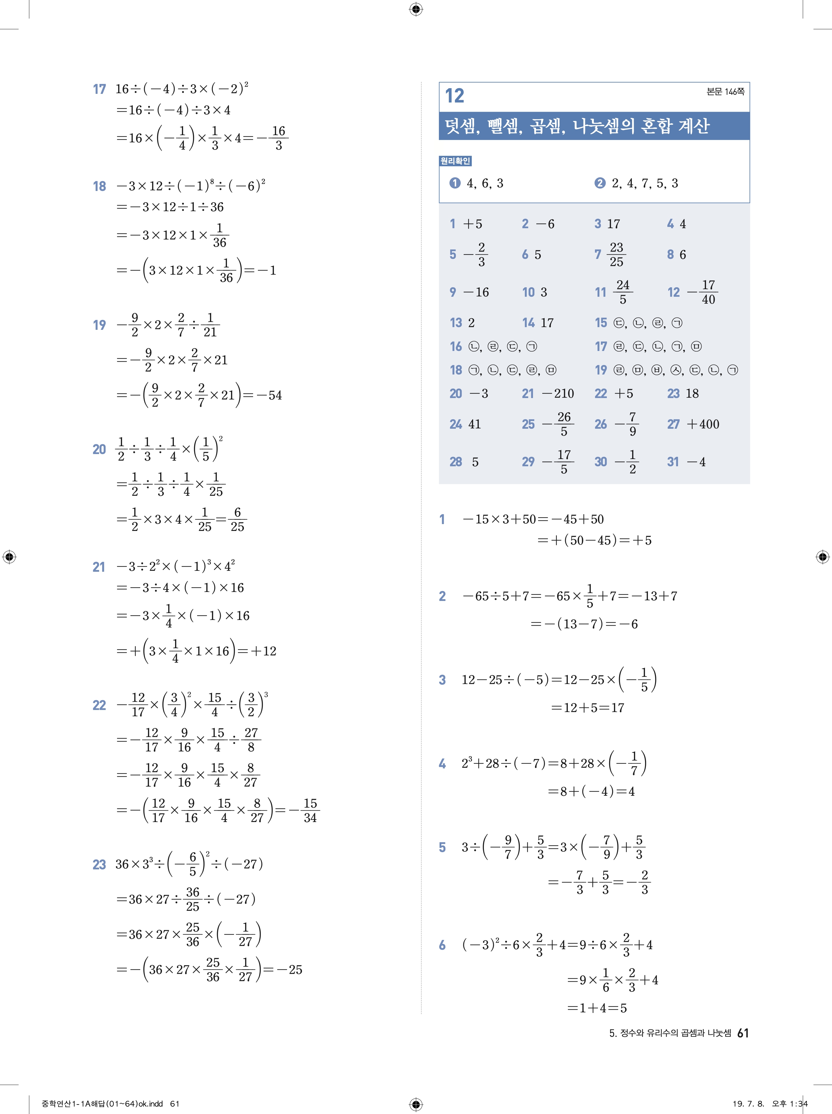 디딤돌 중학연산 1-1A 답지 해설 바로보는 사진답지 빠른답지 모바일최적화
