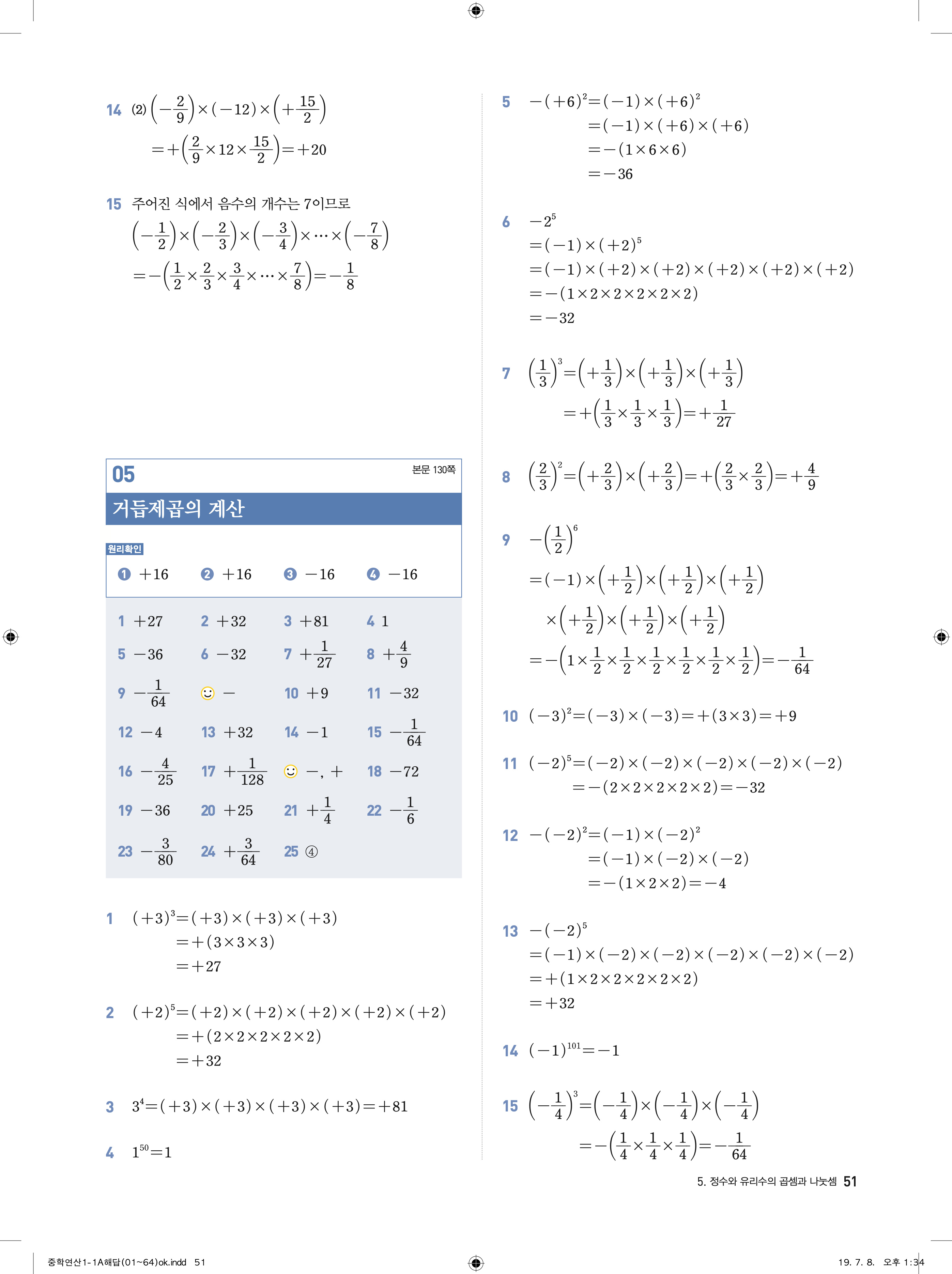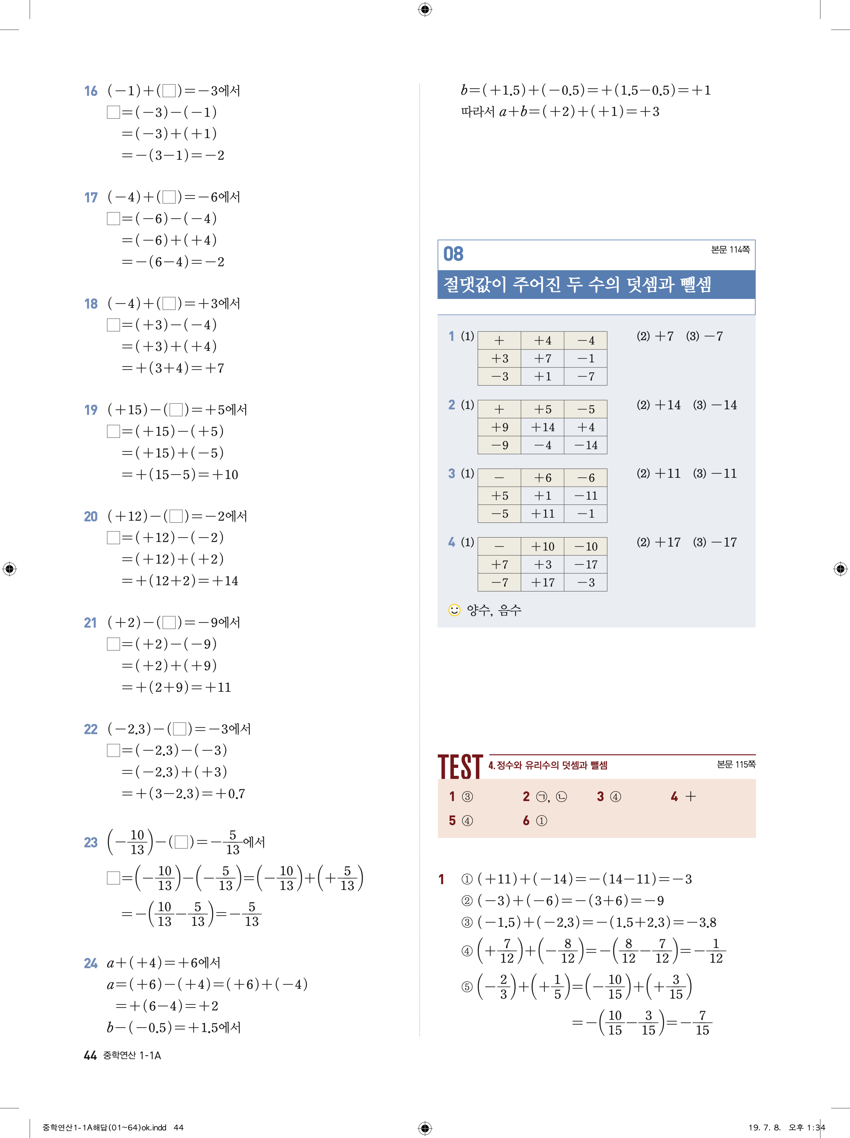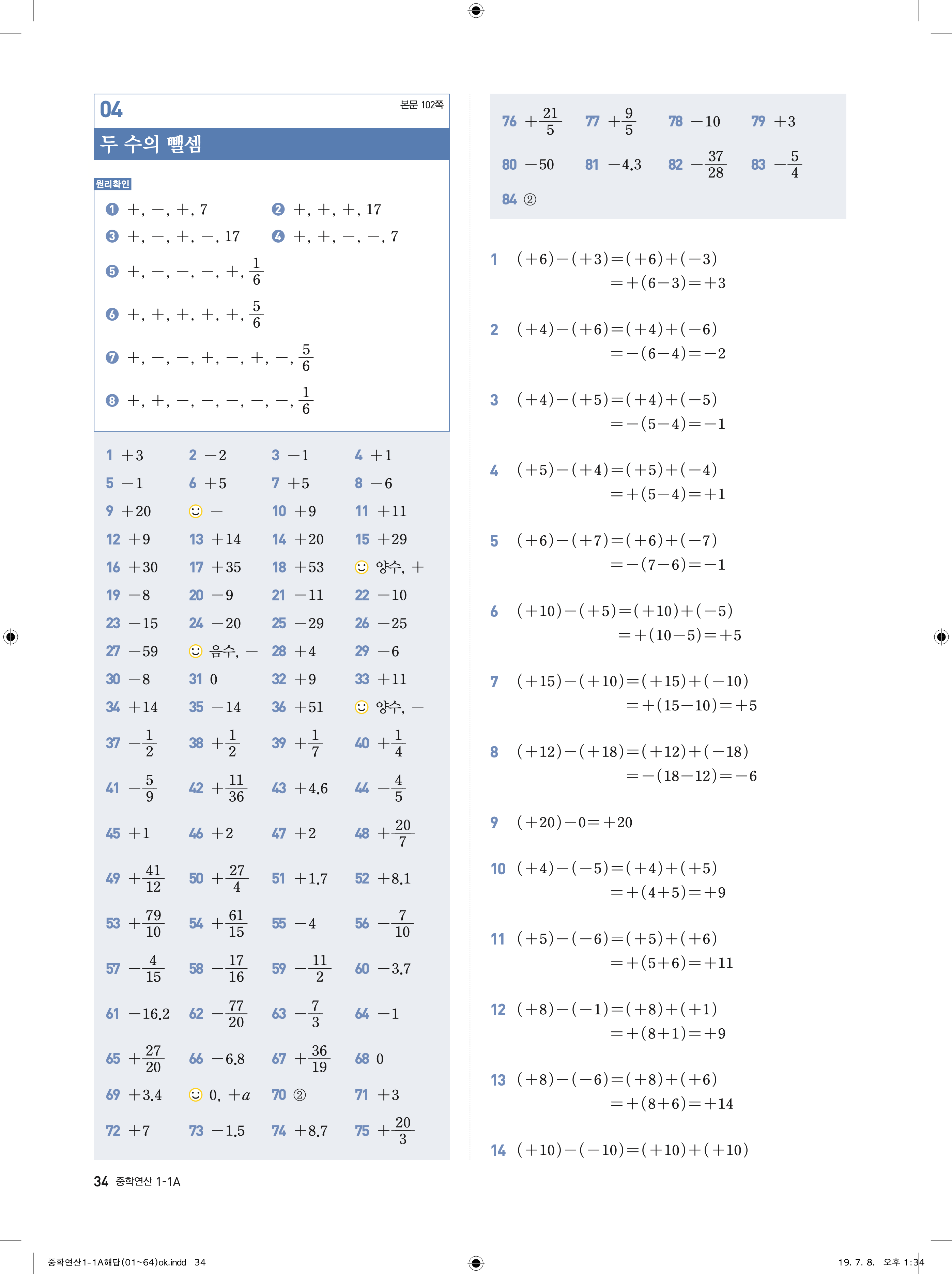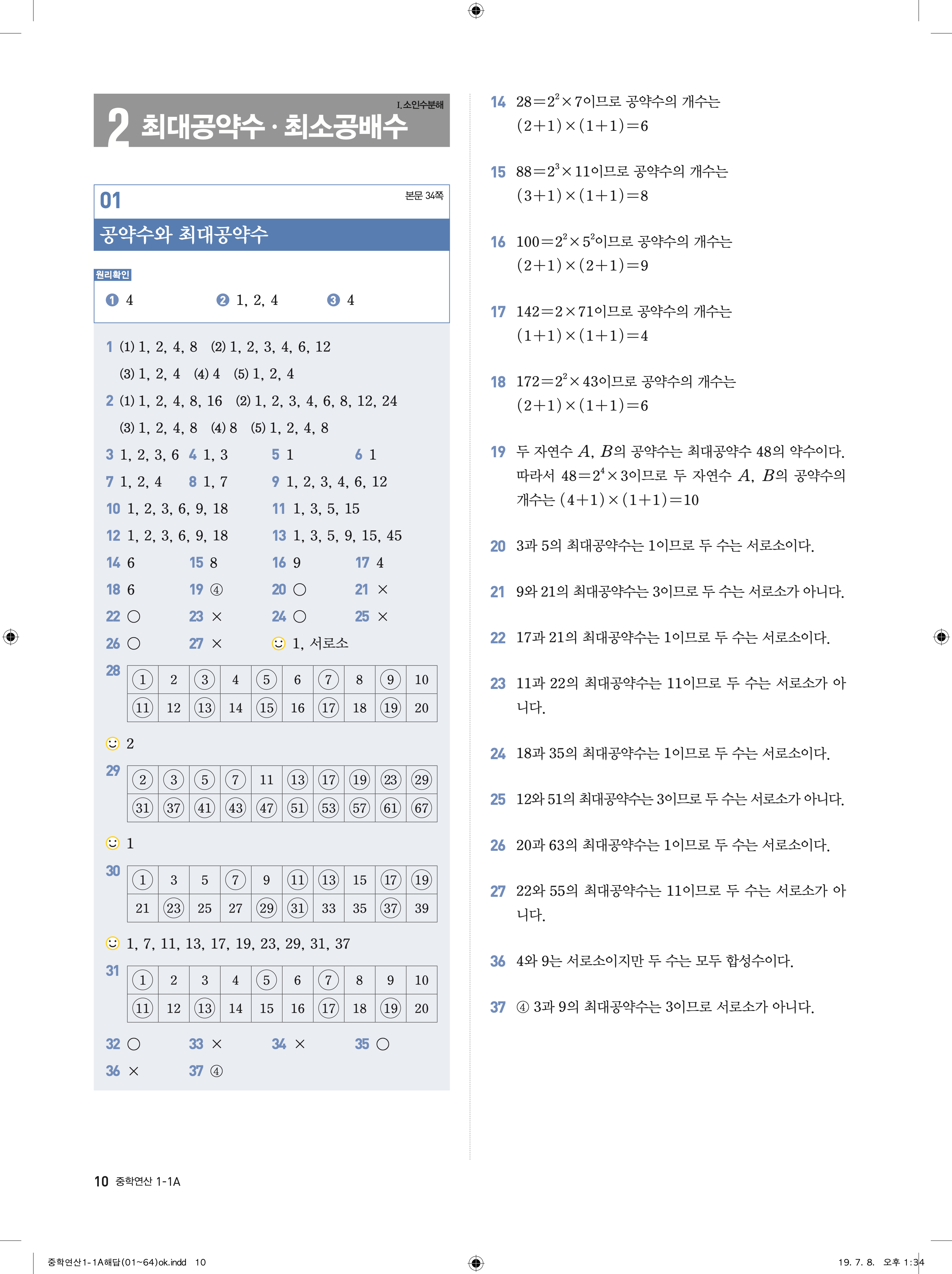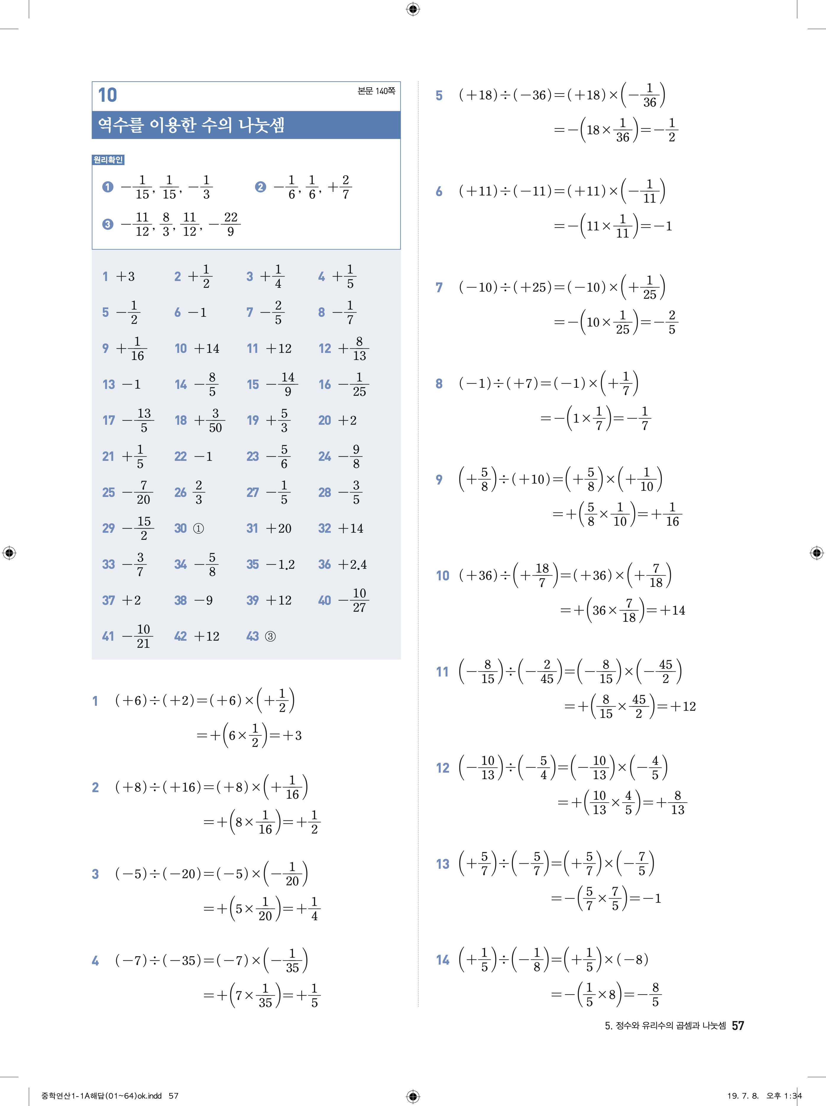 디딤돌 중학연산 1-1A 답지 해설 바로보는 사진답지 빠른답지 모바일최적화