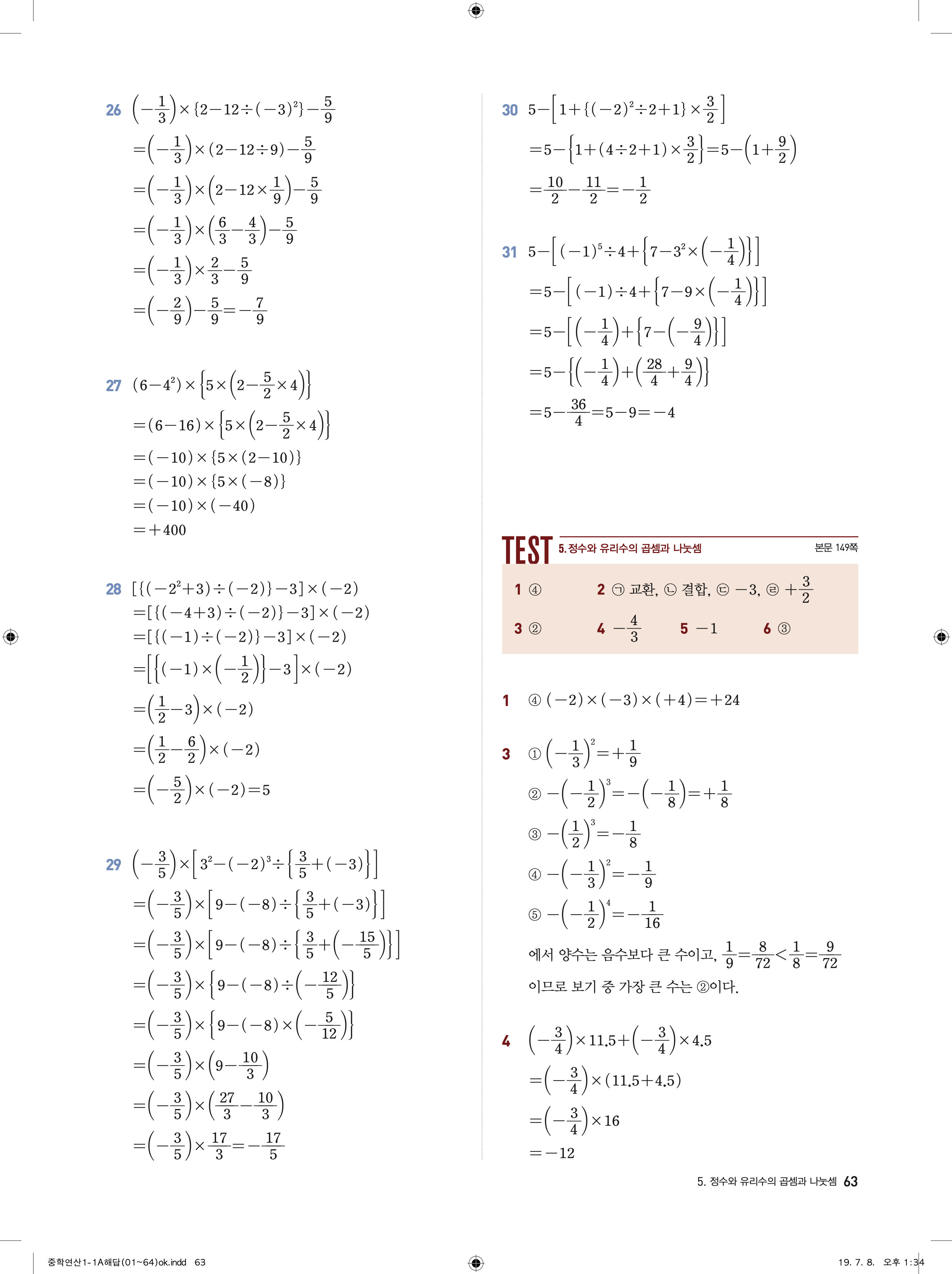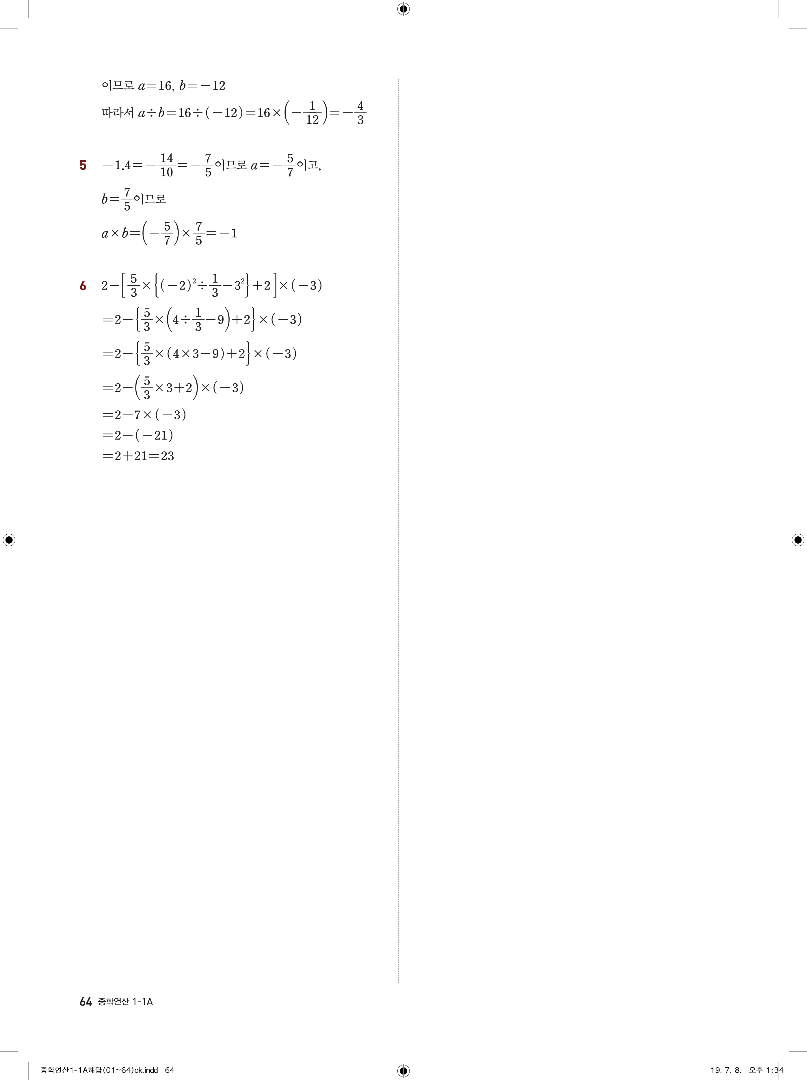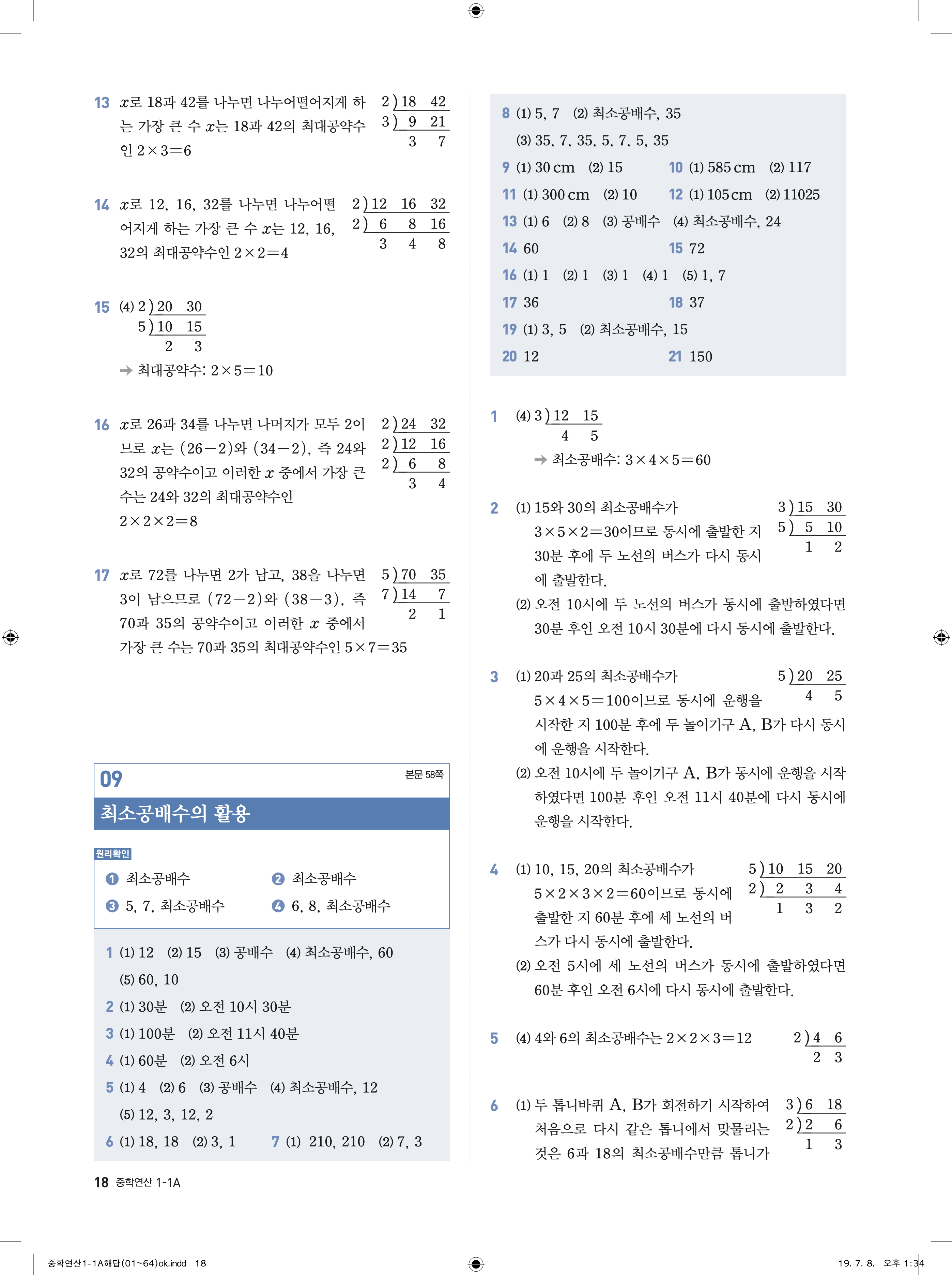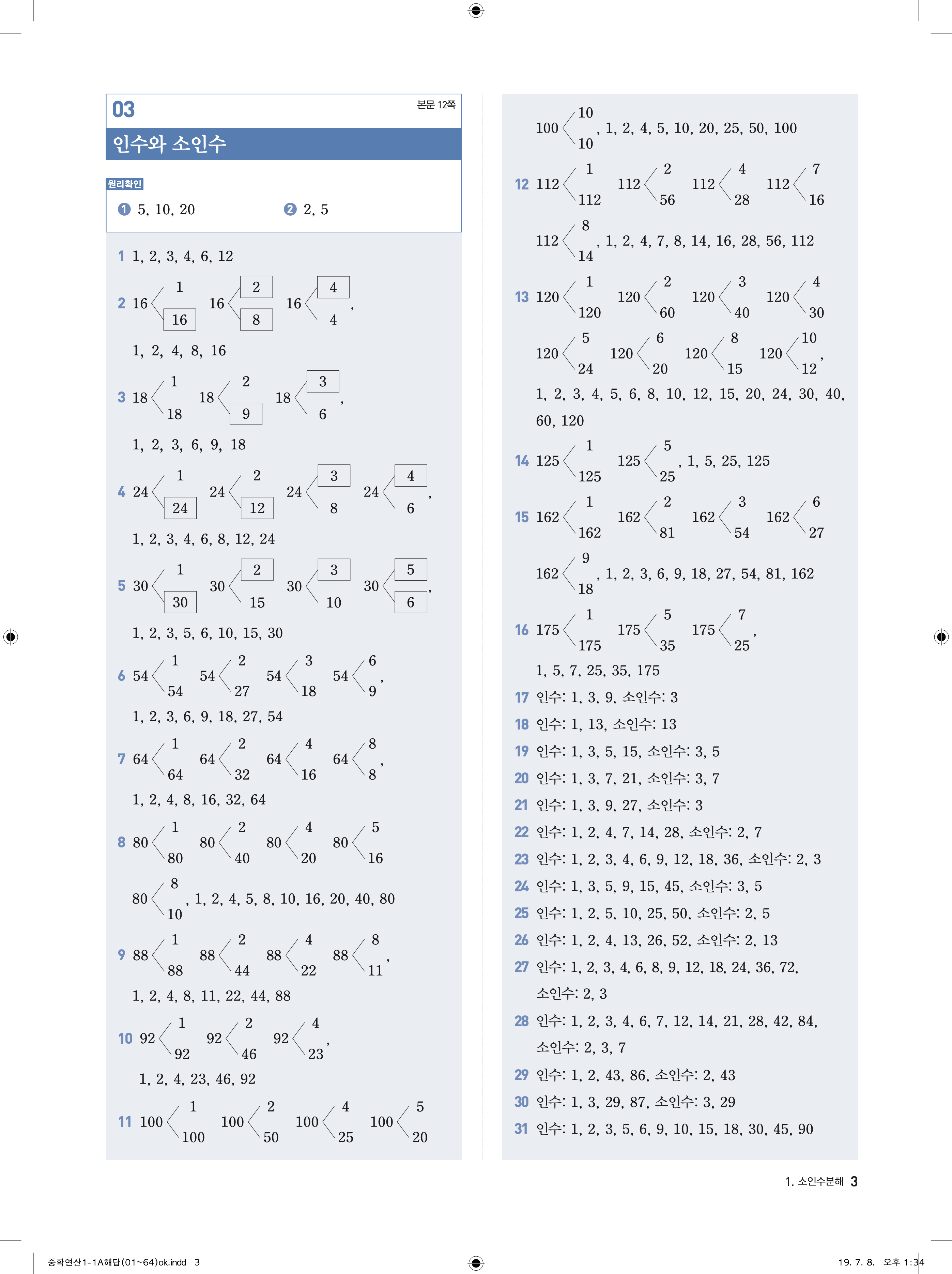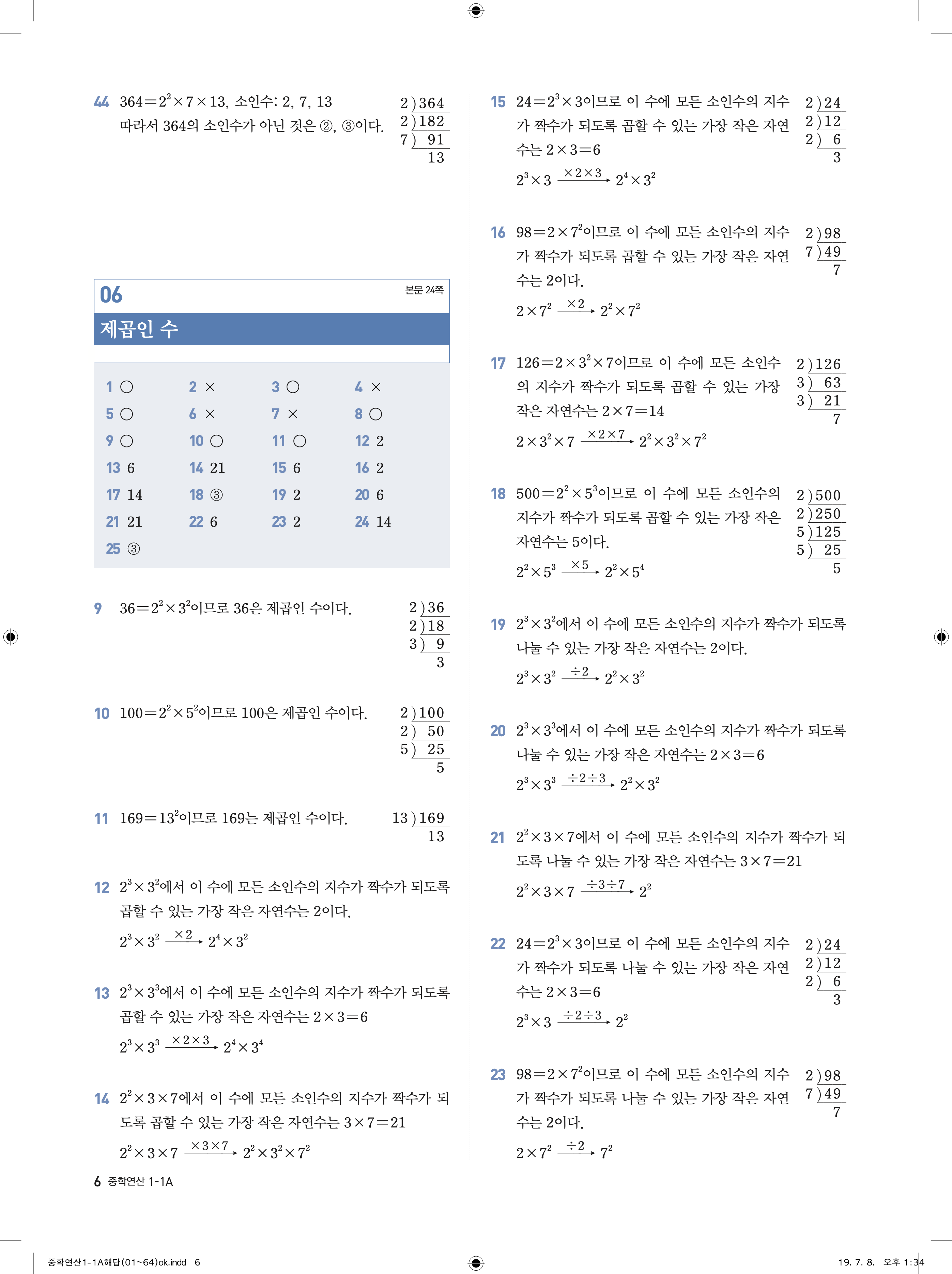 디딤돌 중학연산 1-1A 답지 해설 바로보는 사진답지 빠른답지 모바일최적화