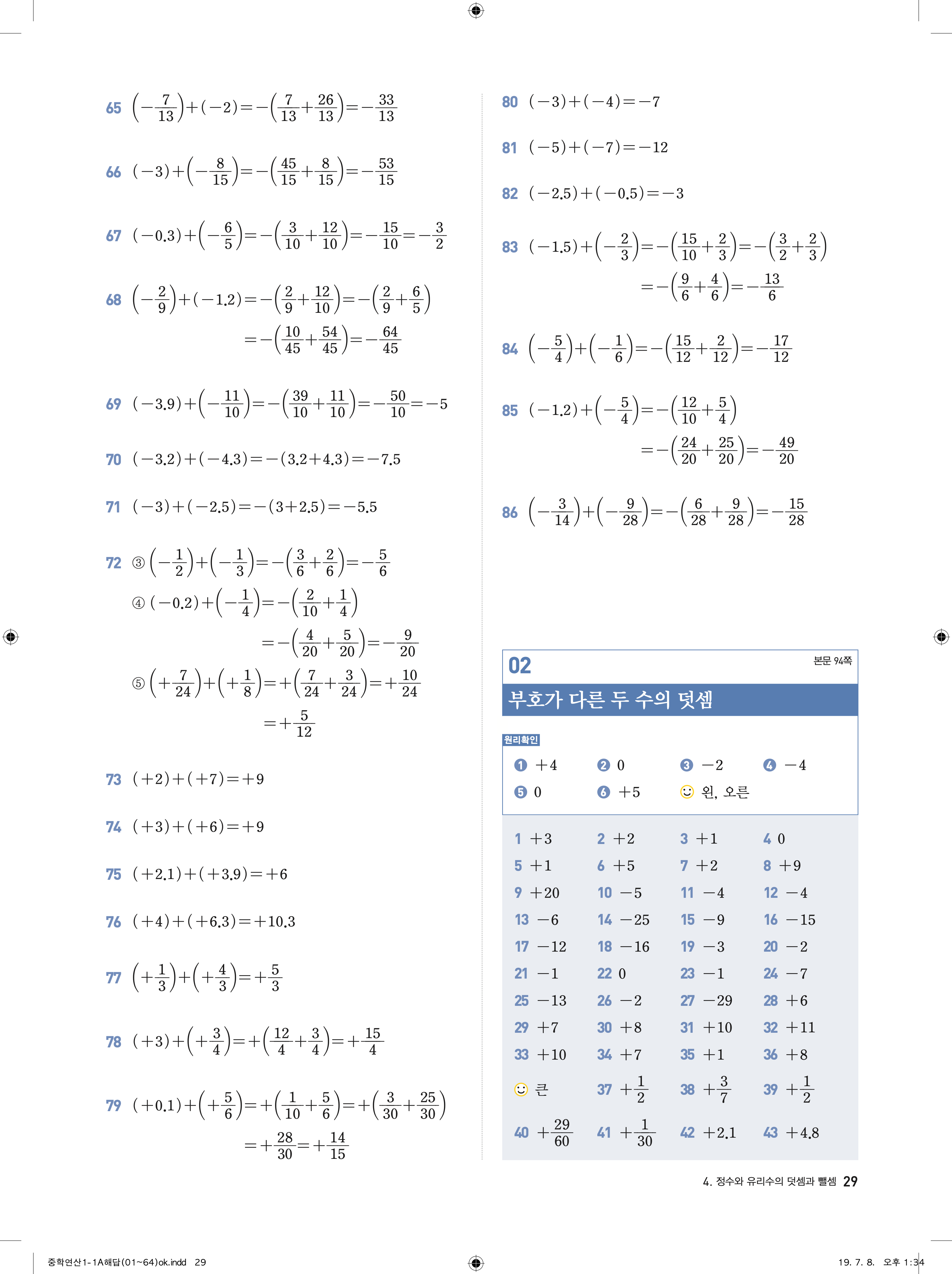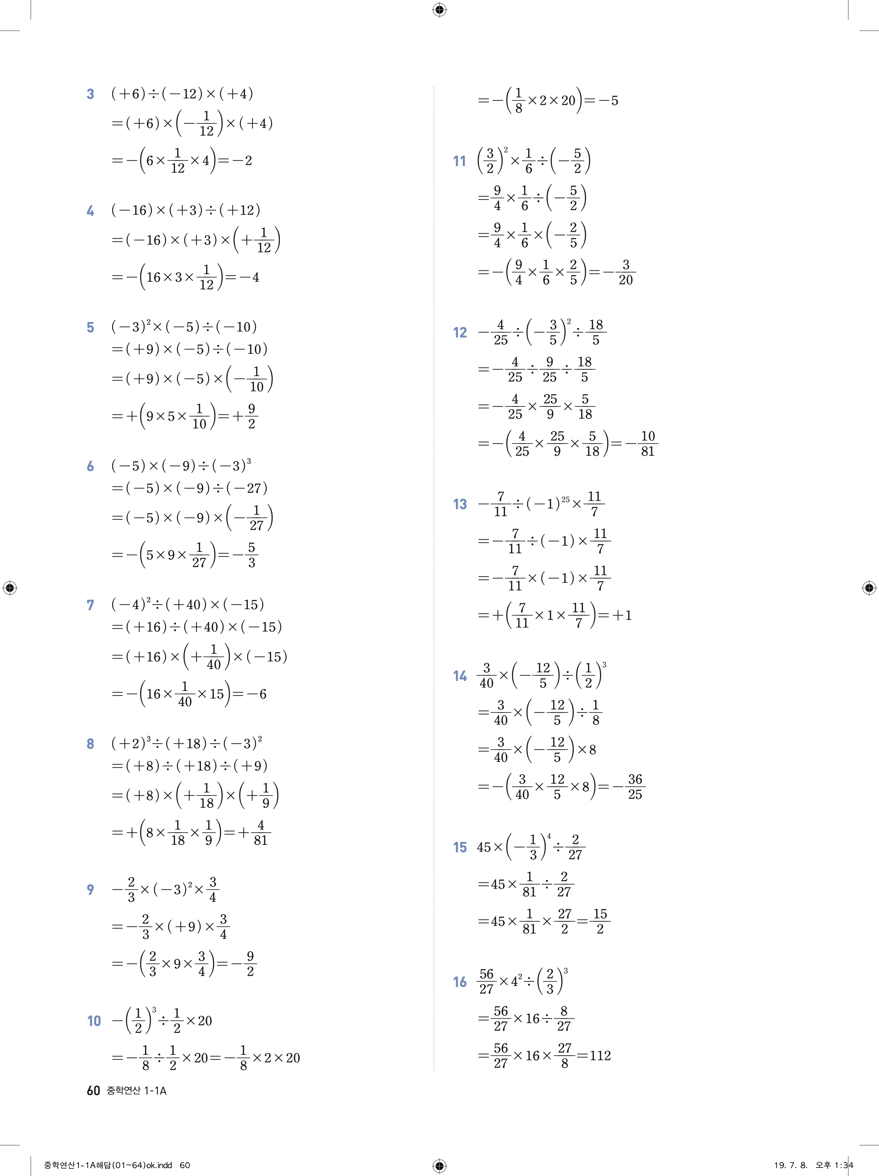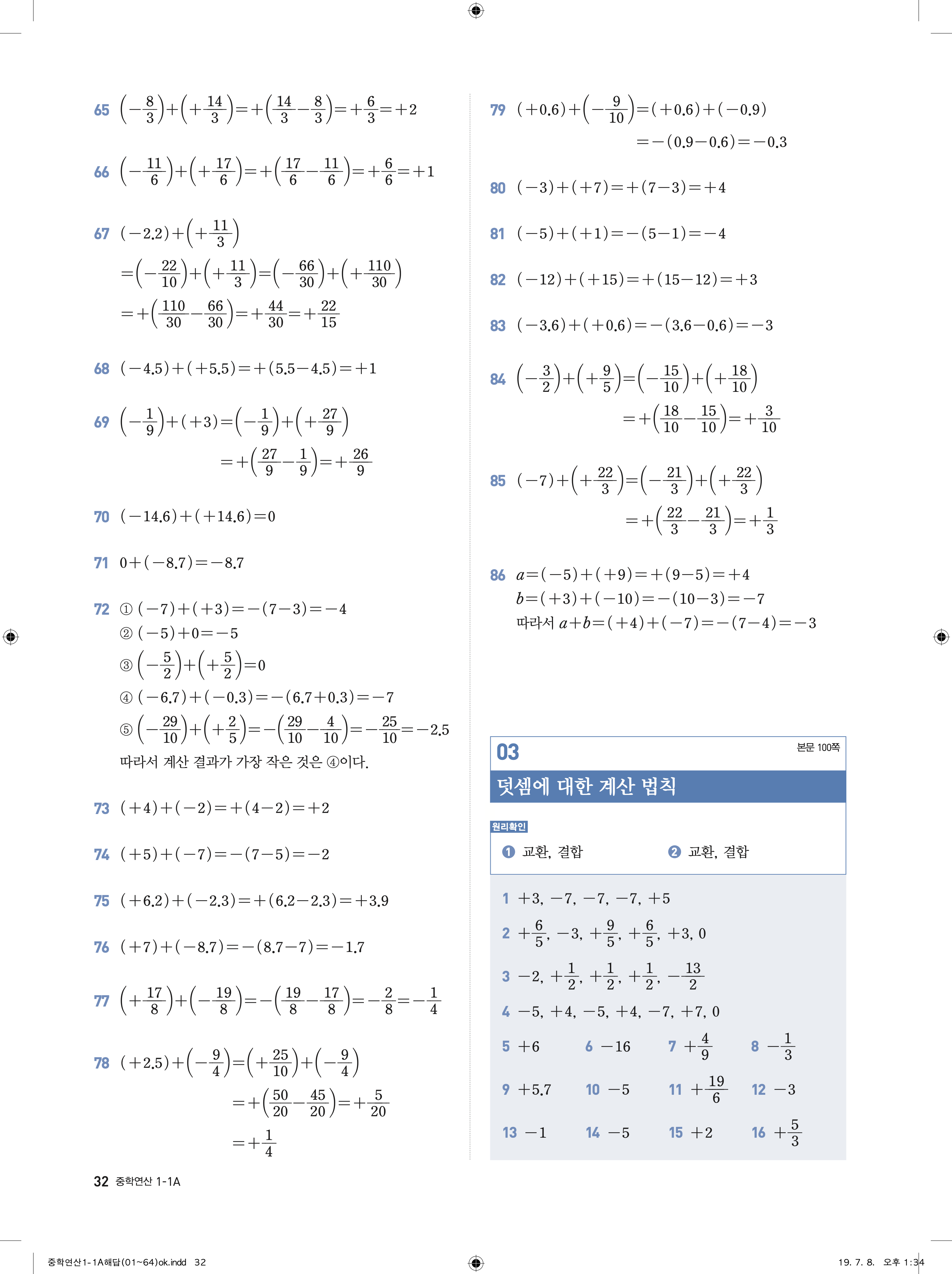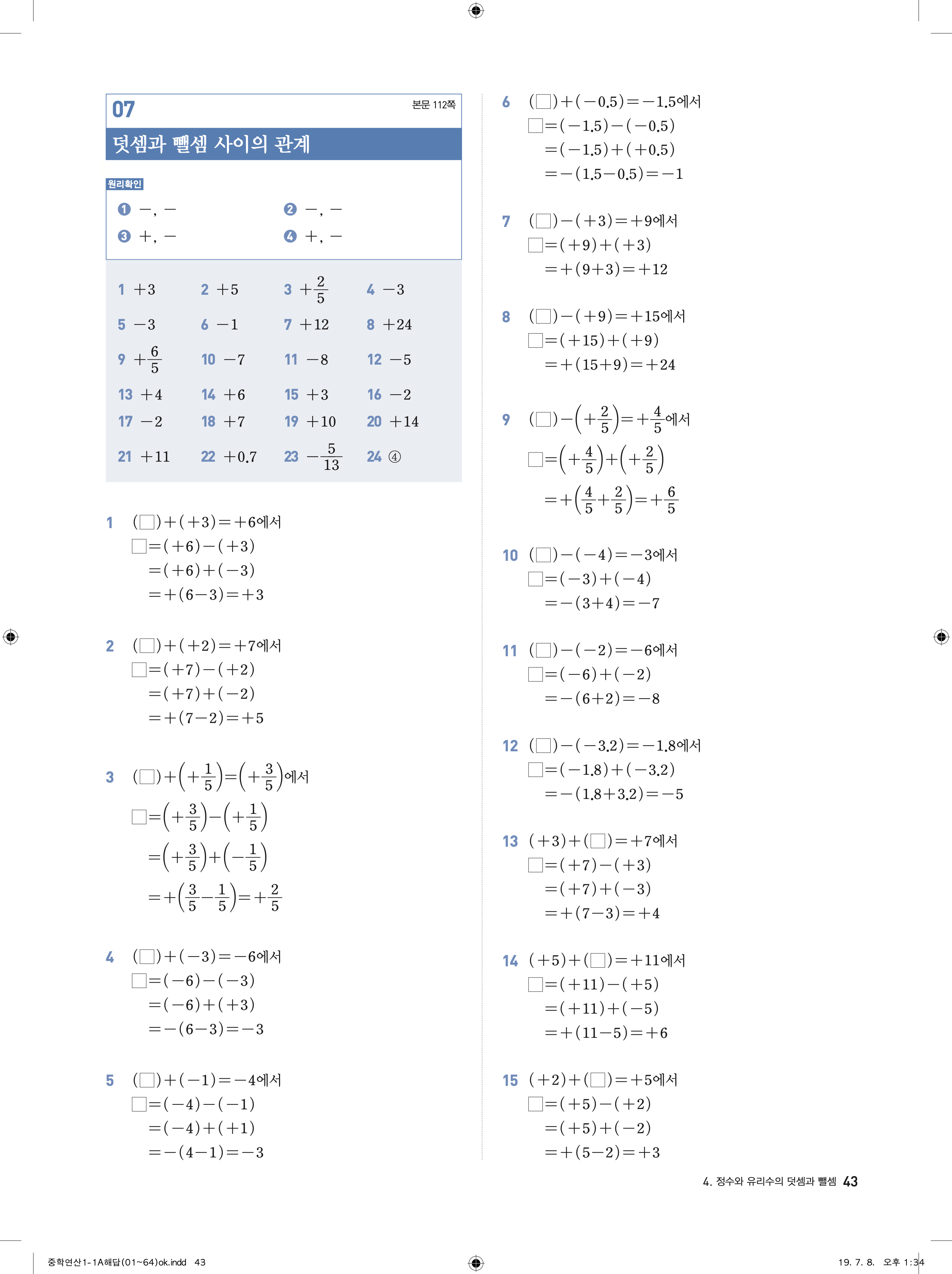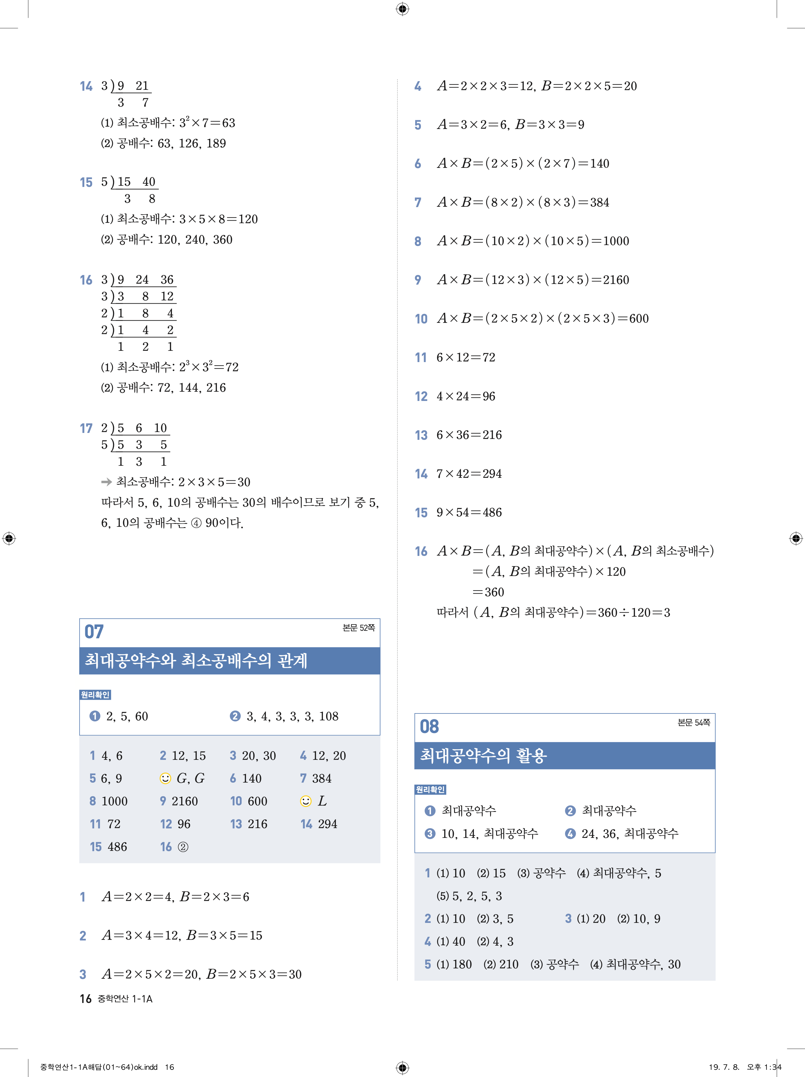 디딤돌 중학연산 1-1A 답지 해설 바로보는 사진답지 빠른답지 모바일최적화