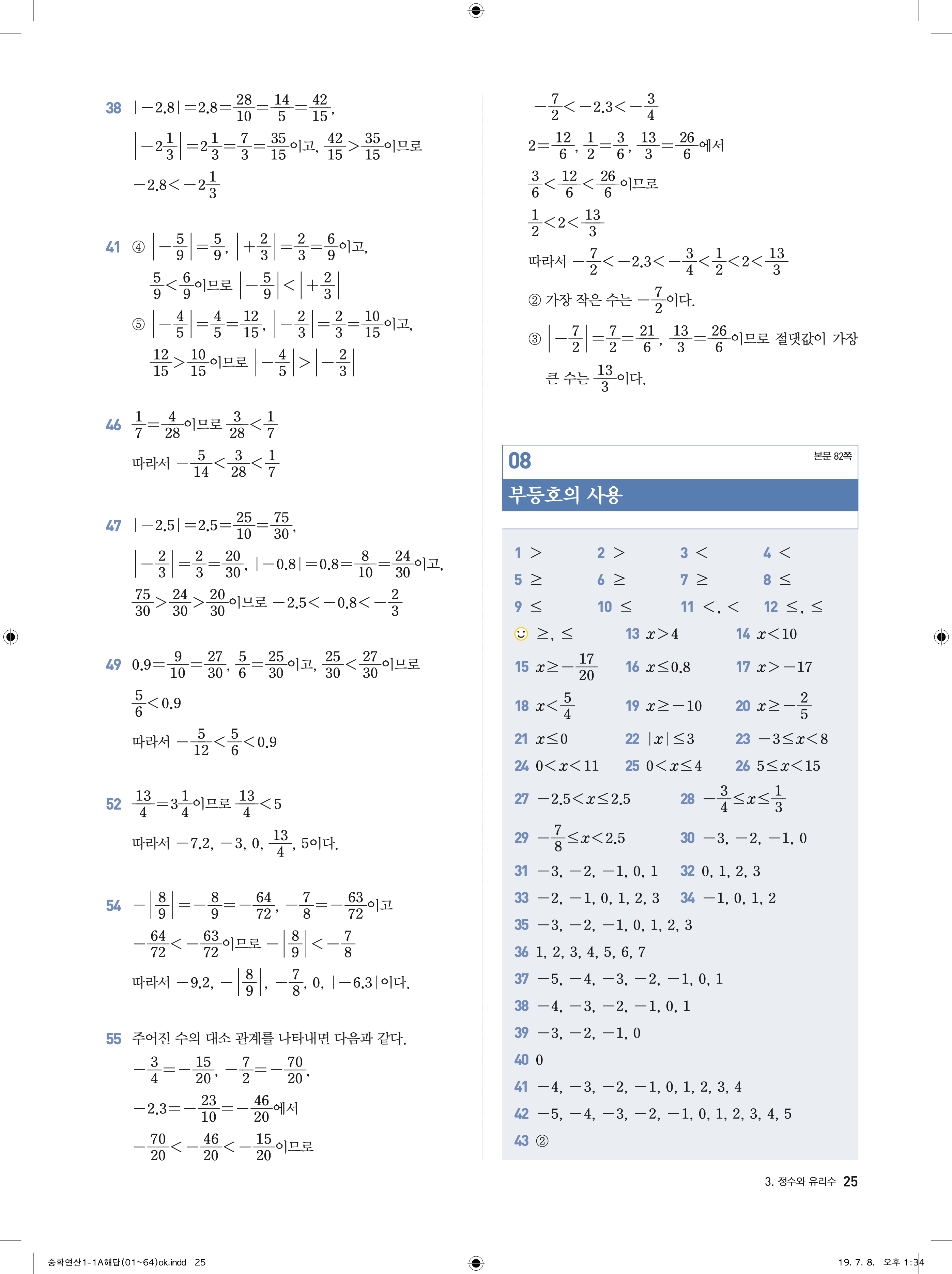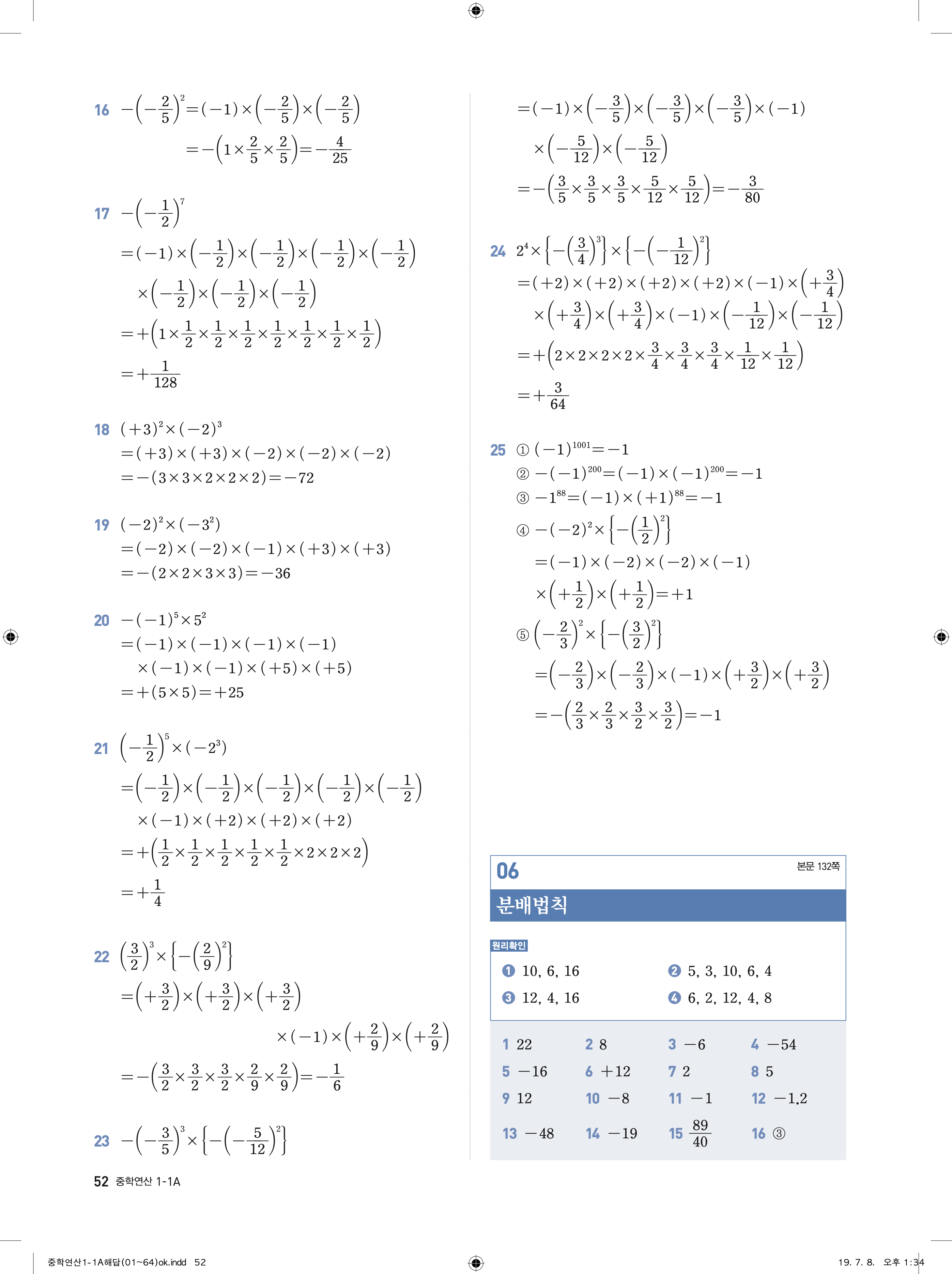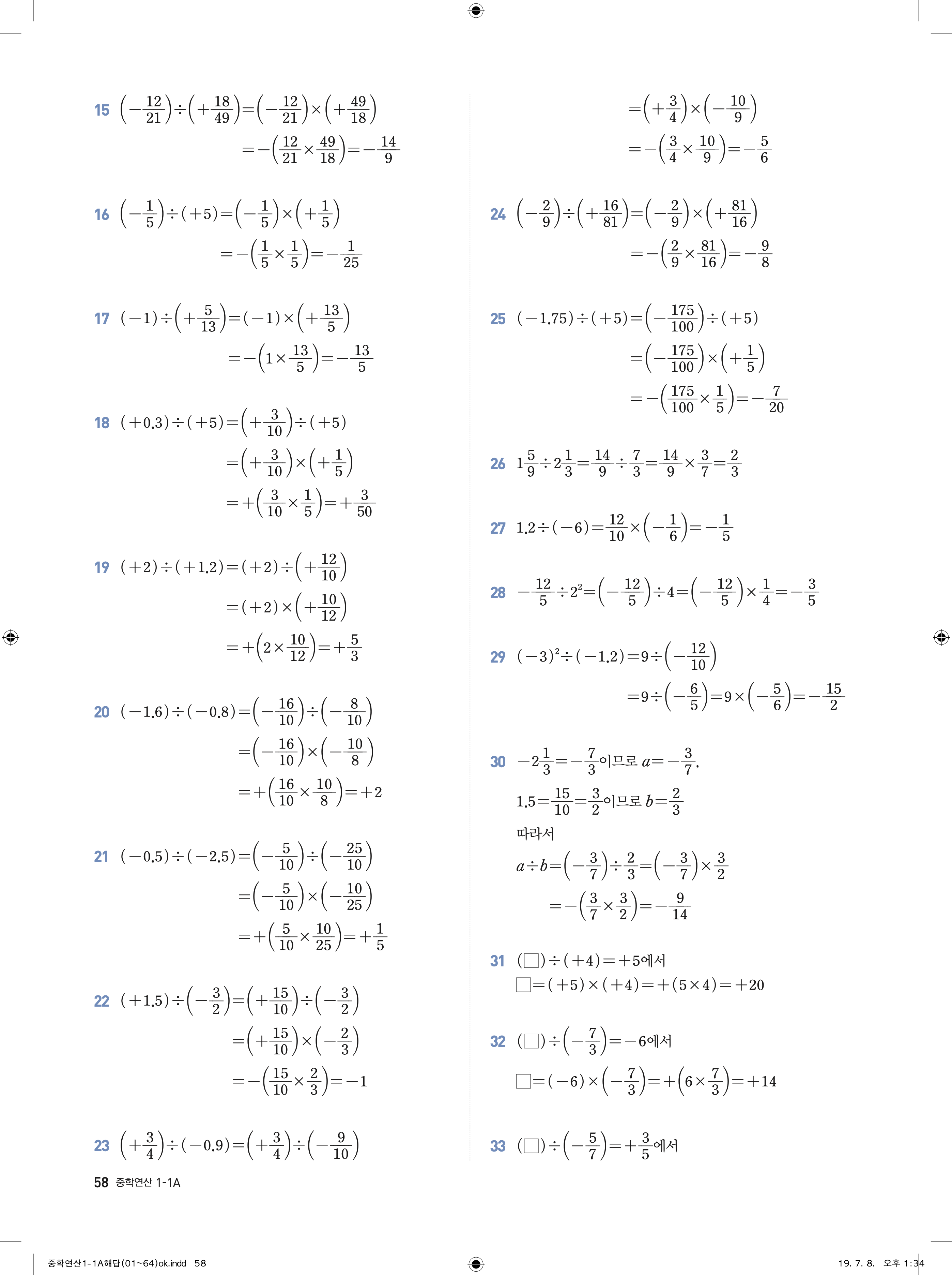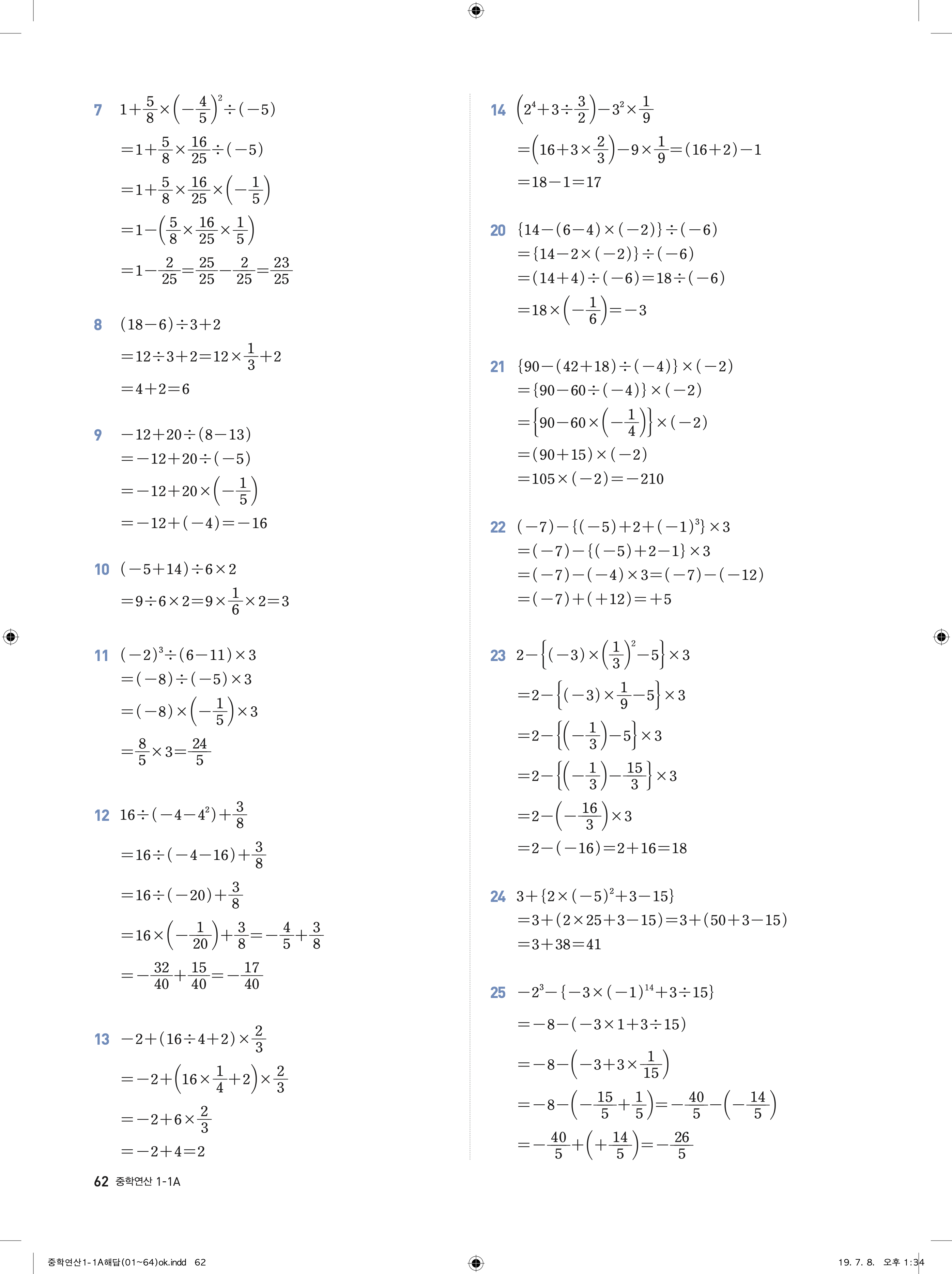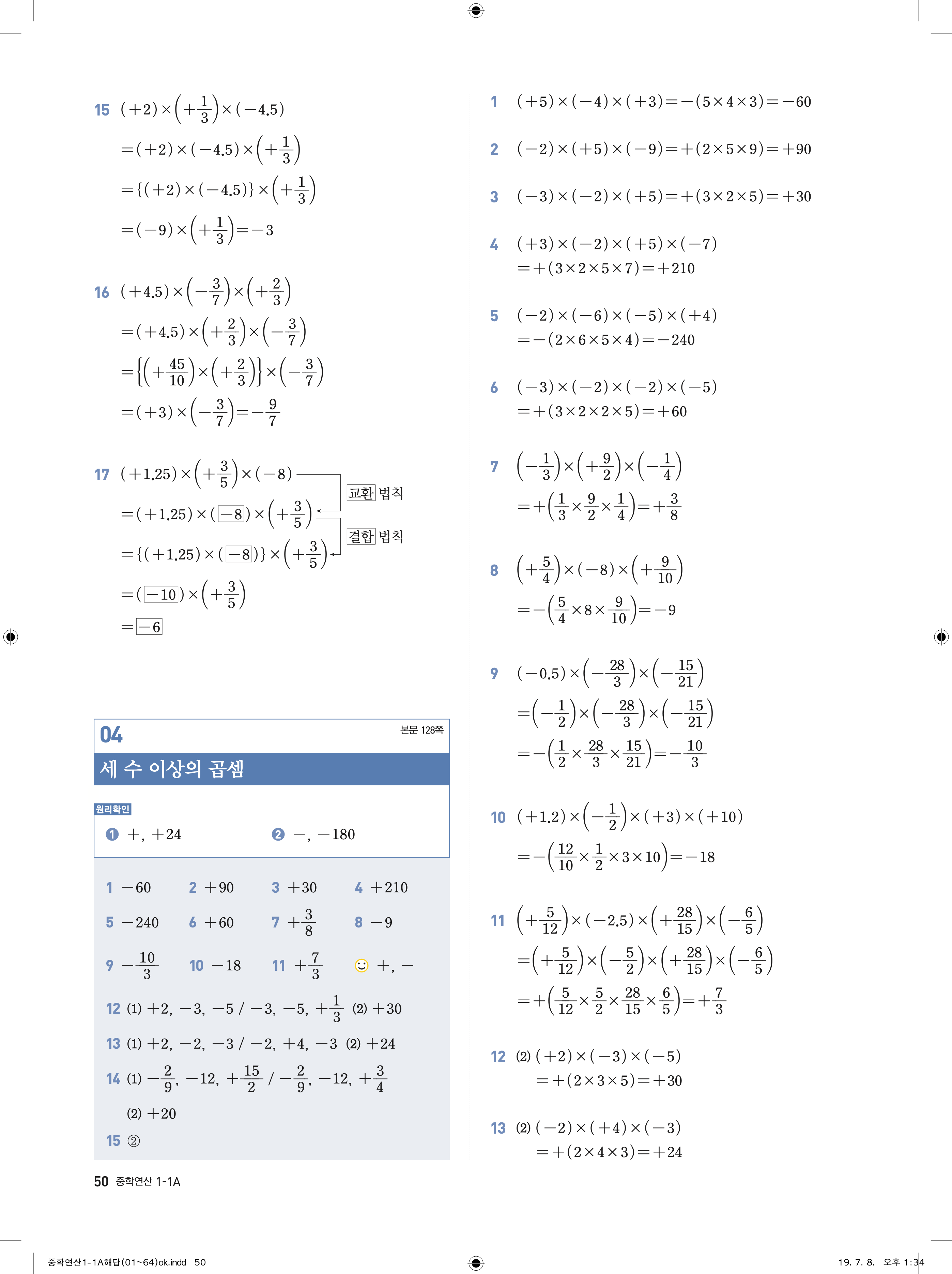 디딤돌 중학연산 1-1A 답지 해설 바로보는 사진답지 빠른답지 모바일최적화