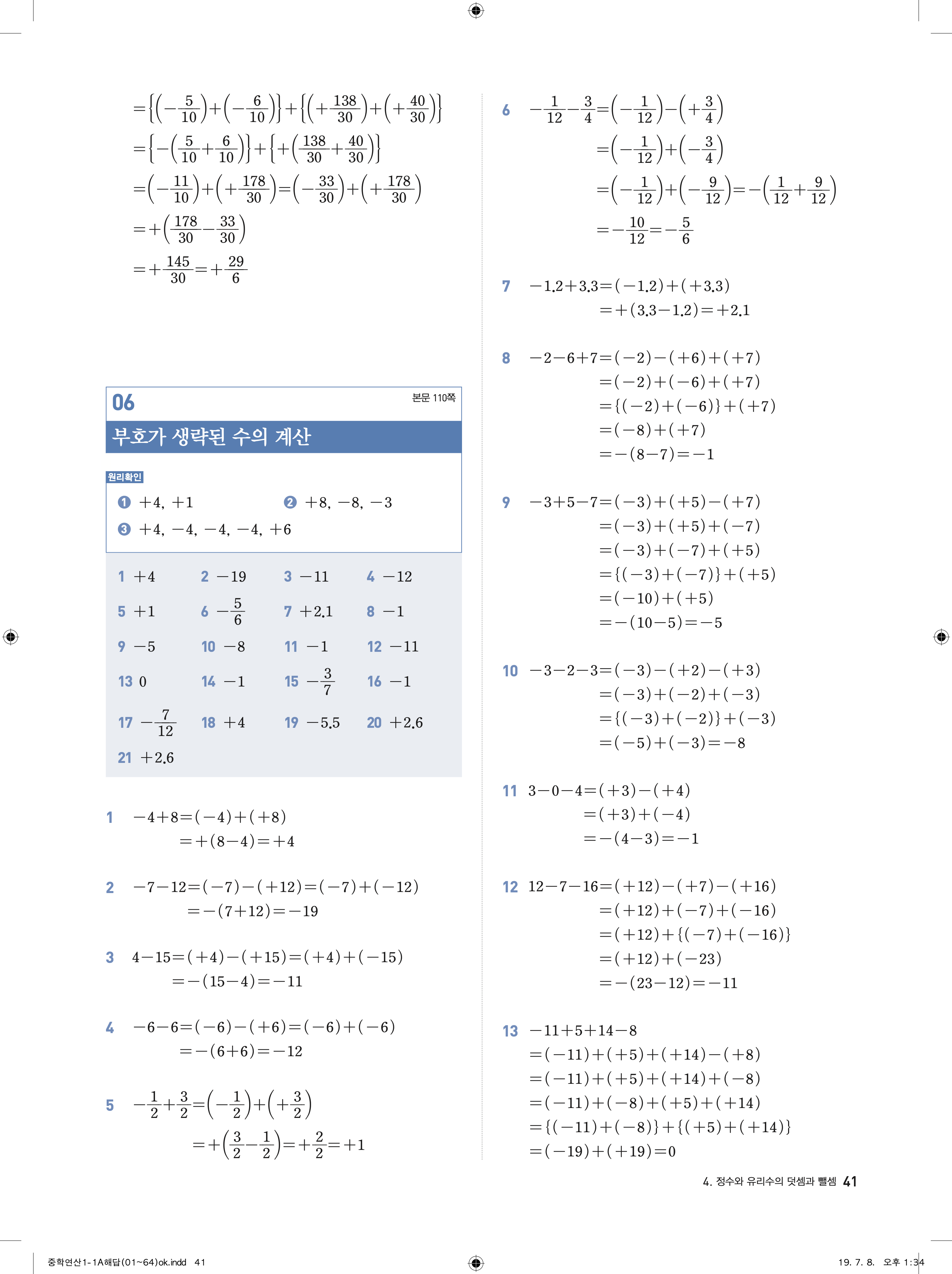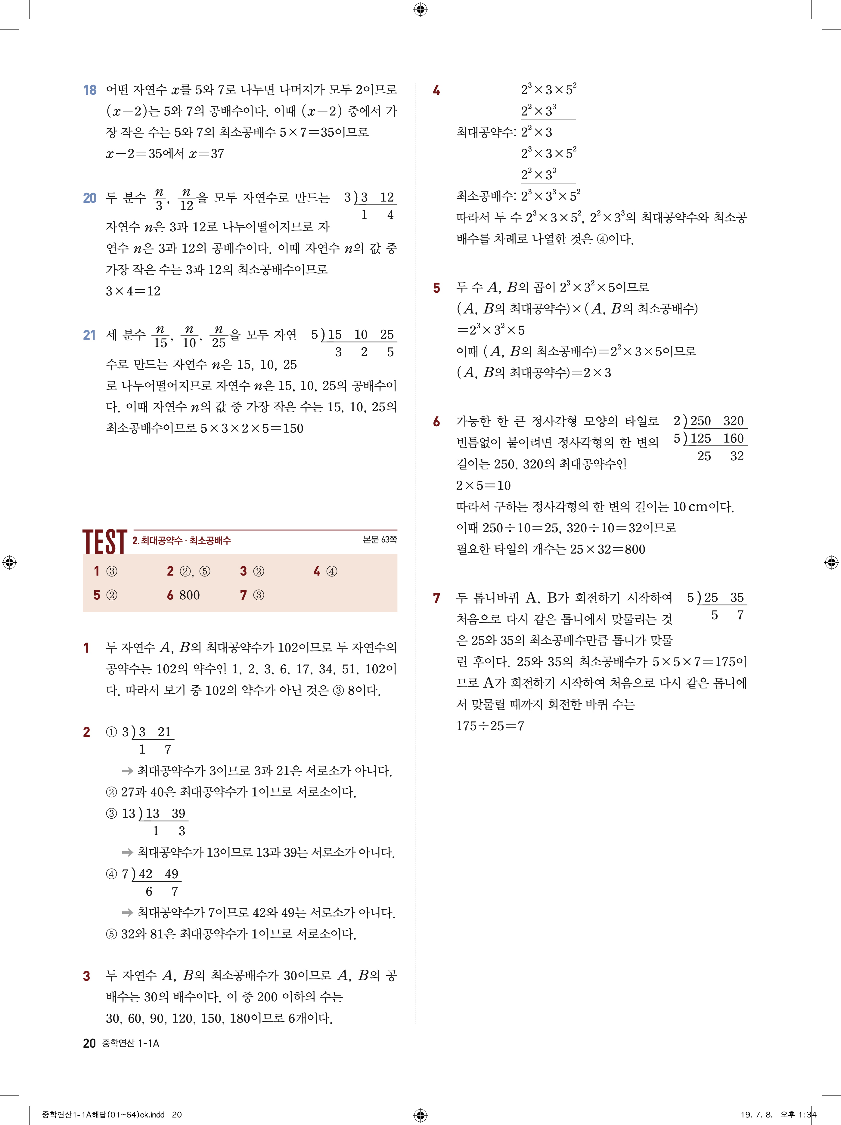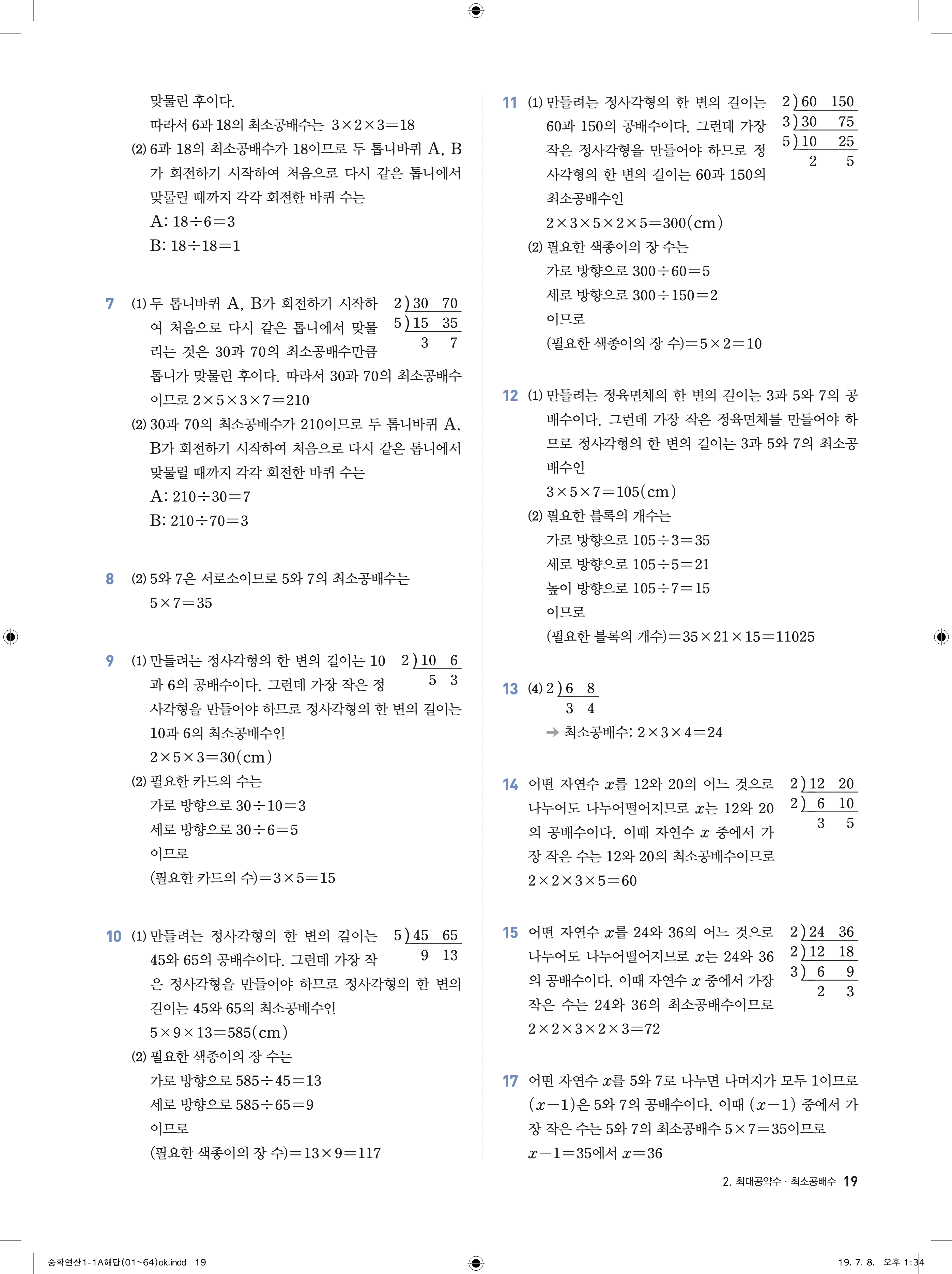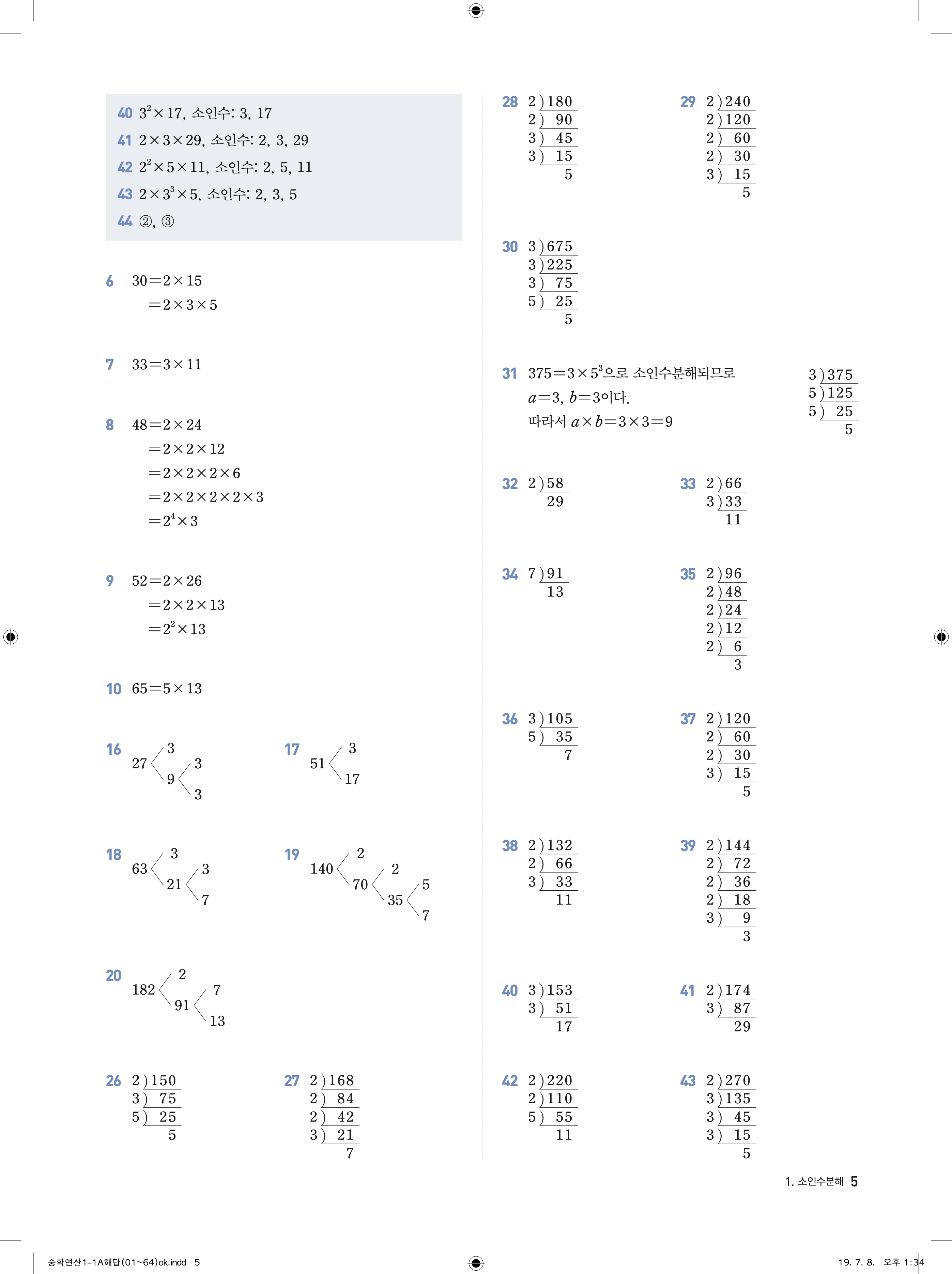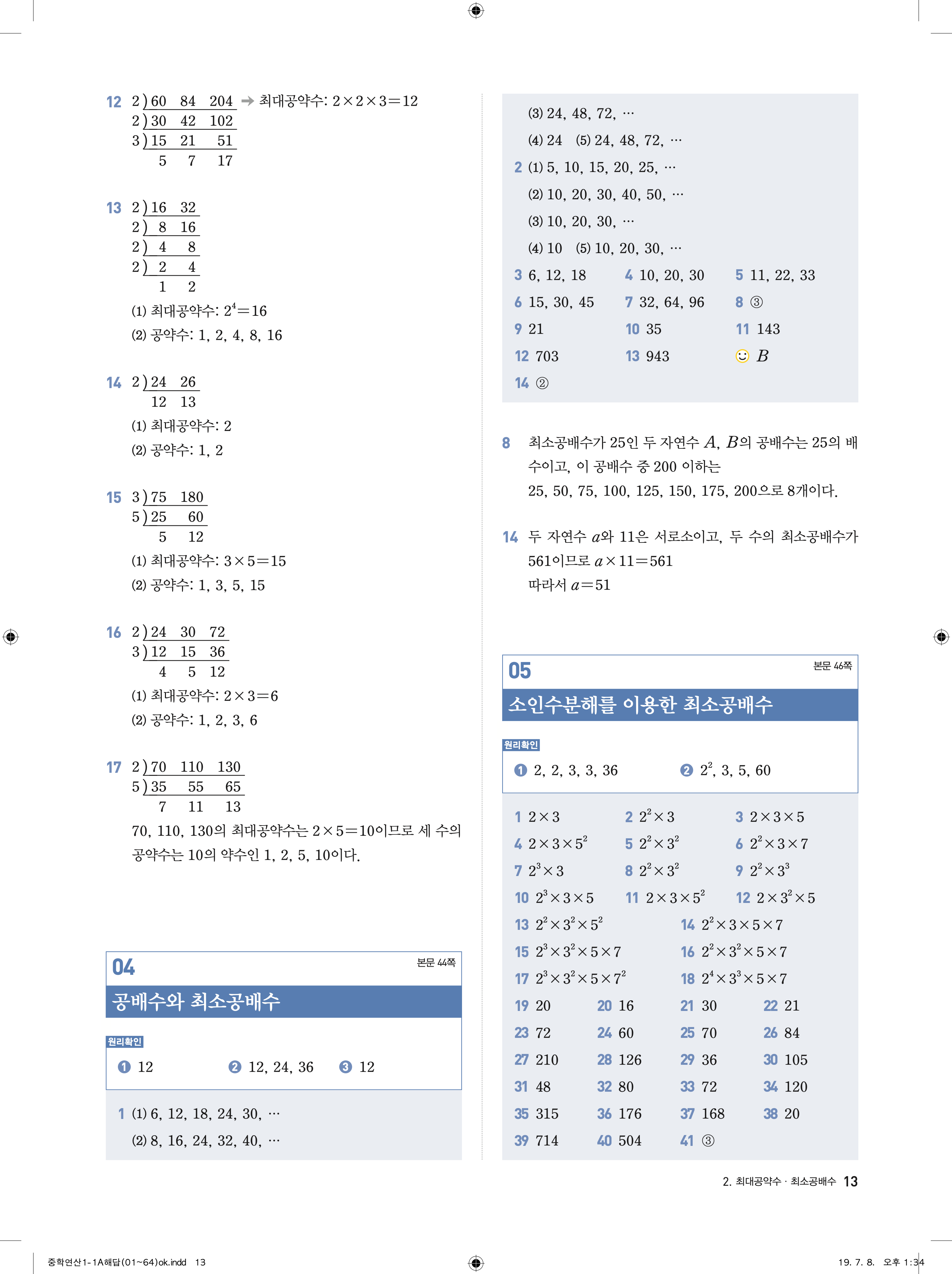 디딤돌 중학연산 1-1A 답지 해설 바로보는 사진답지 빠른답지 모바일최적화