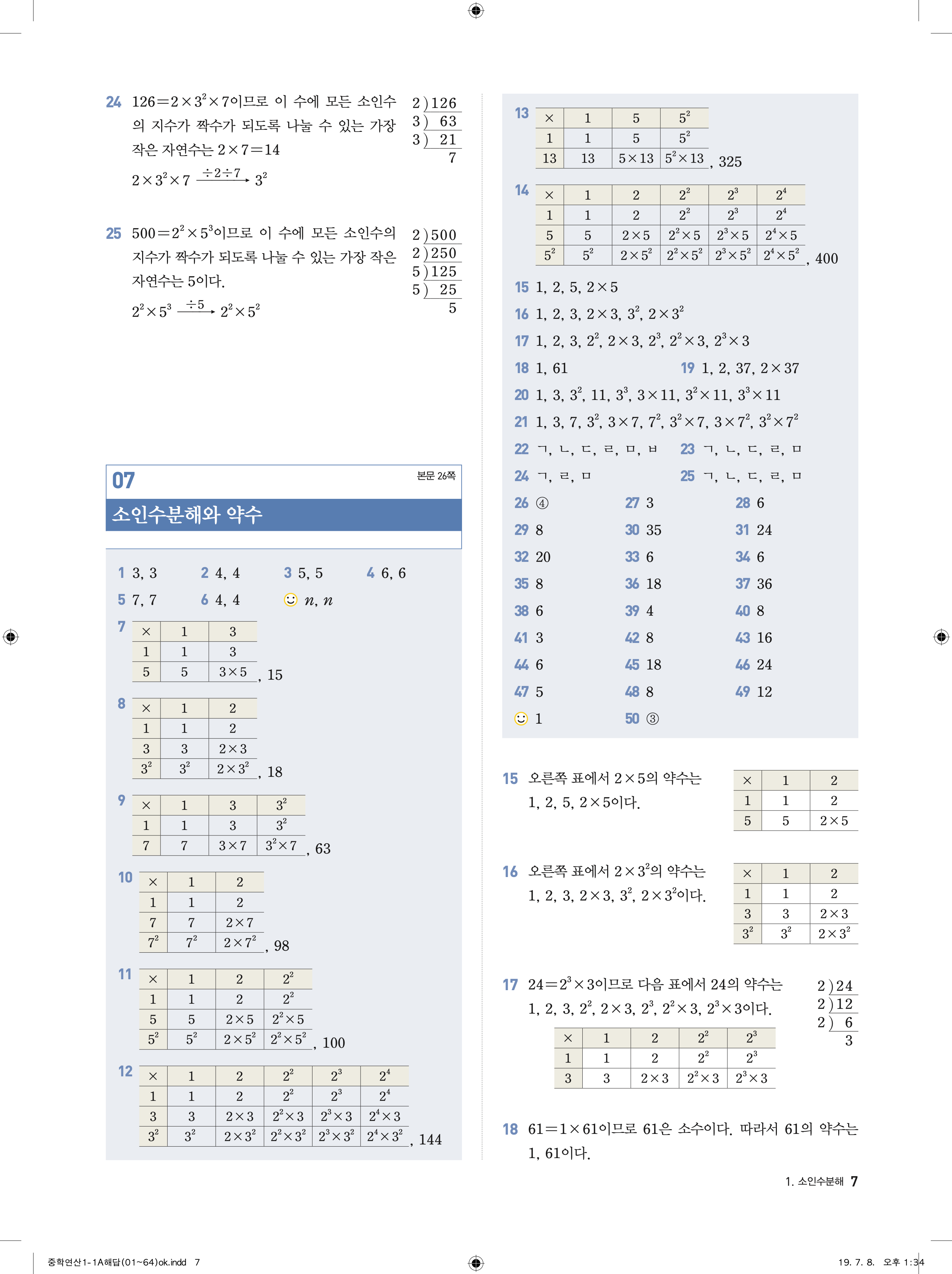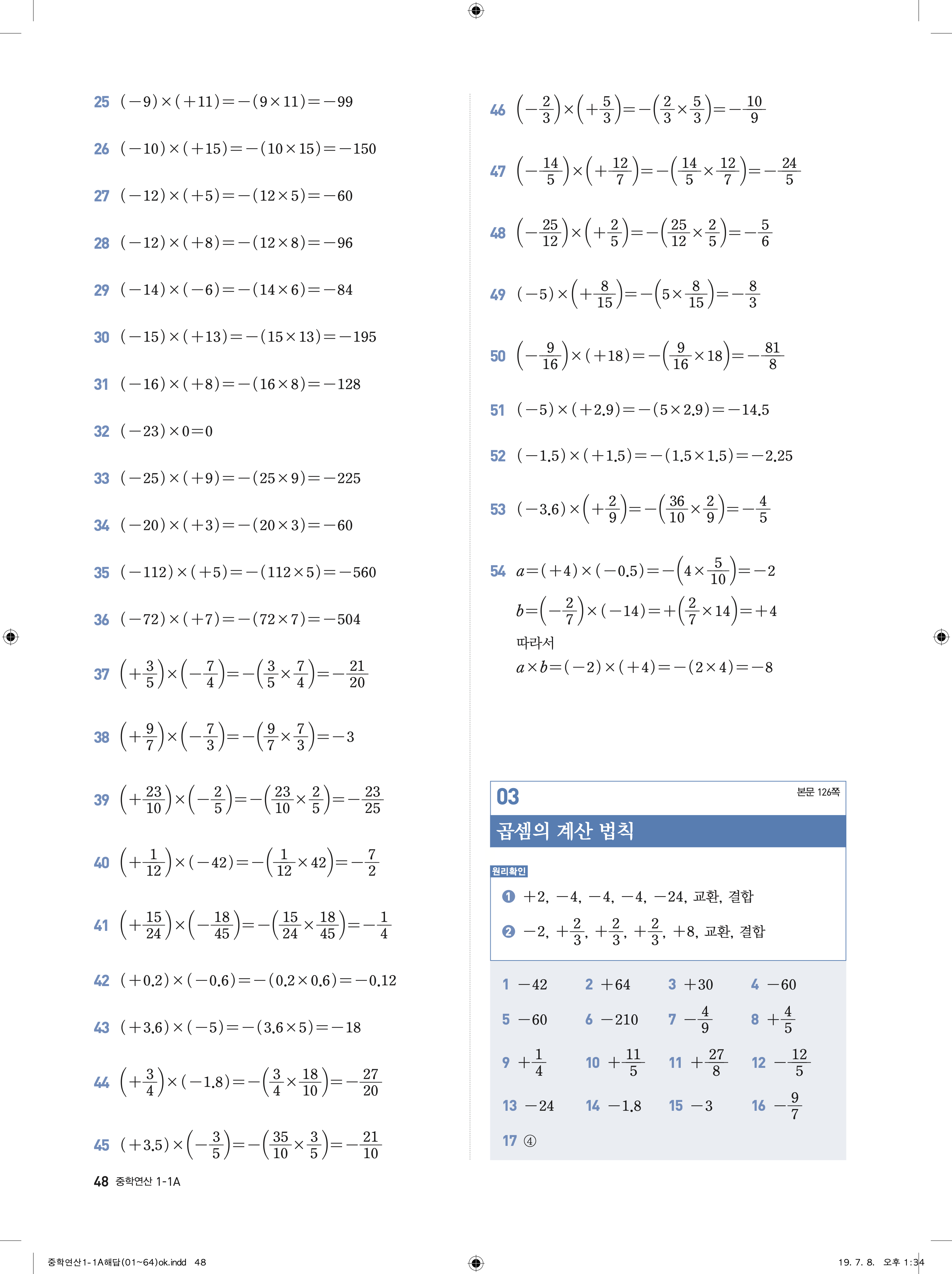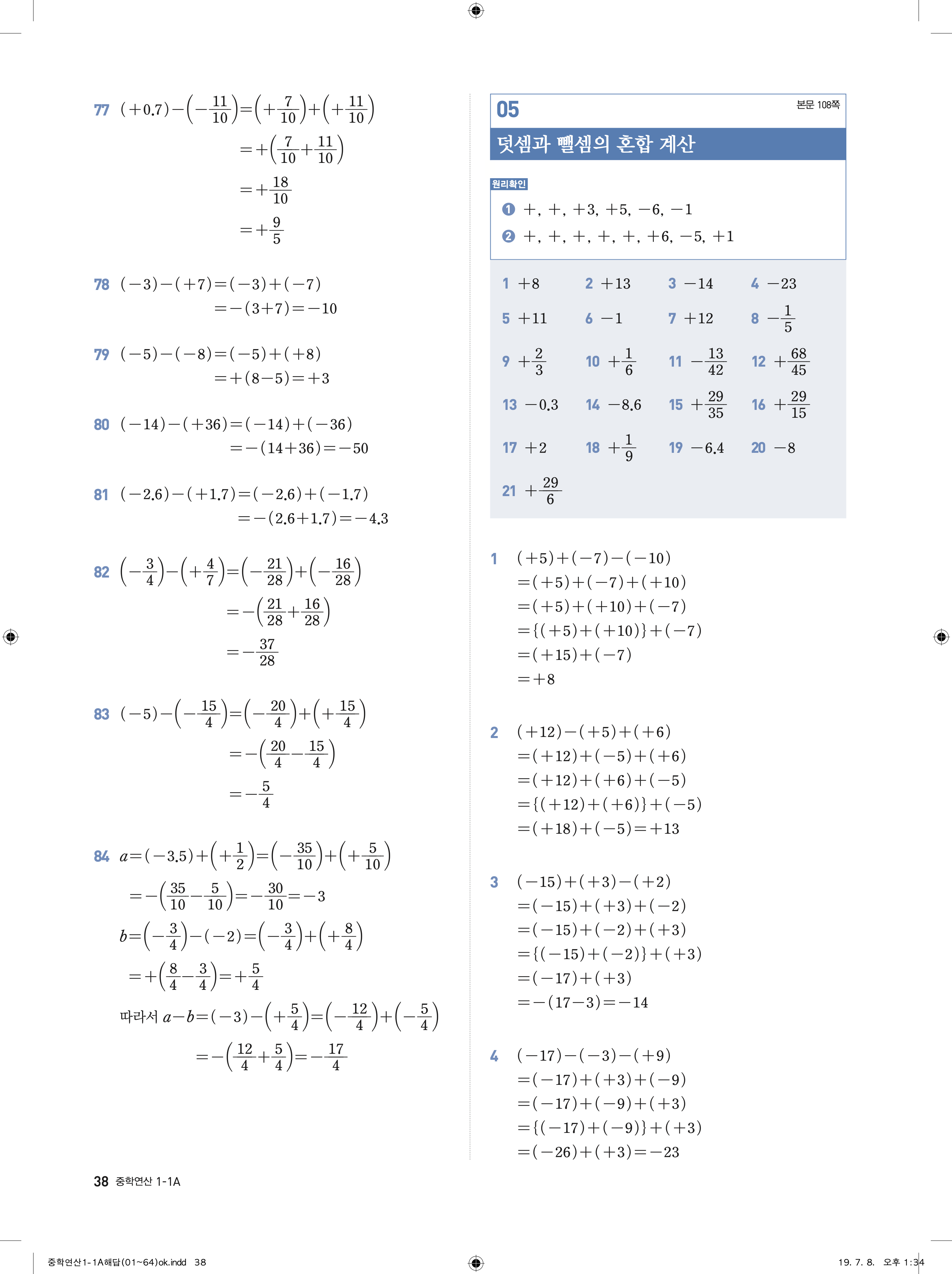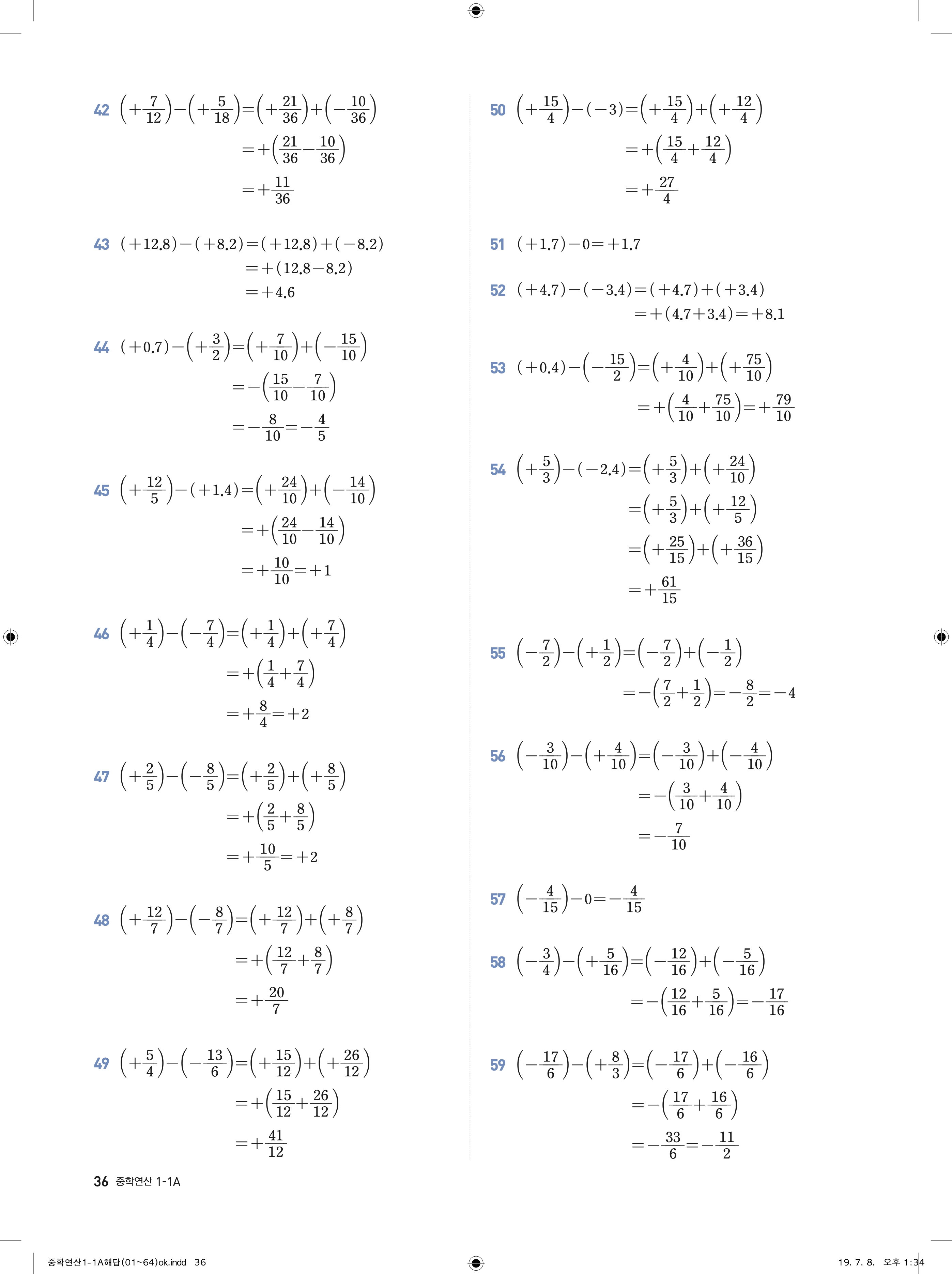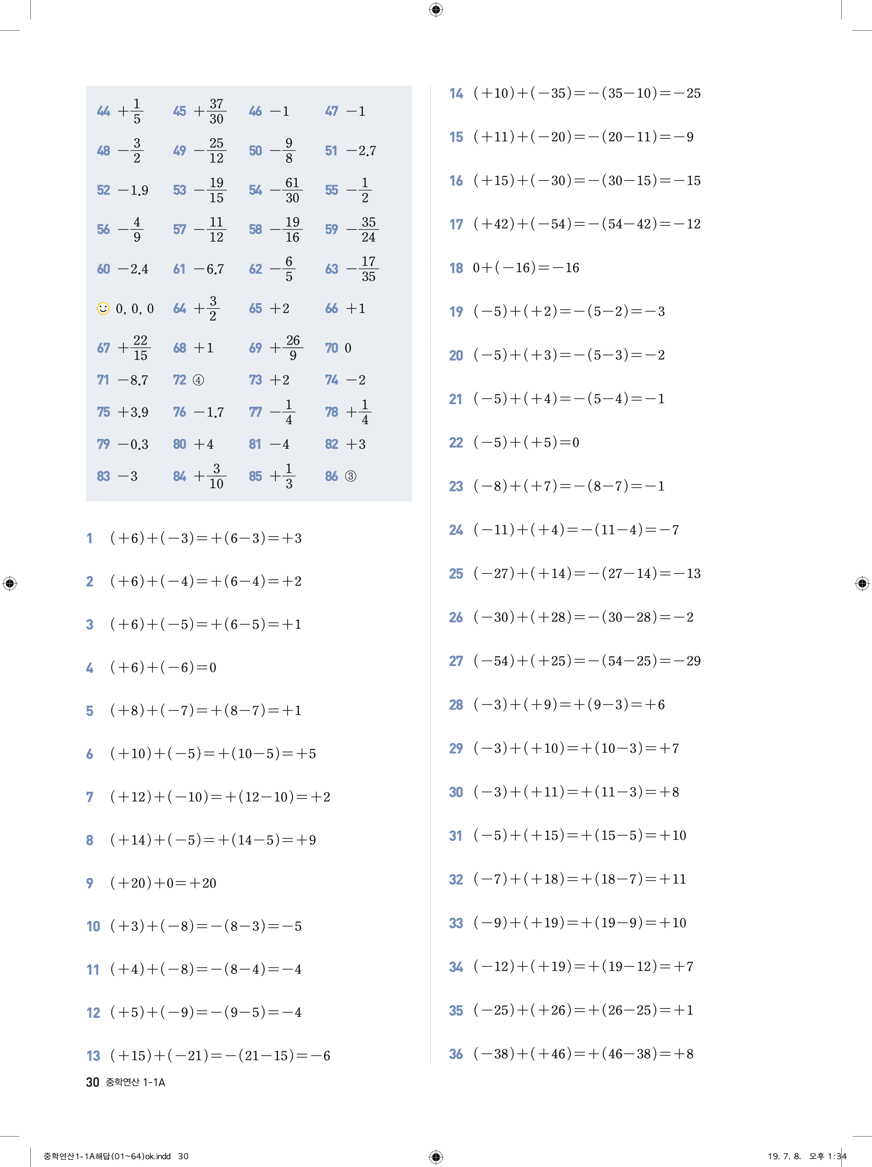 디딤돌 중학연산 1-1A 답지 해설 바로보는 사진답지 빠른답지 모바일최적화