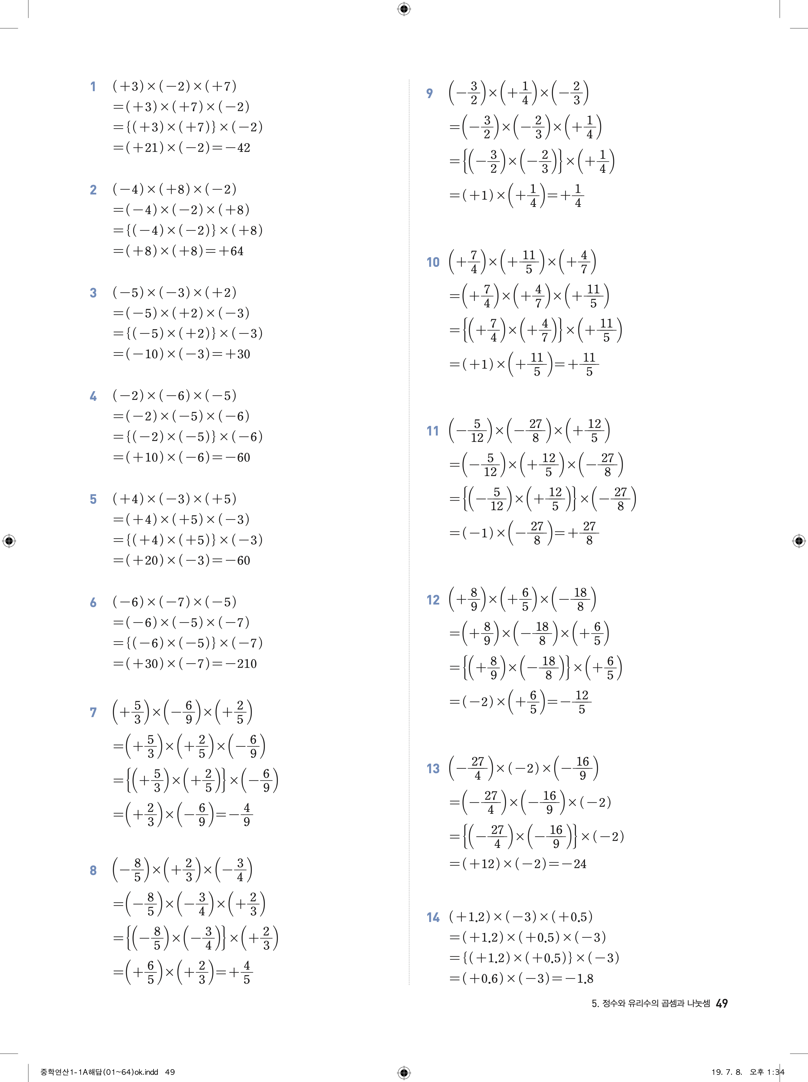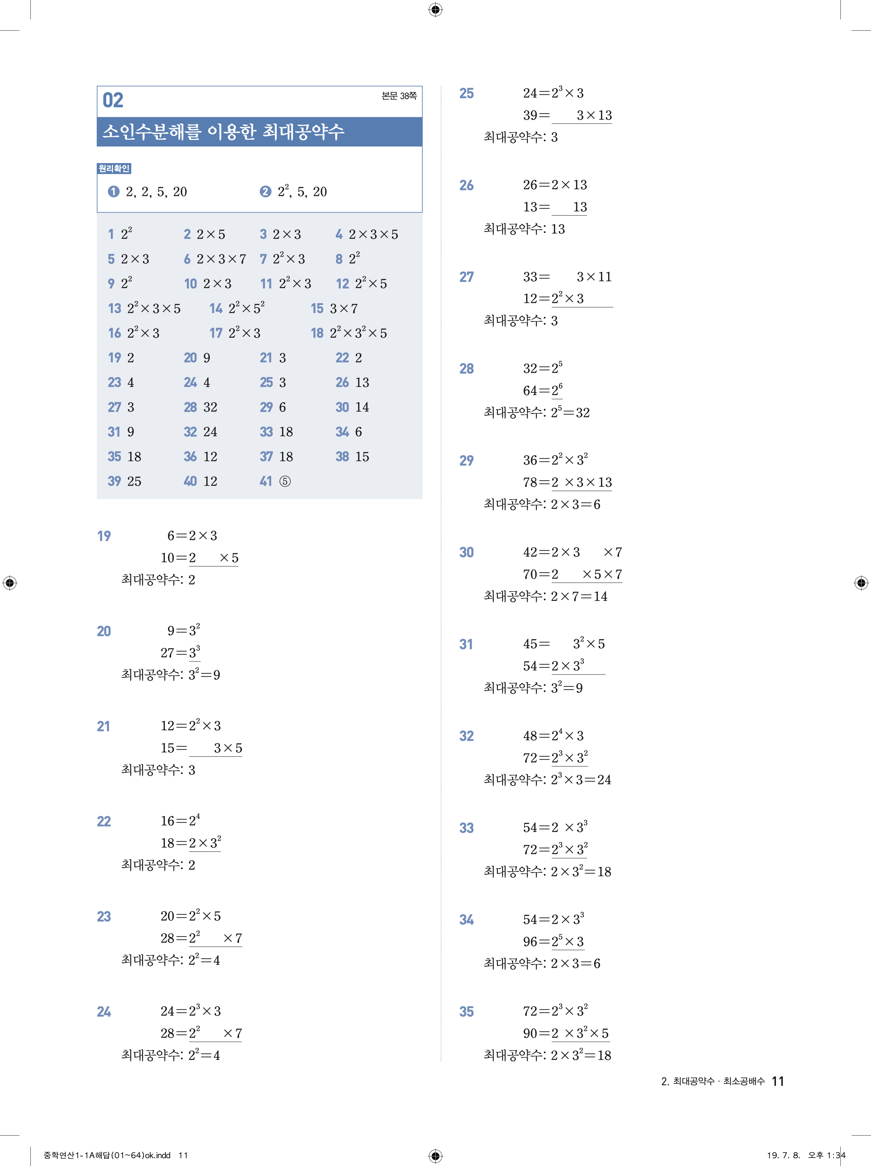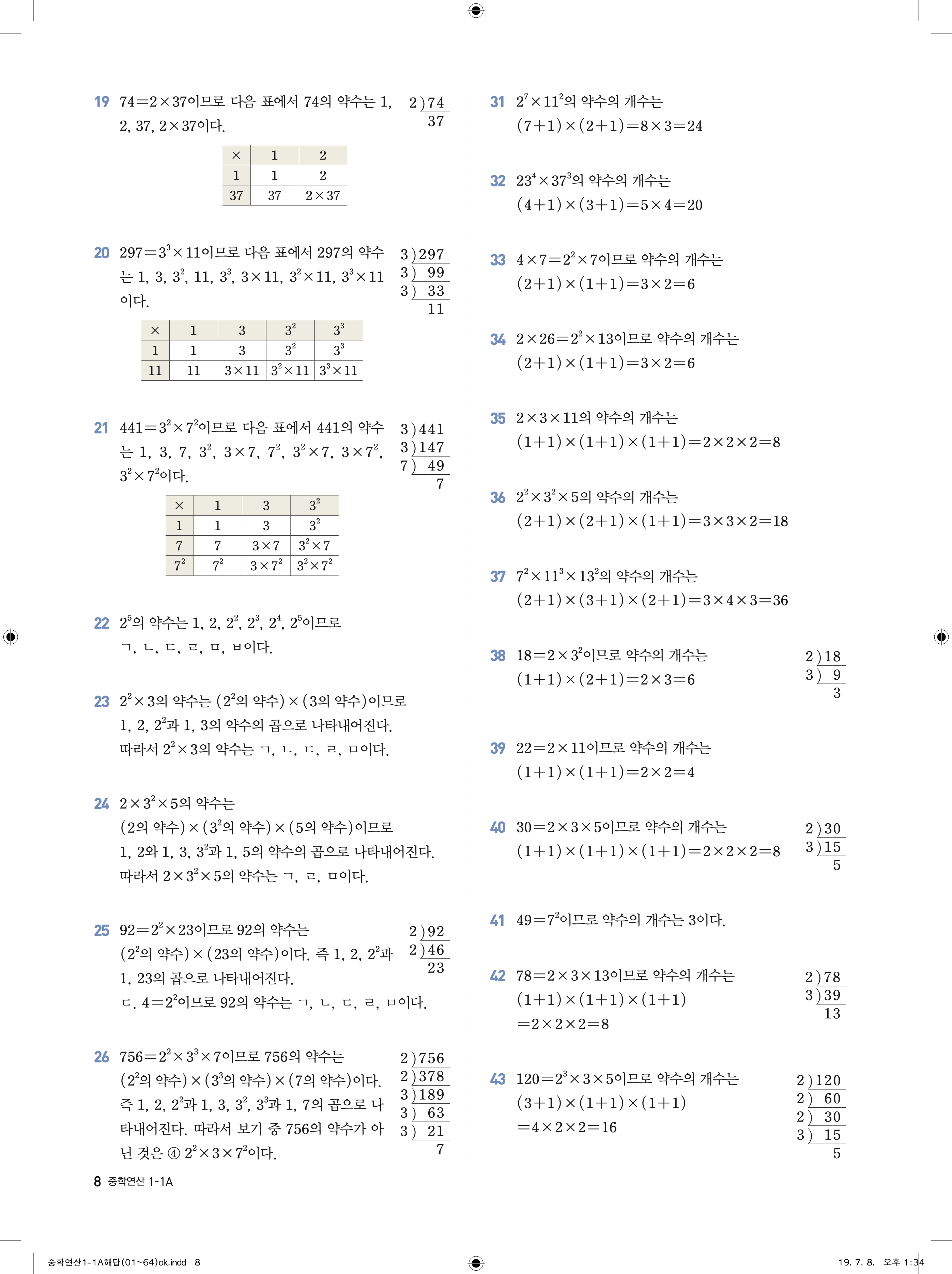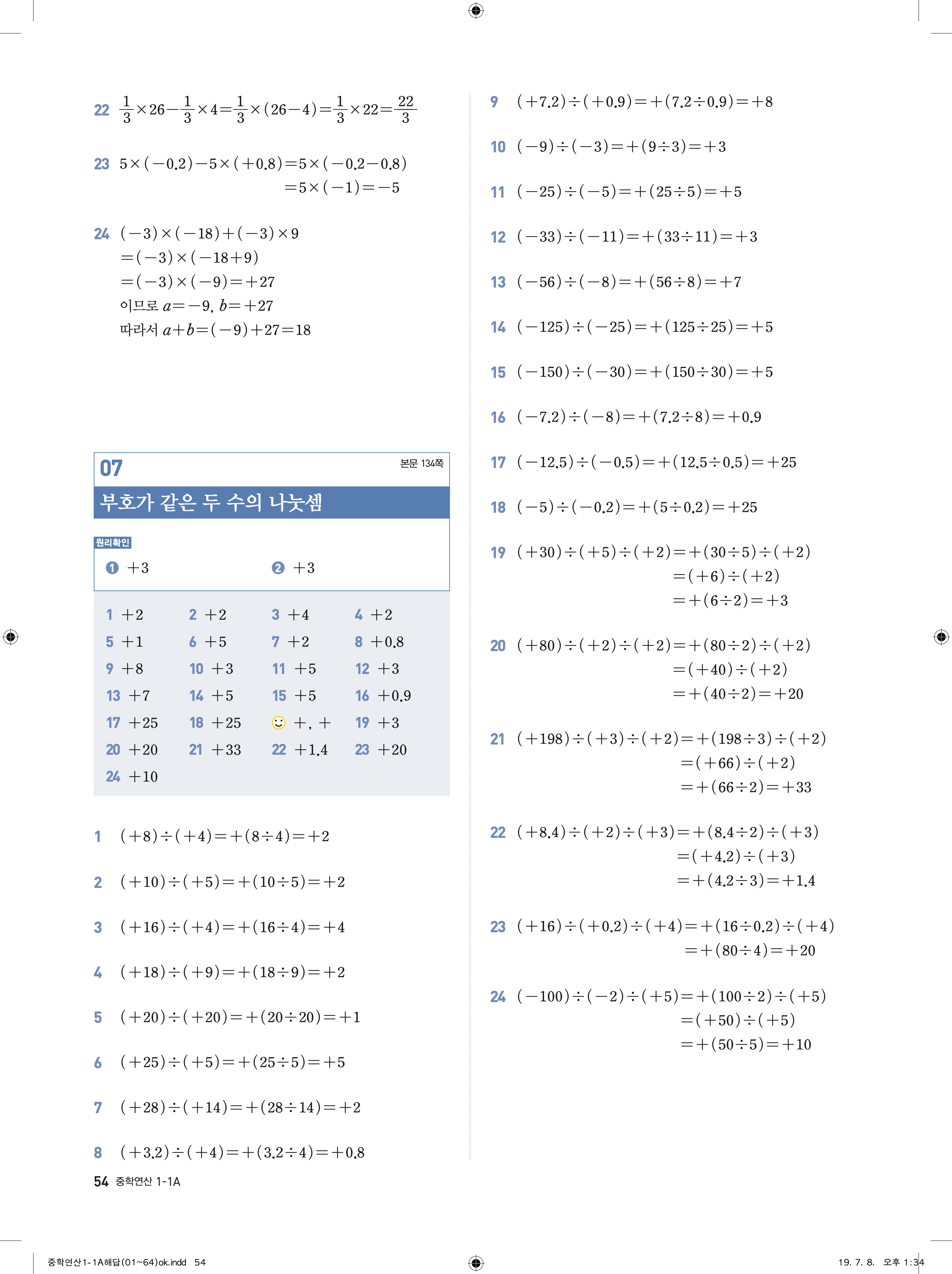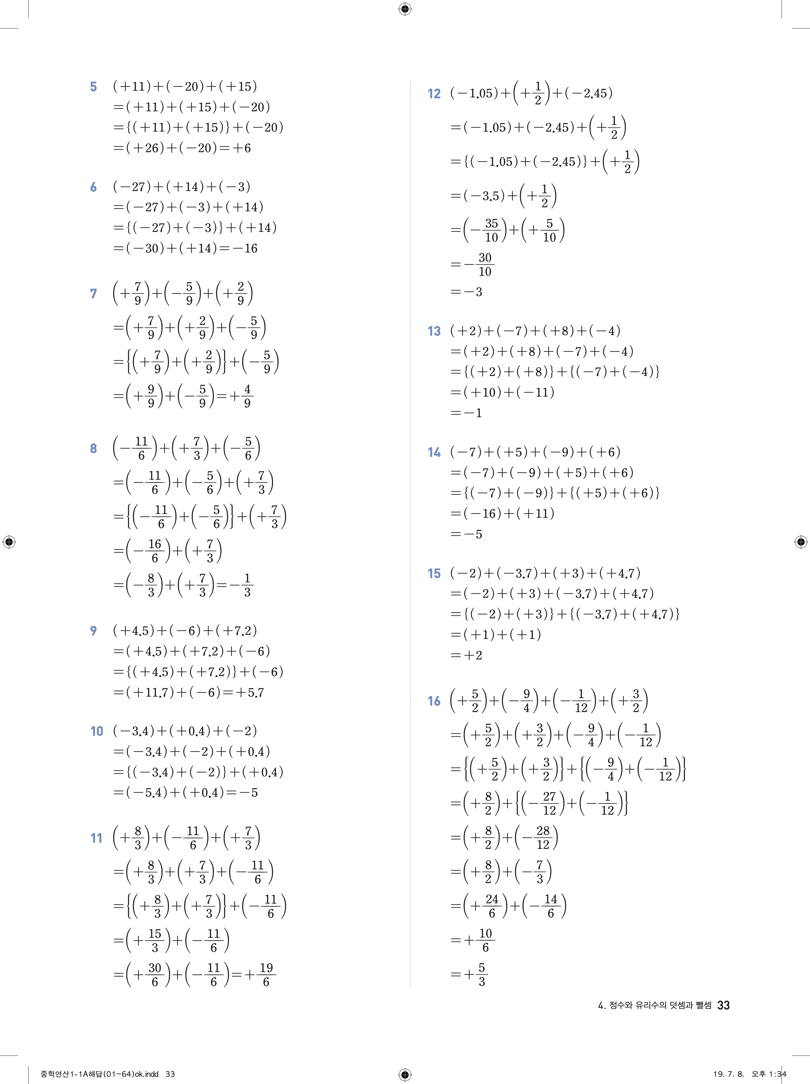 디딤돌 중학연산 1-1A 답지 해설 바로보는 사진답지 빠른답지 모바일최적화