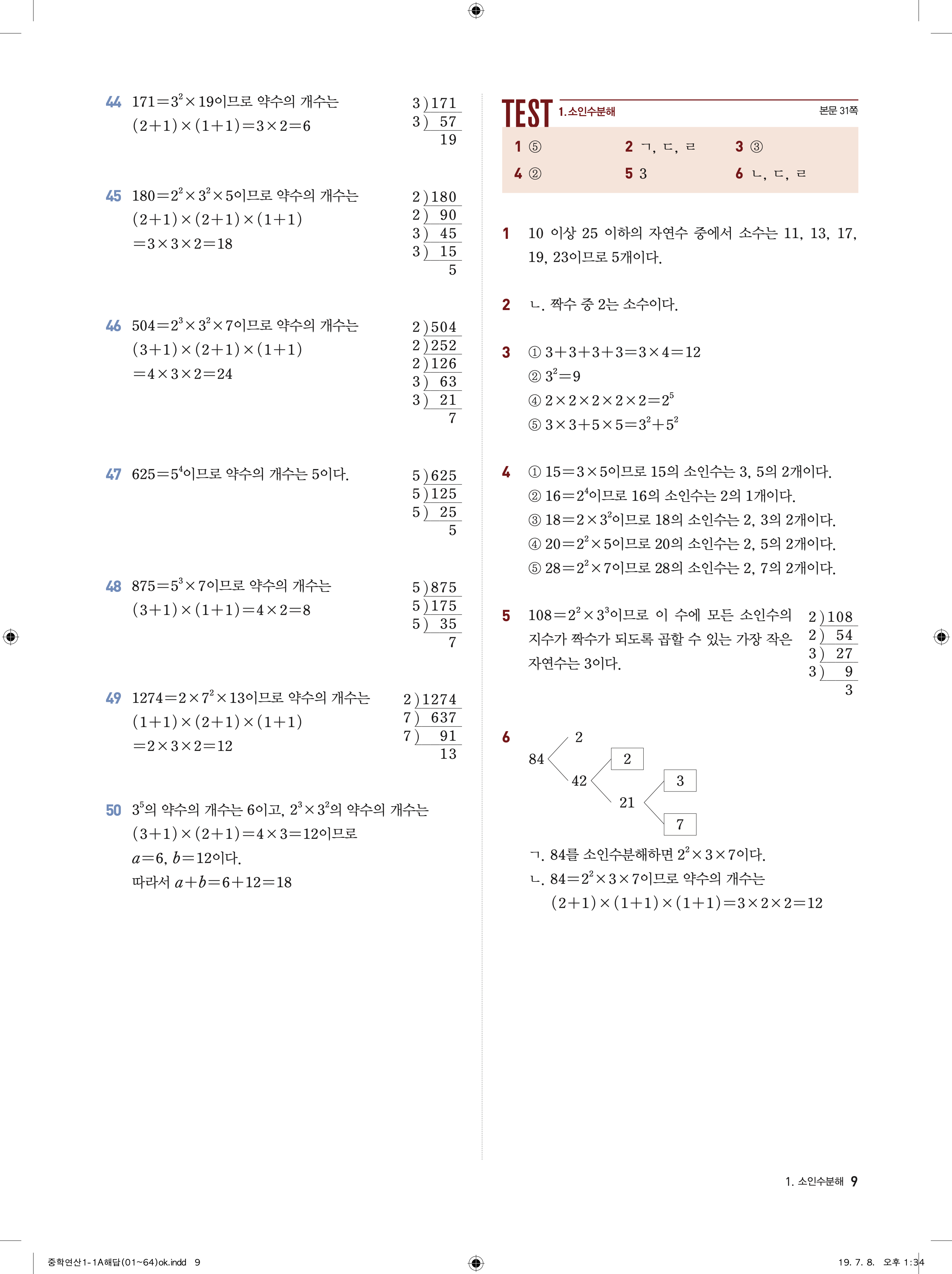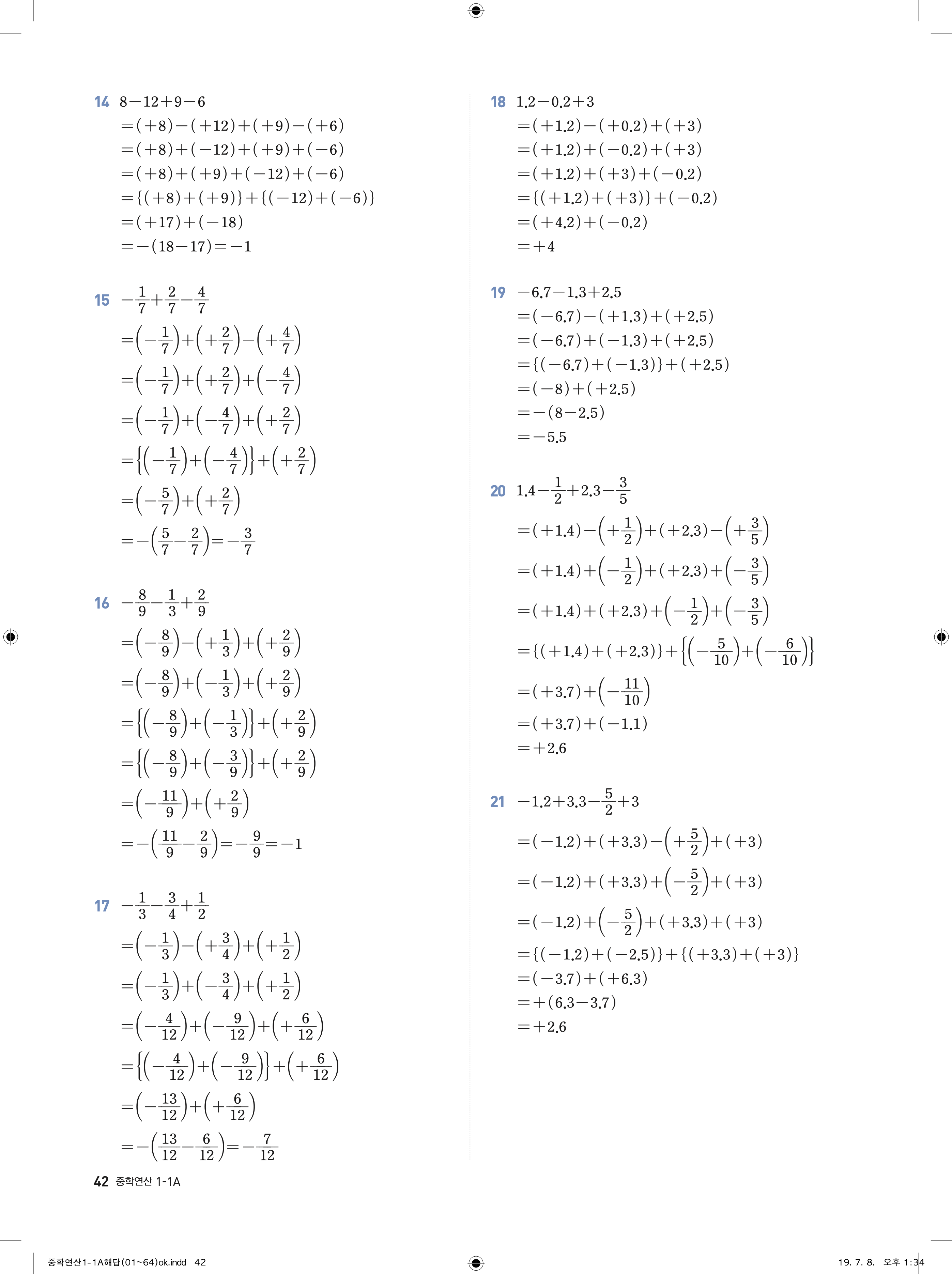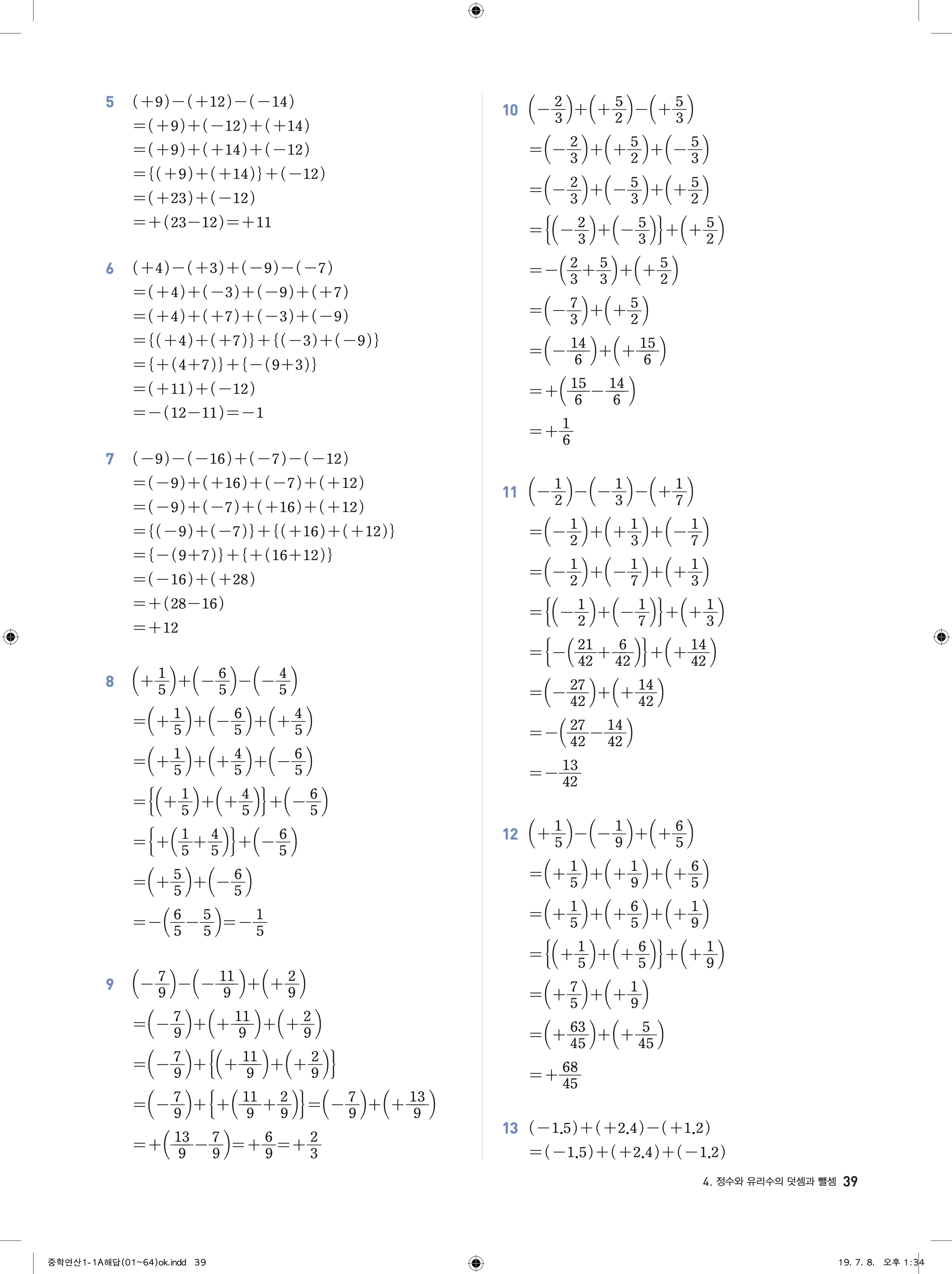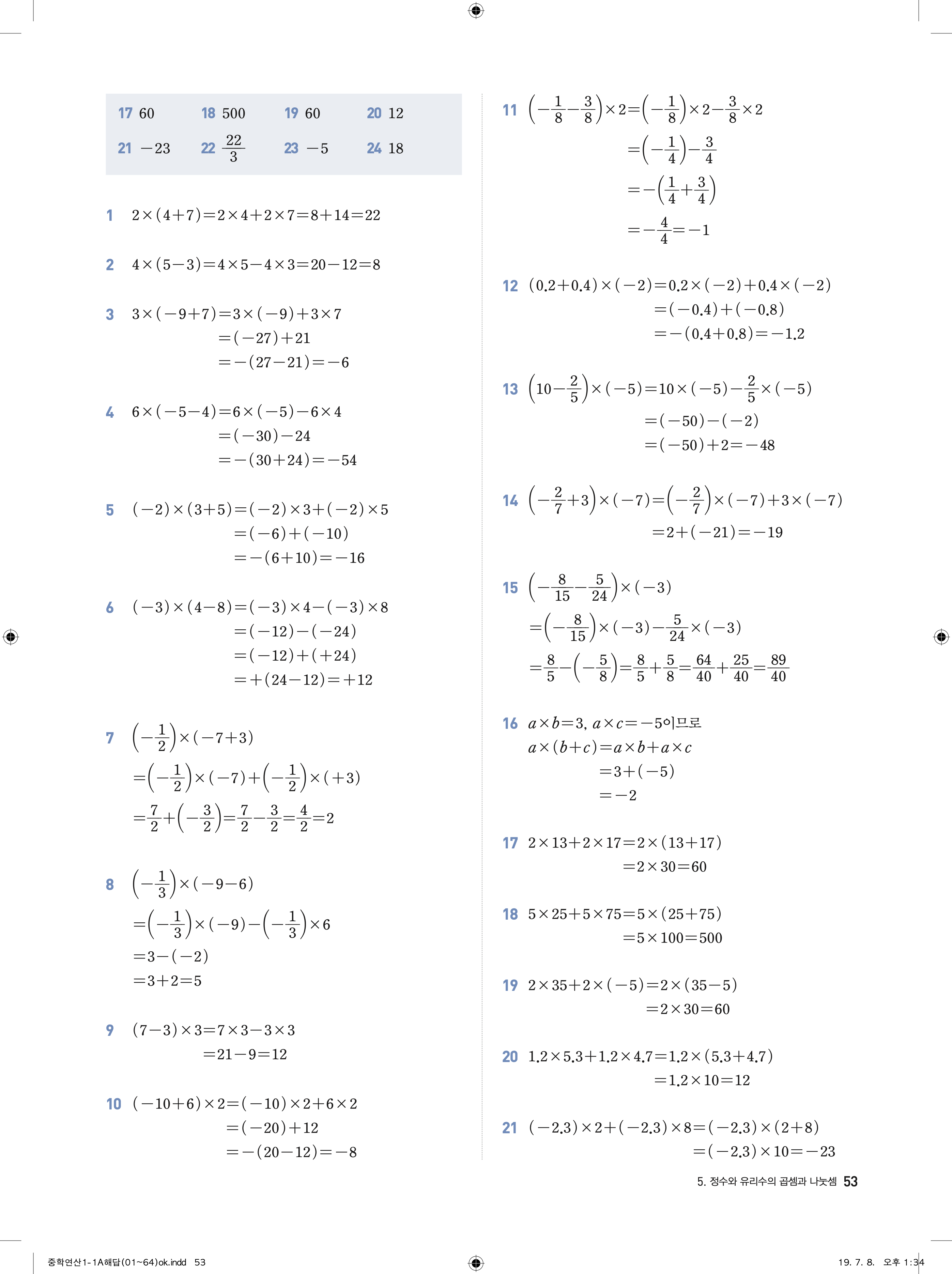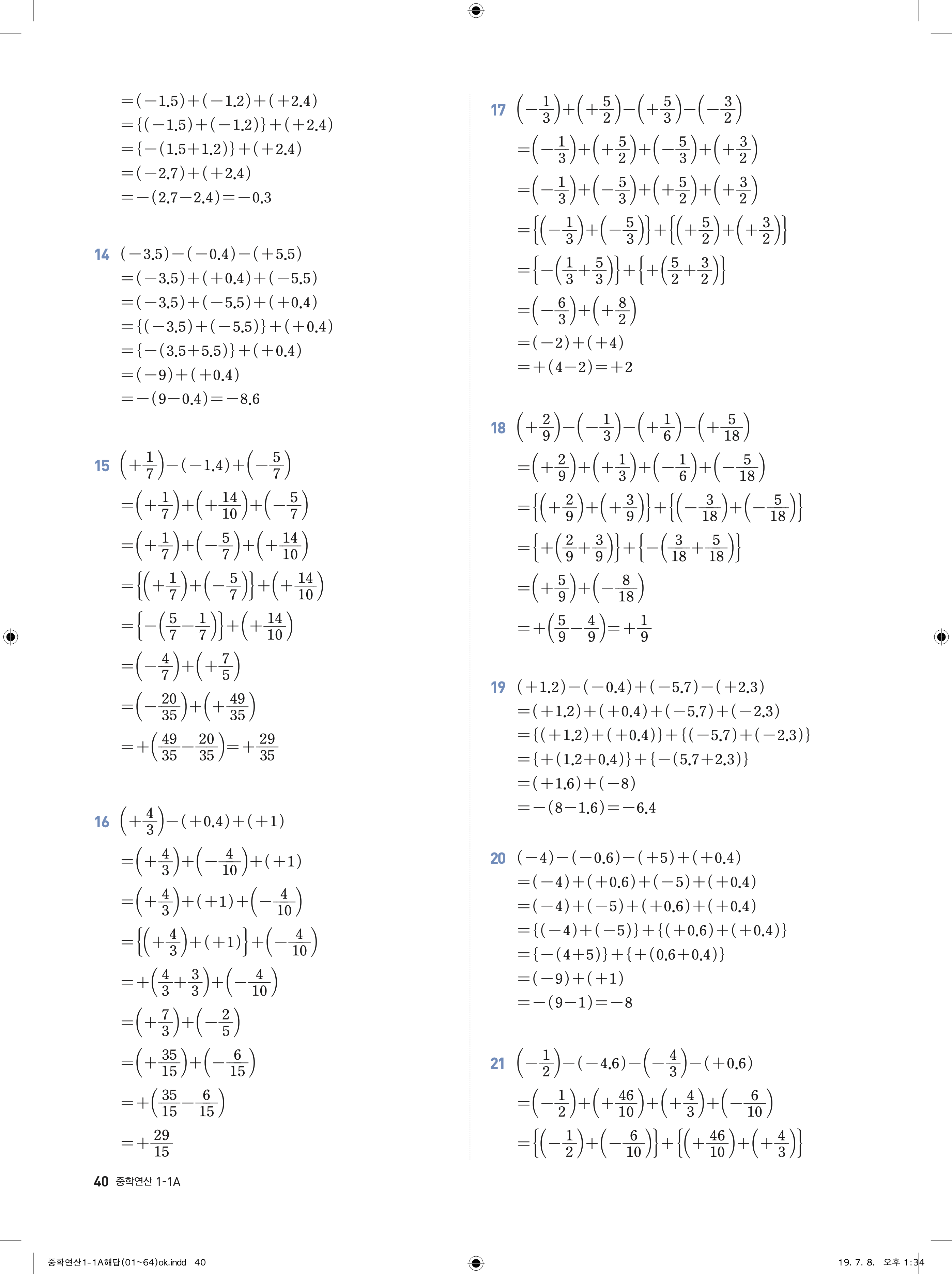 디딤돌 중학연산 1-1A 답지 해설 바로보는 사진답지 빠른답지 모바일최적화