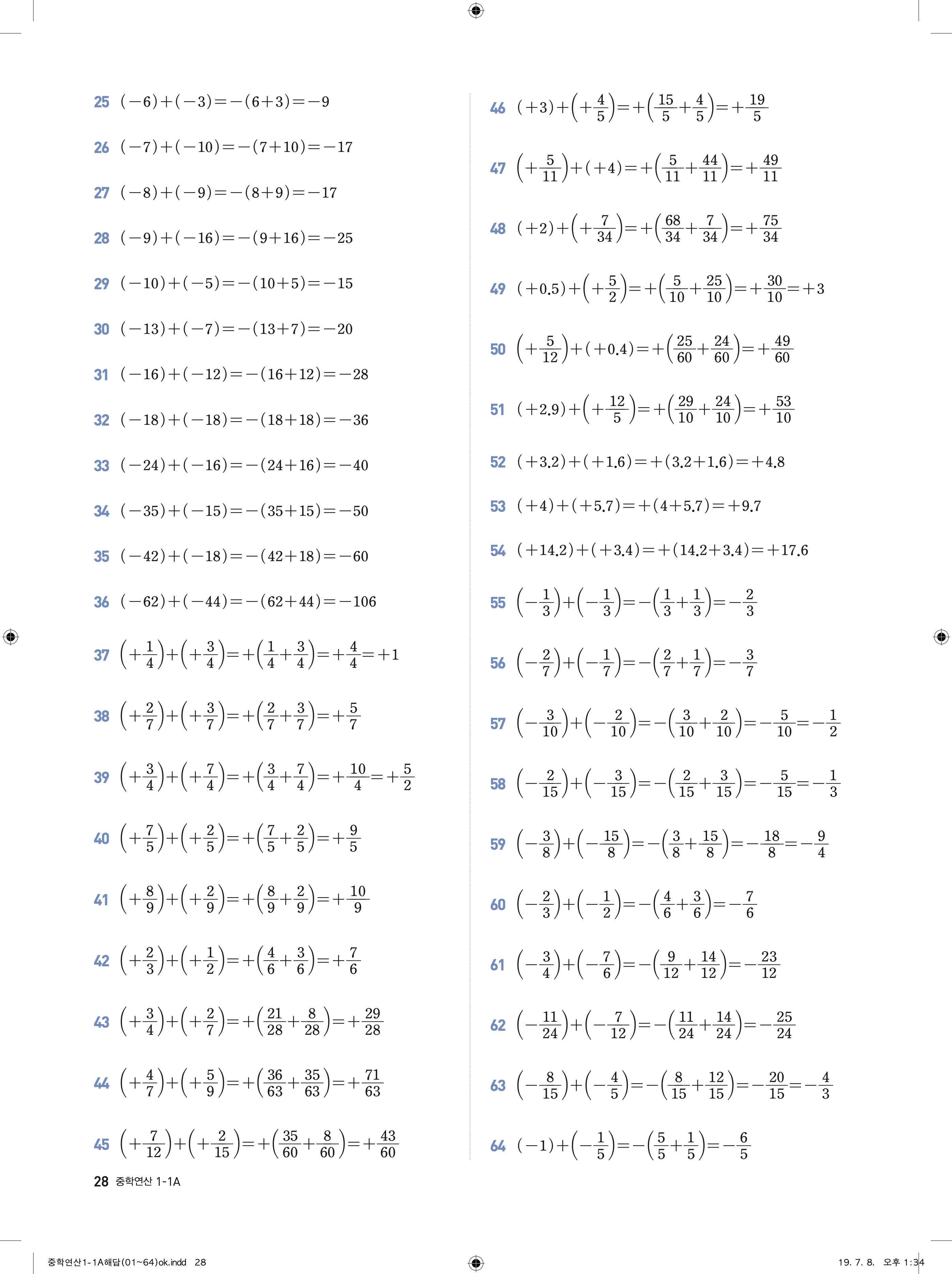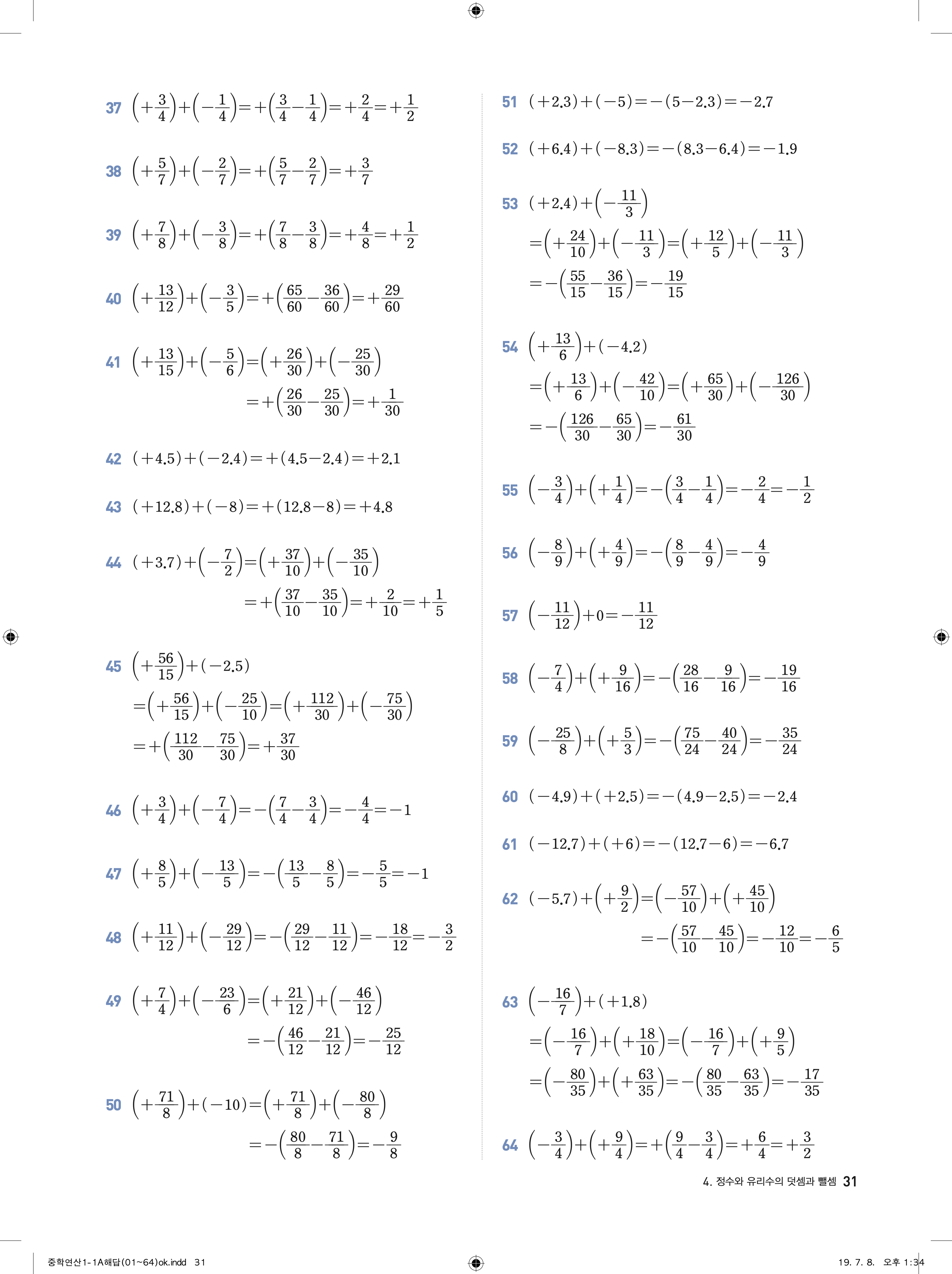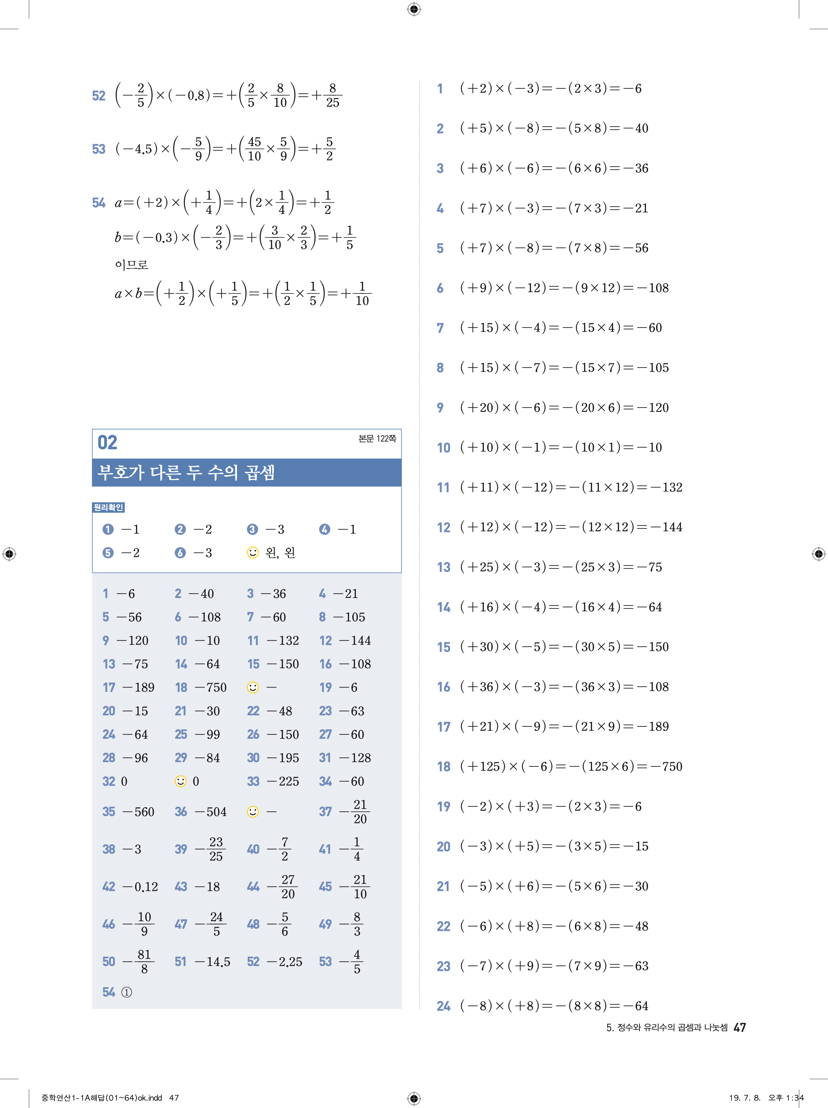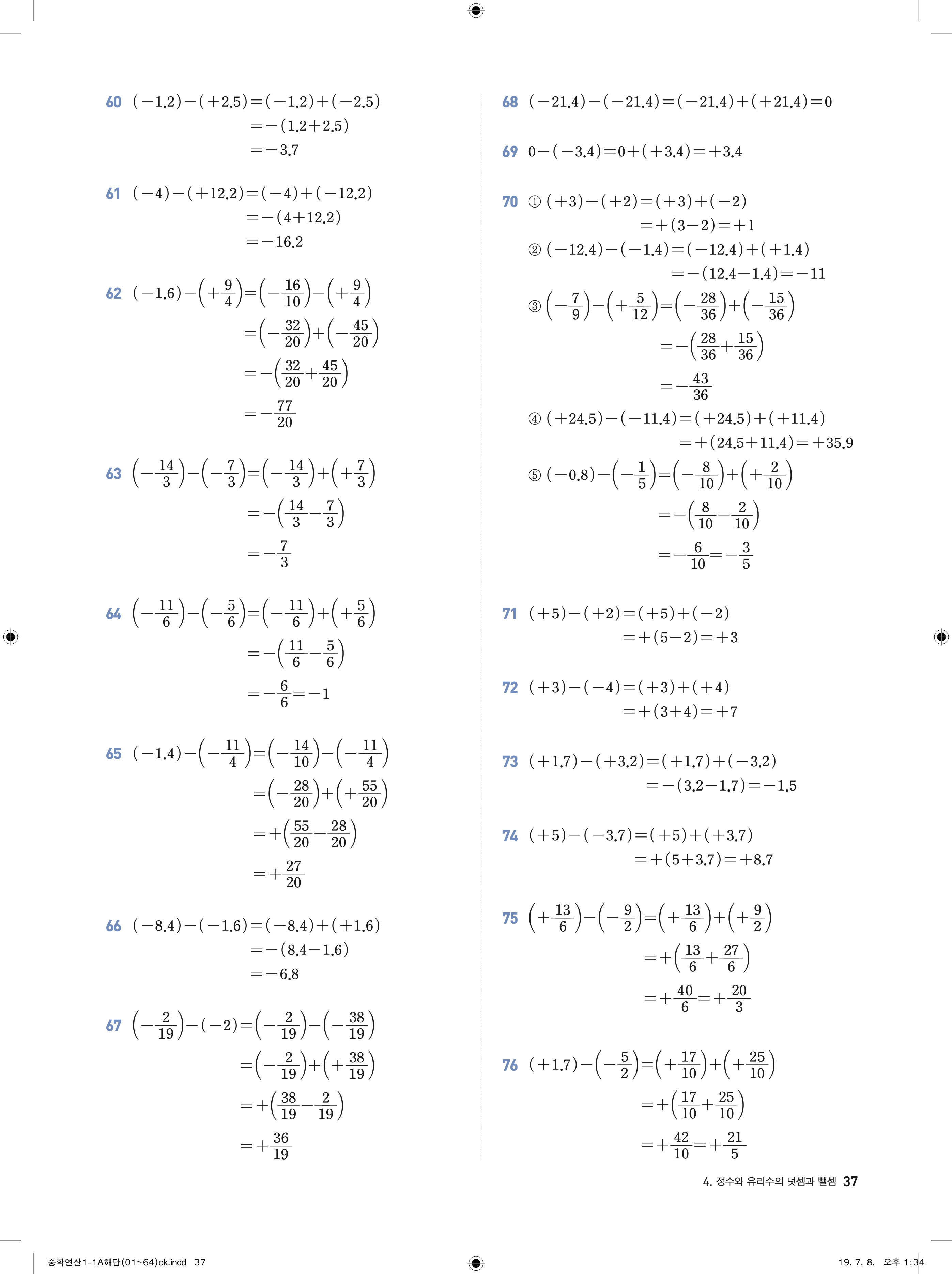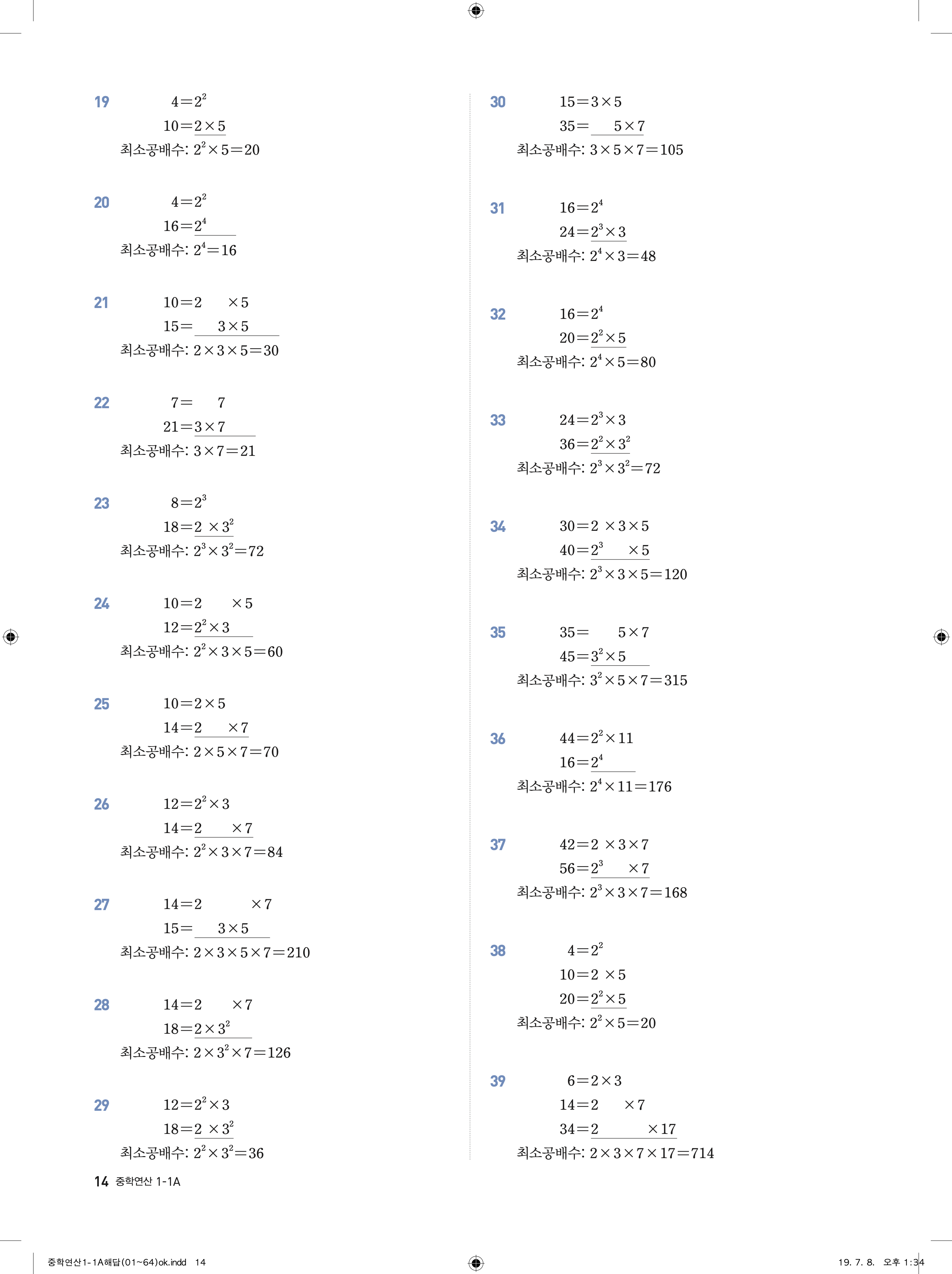 디딤돌 중학연산 1-1A 답지 해설 바로보는 사진답지 빠른답지 모바일최적화