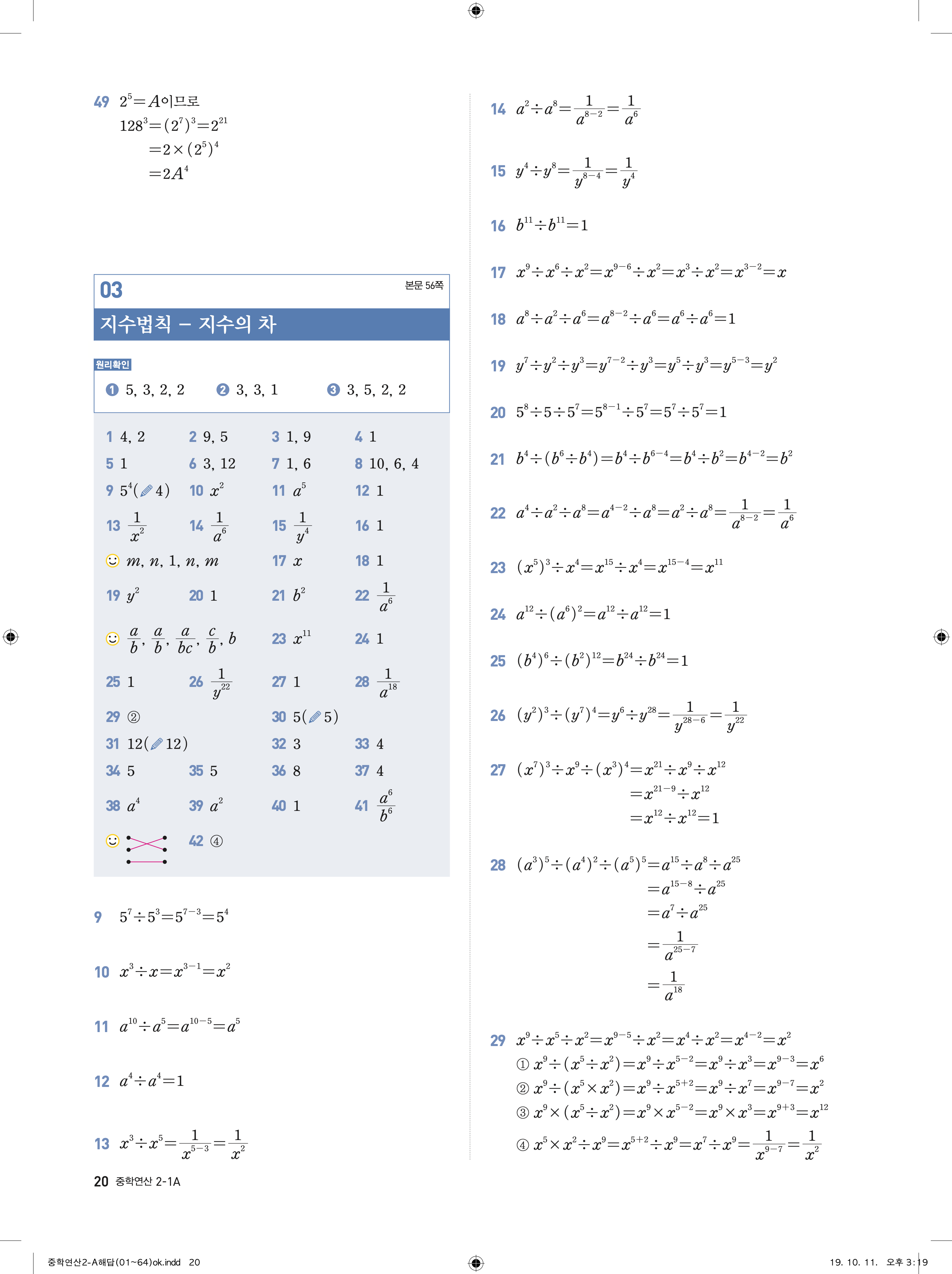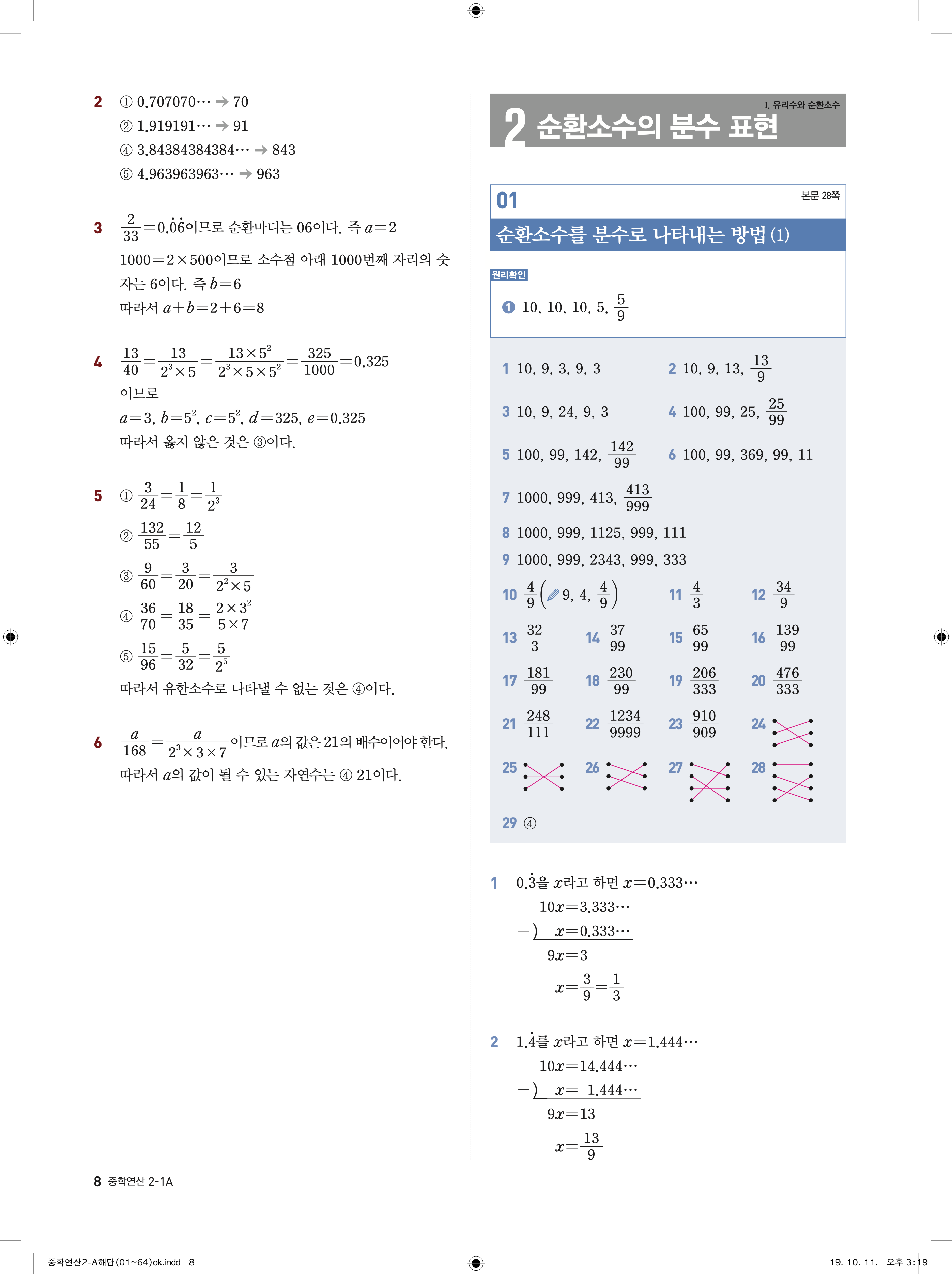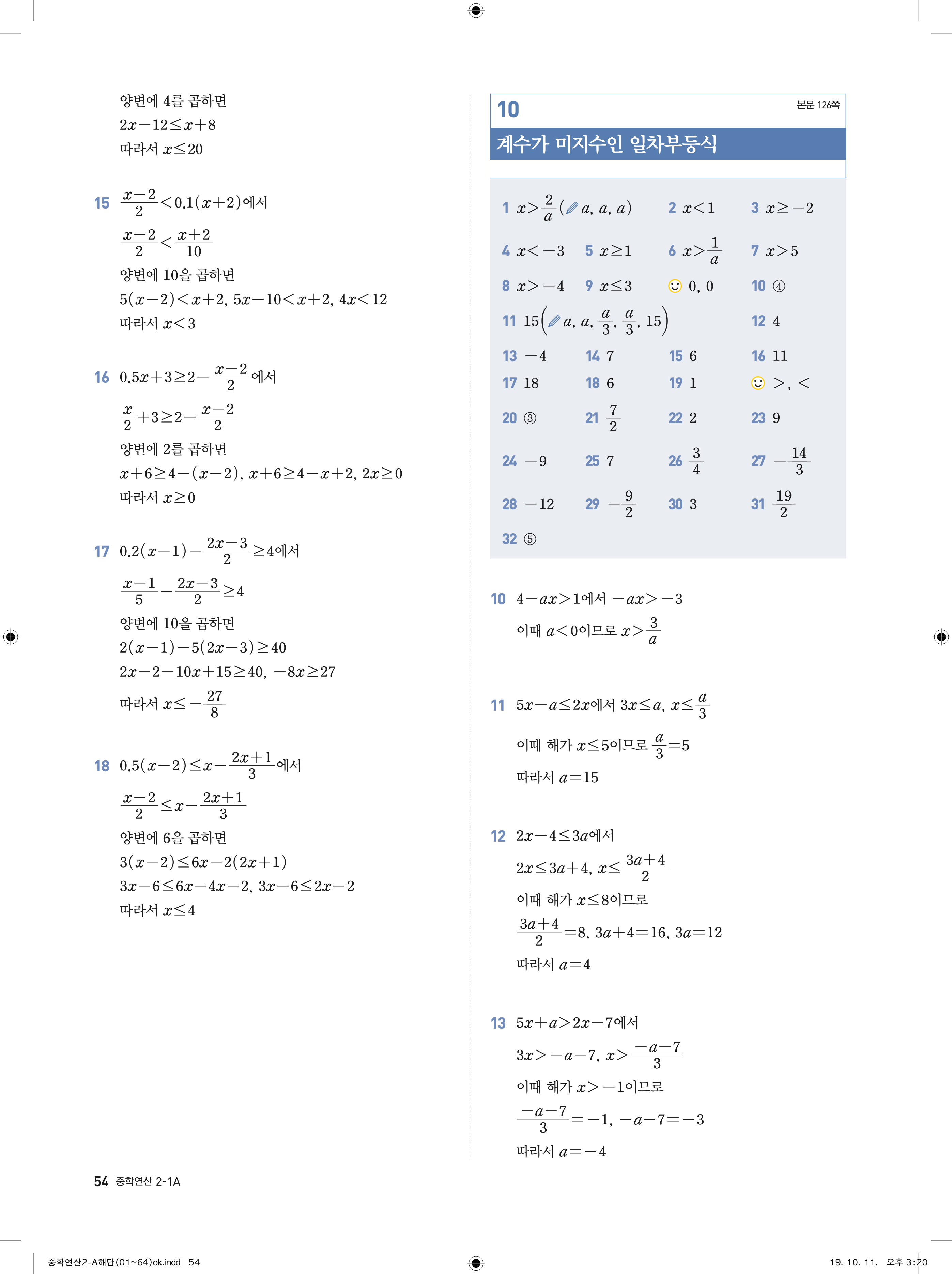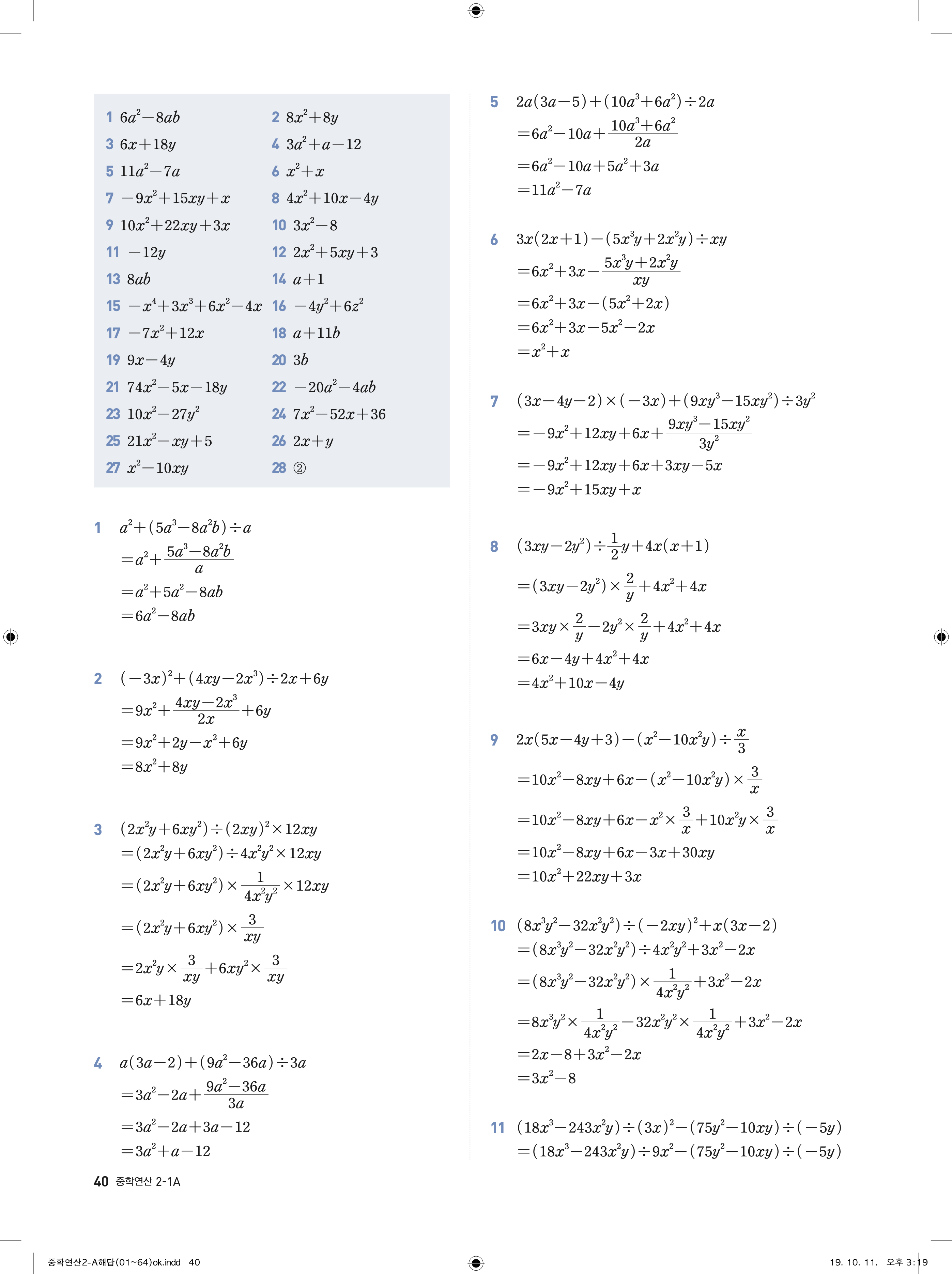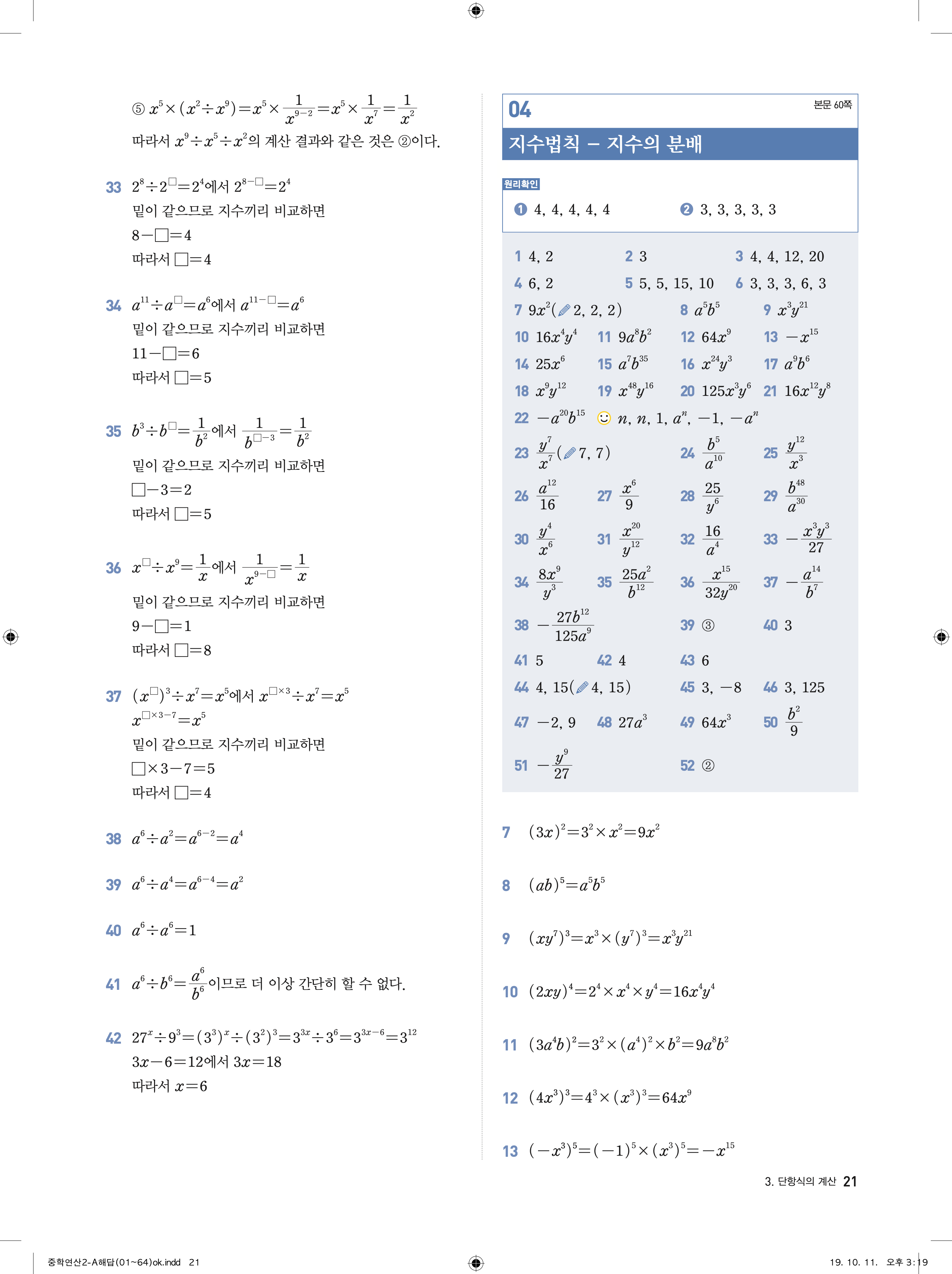 디딤돌 중학연산 2-1A 답지 해설 바로보는 사진답지 빠른답지 모바일최적화